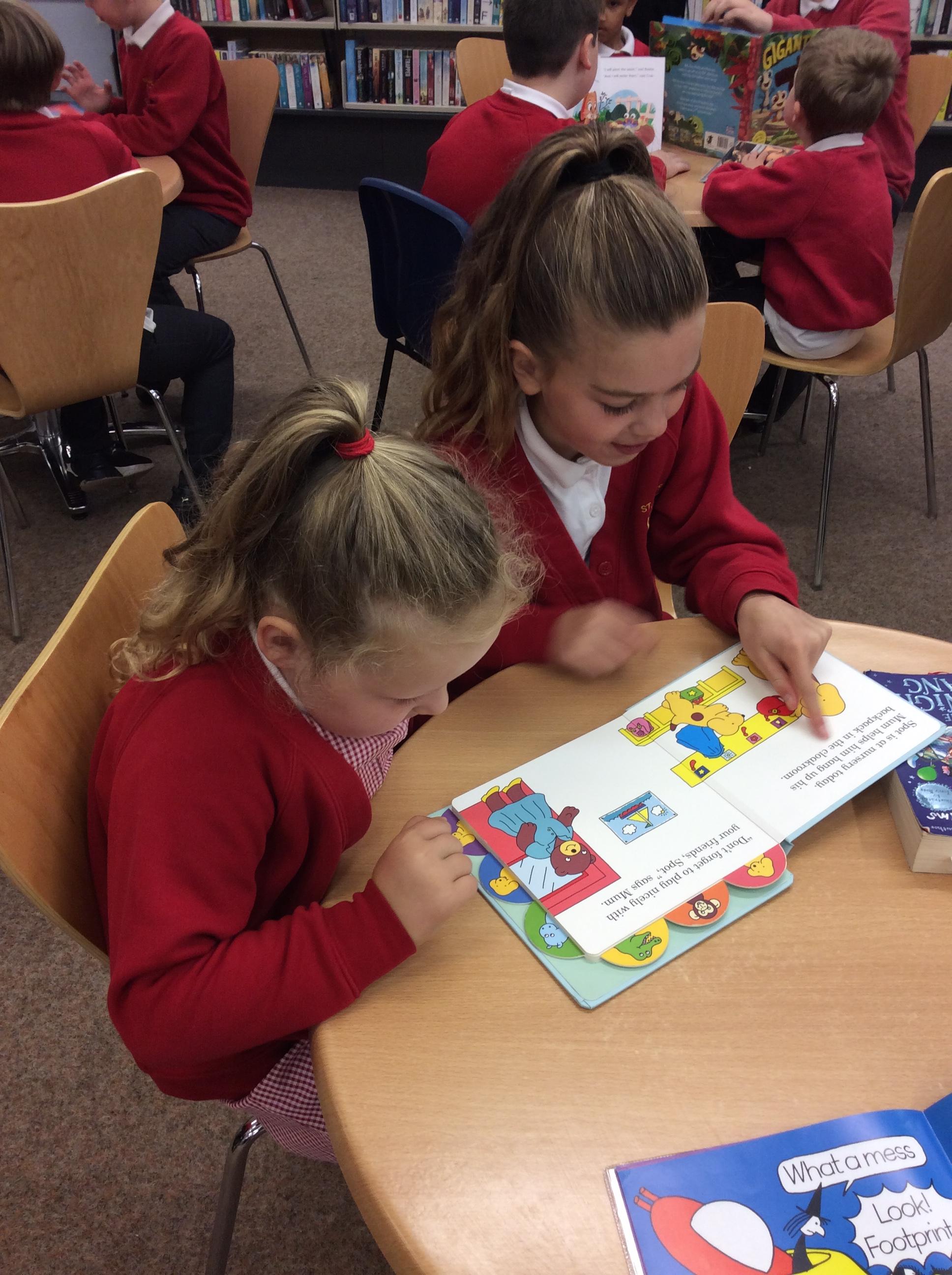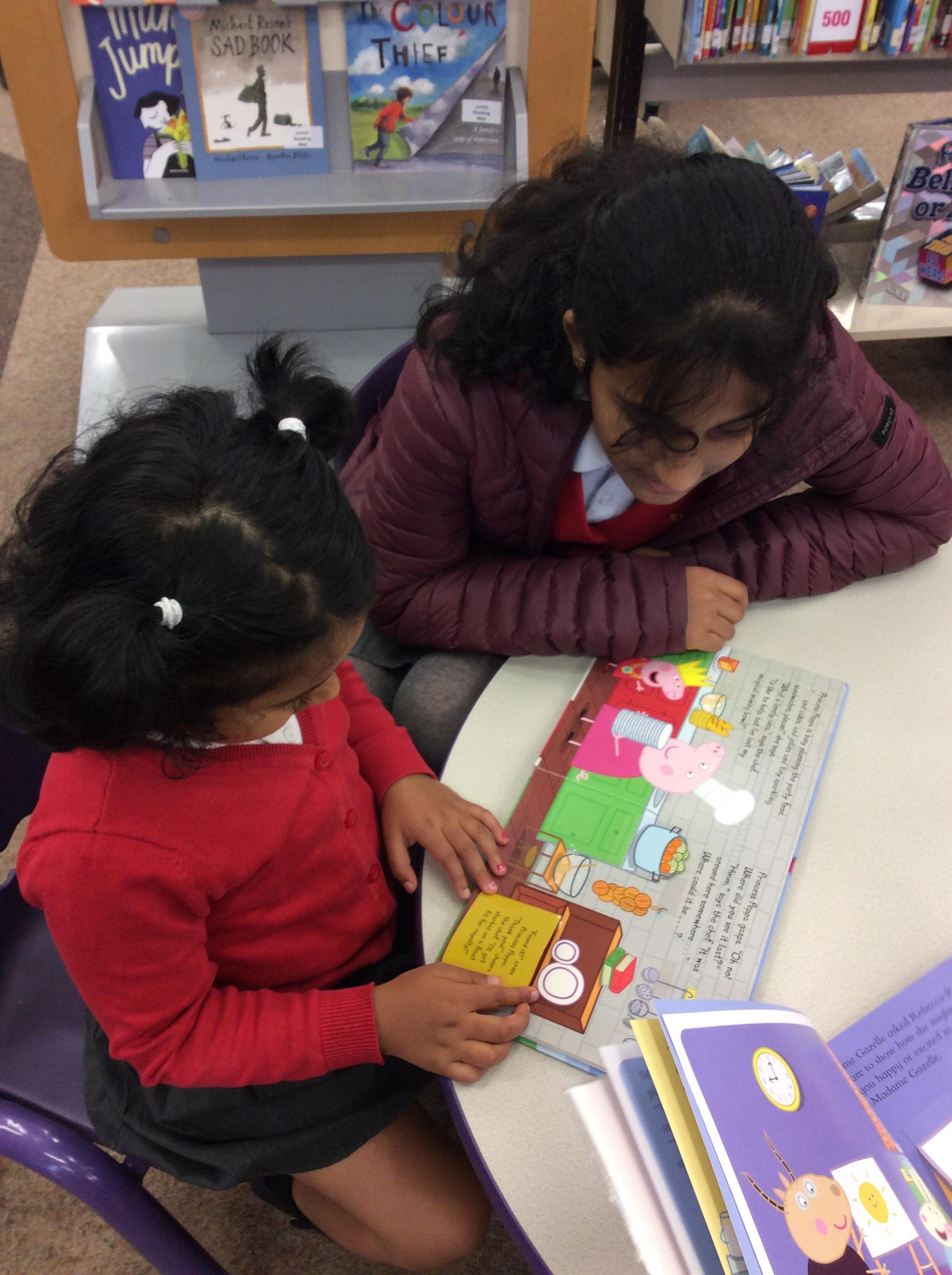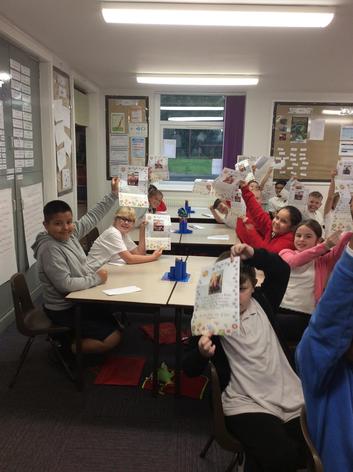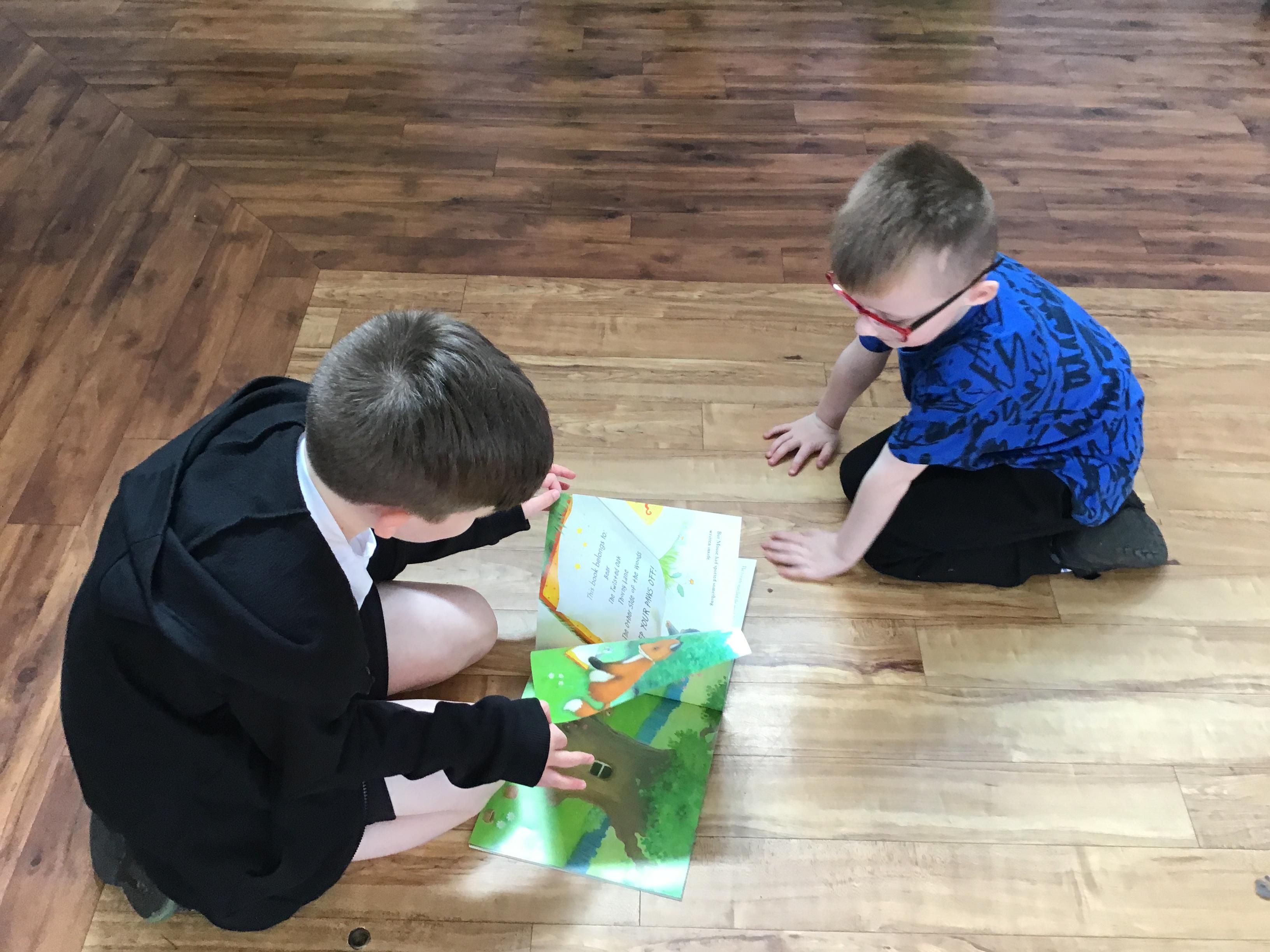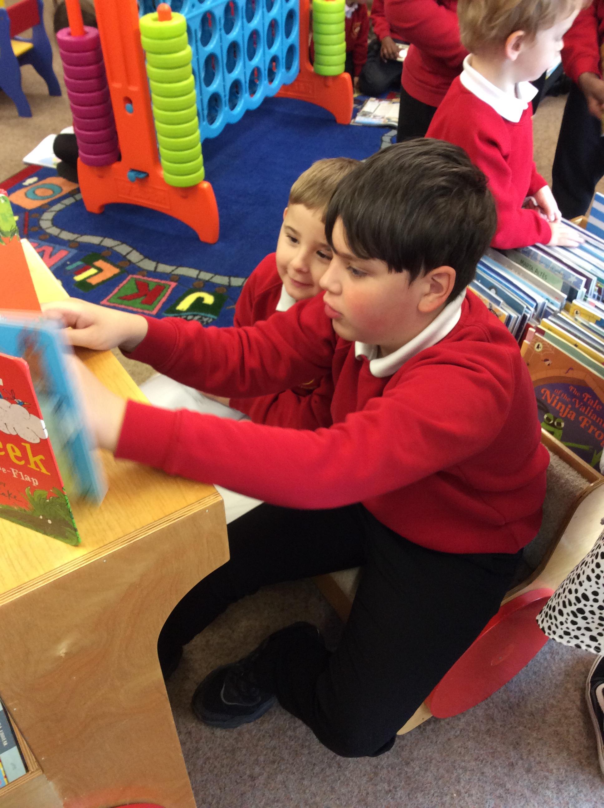 The Year 5 children made a pop up book based on a nursery rhyme as part of their DT learning. They shared their  pop-up books with their Reception Buddies.