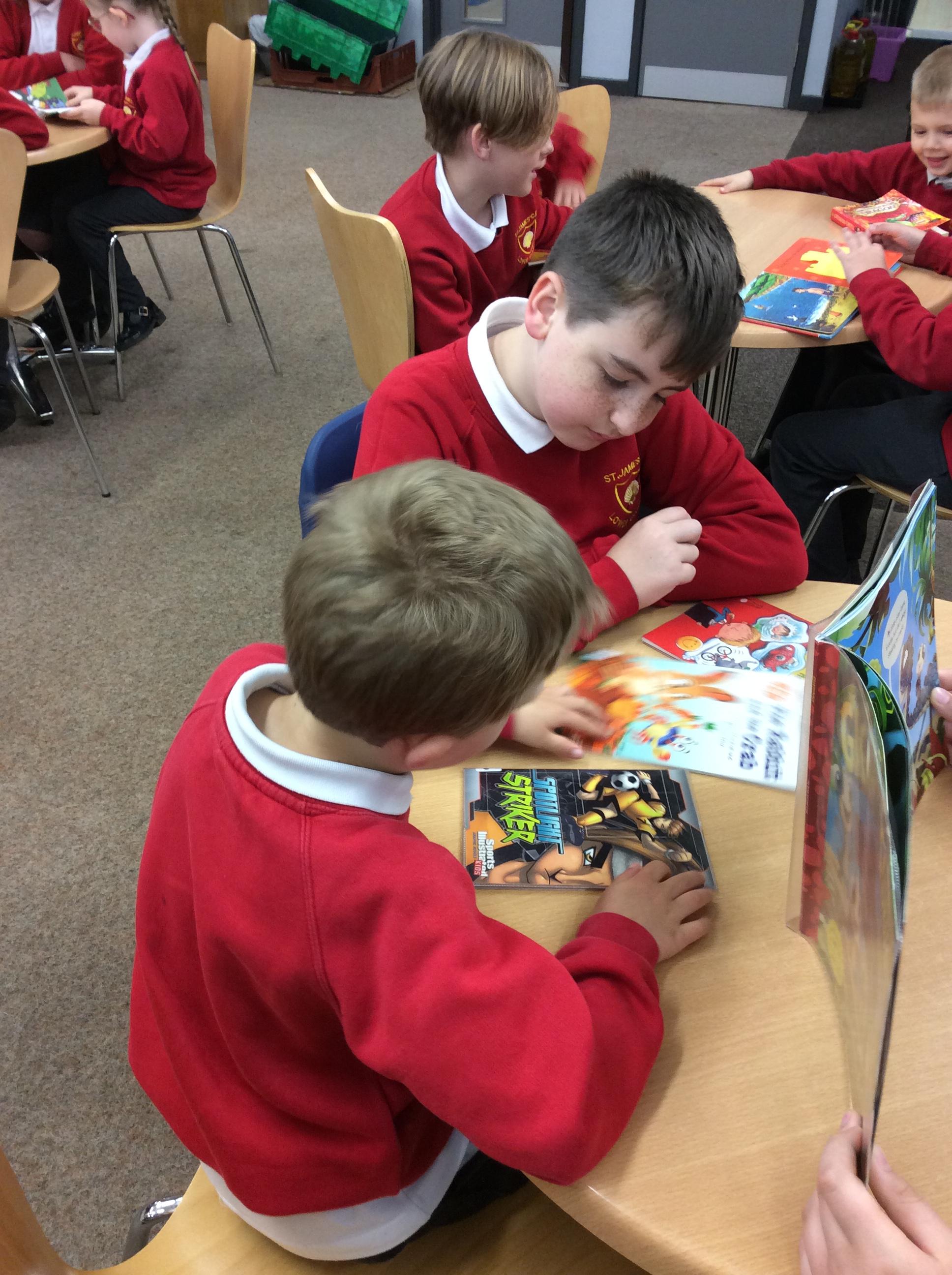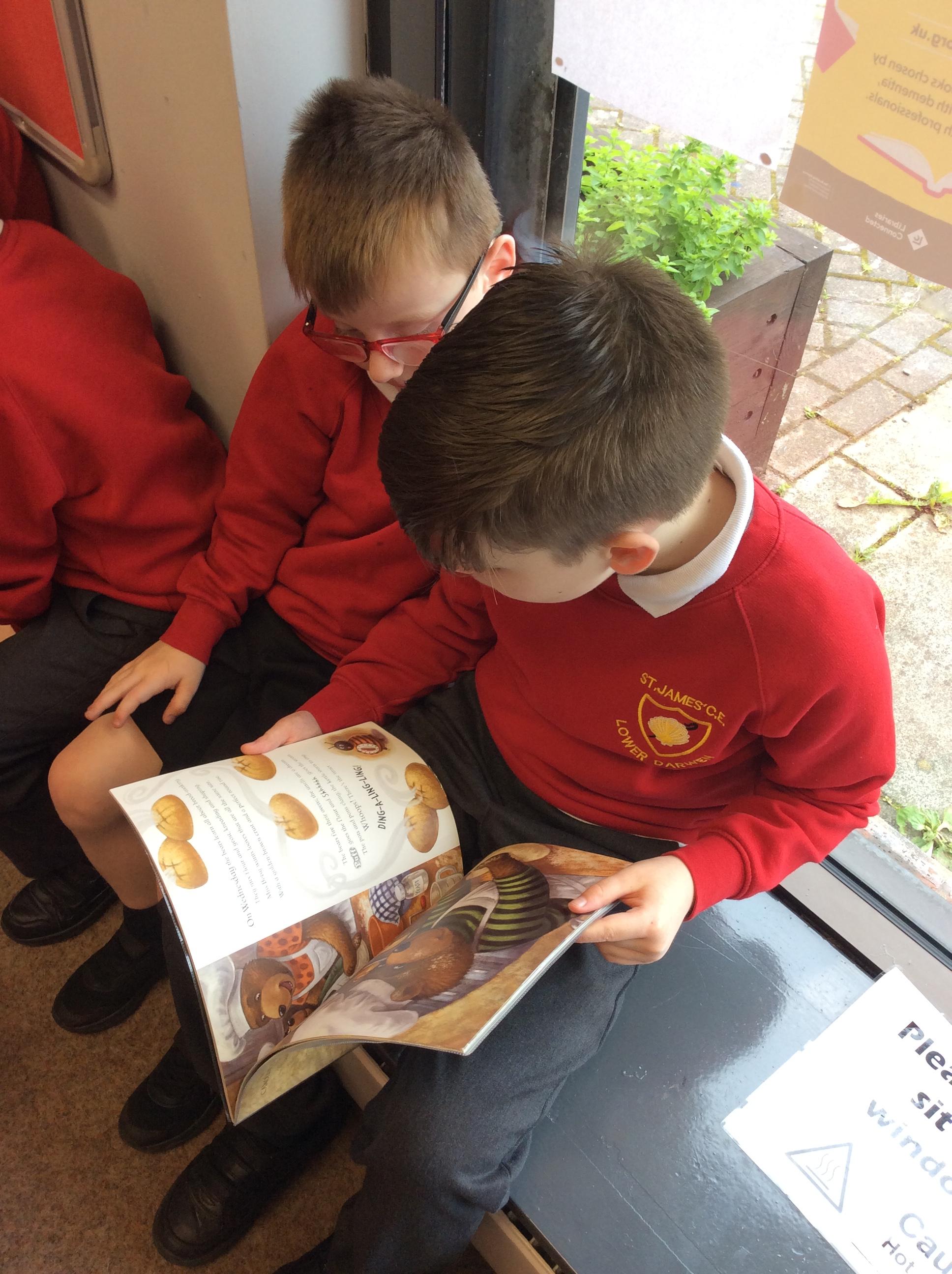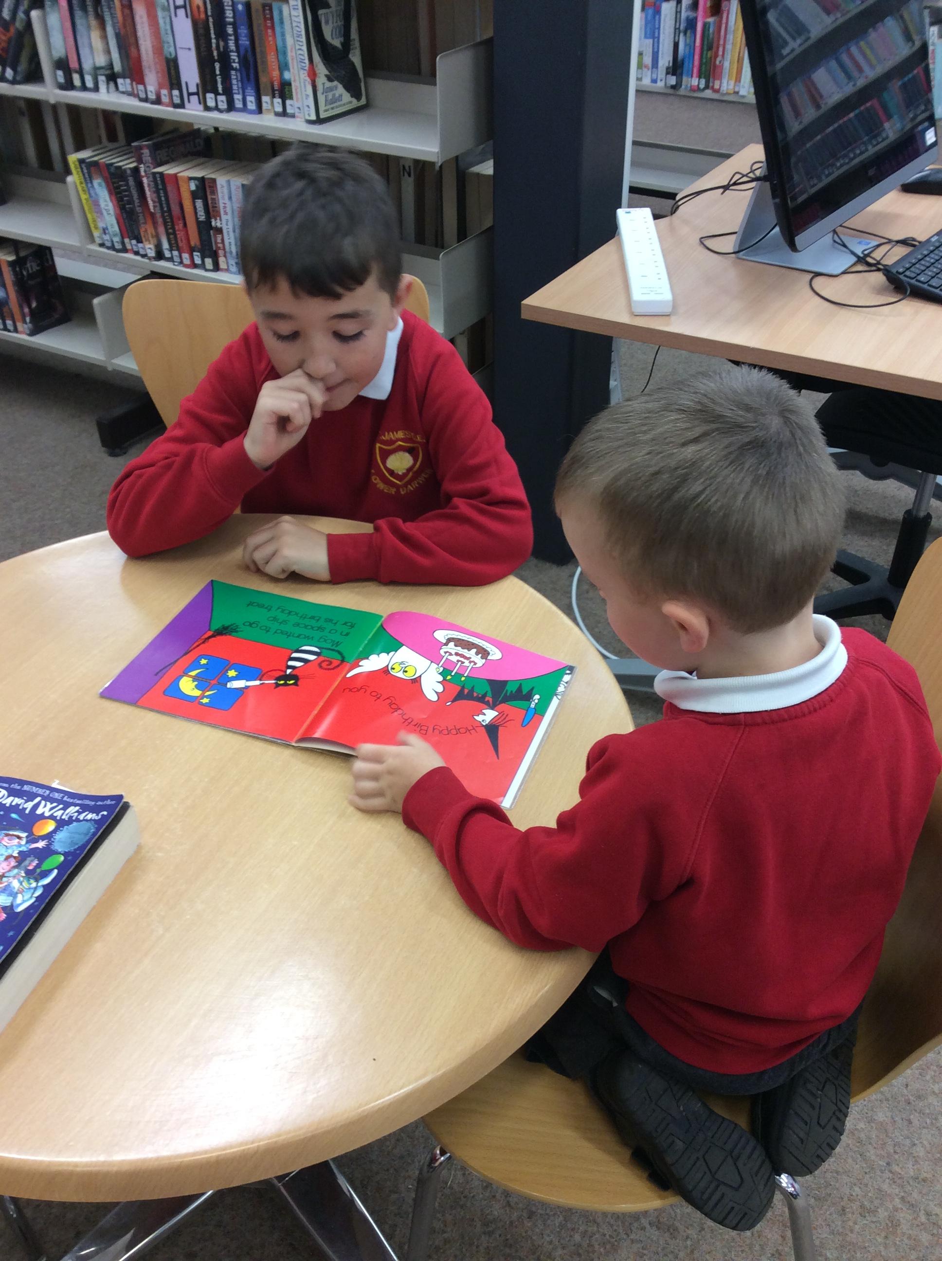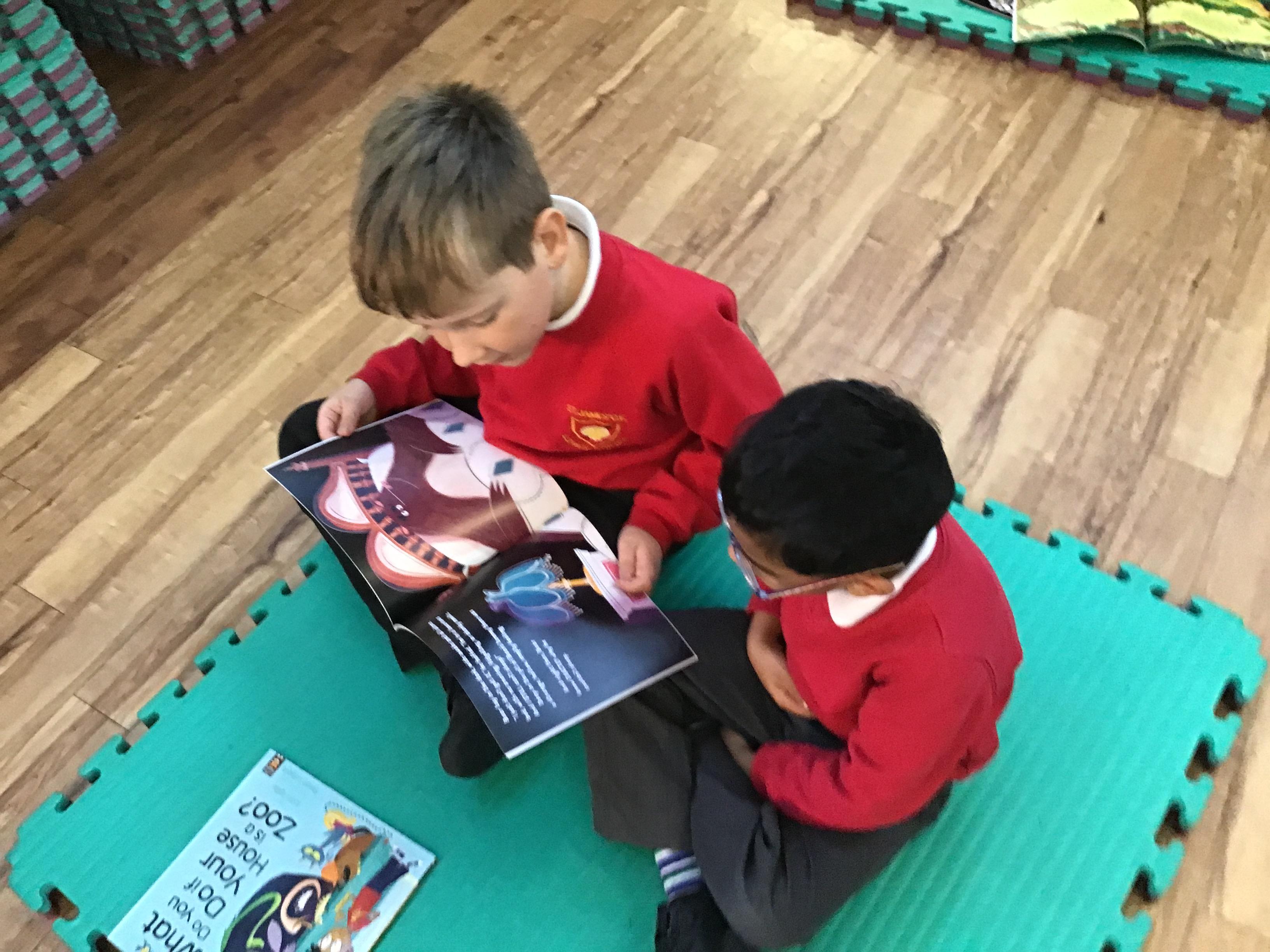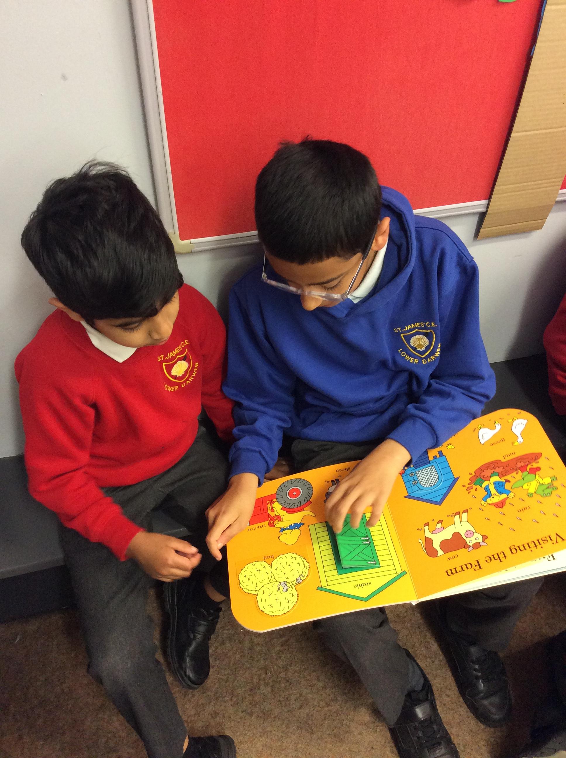 The Year 5 children made a pop up book based on a nursery rhyme as part of their DT learning. They shared their  pop-up books with their Reception Buddies.