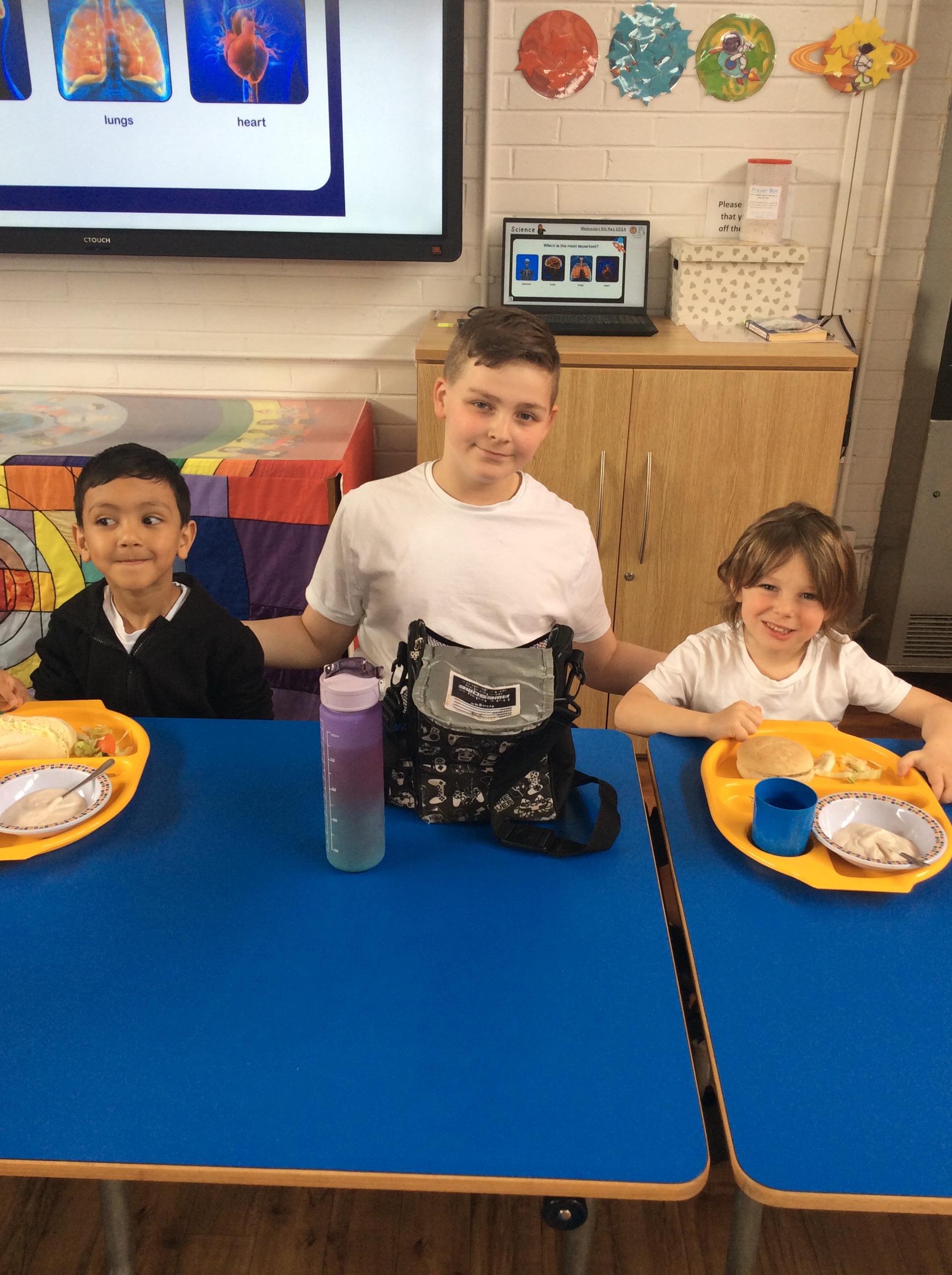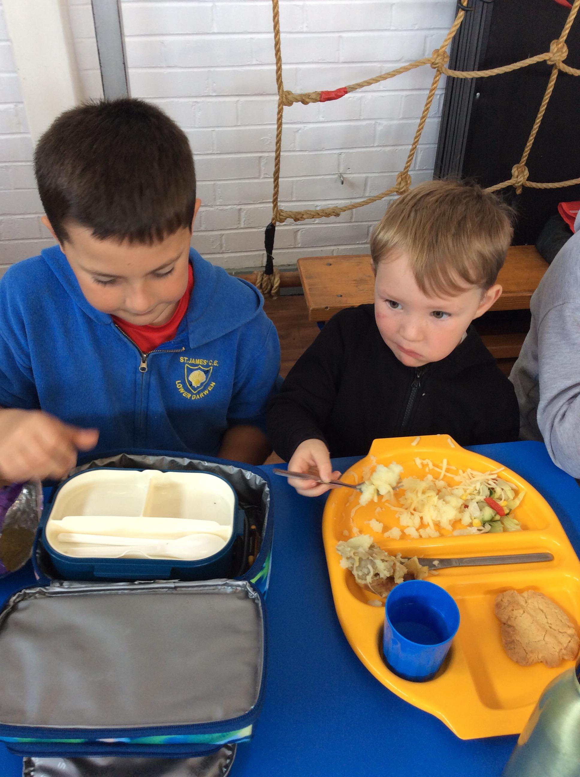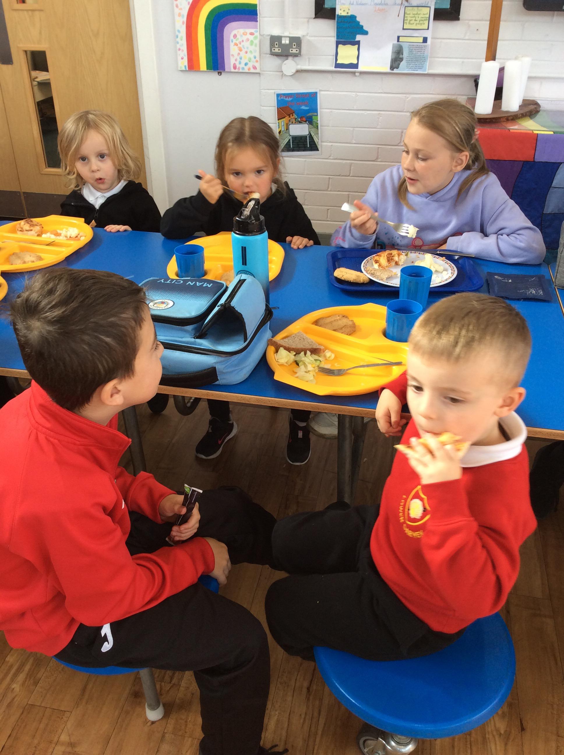 The Reception children enjoyed chatting to their buddies as they ate their lunch.