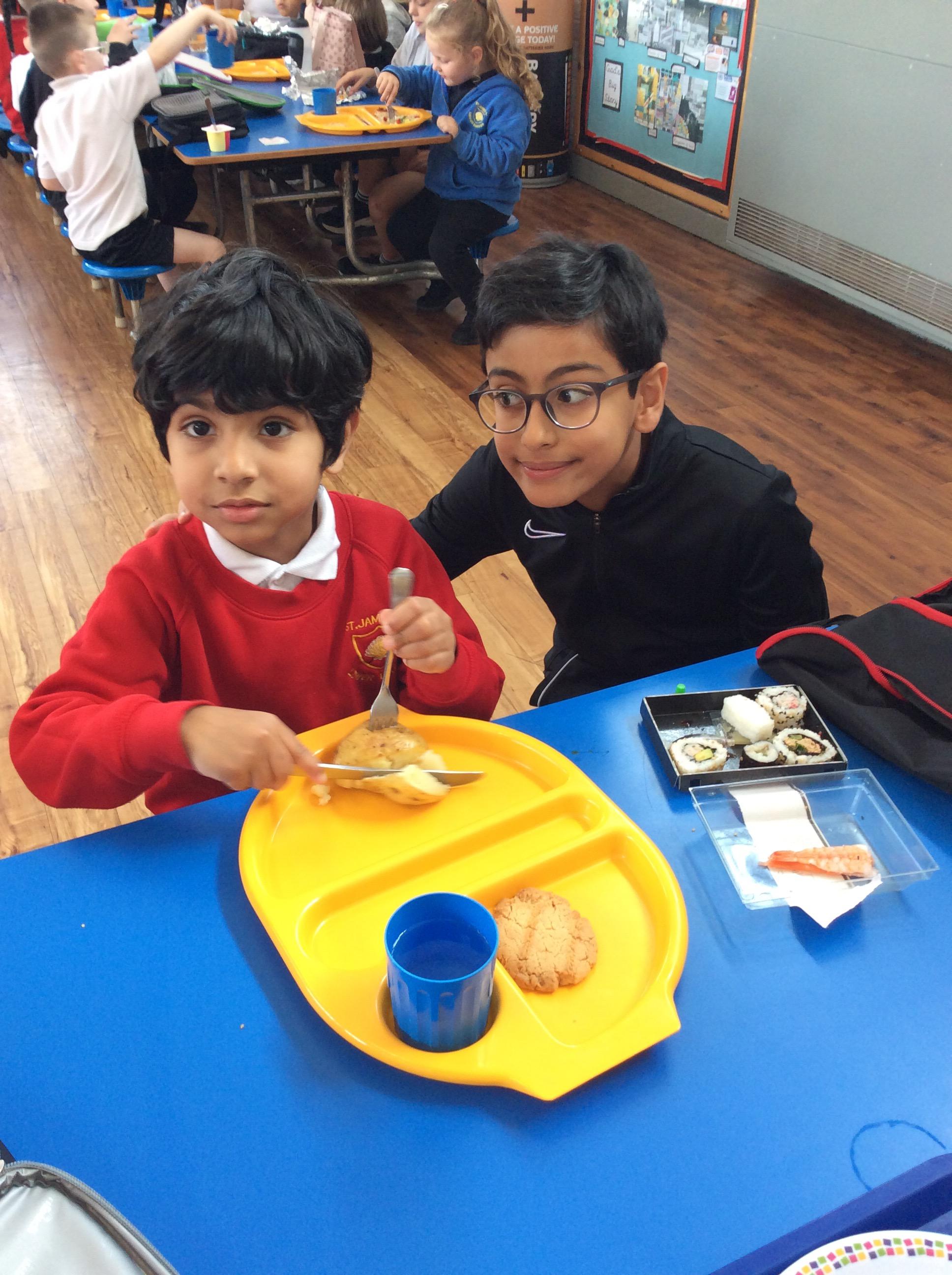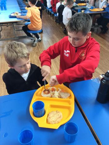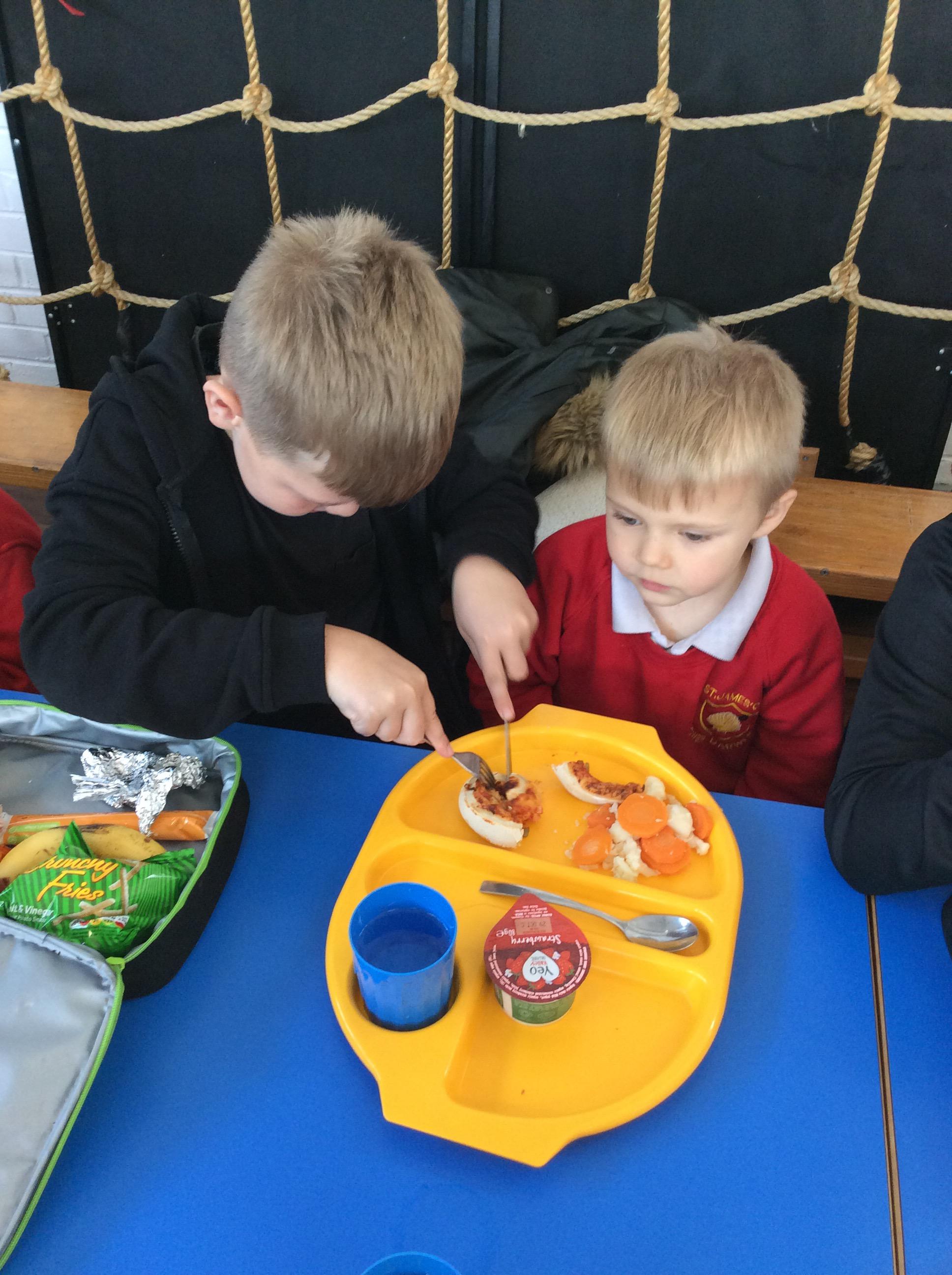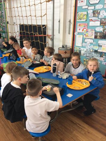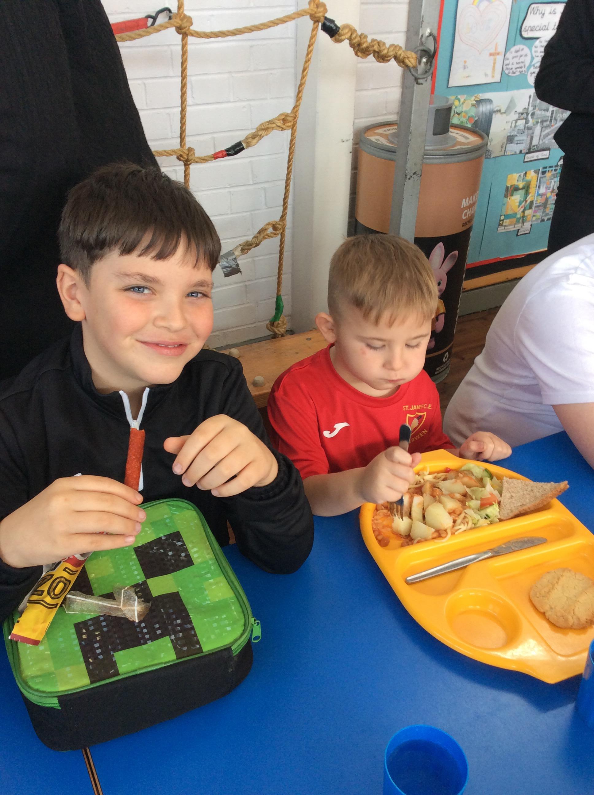 The Reception children enjoyed chatting to their buddies as they ate their lunch.
