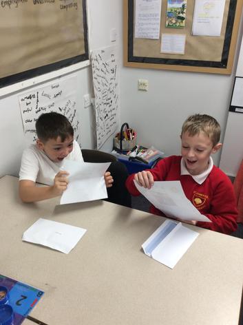 Year 5 were very excited to open up their letters from their Reception Buddies!