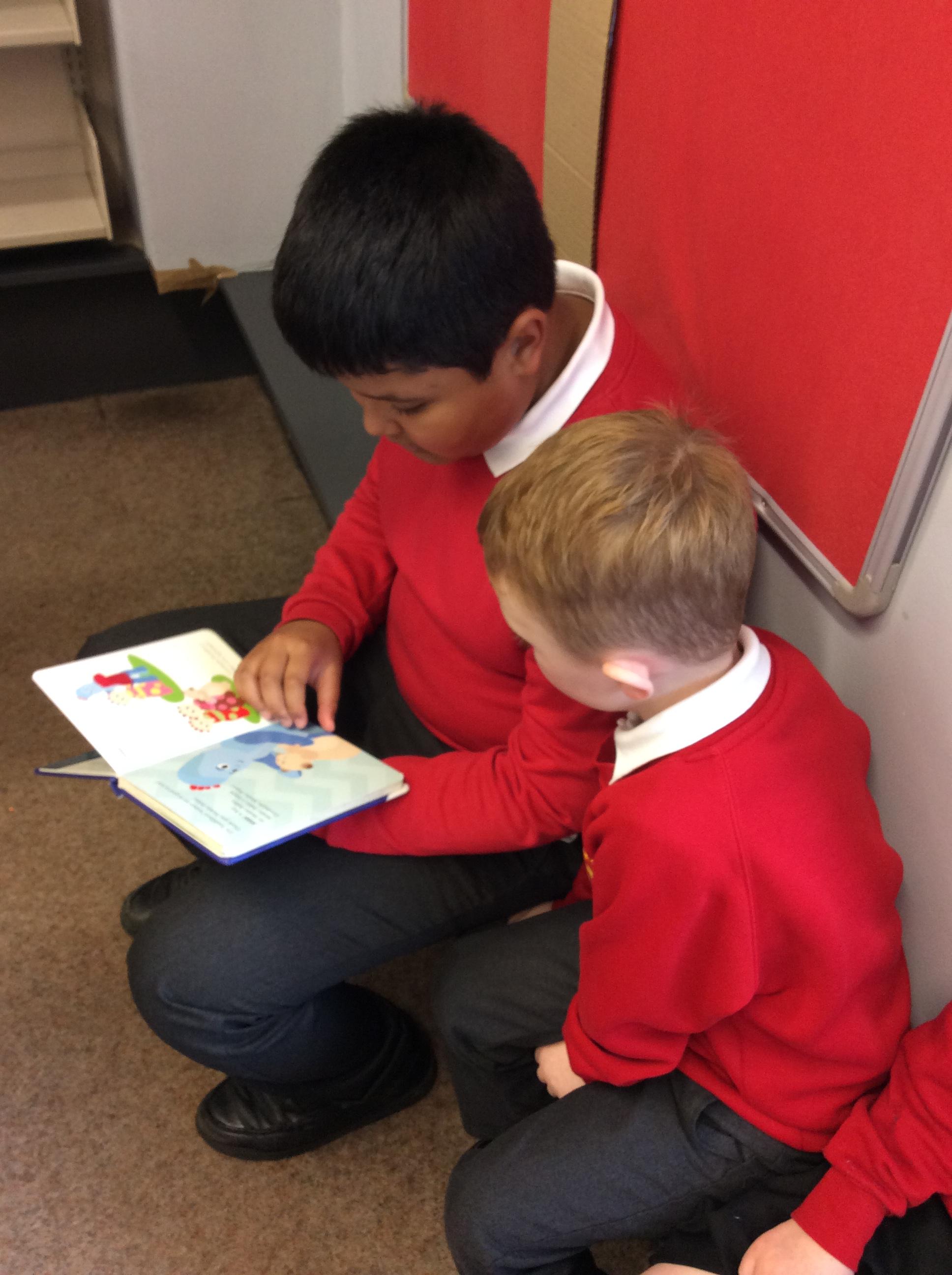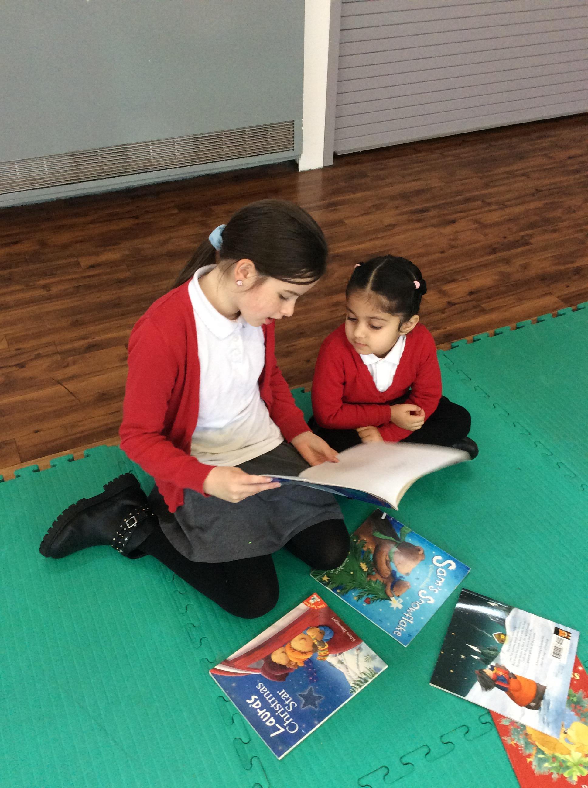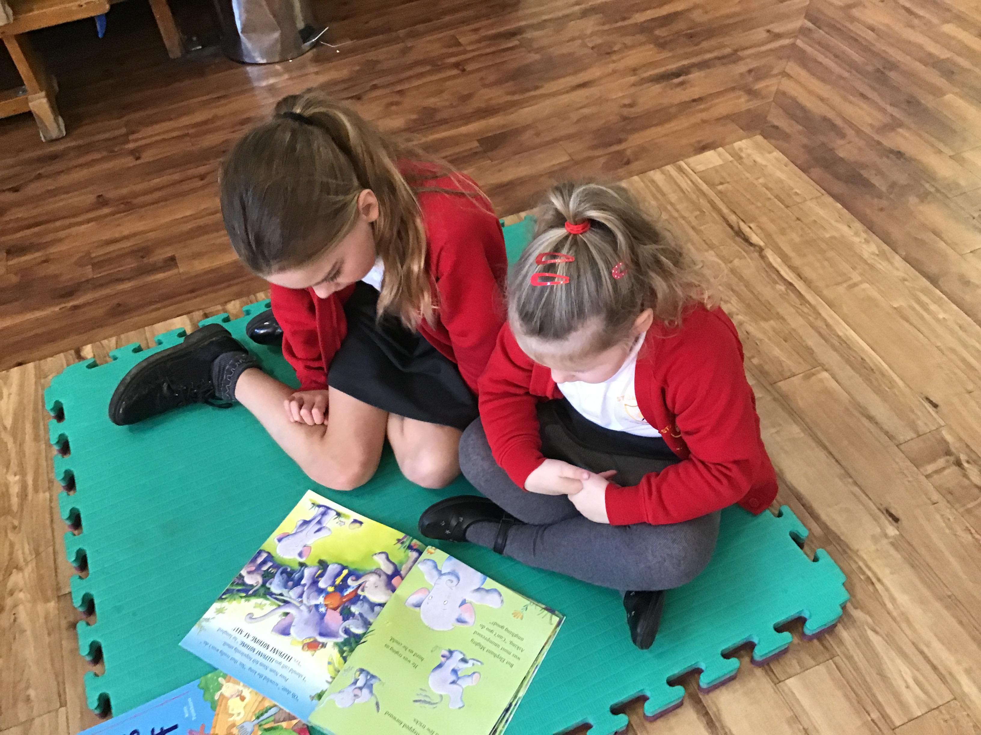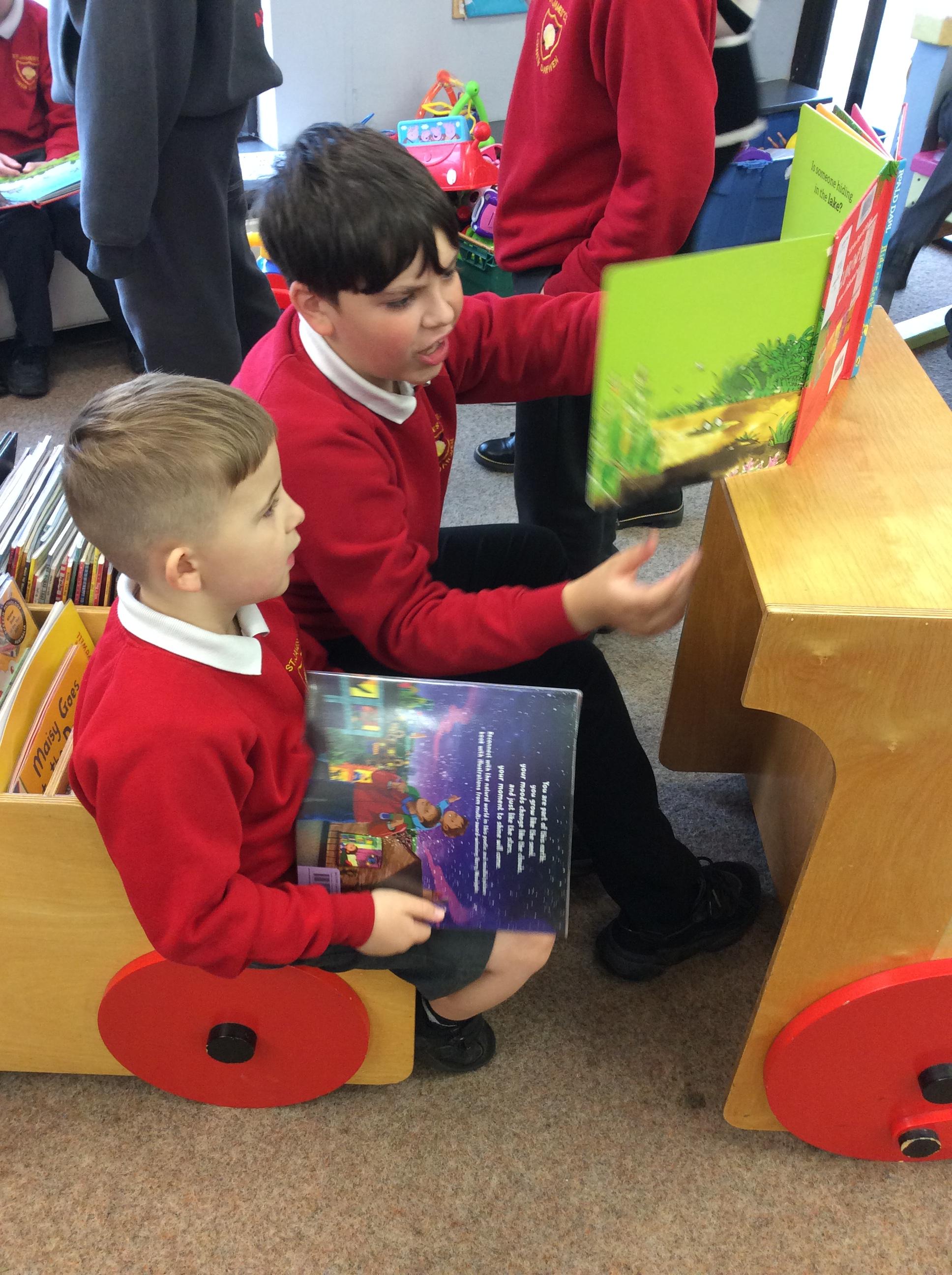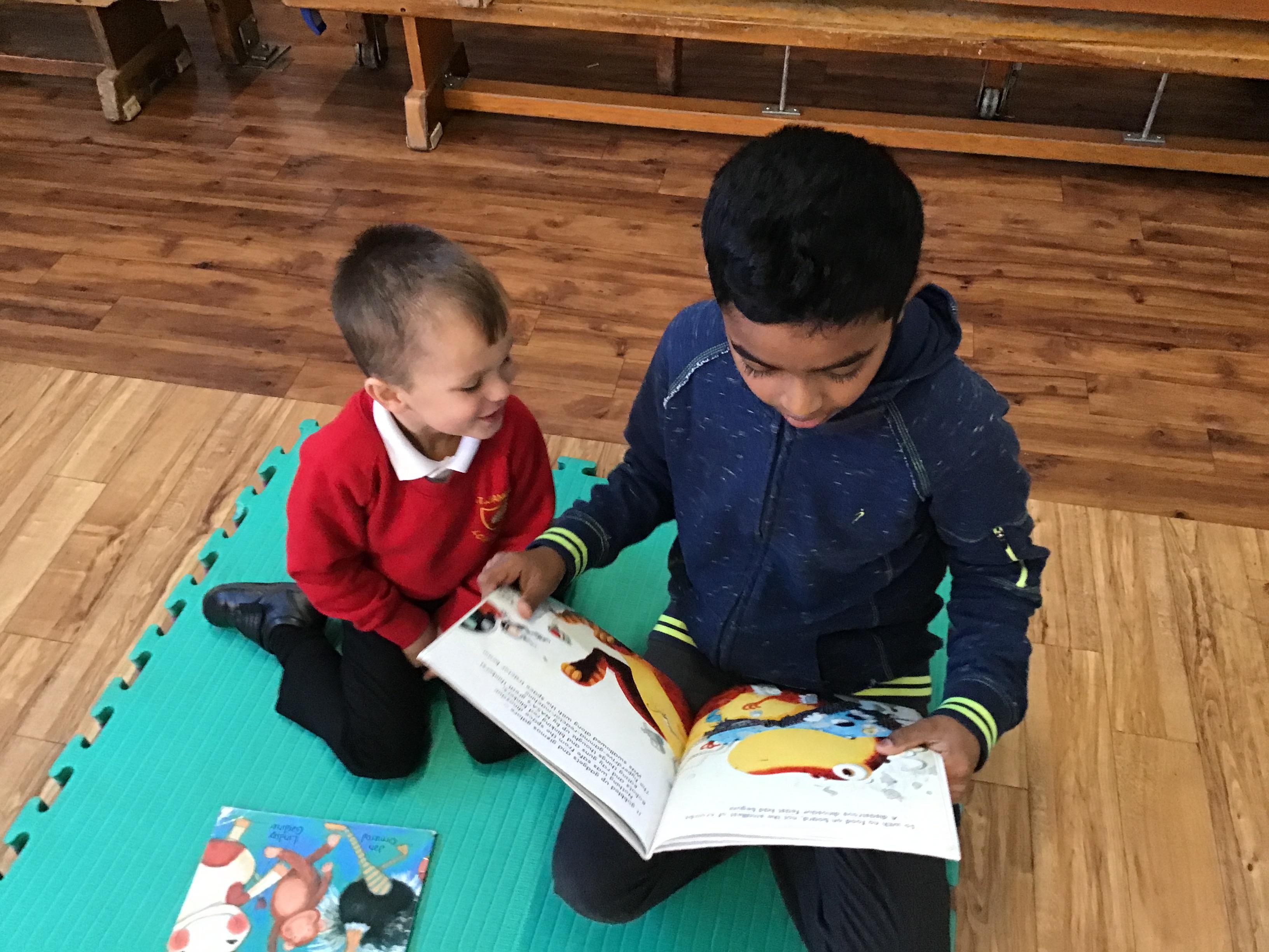 The Year 5 children read their books to the Reception children.