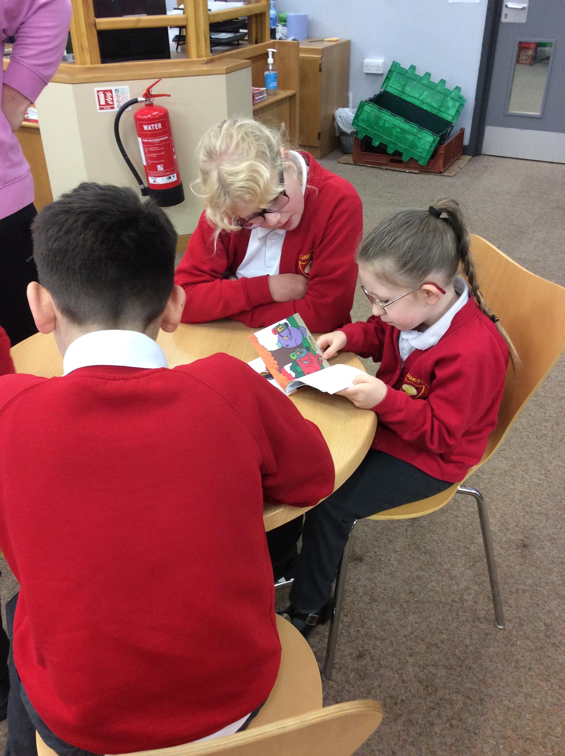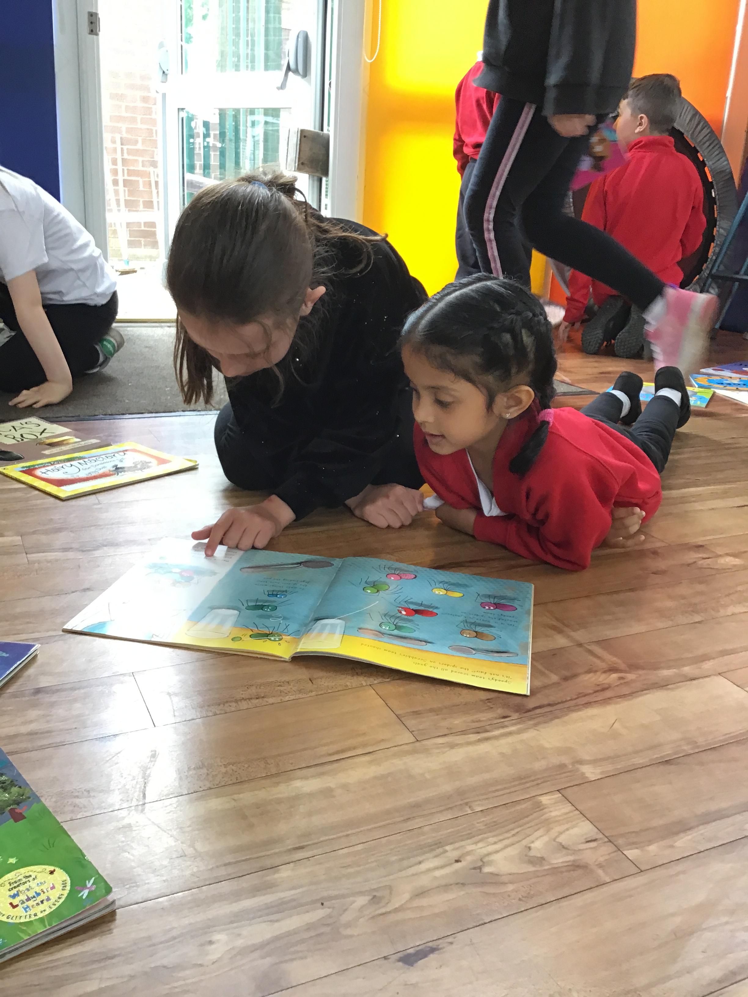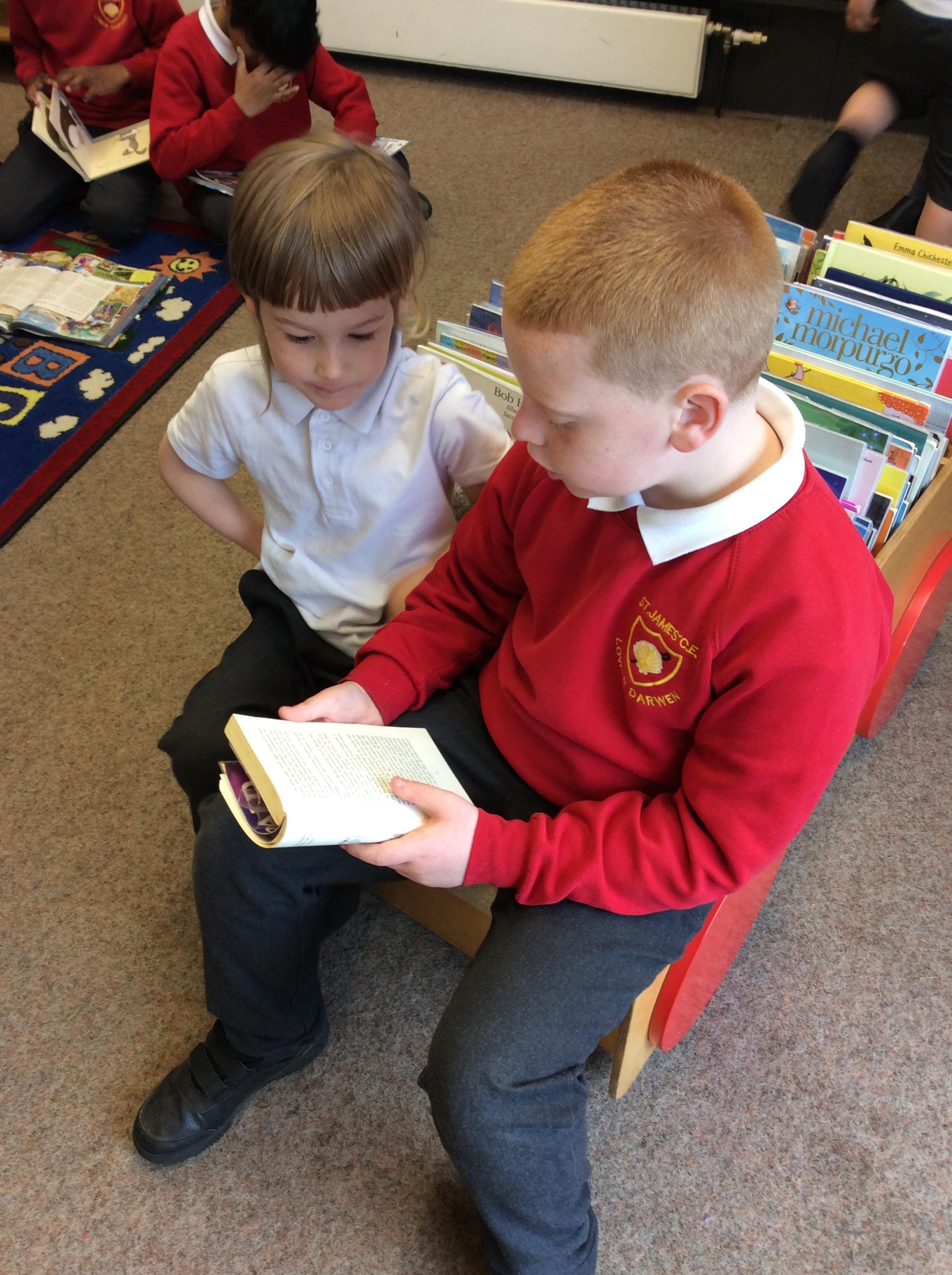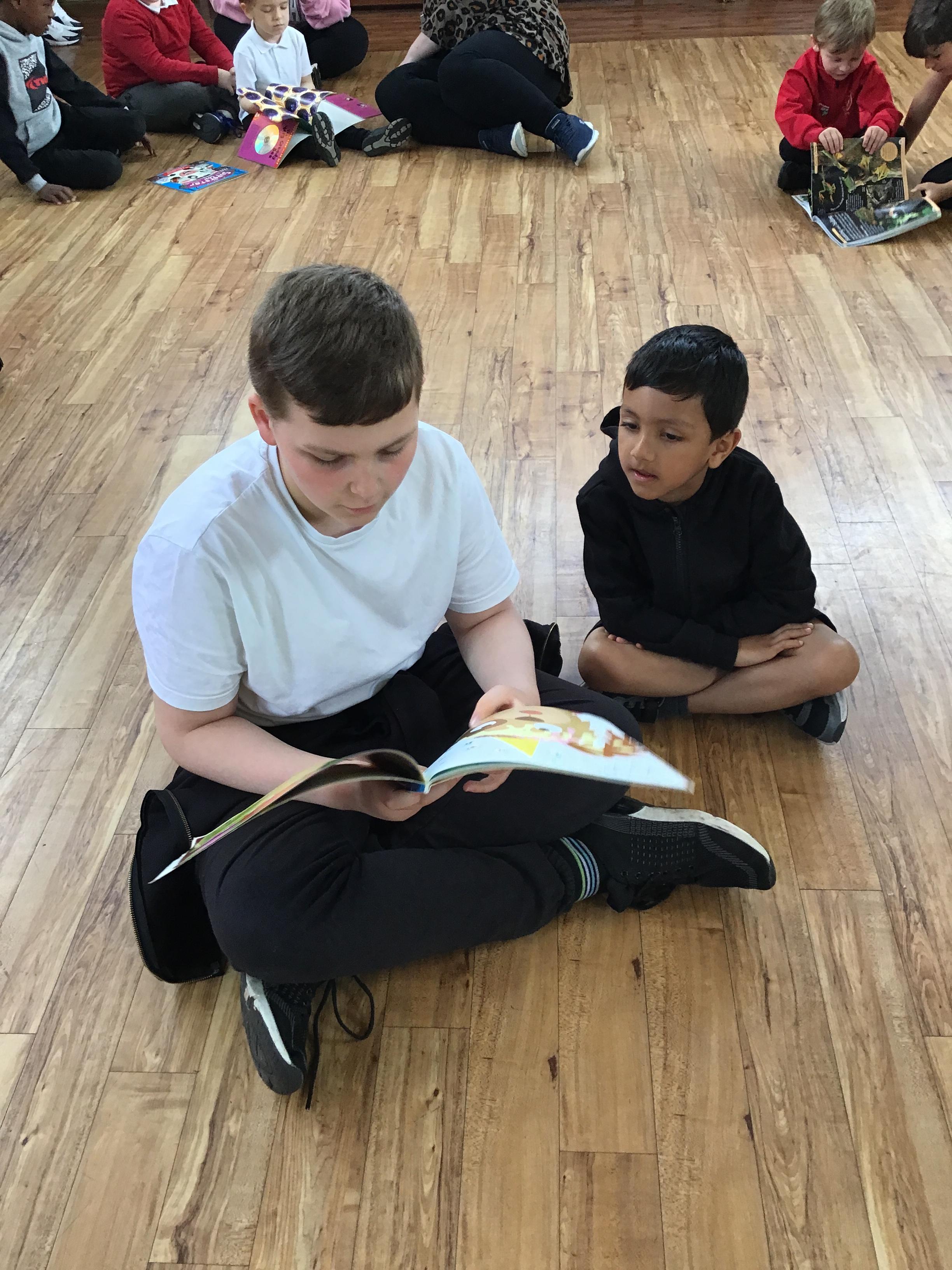 The Year 5 children read their books to the Reception children.