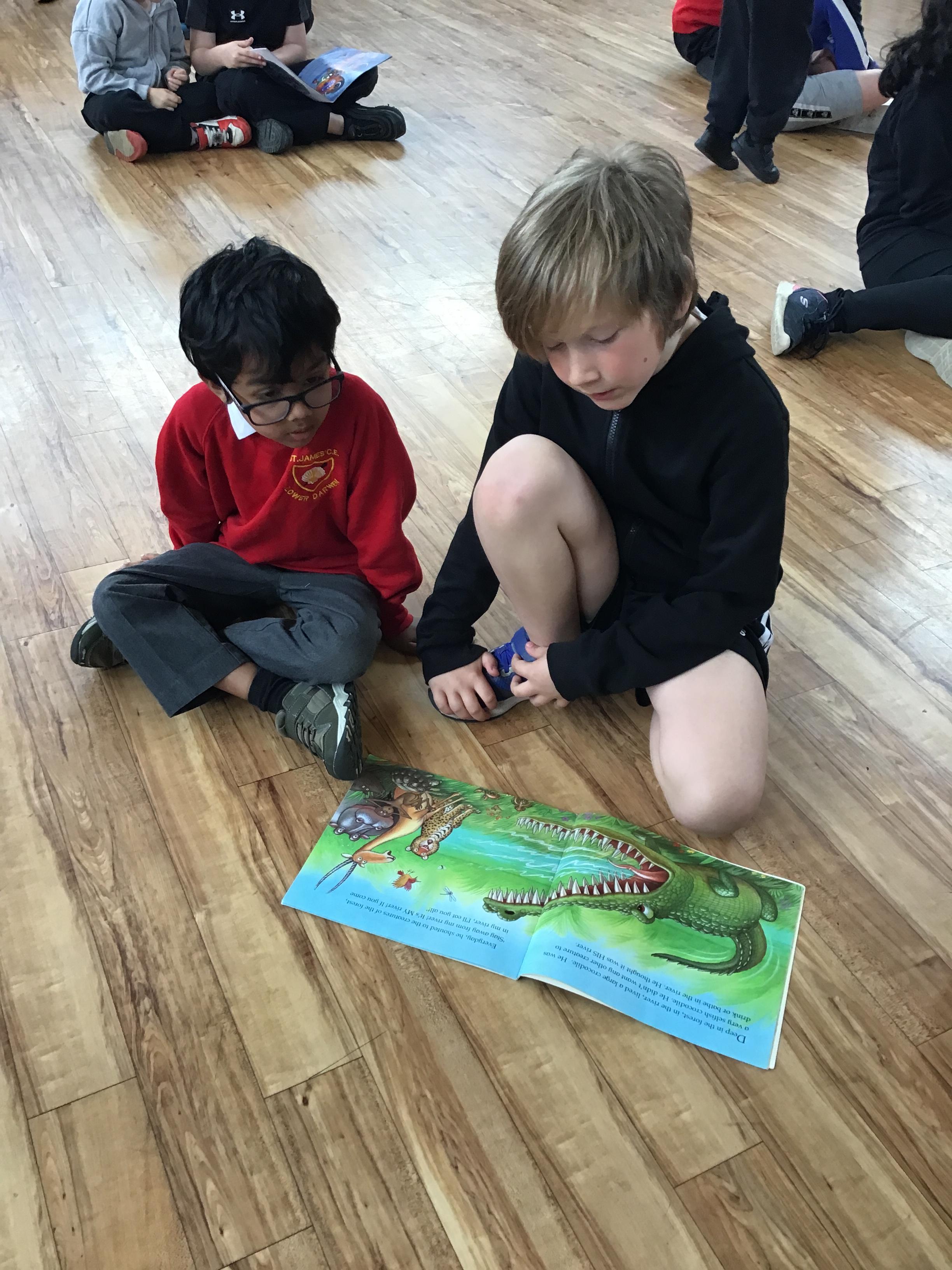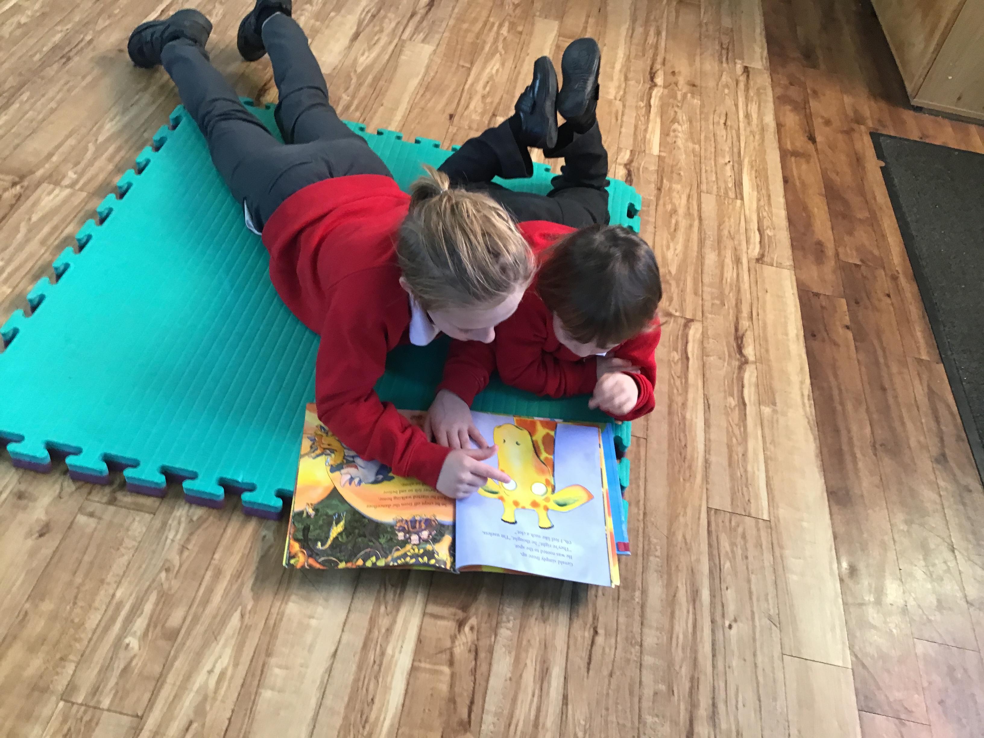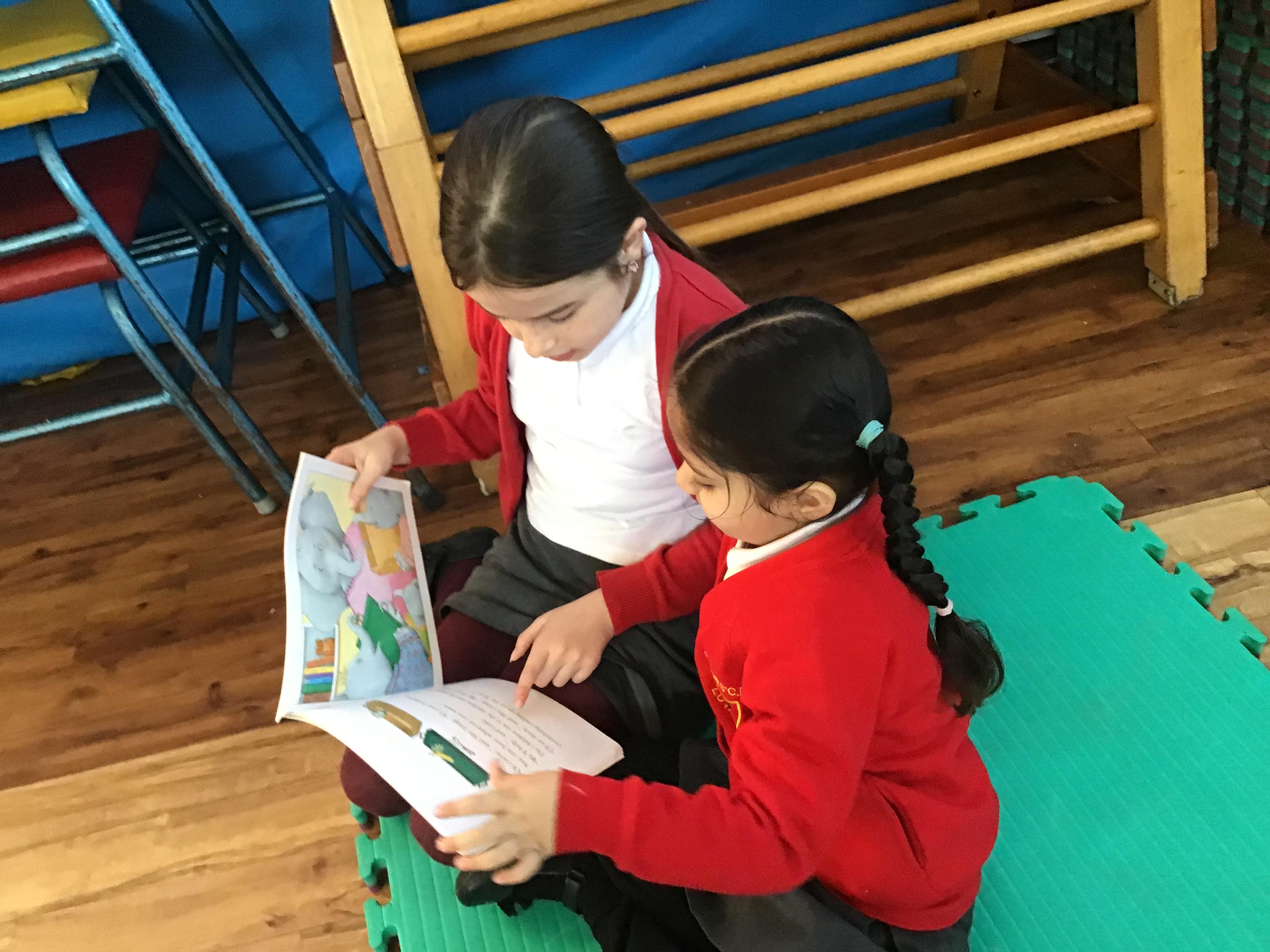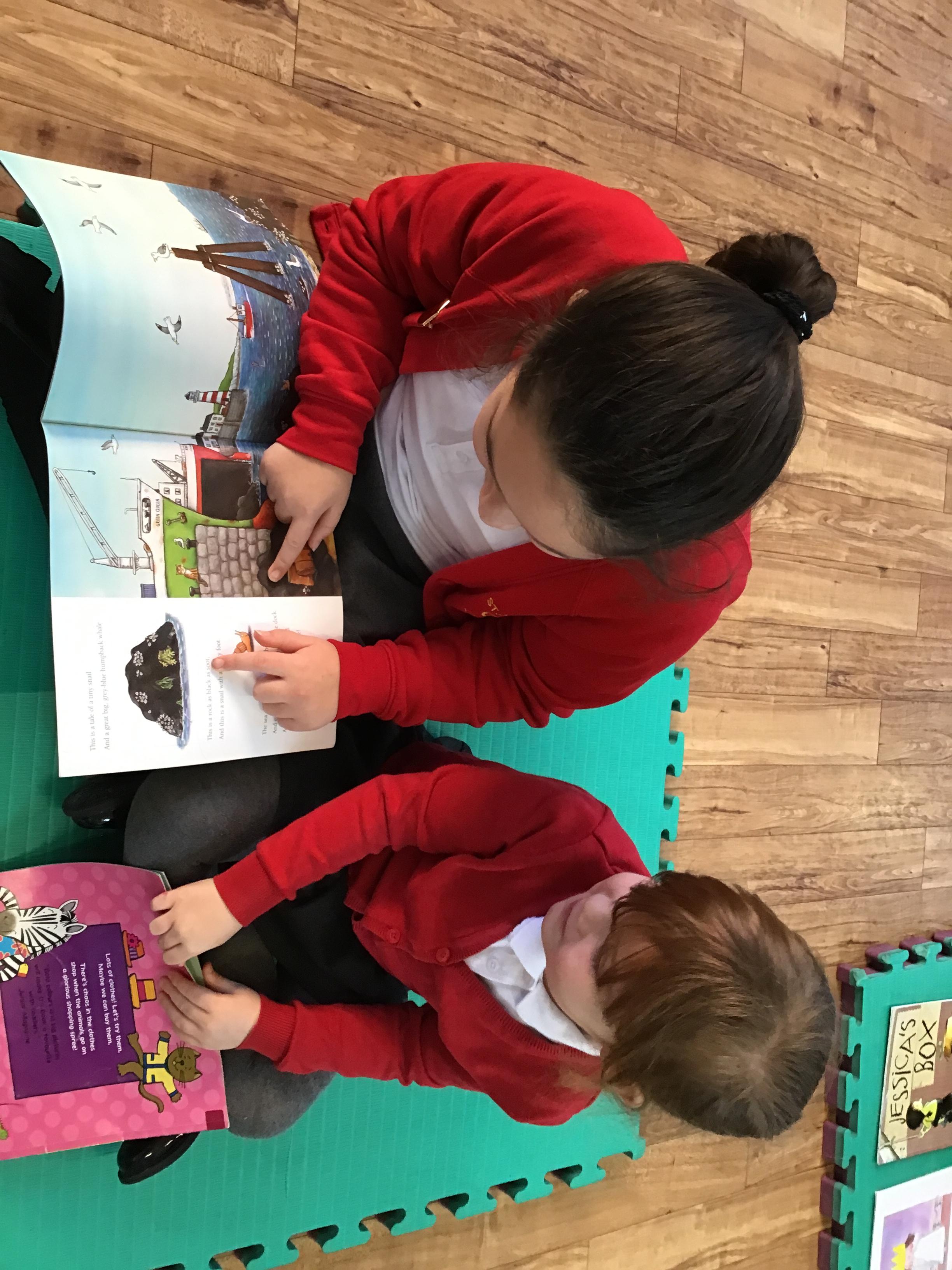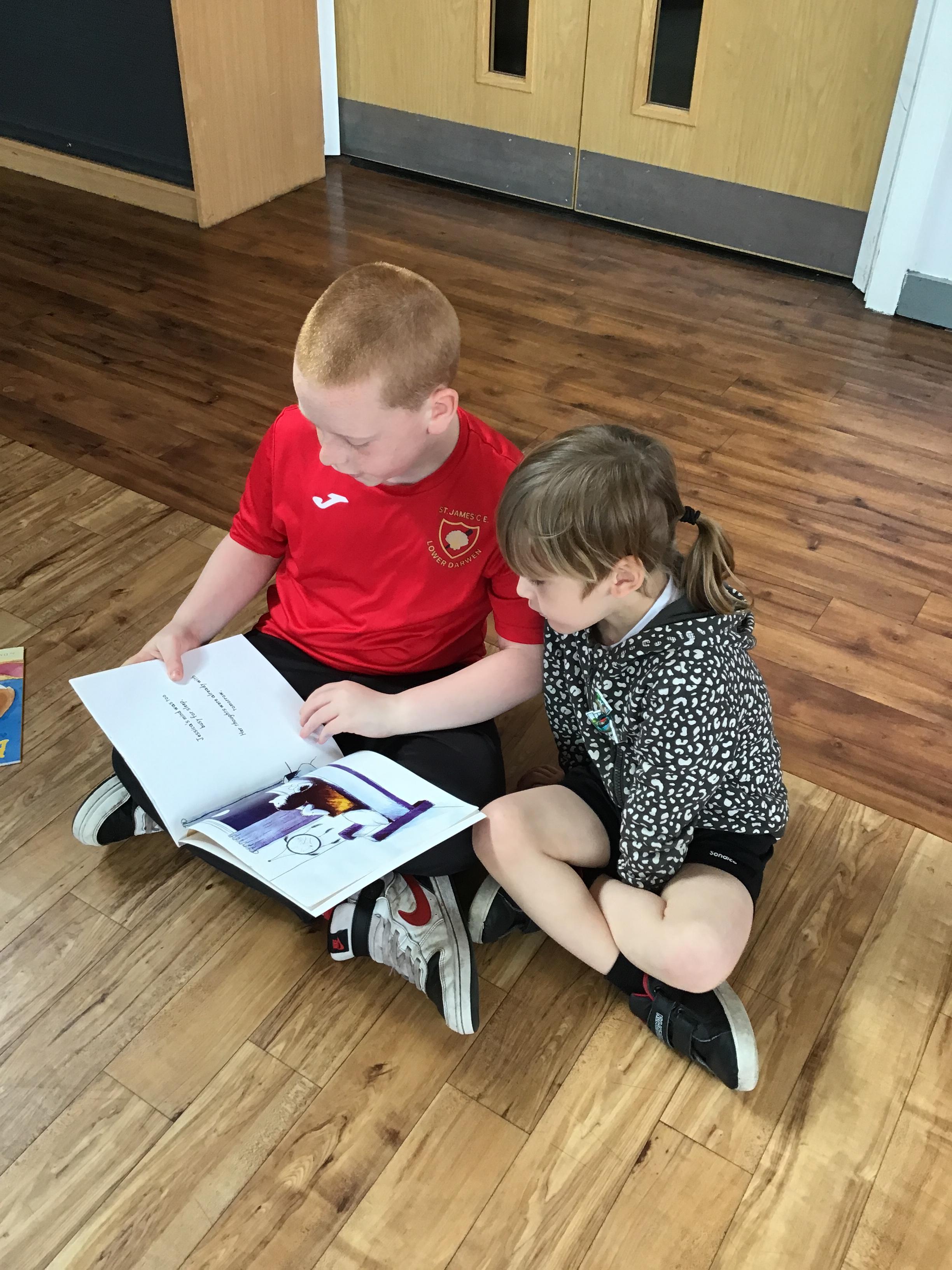 The Year 5 children read their books to the Reception children.