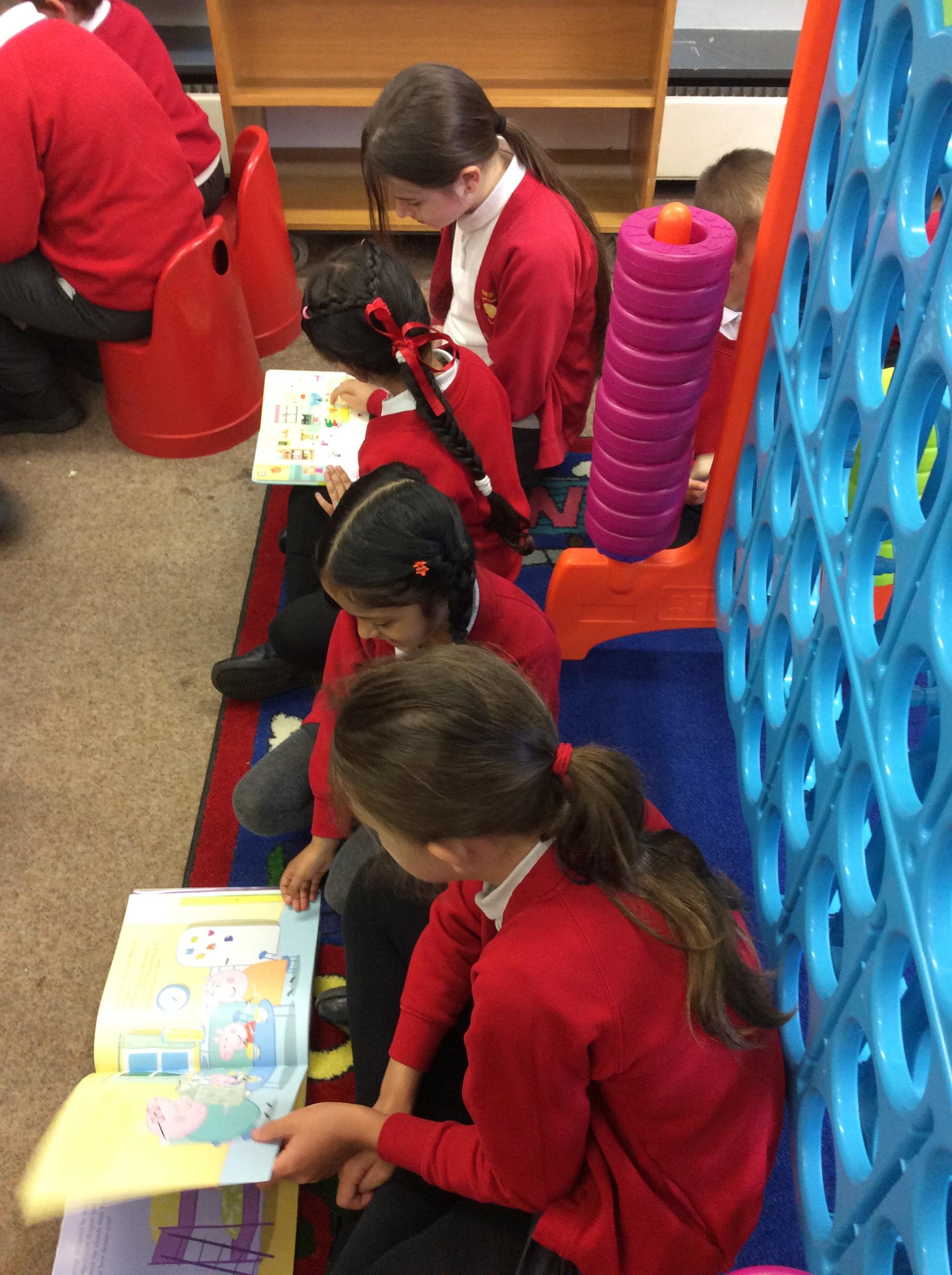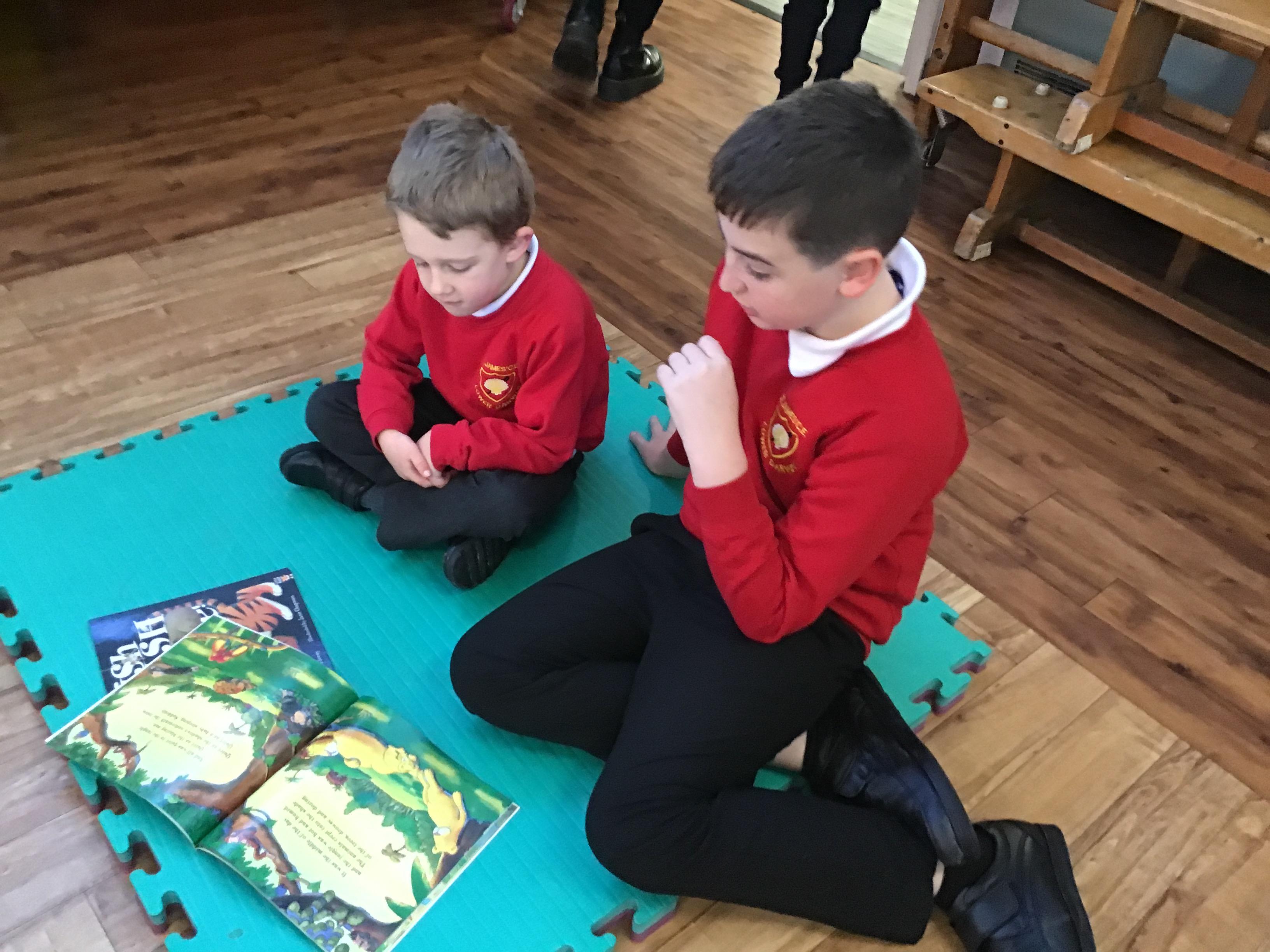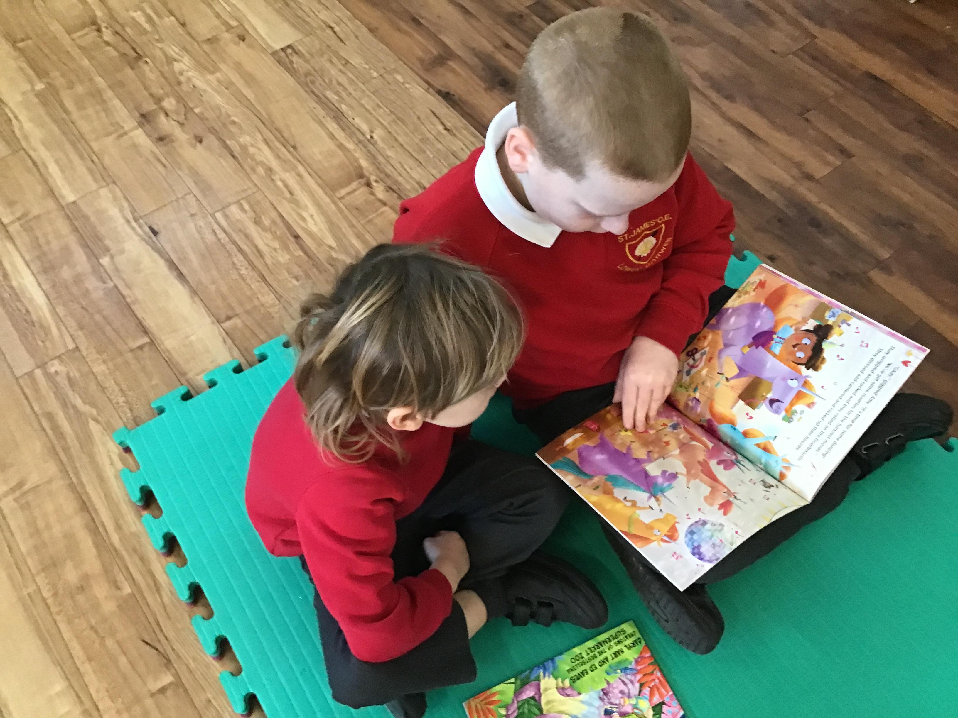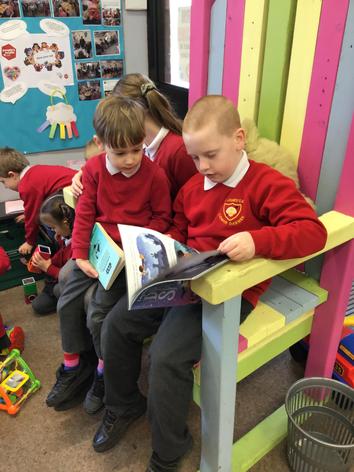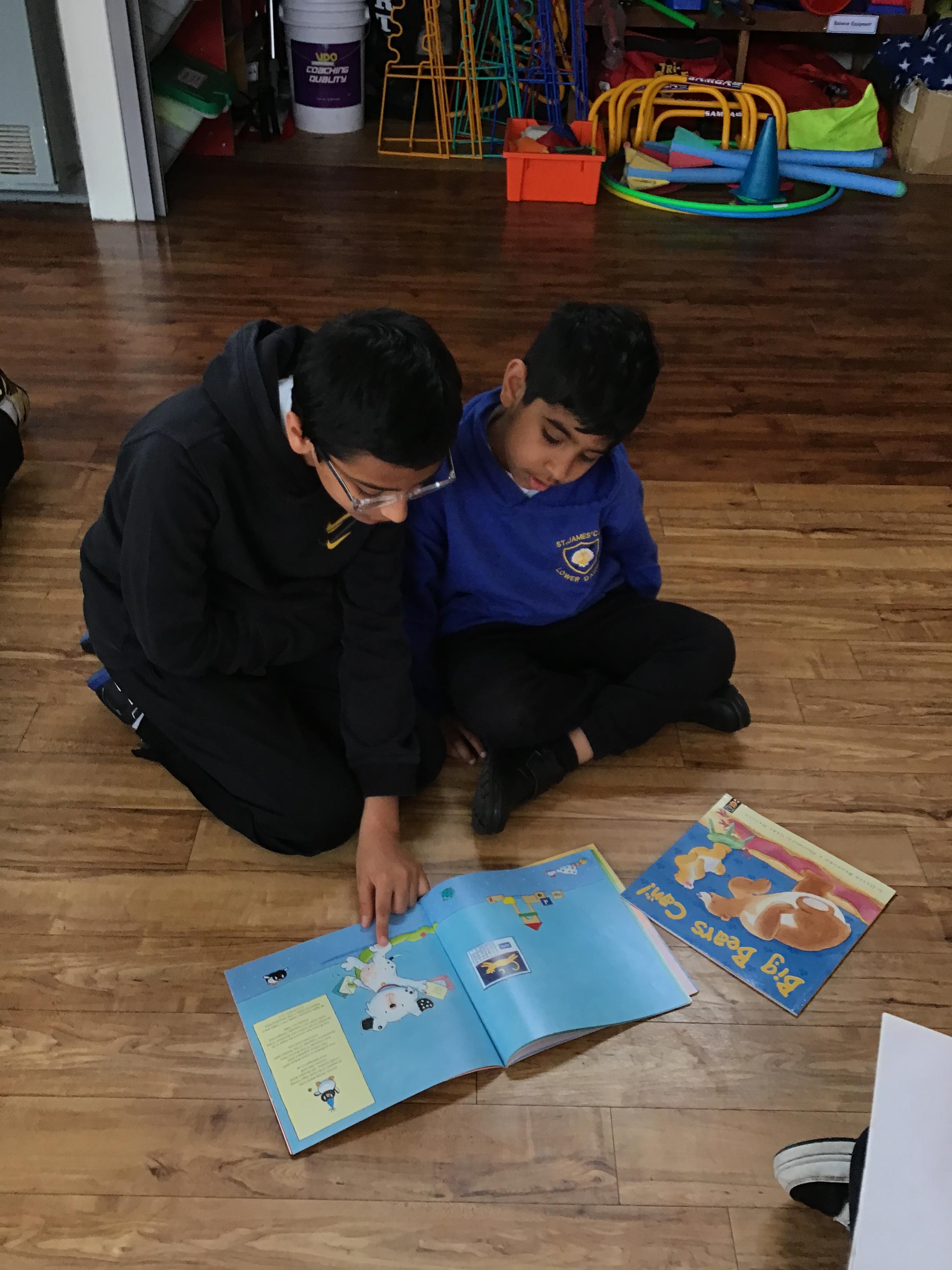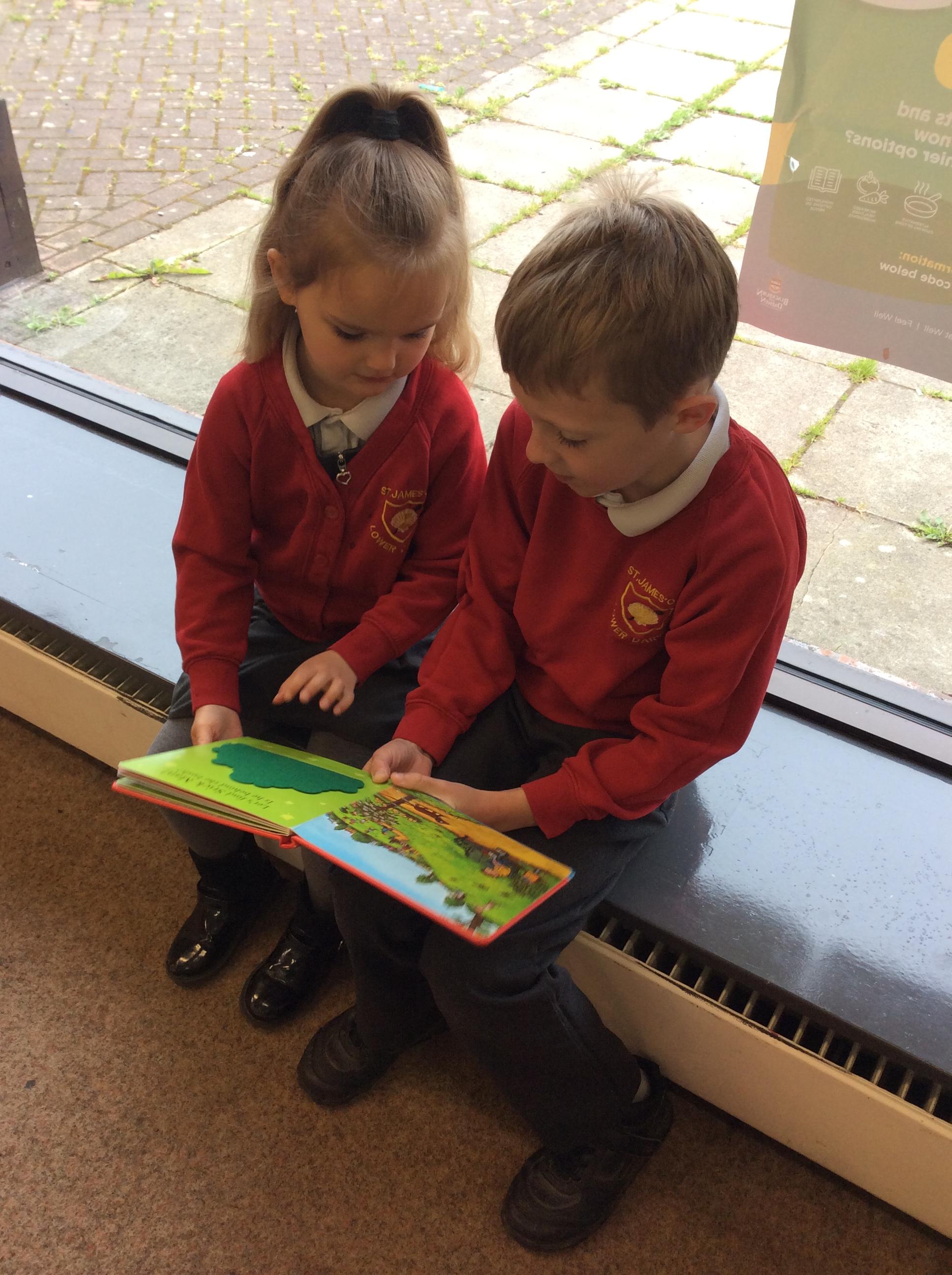 The Year 5 children read their books to the Reception children.