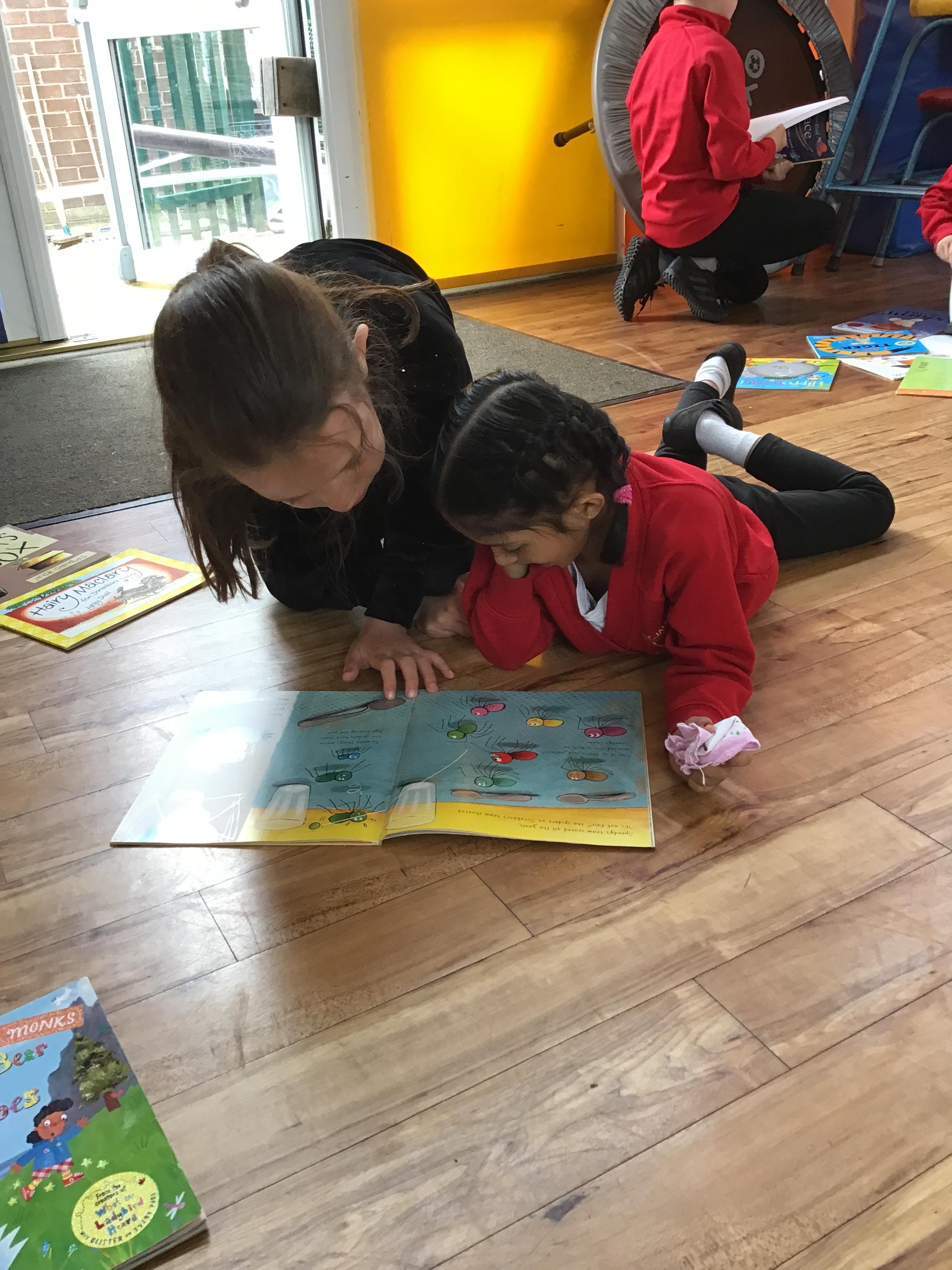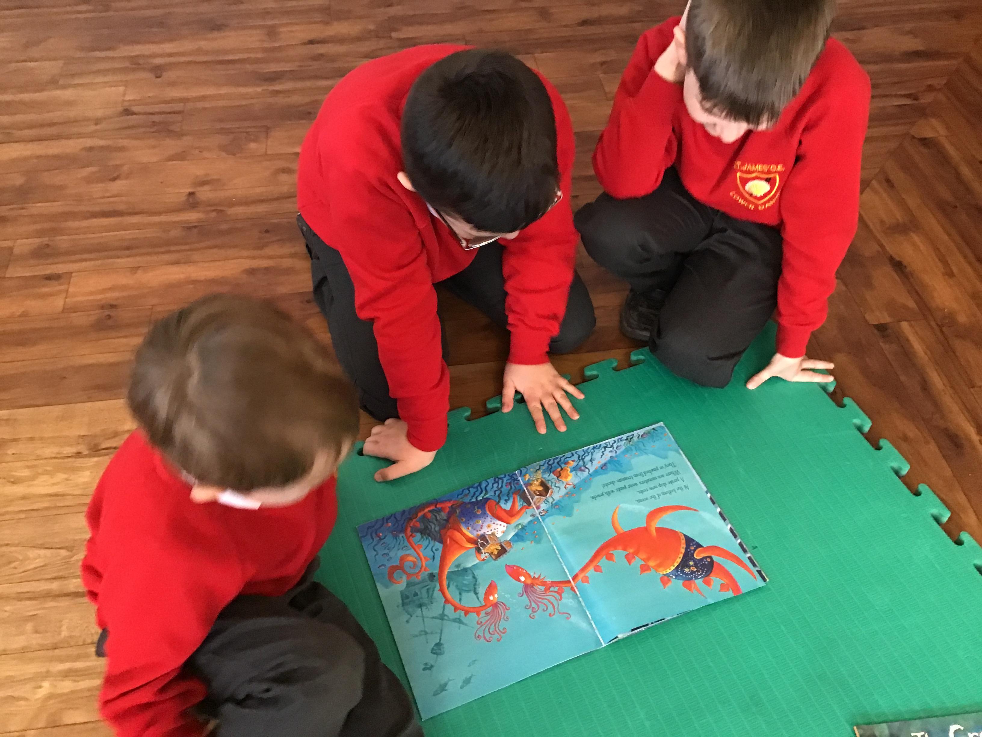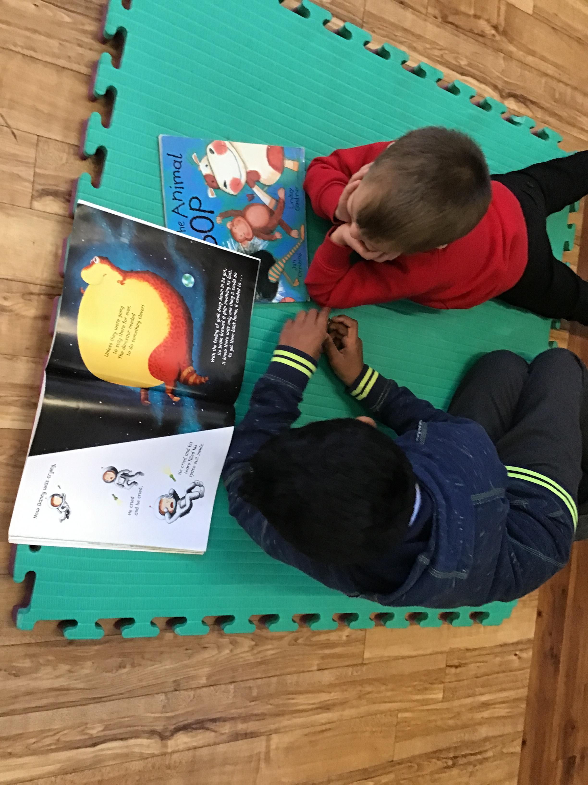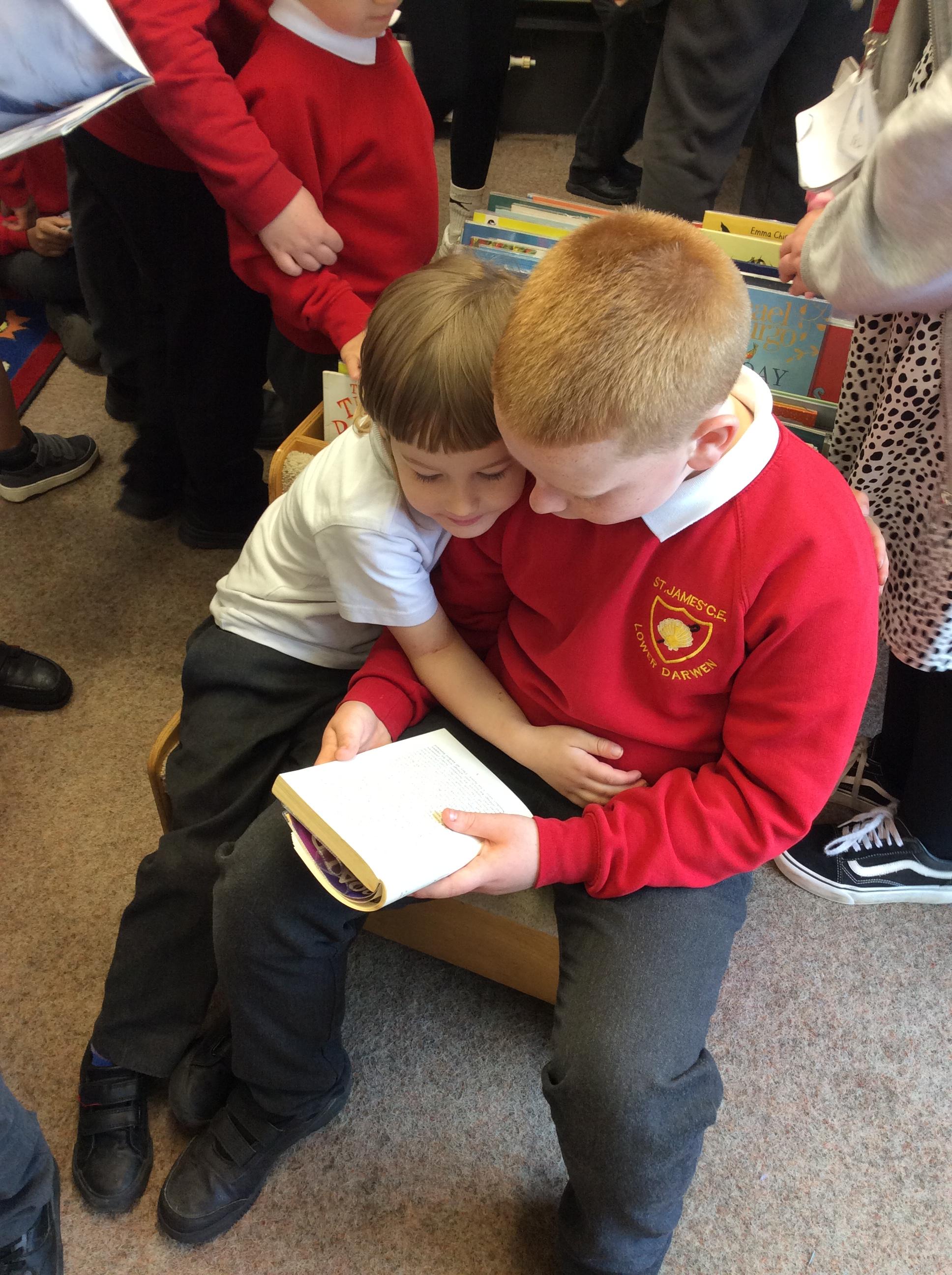 The Year 5 children read their books to the Reception children.