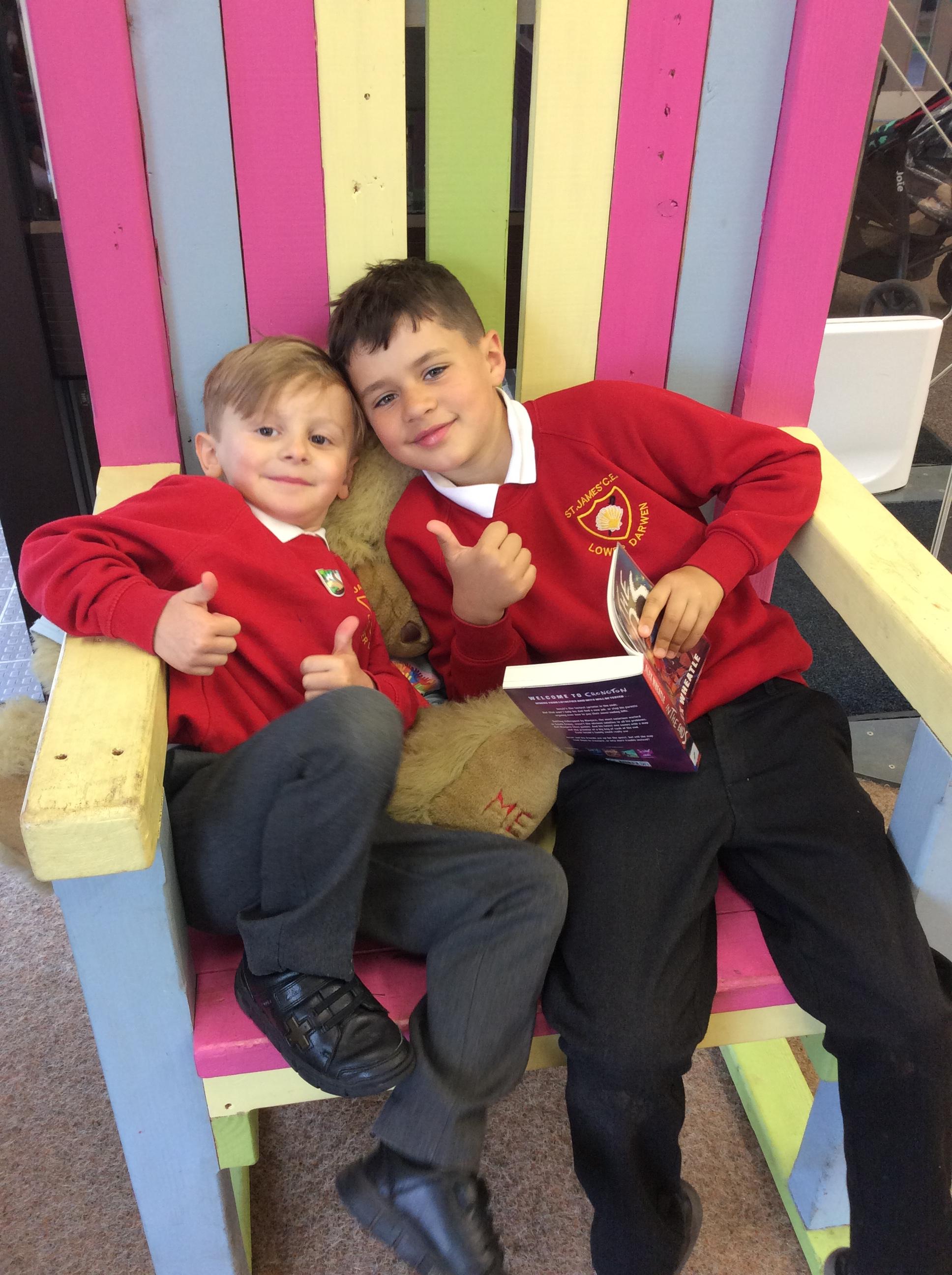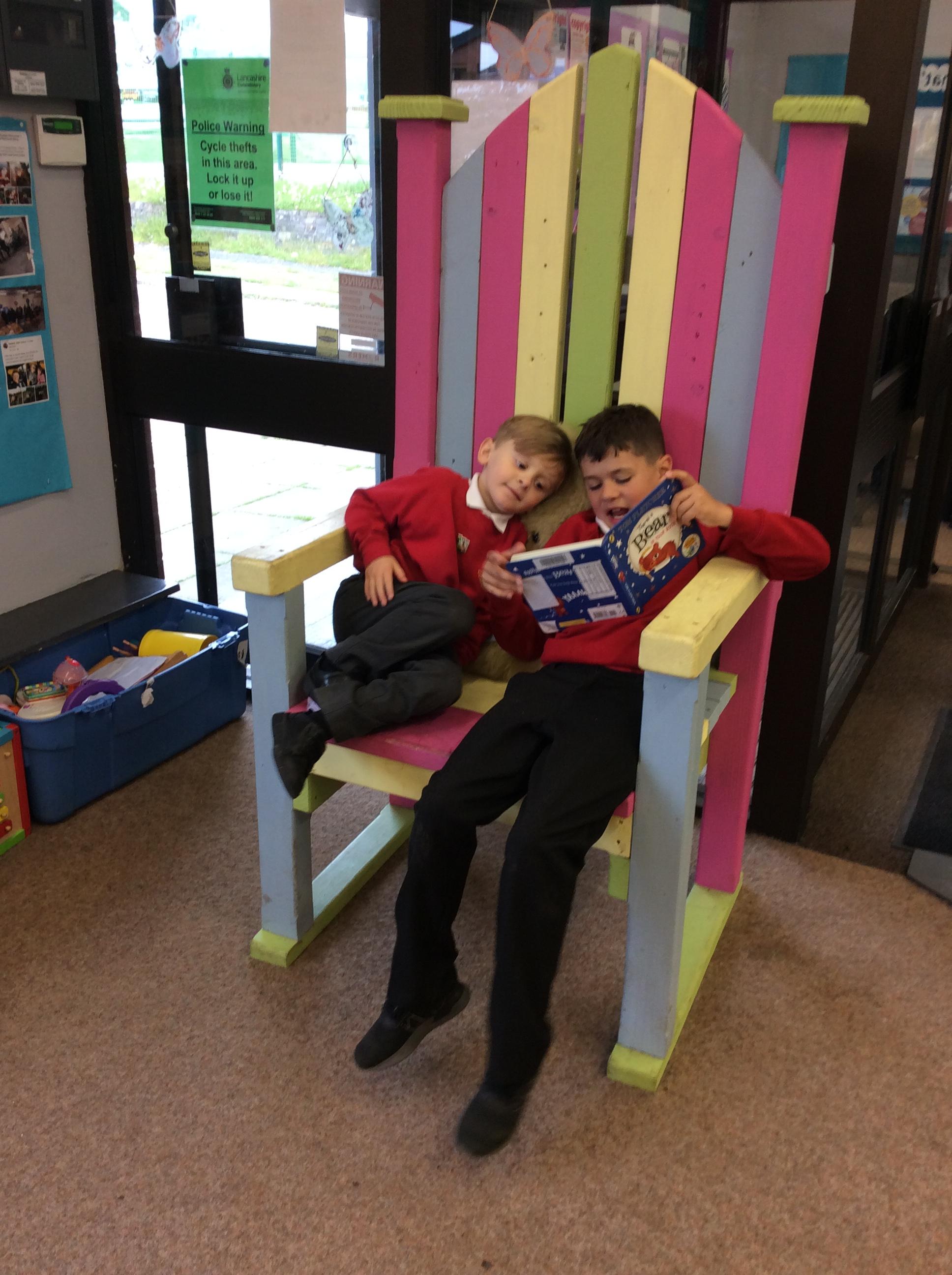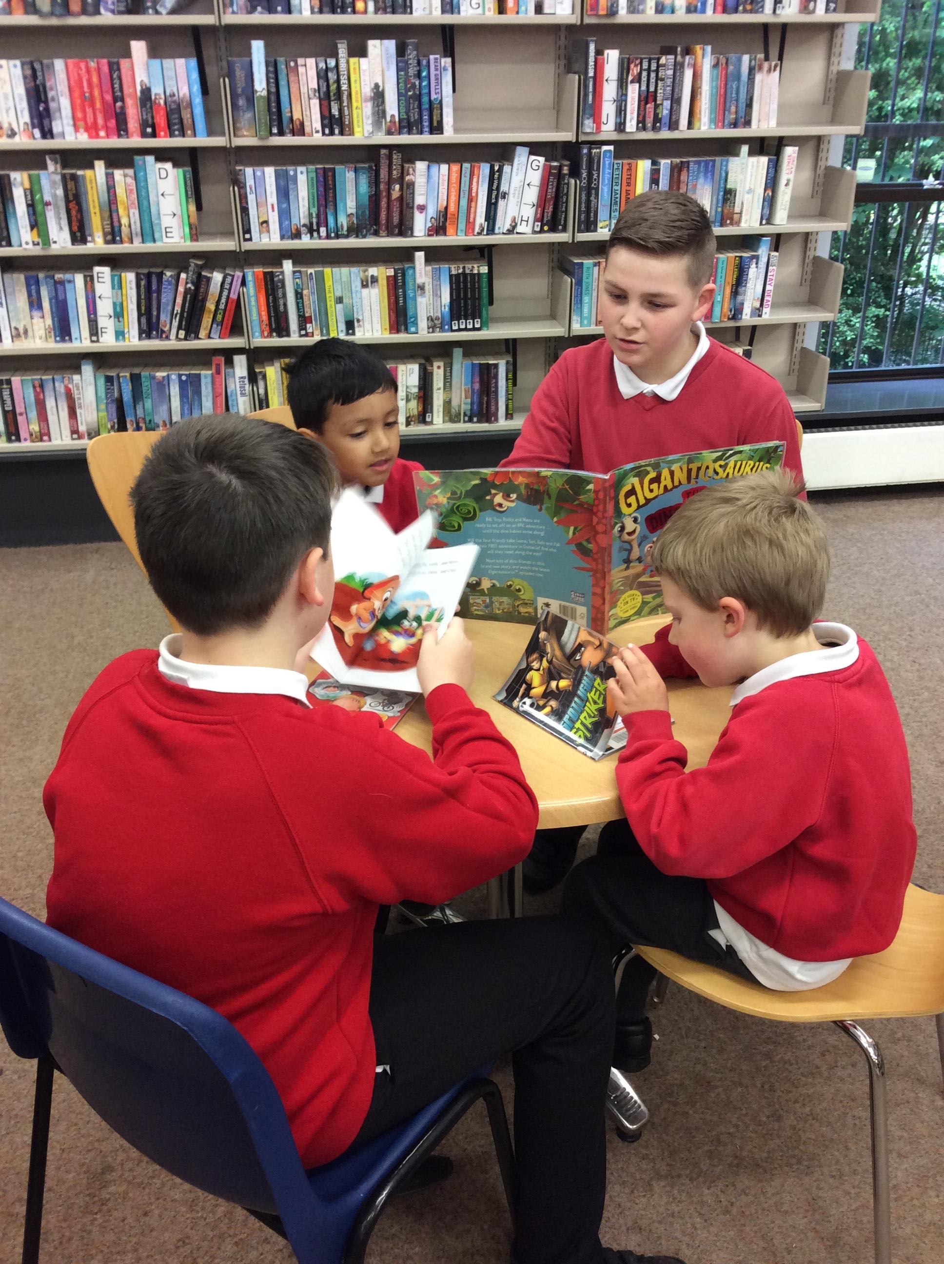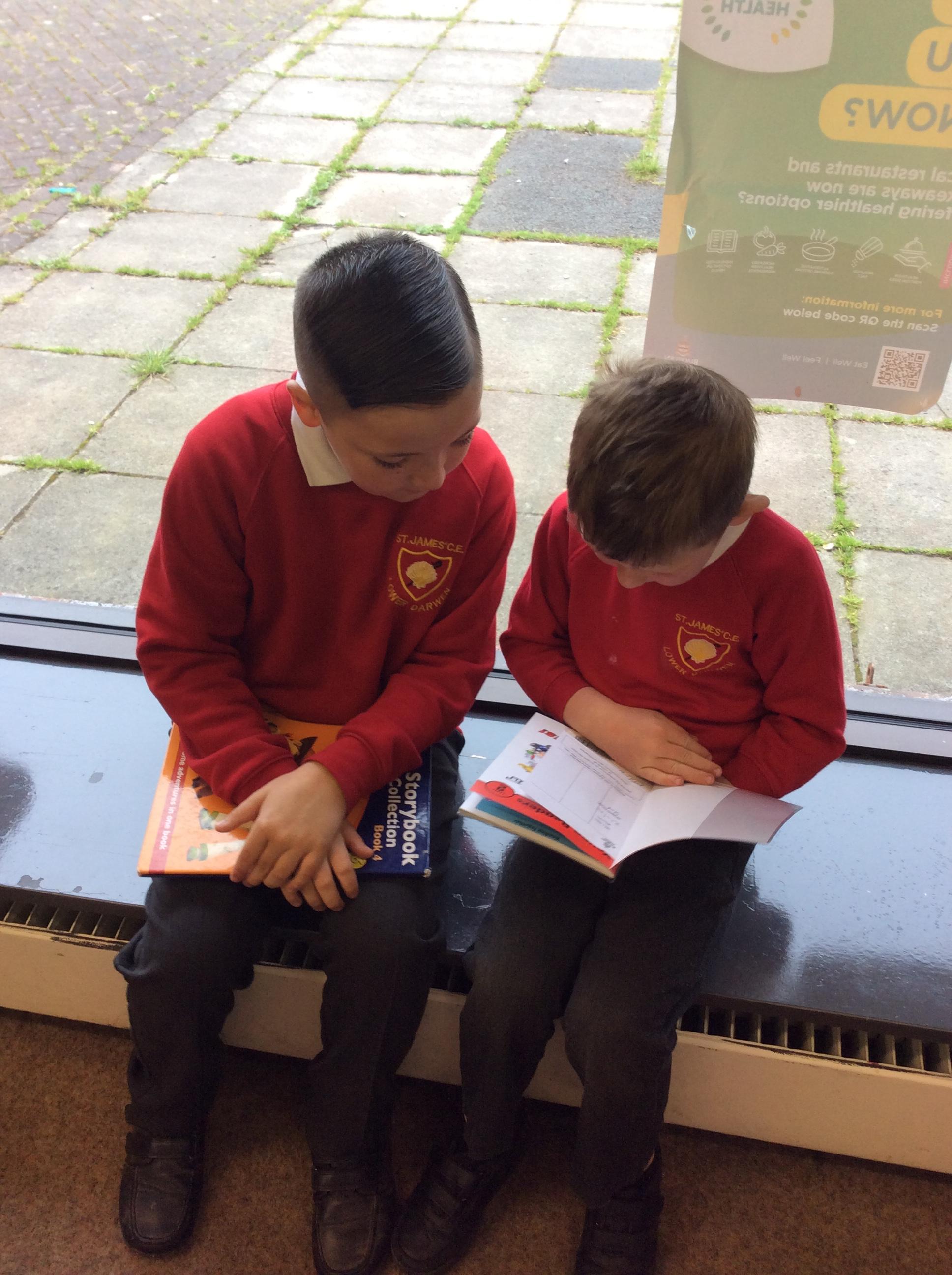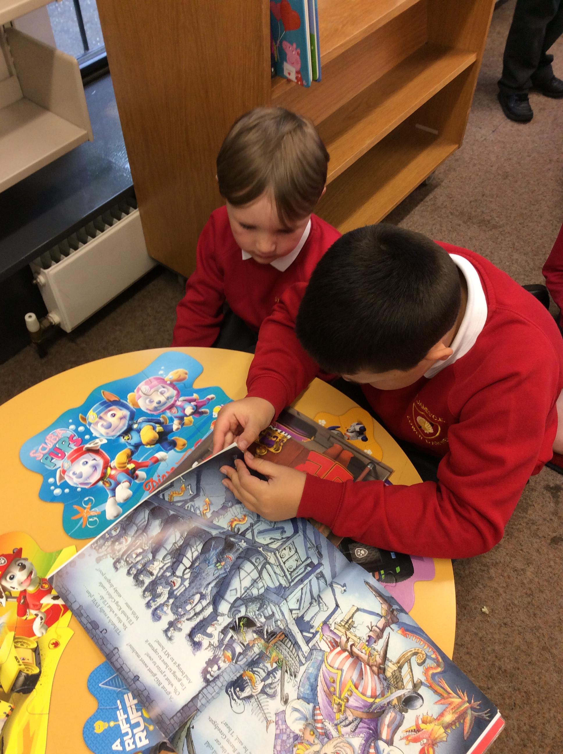 The Year 5 children read their books to the Reception children.