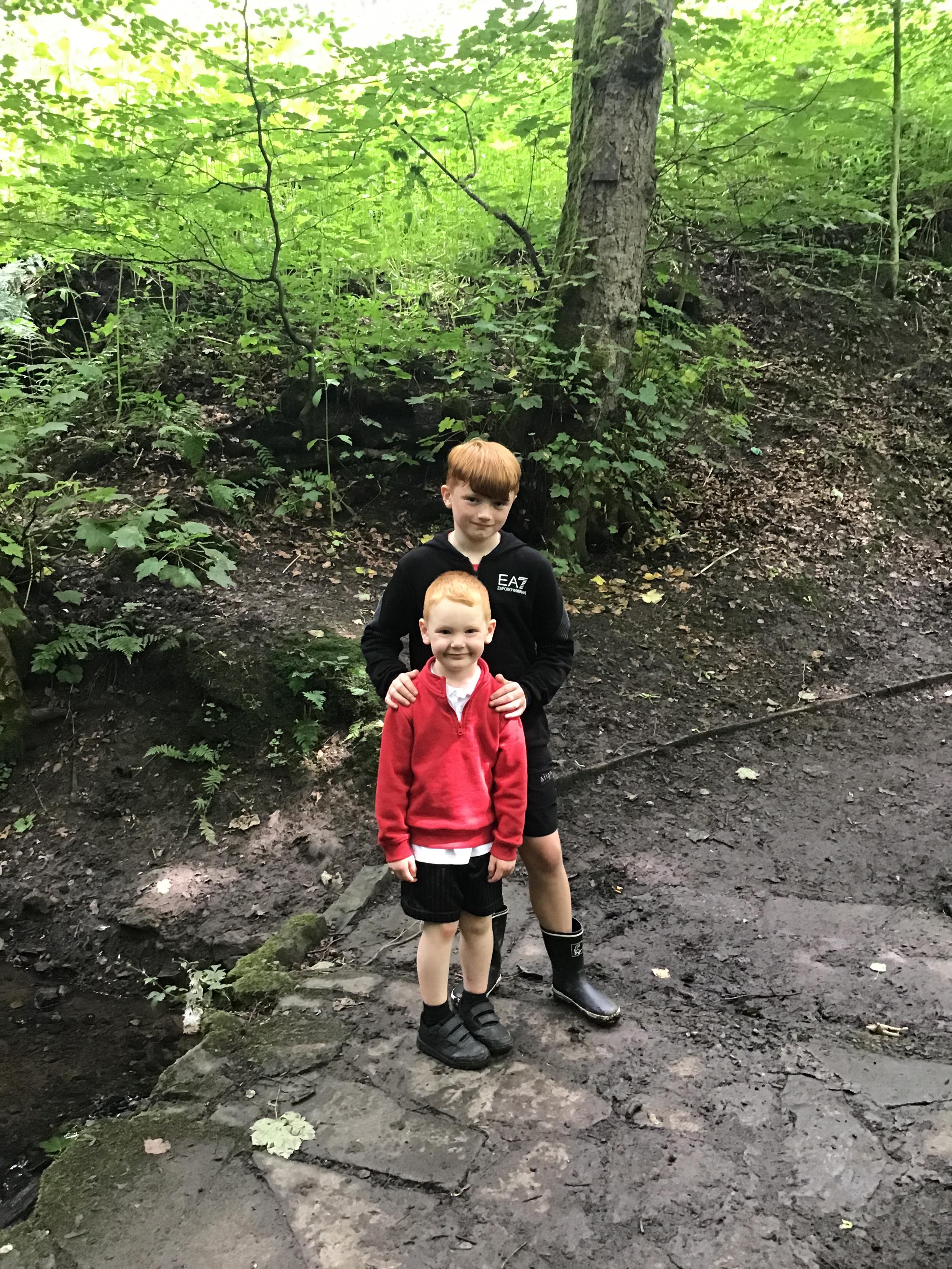 We went on a walk in the woods with our buddies!
