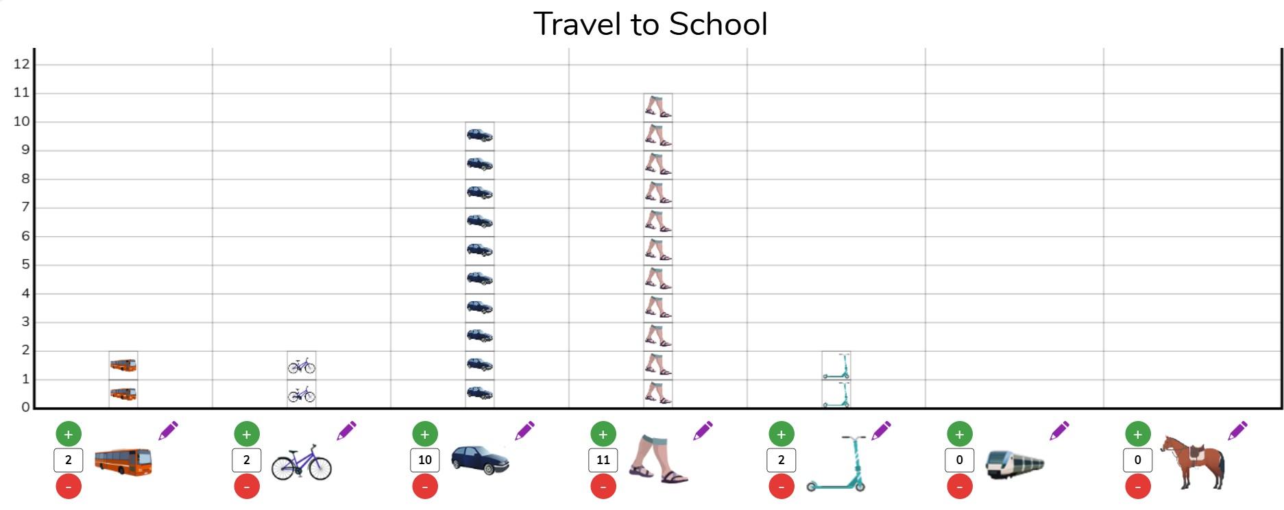 During our Data Explorers unit, we created a class pictogram showing the different ways children travel to school. The children then inputted the class data onto a pictogram using Purple Mash, developing their understanding of data handling.