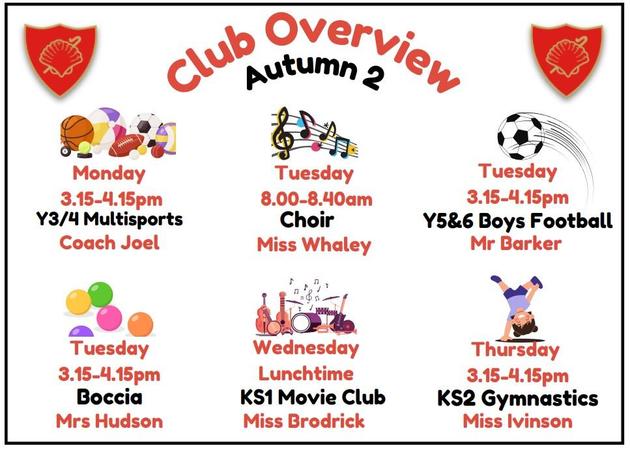 Please note we aim to provide a wide variety of opportunities for our children. Therefore, some clubs may only run at certain times of the year.