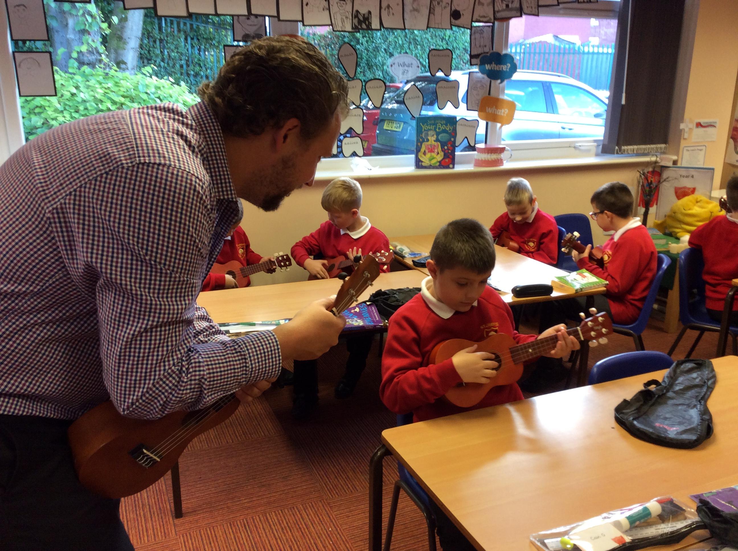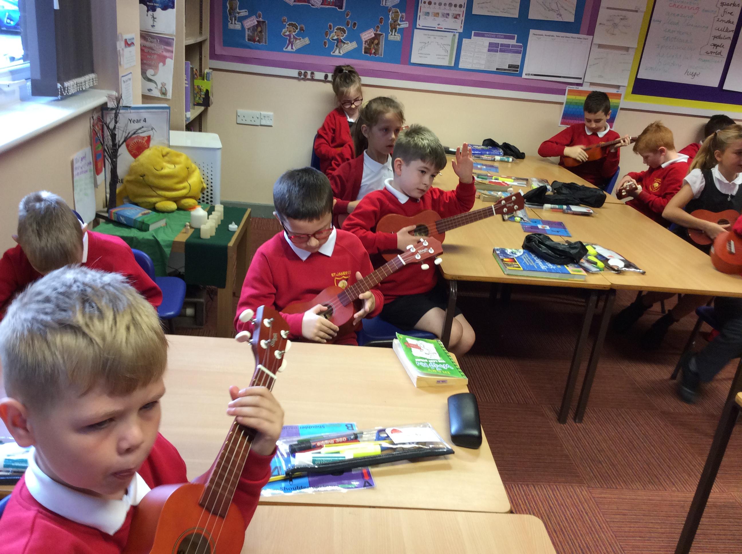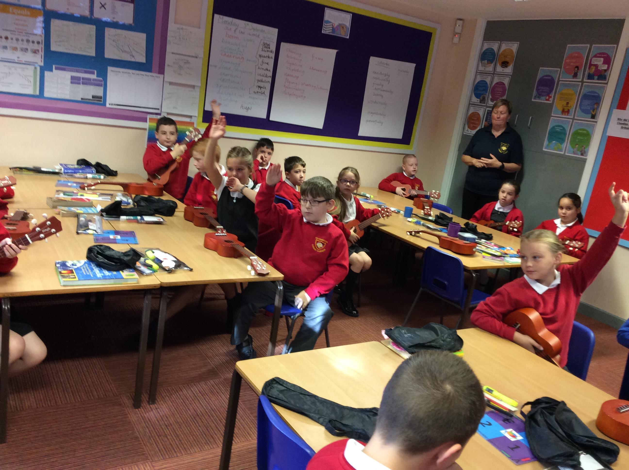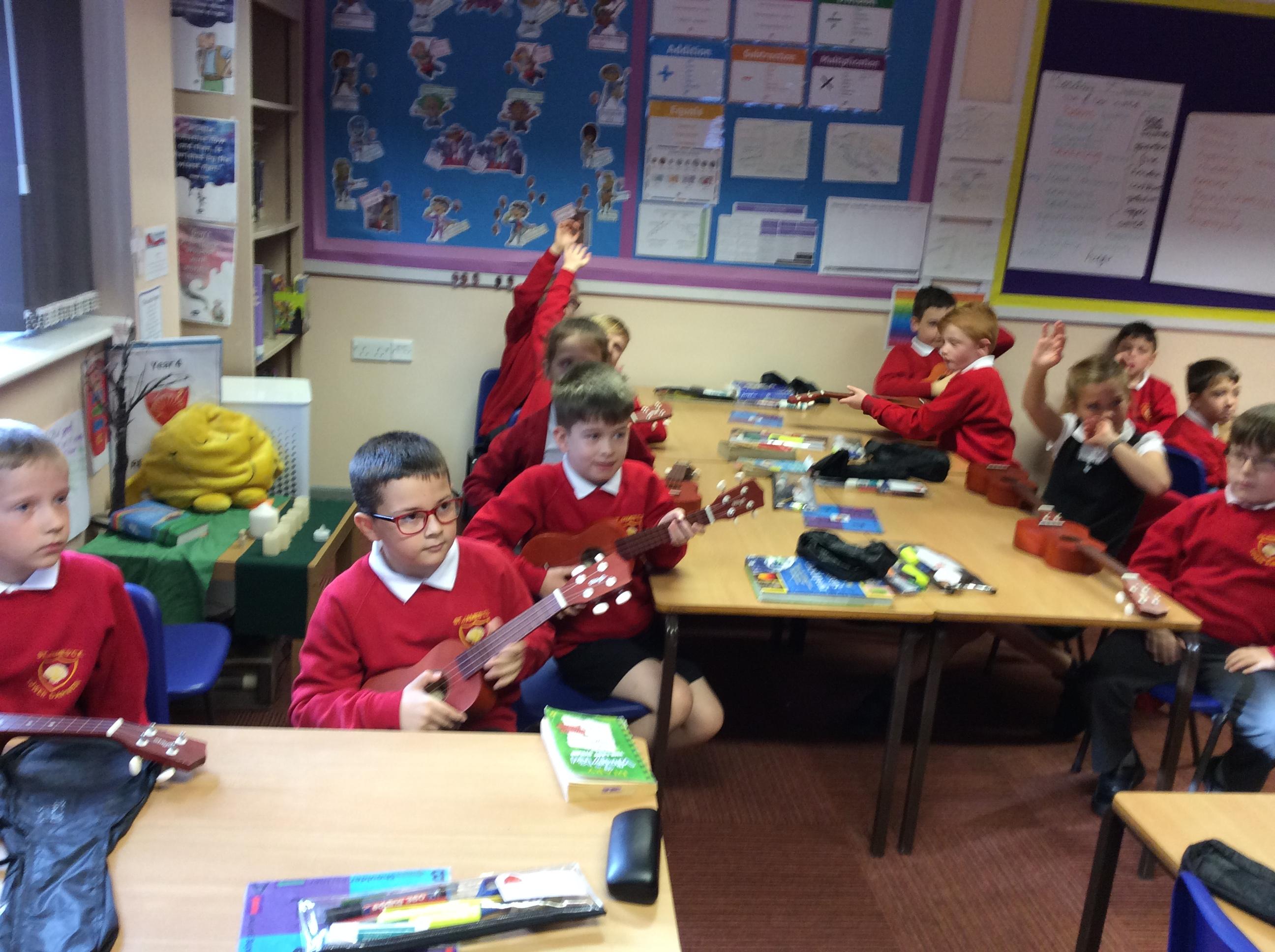 In previous years, Year 4 have had a trained and skilled musician from Bolton Music Service share their expertise with us and works closely with us each week to fine tune our musical knowledge and instrumental skills. Year 4 really enjoyed their ukulele and singing lessons.