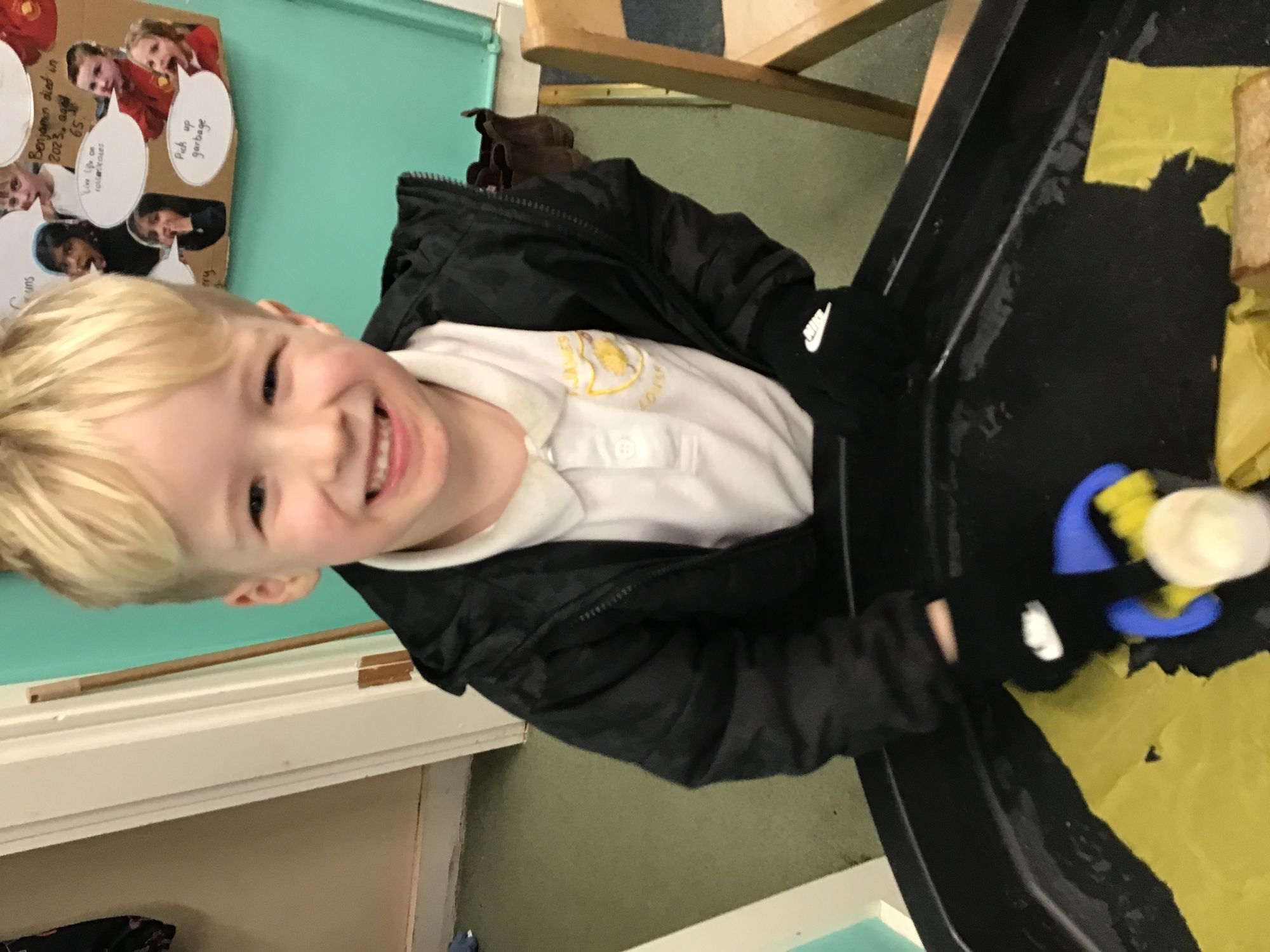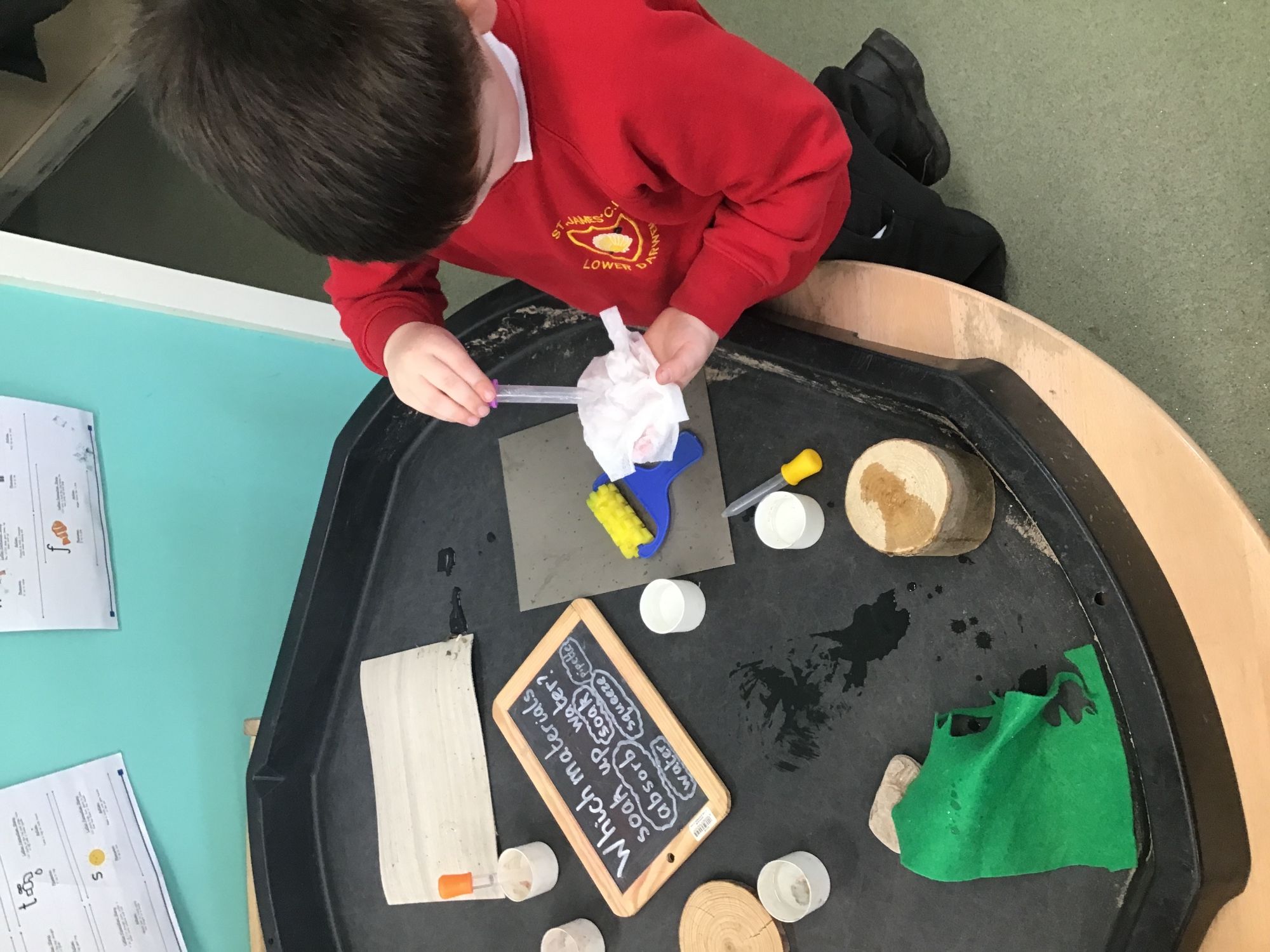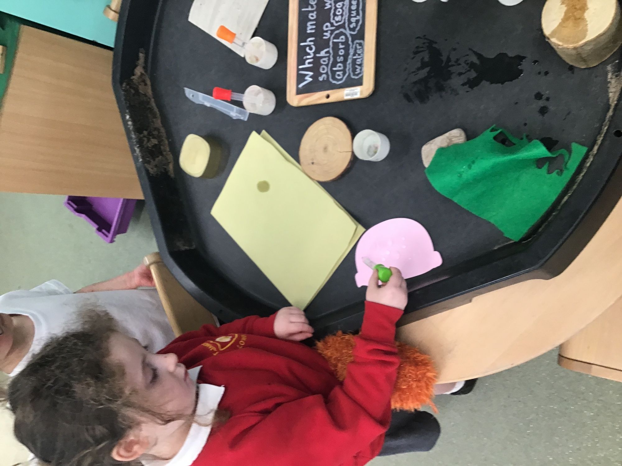 What a lovely week we have had in Reception. We have been continuing to write our own versions of Juniper Jupiter as well as practising writing CVC words. In phonics we have learned the sounds ‘ch’ and ‘sh’. We did a science experiment where we explored which materials absorbed water and which were waterproof. We used pipettes and water to squeeze droplets onto the materials and made careful observations. In maths we have looked at 6 and 7 as being ‘5 and a bit’ and used double dice frames to represent this. During play and learn, some of the children found some round stones which they decided were eggs and spent a long time working together to create a safe home for them in the sand area.