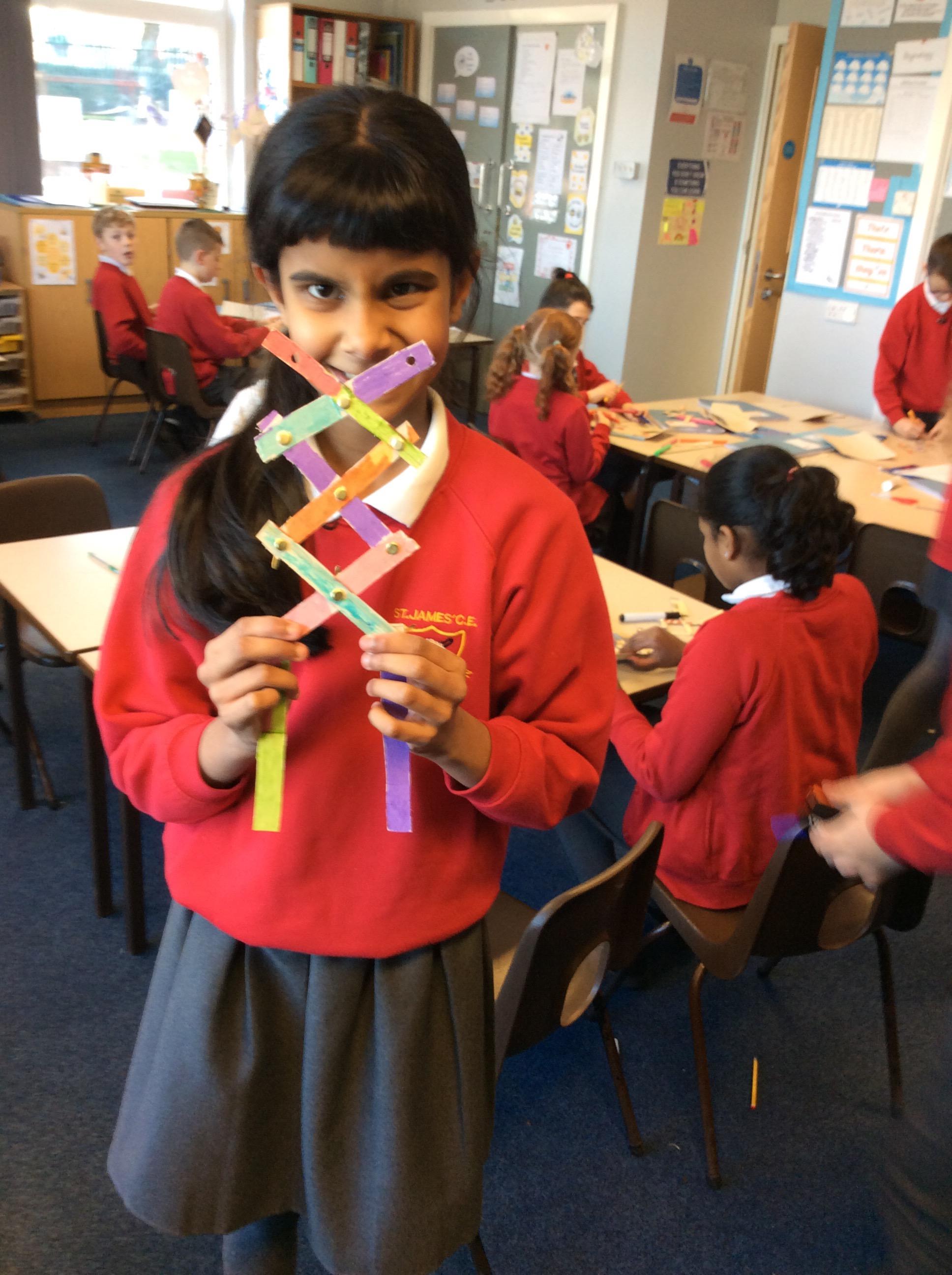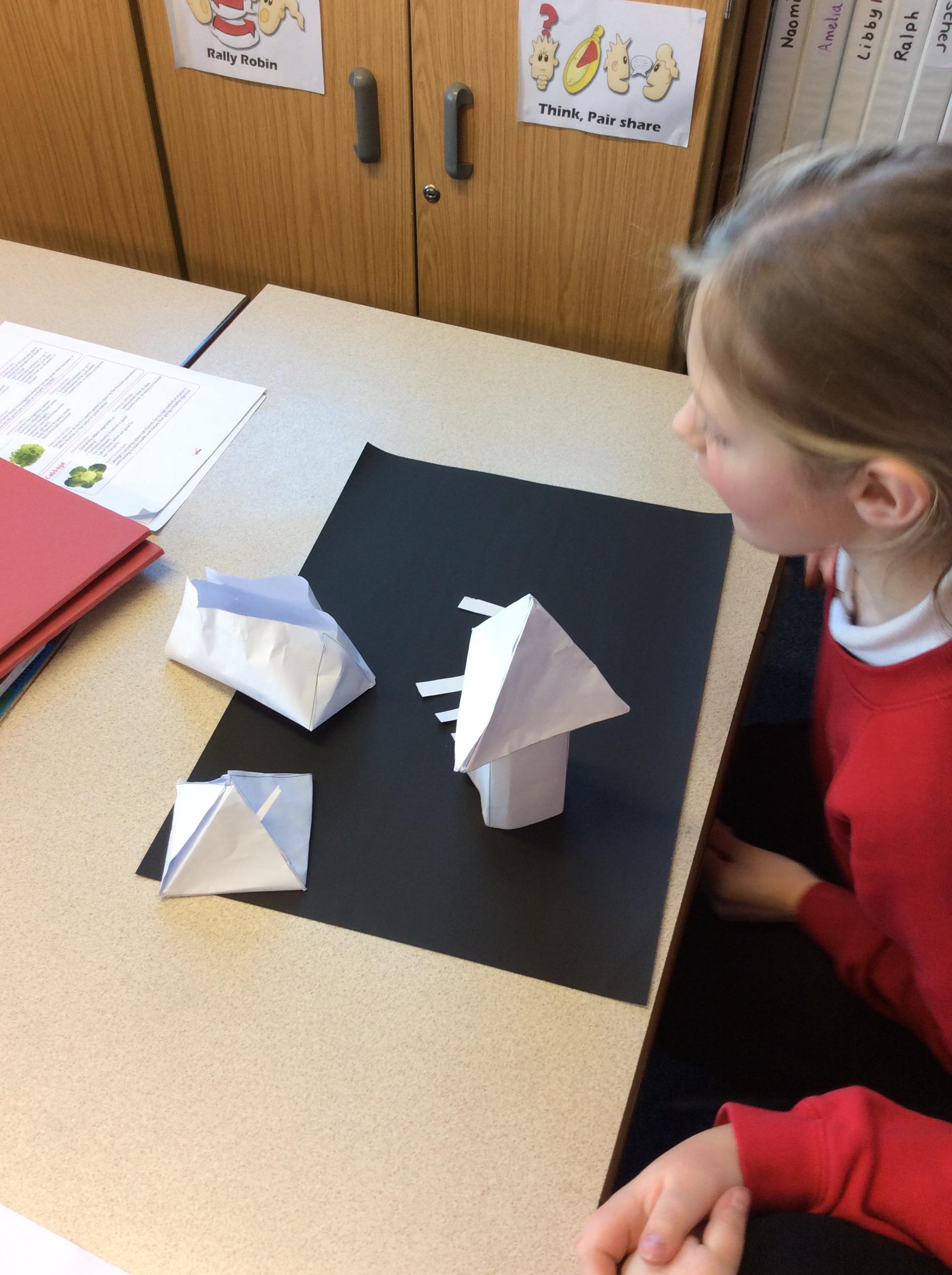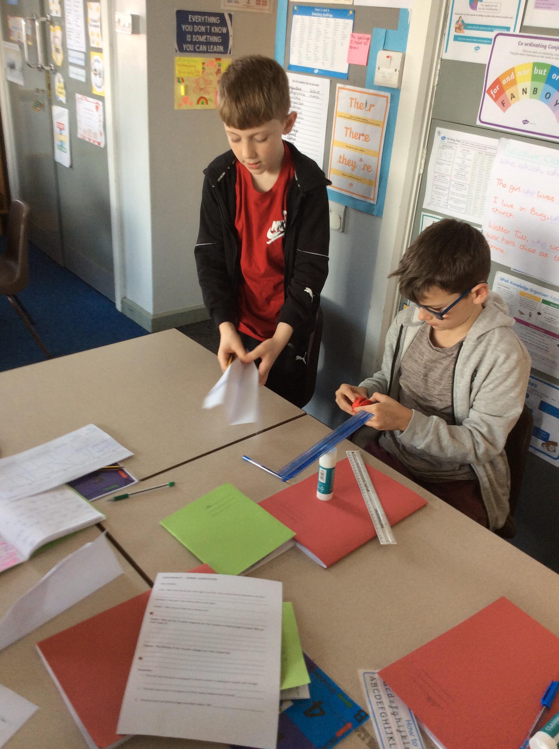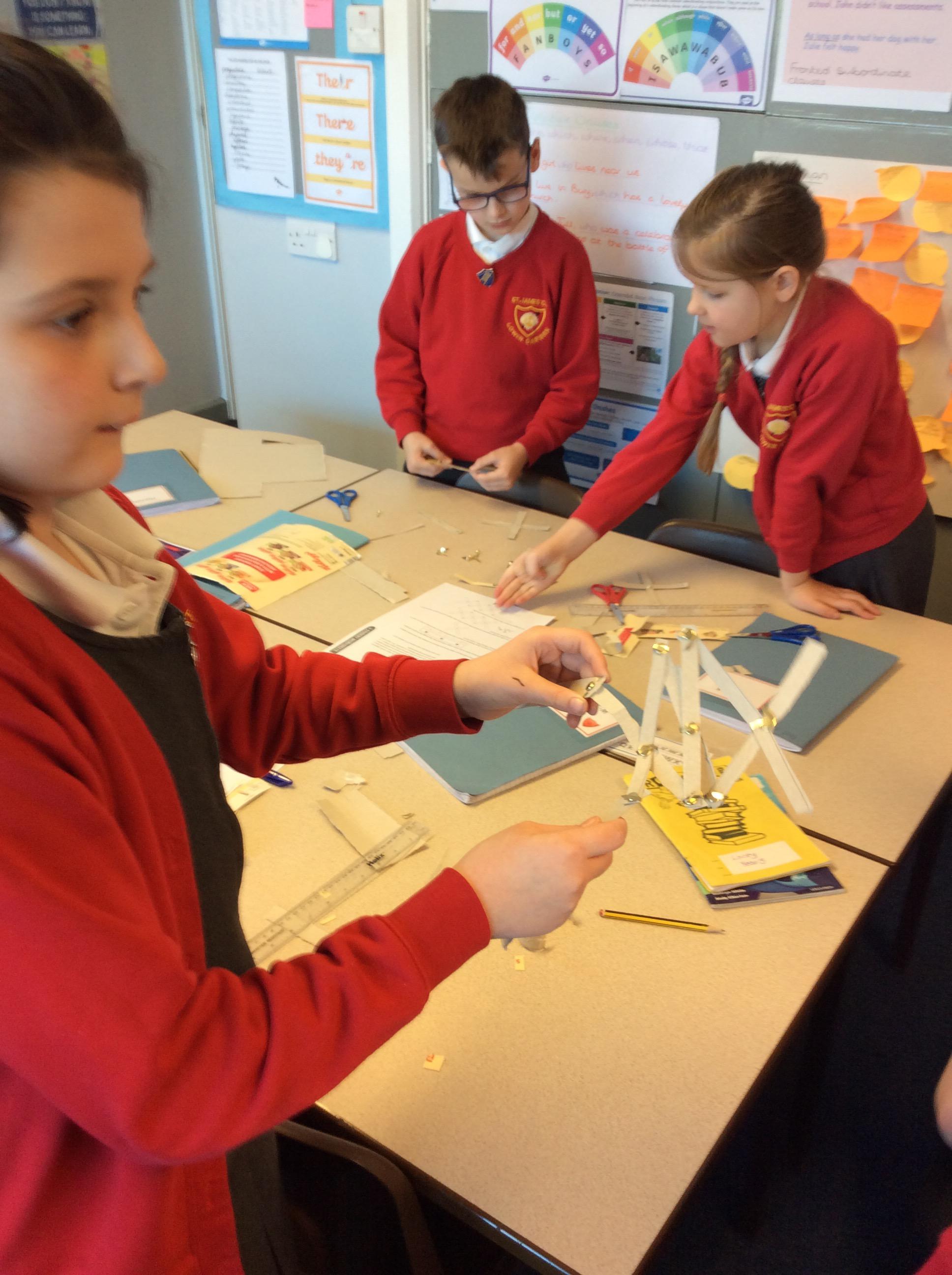 After watching videos about the Mars explorers, our next activity was to make a prototype extending arm. We were provided with the instructions, cardboard and split pins. Working in our Kagan groups, we investigated how the cardboard pieces had to be of the optimum size in order for our task to be successful.