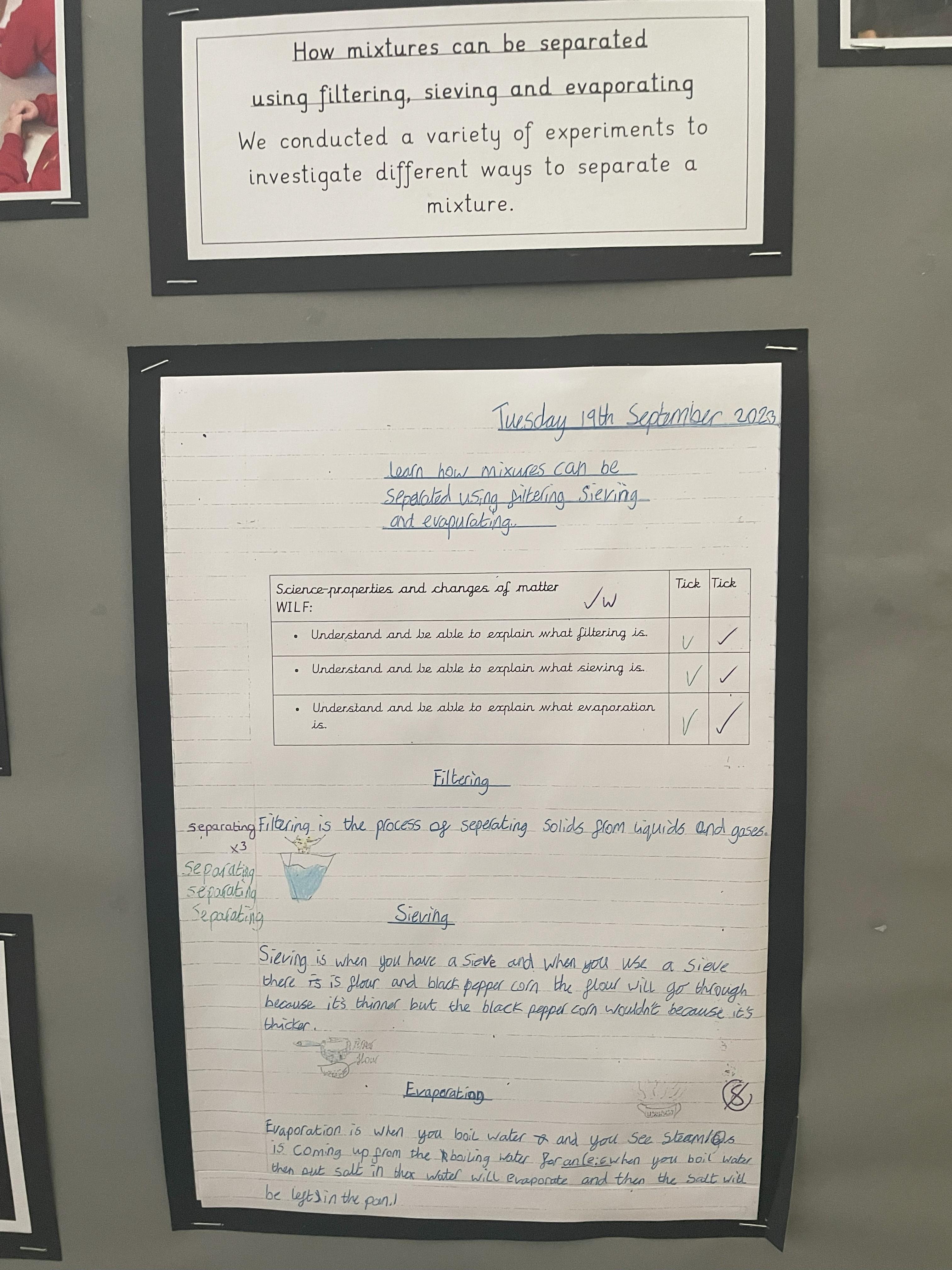 Each half term the children have been working collaboratively and discussing their ideas linked to a real life purpose and asking questions to deepen their understanding of a topic. Key scientific terminology has been introduced throughout each unit and knowledge has been built upon progressively. The children have explored, planned their own investigations and learned practically through a range of scientific enquiry types. Science lessons have challenged and motivated pupils to help understand the world around them.