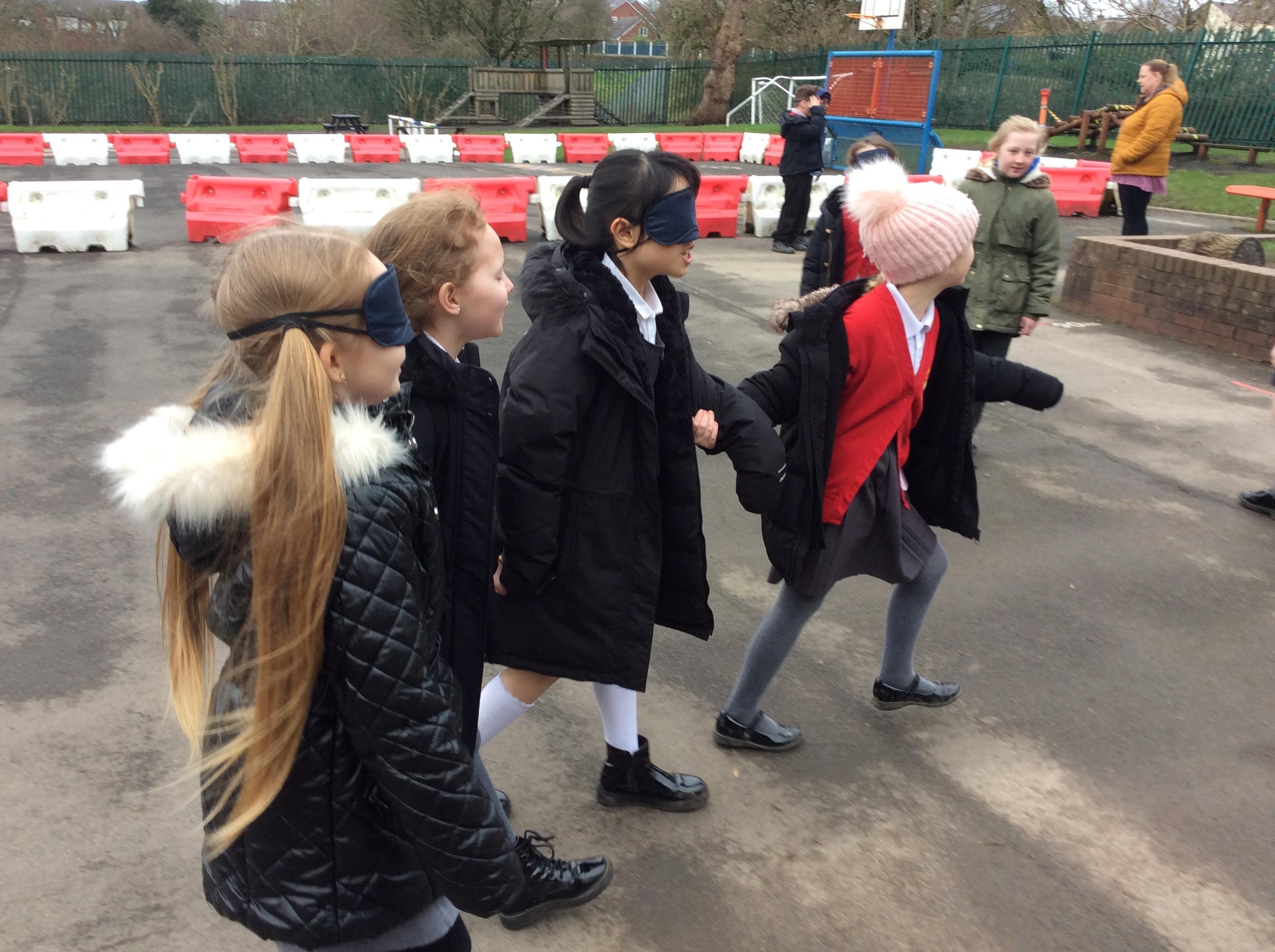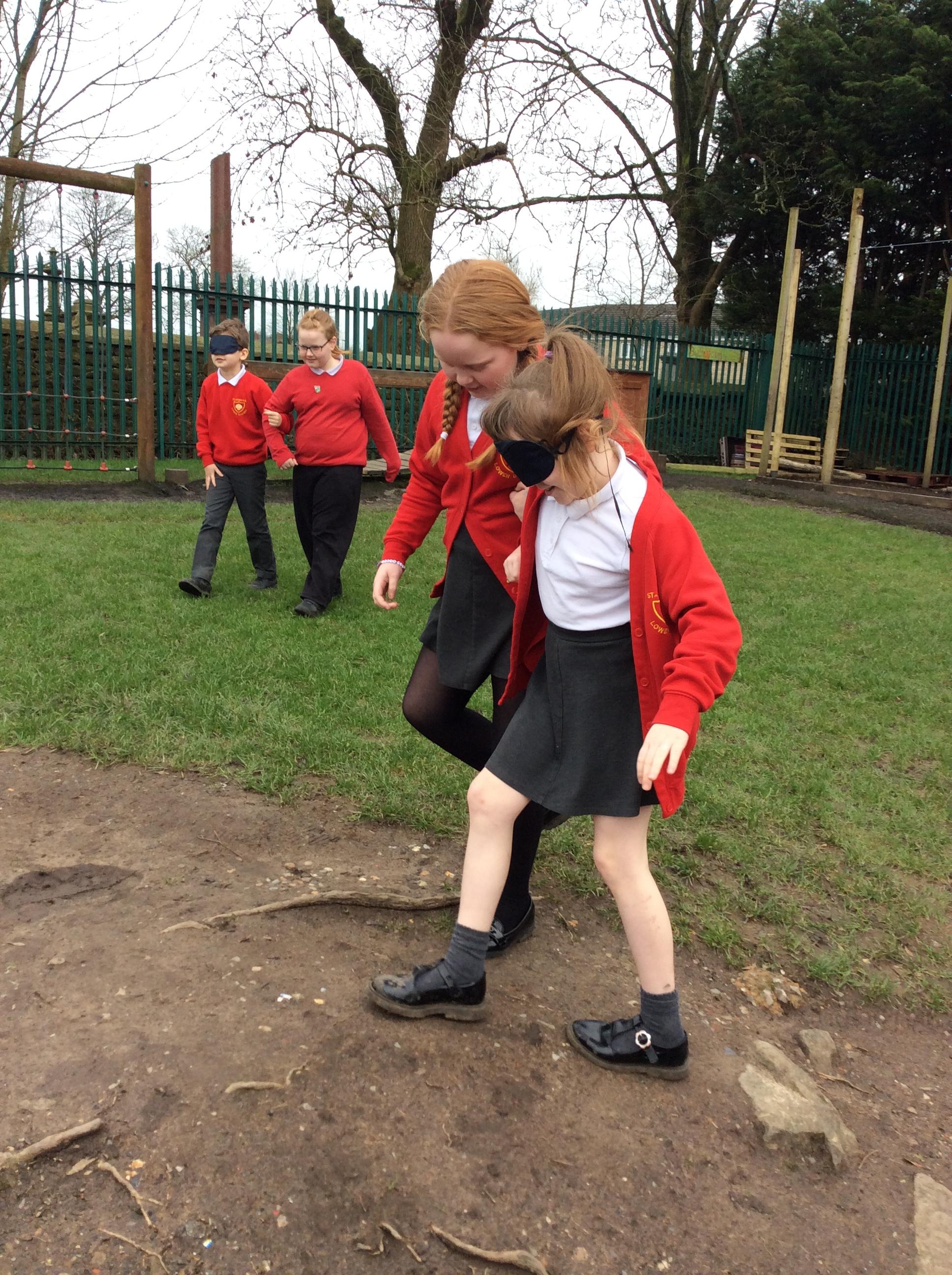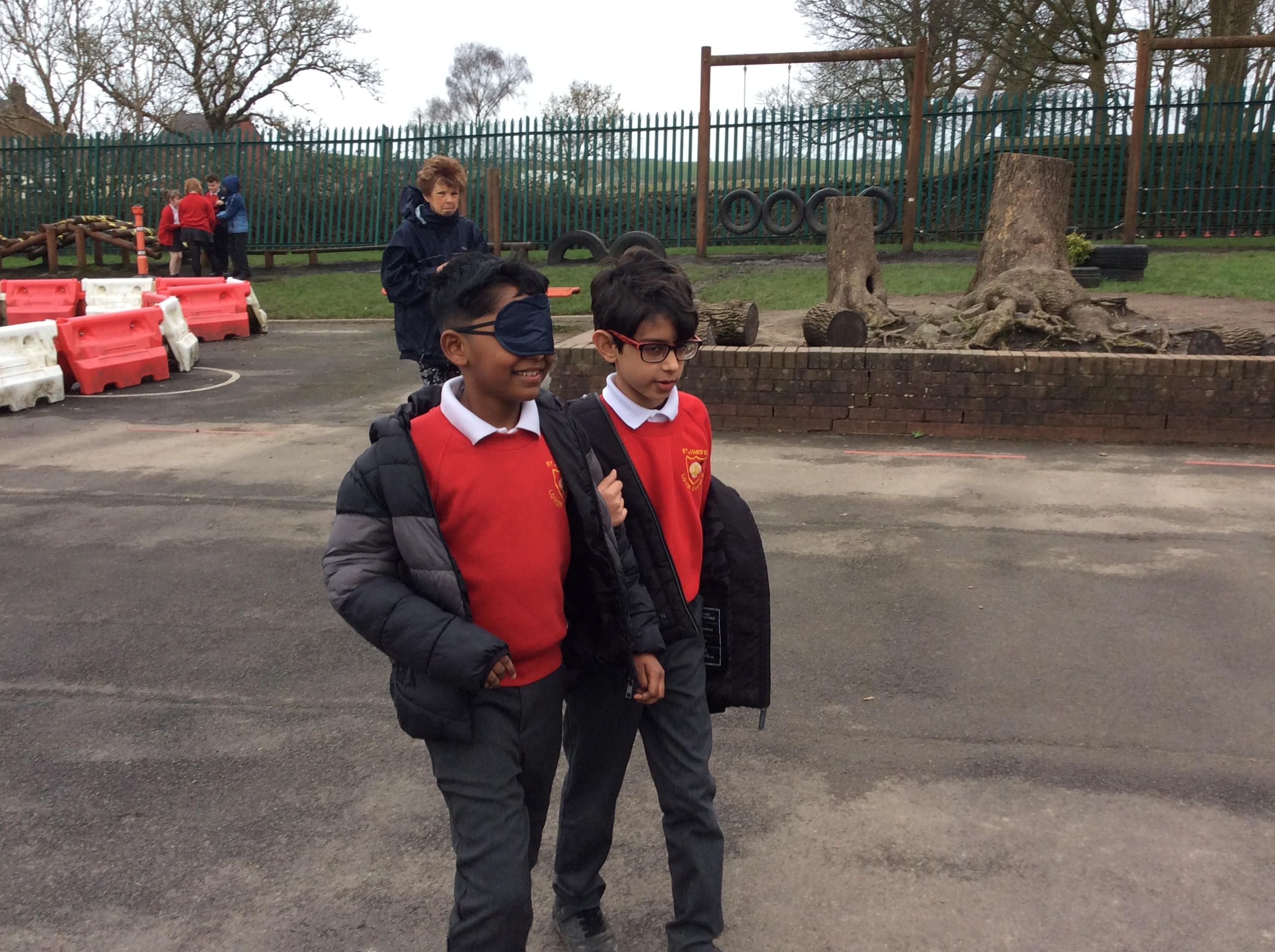 We started off our RE Easter topic by explore ideas of trust and betrayal with some trust games around our playground.