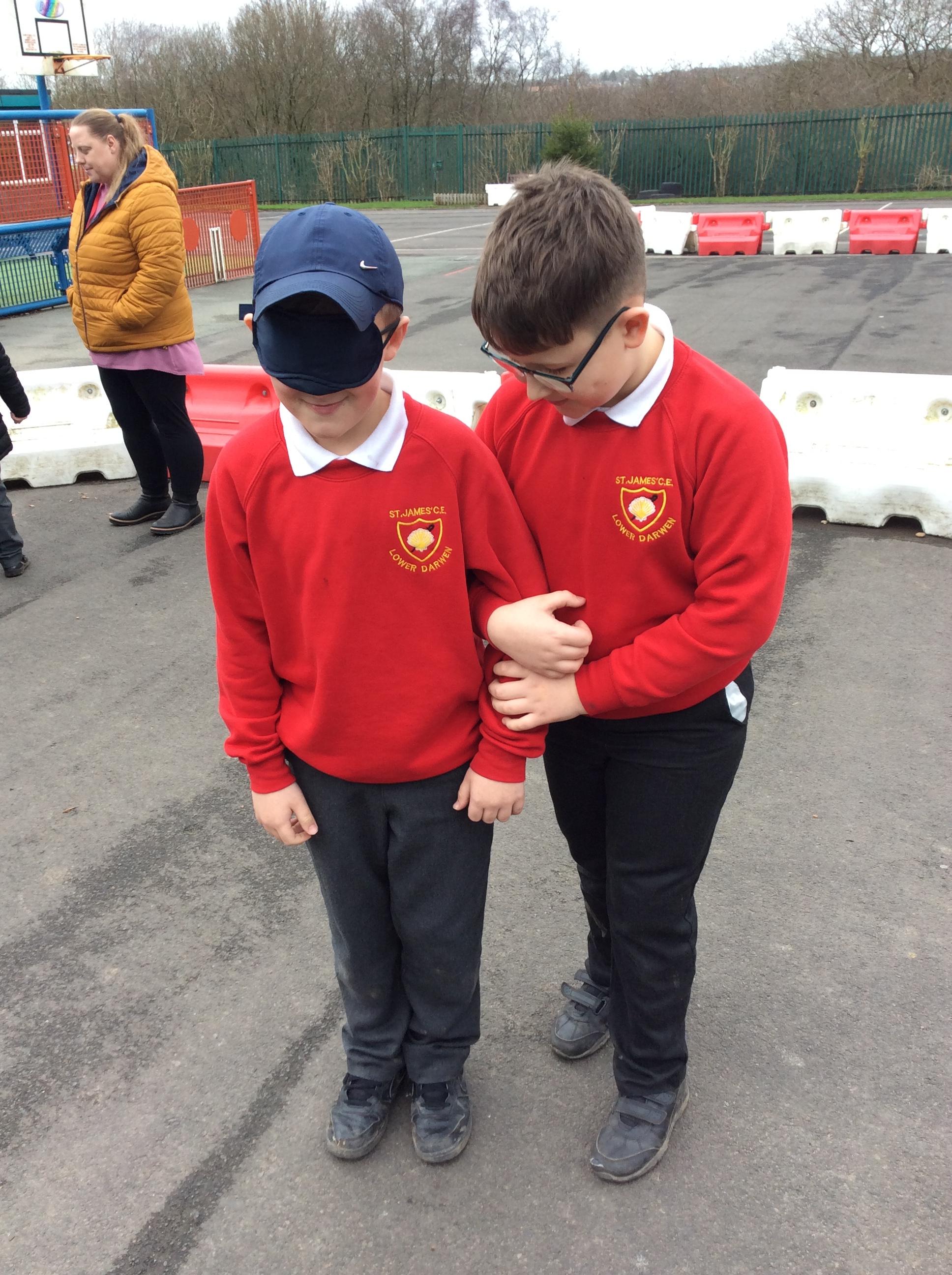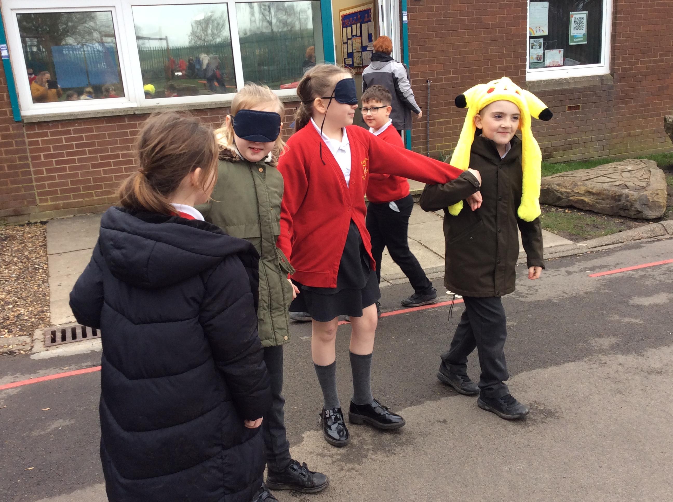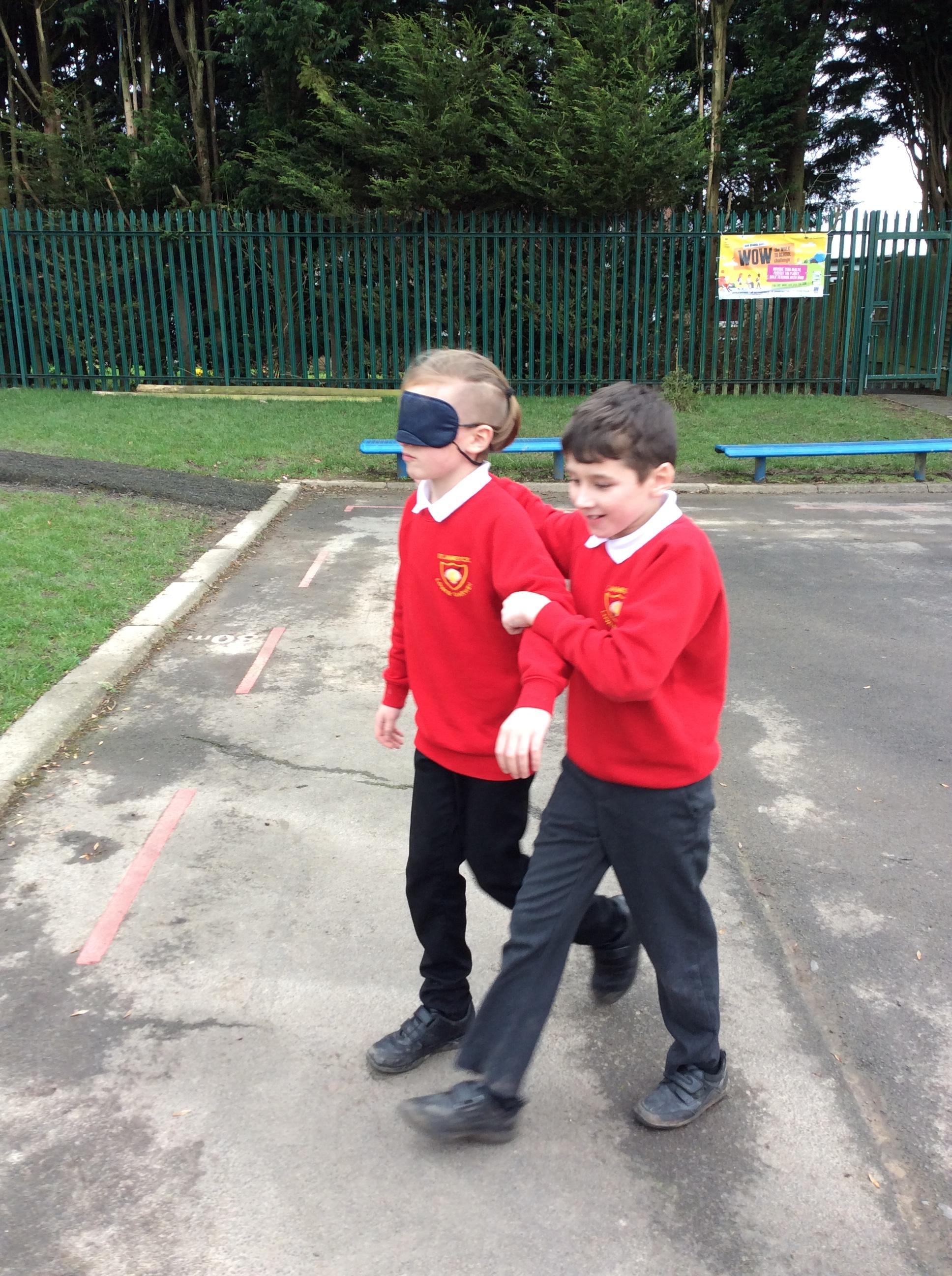 We started off our RE Easter topic by explore ideas of trust and betrayal with some trust games around our playground.