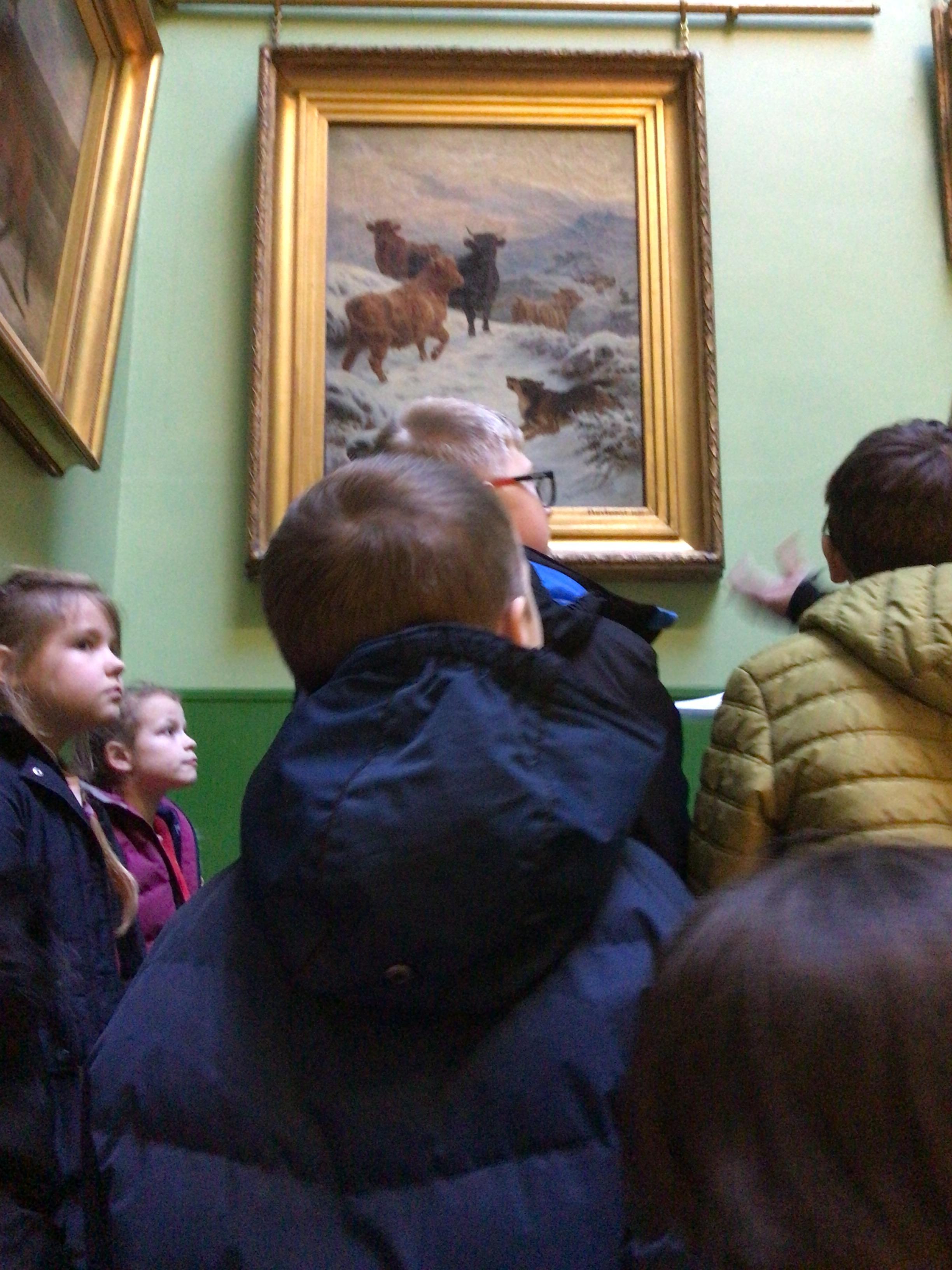 We also saw lots of different art forms, sculpture, painting, printing, ceramics the lists is endless. There were a group of art forms that really interested the children and prompted a lot of conversation on the bus back to school.  This art form was taxidermy, the art of preserving animals. We saw deer, badgers and peacocks.