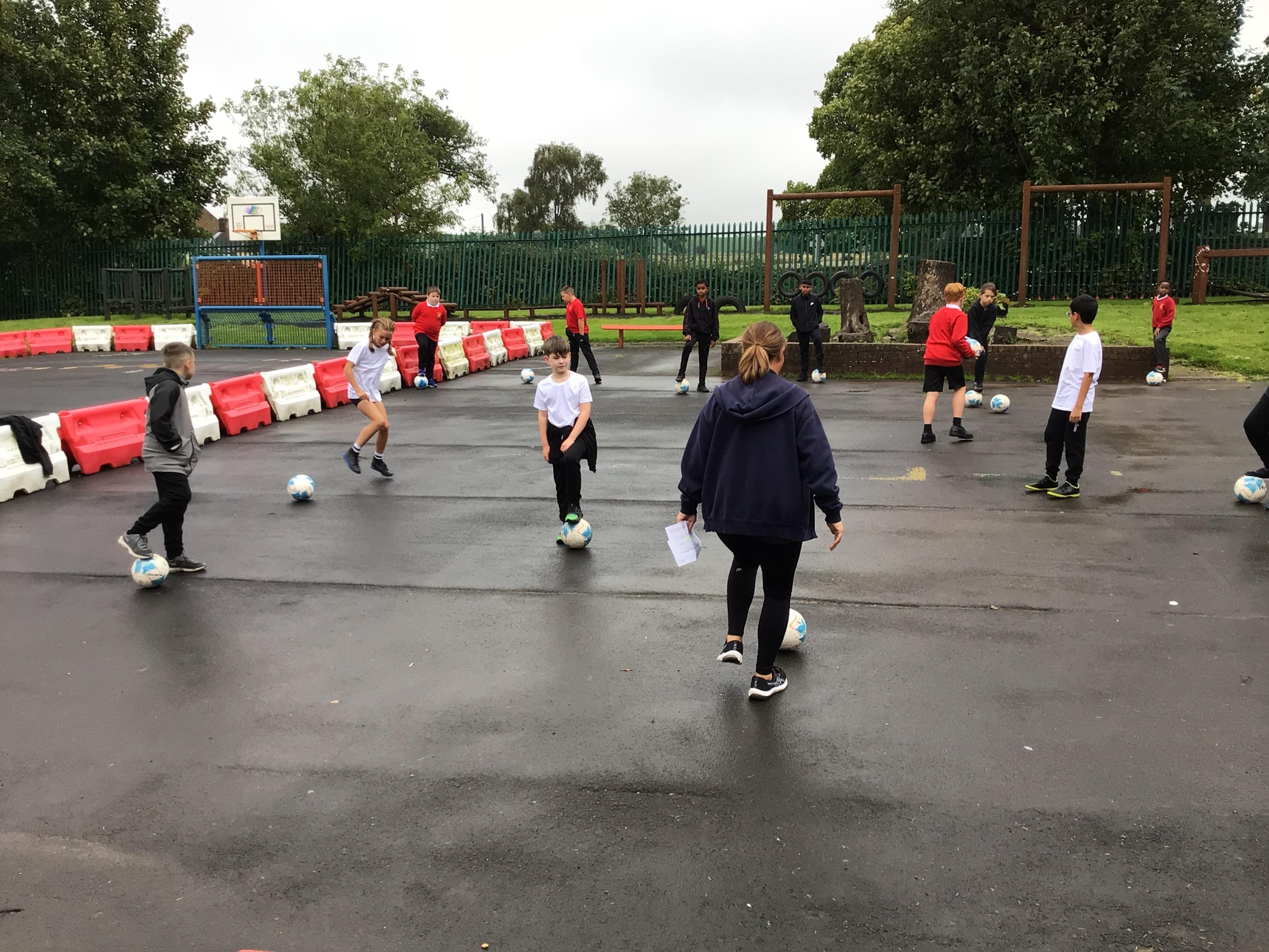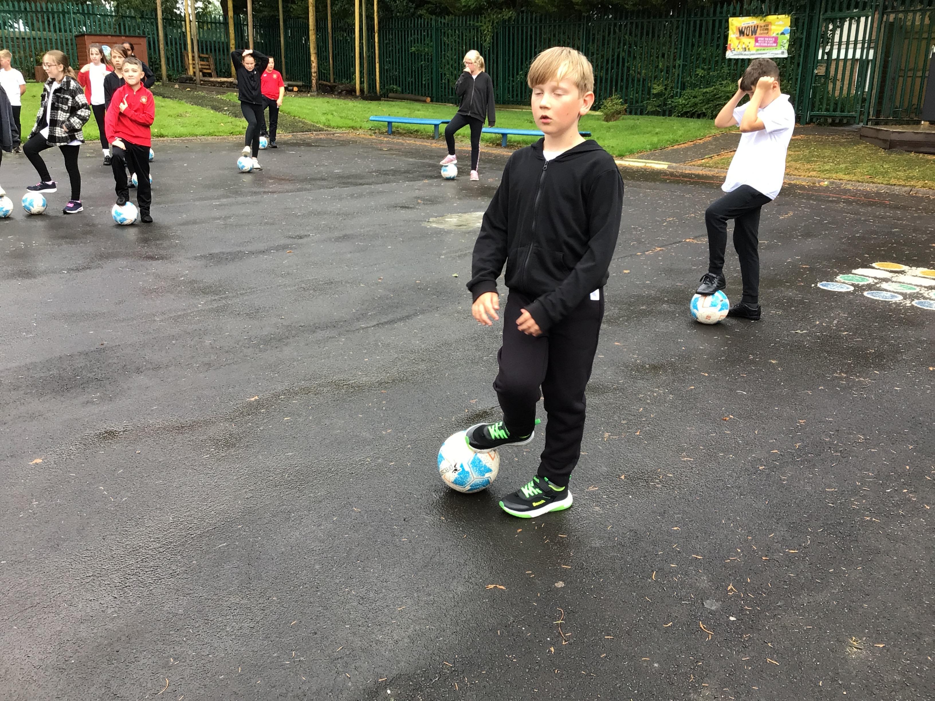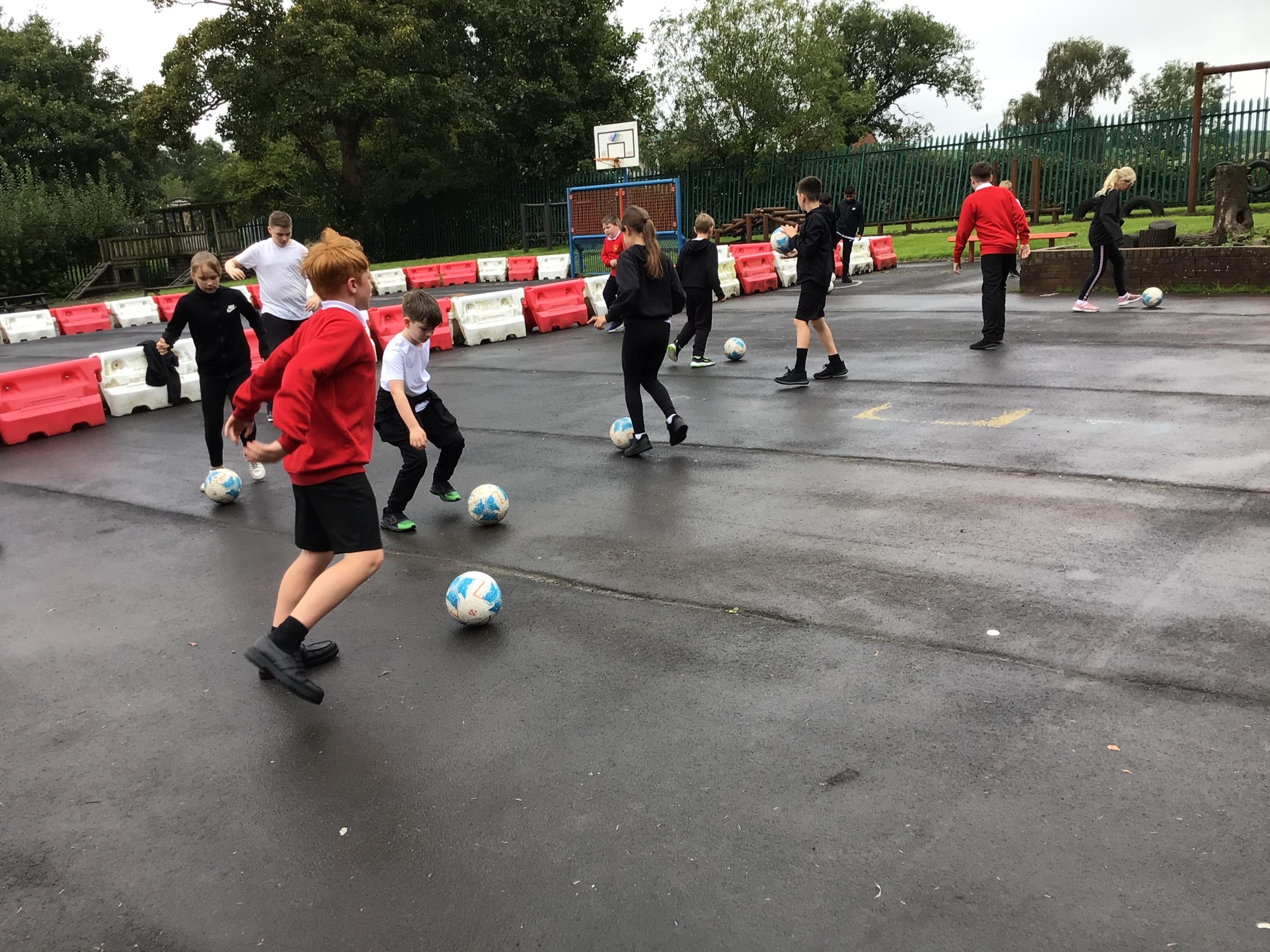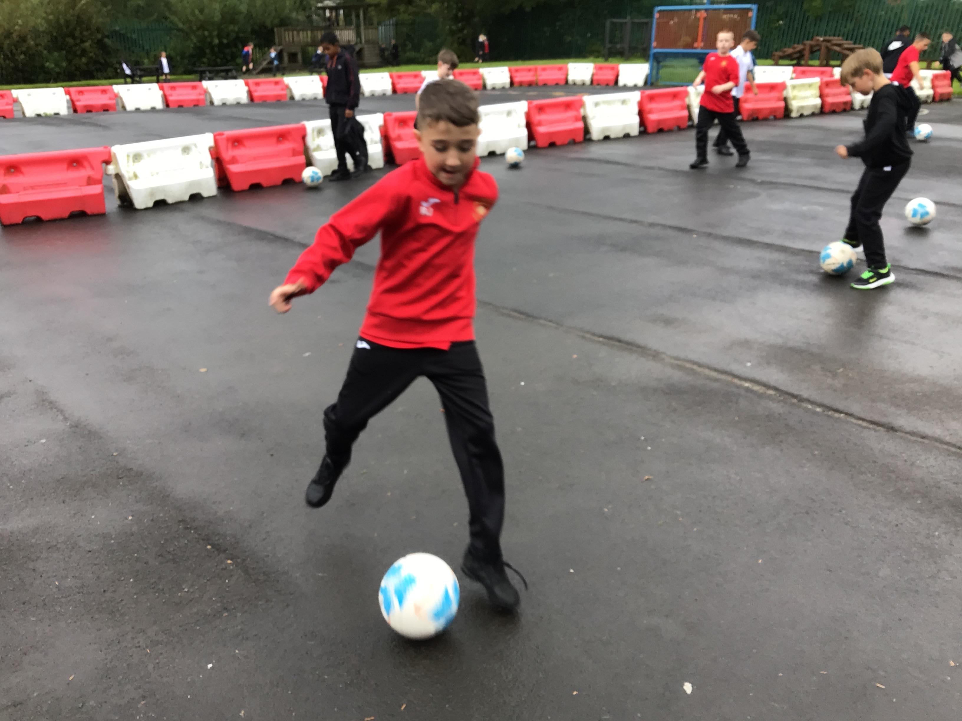 We have started our football unit in PE and practised our dribbling skills, finishing off with a 3v3 game outside.
