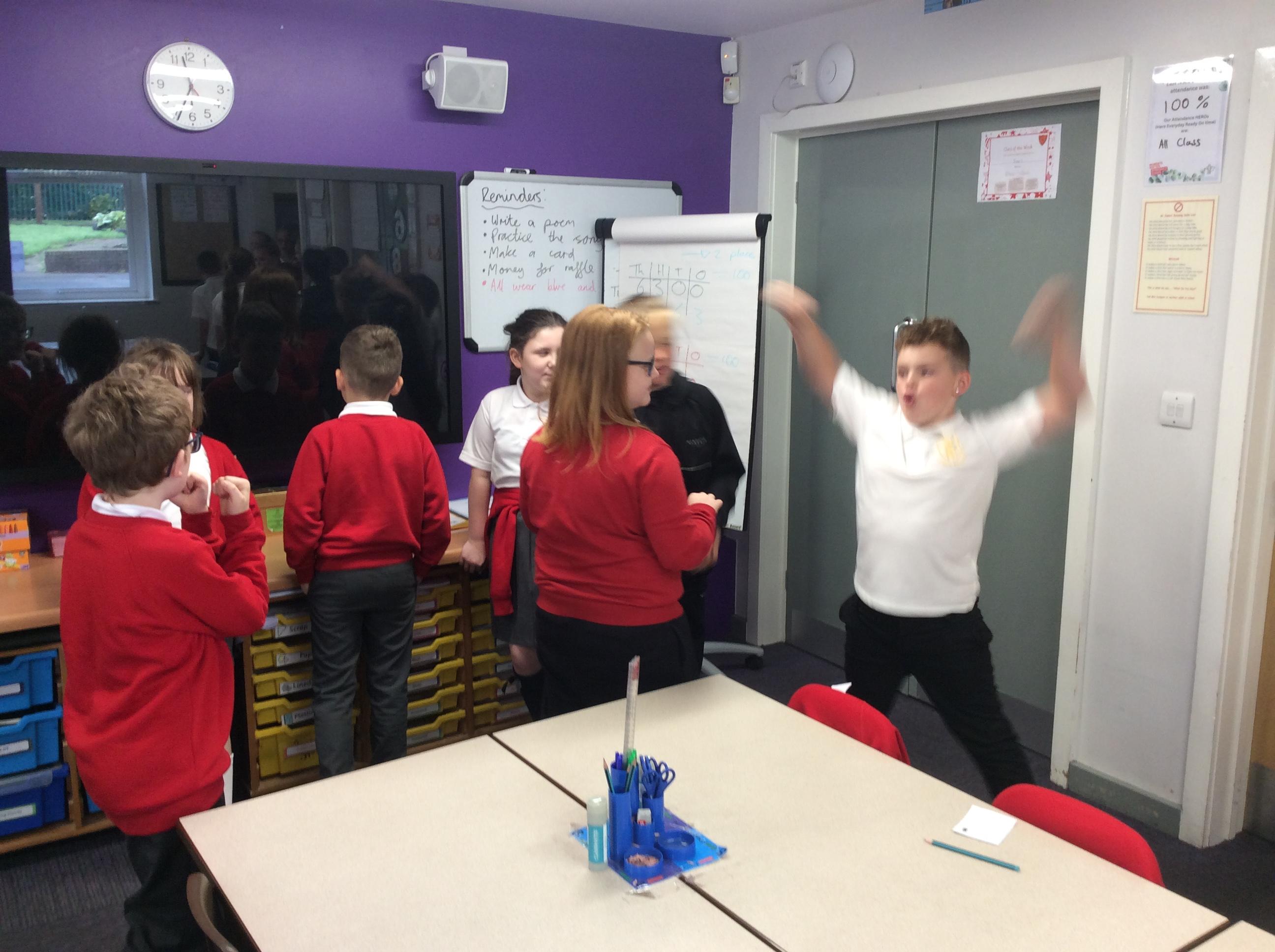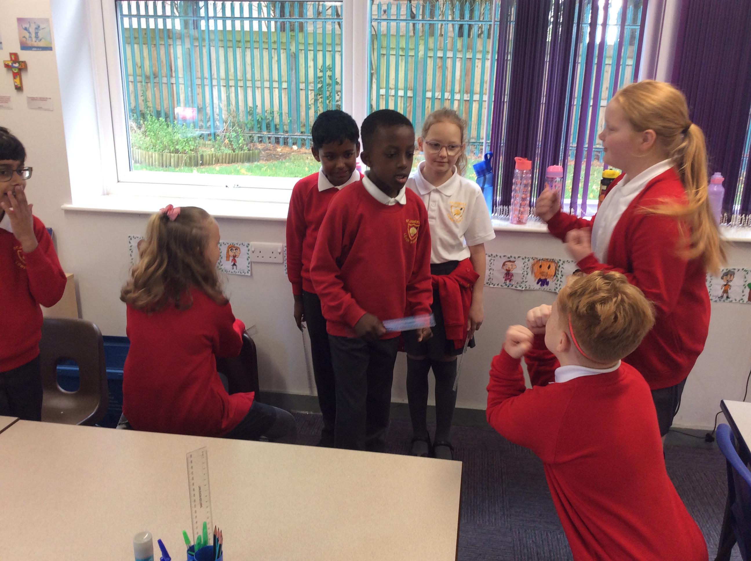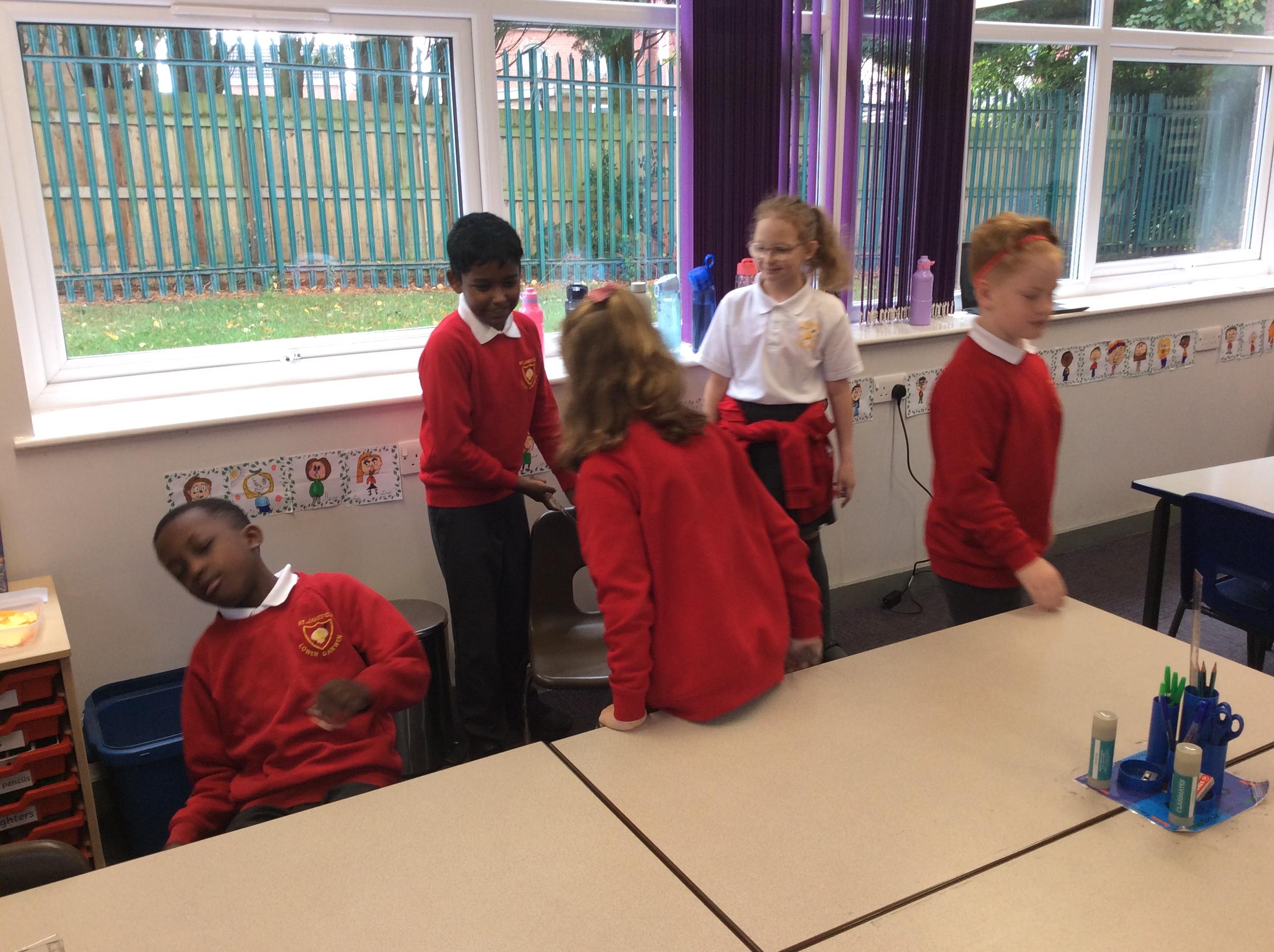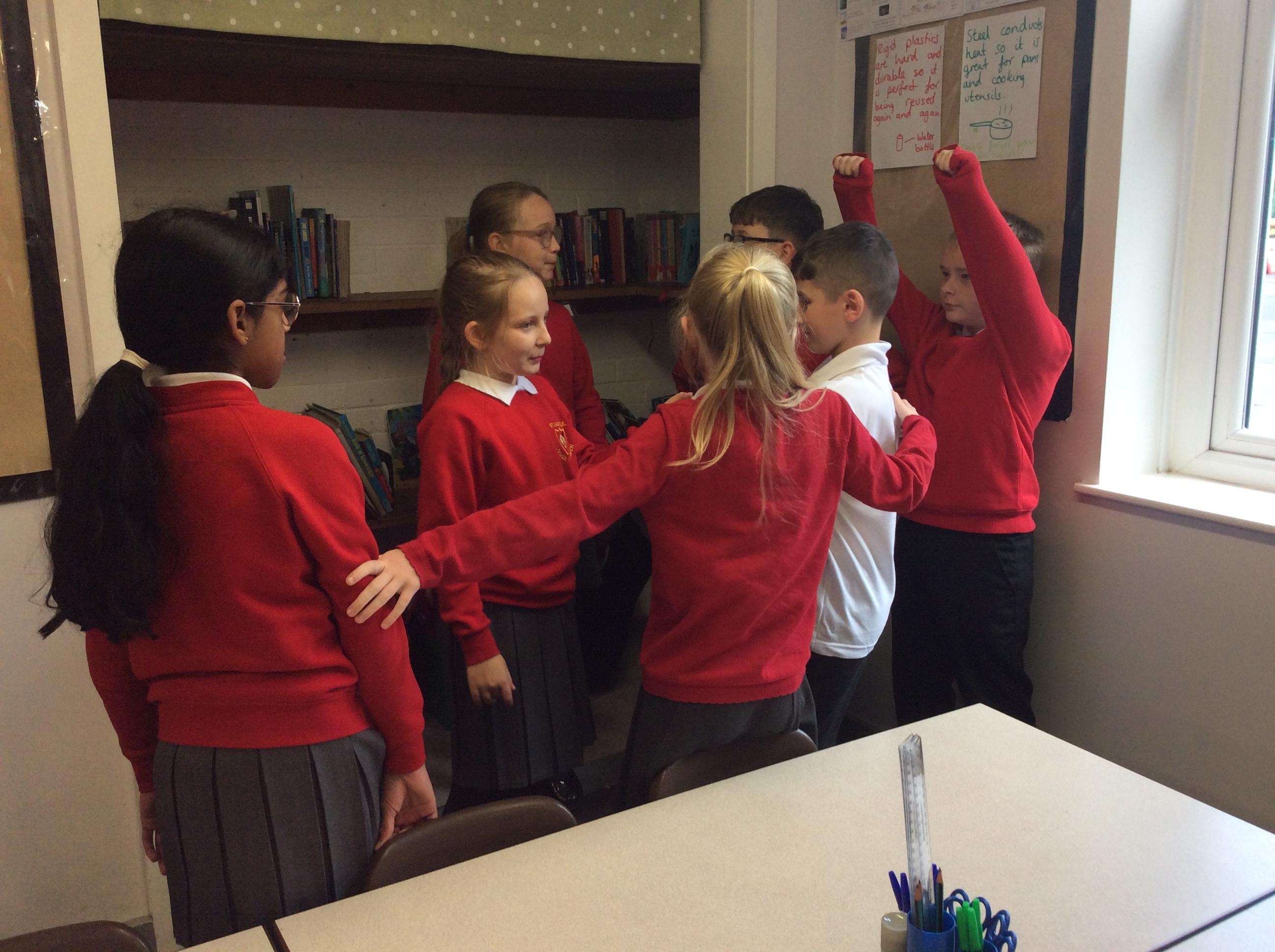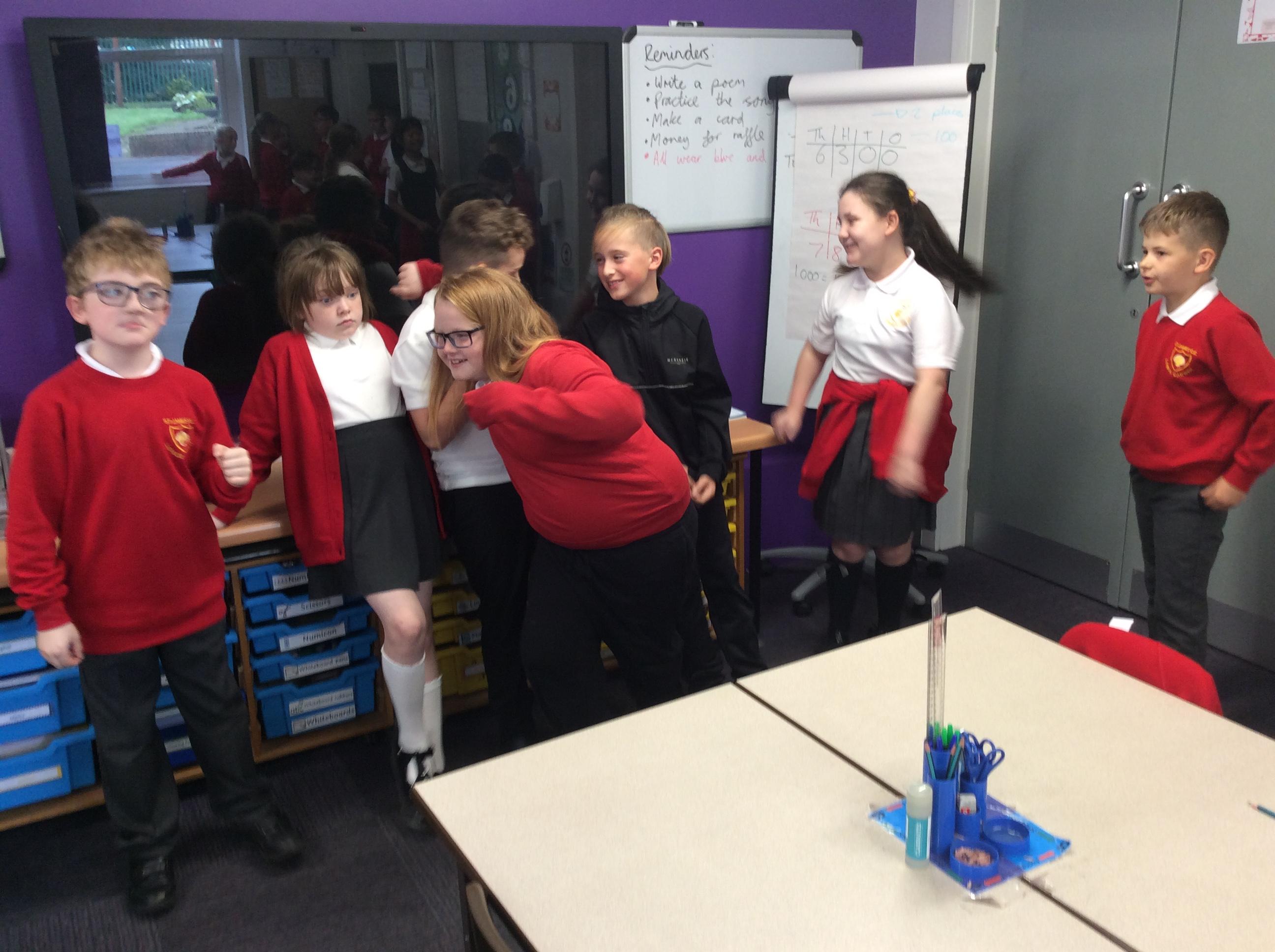 In groups, the children create a drama based on the soldiers readying themselves for battle against Grendel. They then performed this to the class.