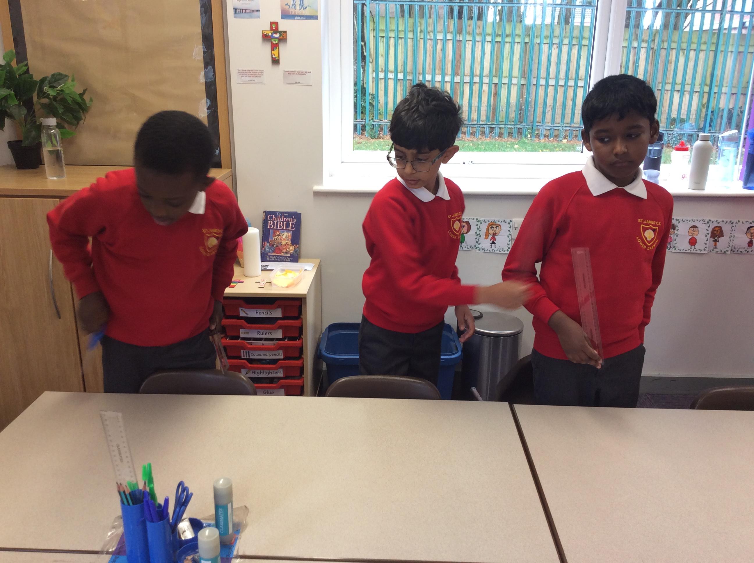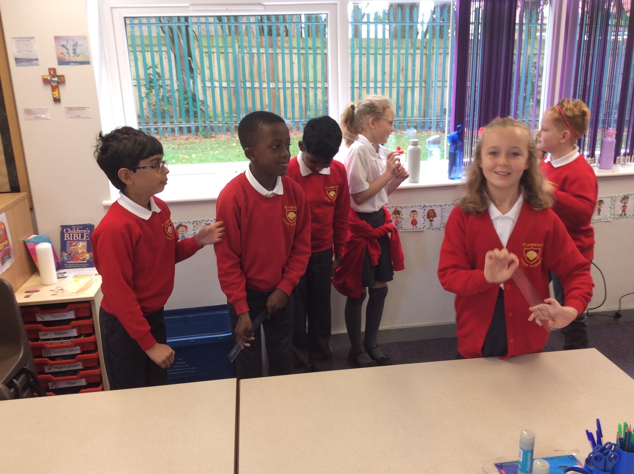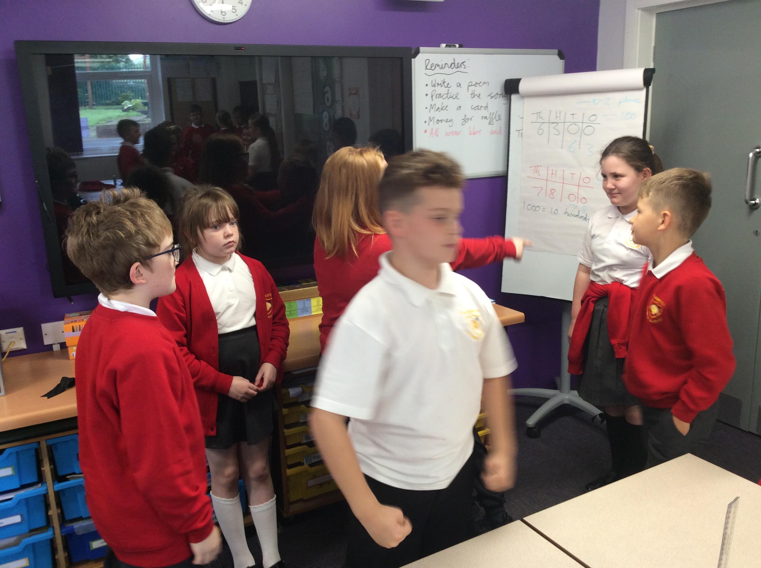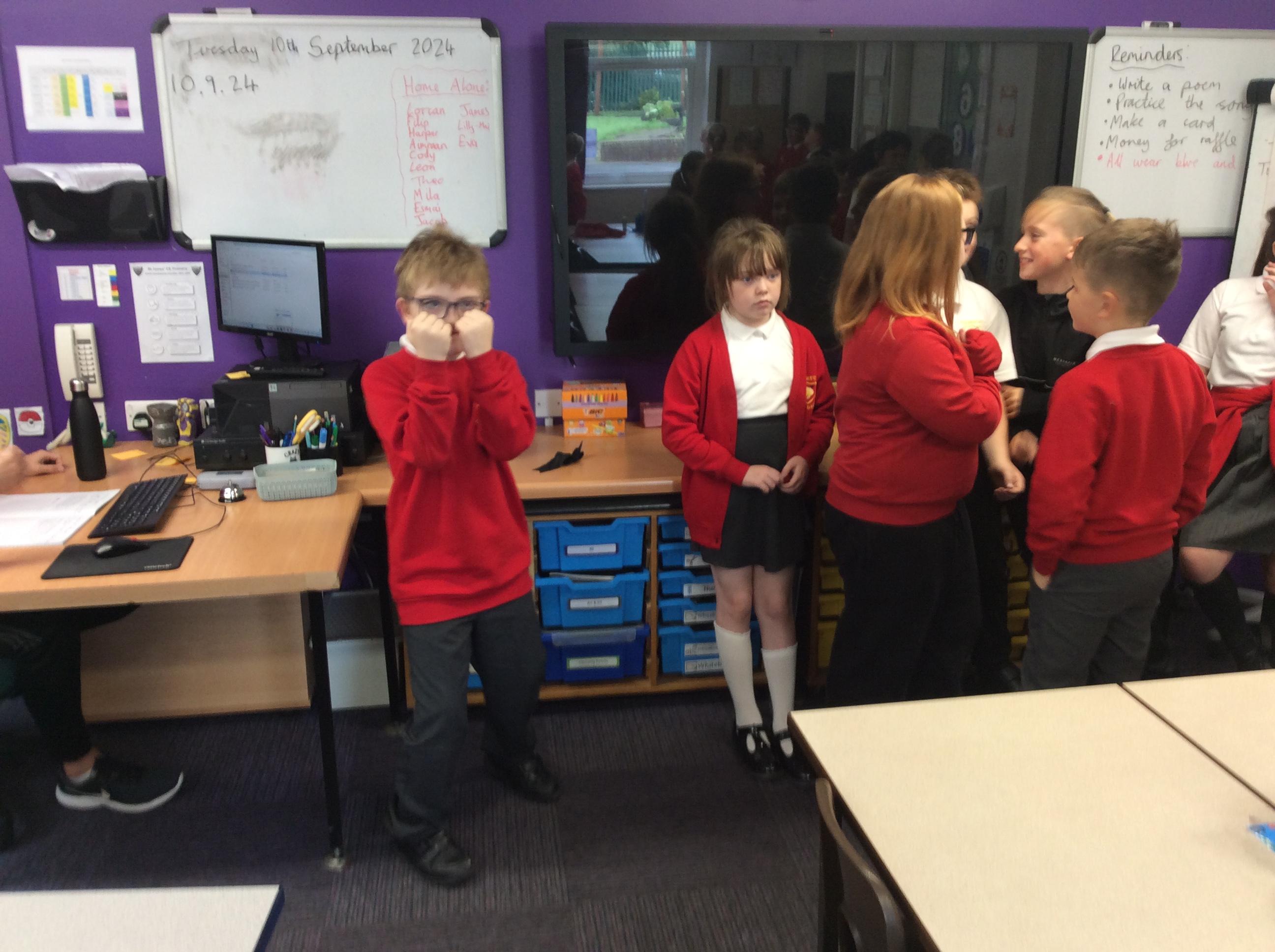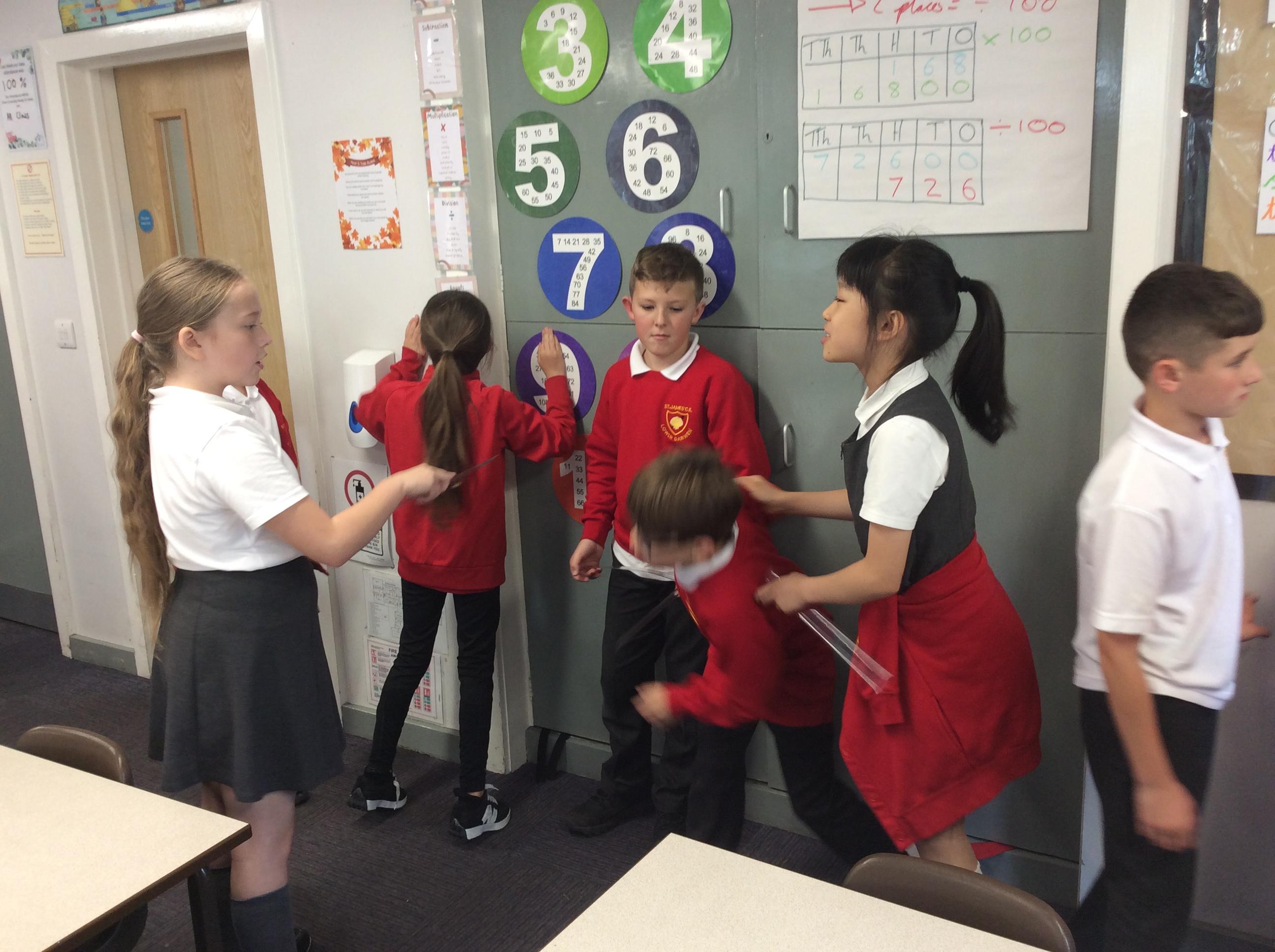 In groups, the children create a drama based on the soldiers readying themselves for battle against Grendel. They then performed this to the class.