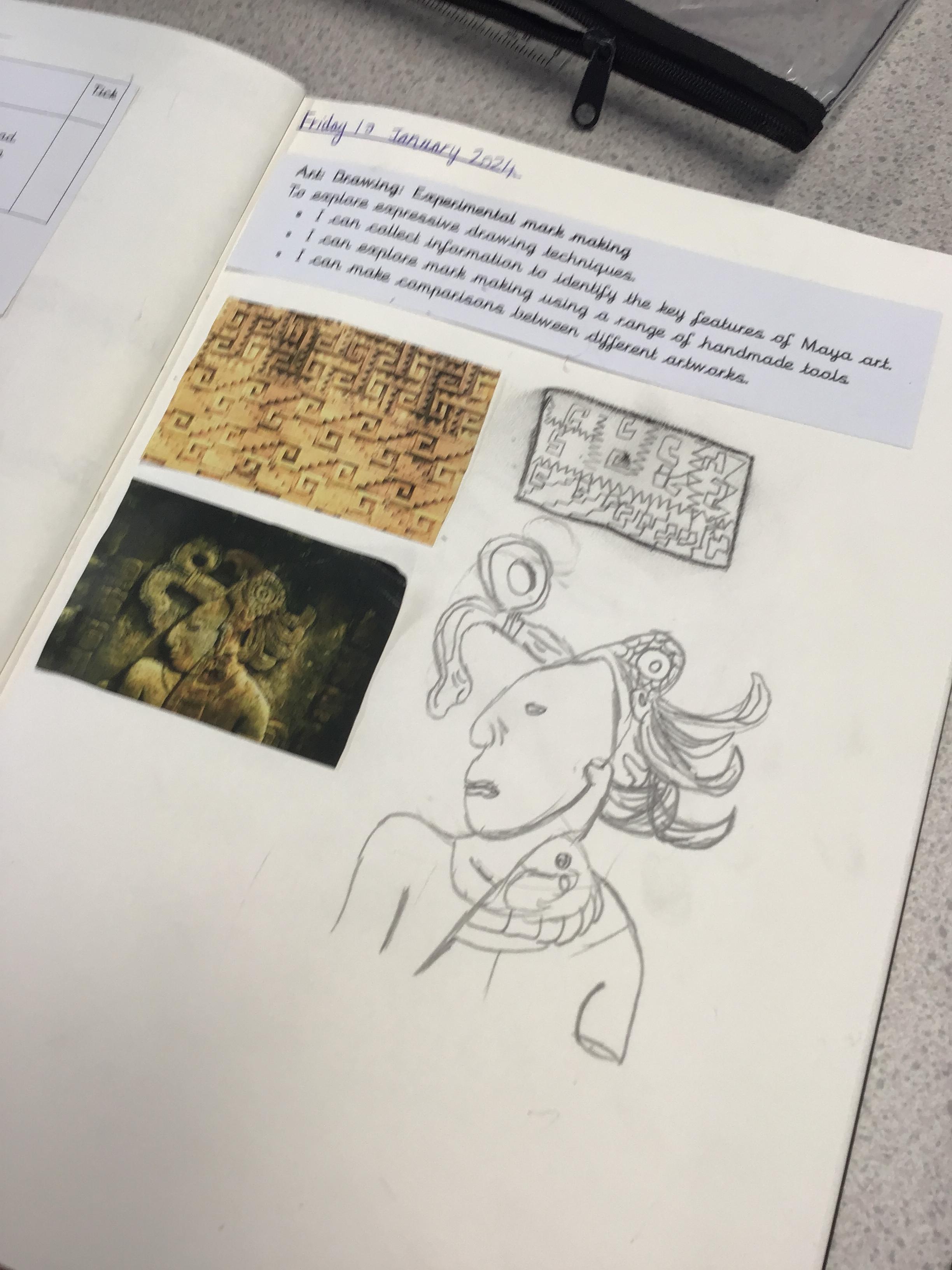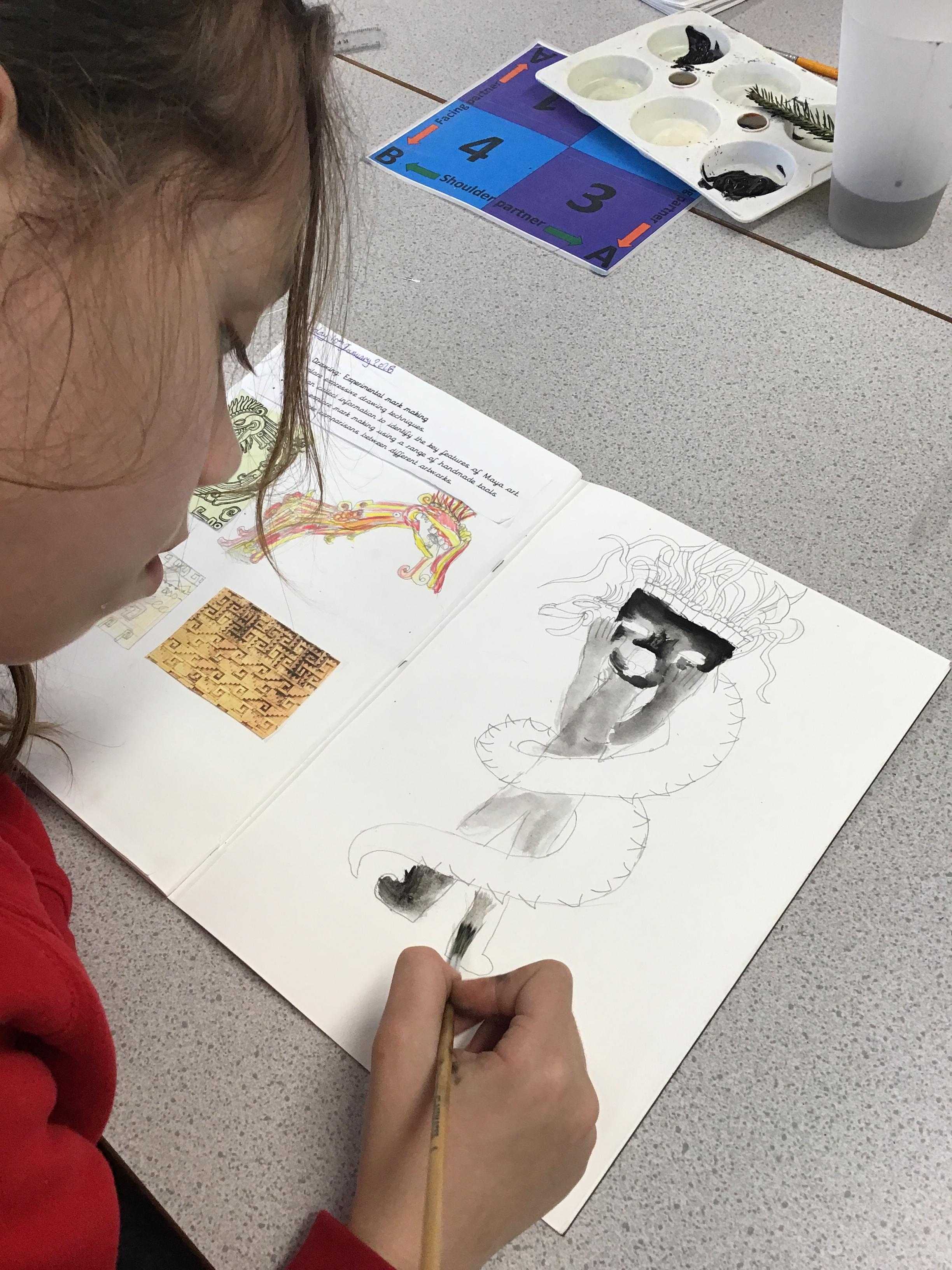 The children thoroughly enjoyed experimental mark making in art this week as it linked to our history unit last half term, the ancient Maya.