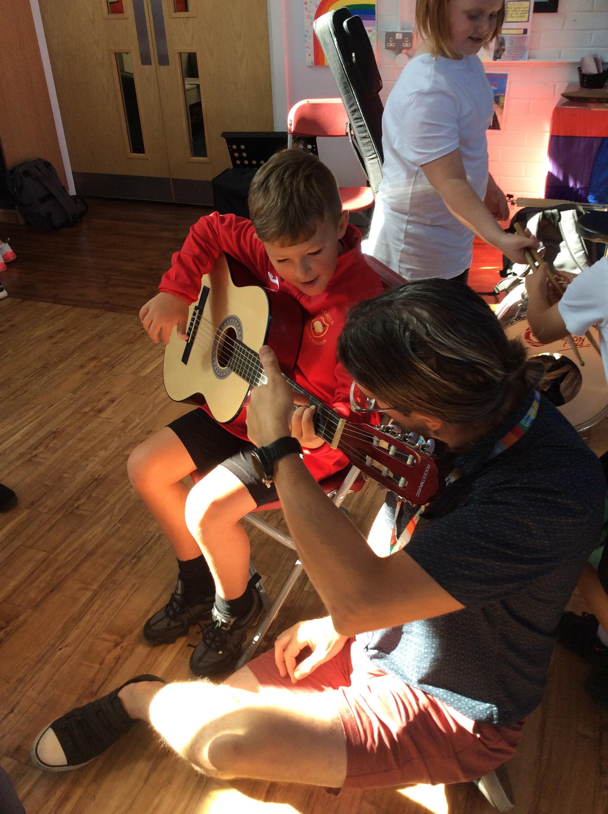 Bolton Music Service came into school to perform for the whole school. We were the lucky class that was chosen to stay behind and take part in a music workshop with the musicians. We got to have a go at playing a range of musical instruments - some we'd never even heard of or seen before! What an amazing opportunity!