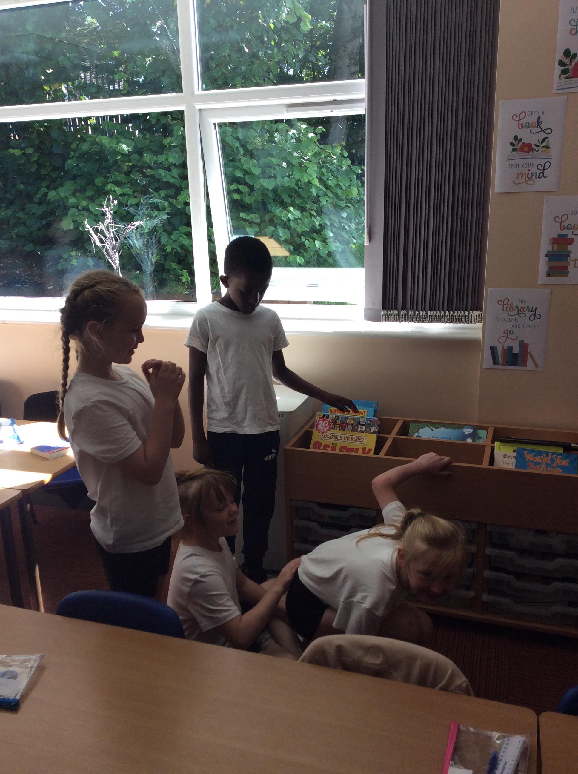 In our PSHE lesson we focused on working collaboratively. We worked in small groups to create a machine using our bodies and our voices that would complete a simple task such as: washing and smoothing bedsheets; making a cup of tea with milk and making some toast with butter. We did a super job!