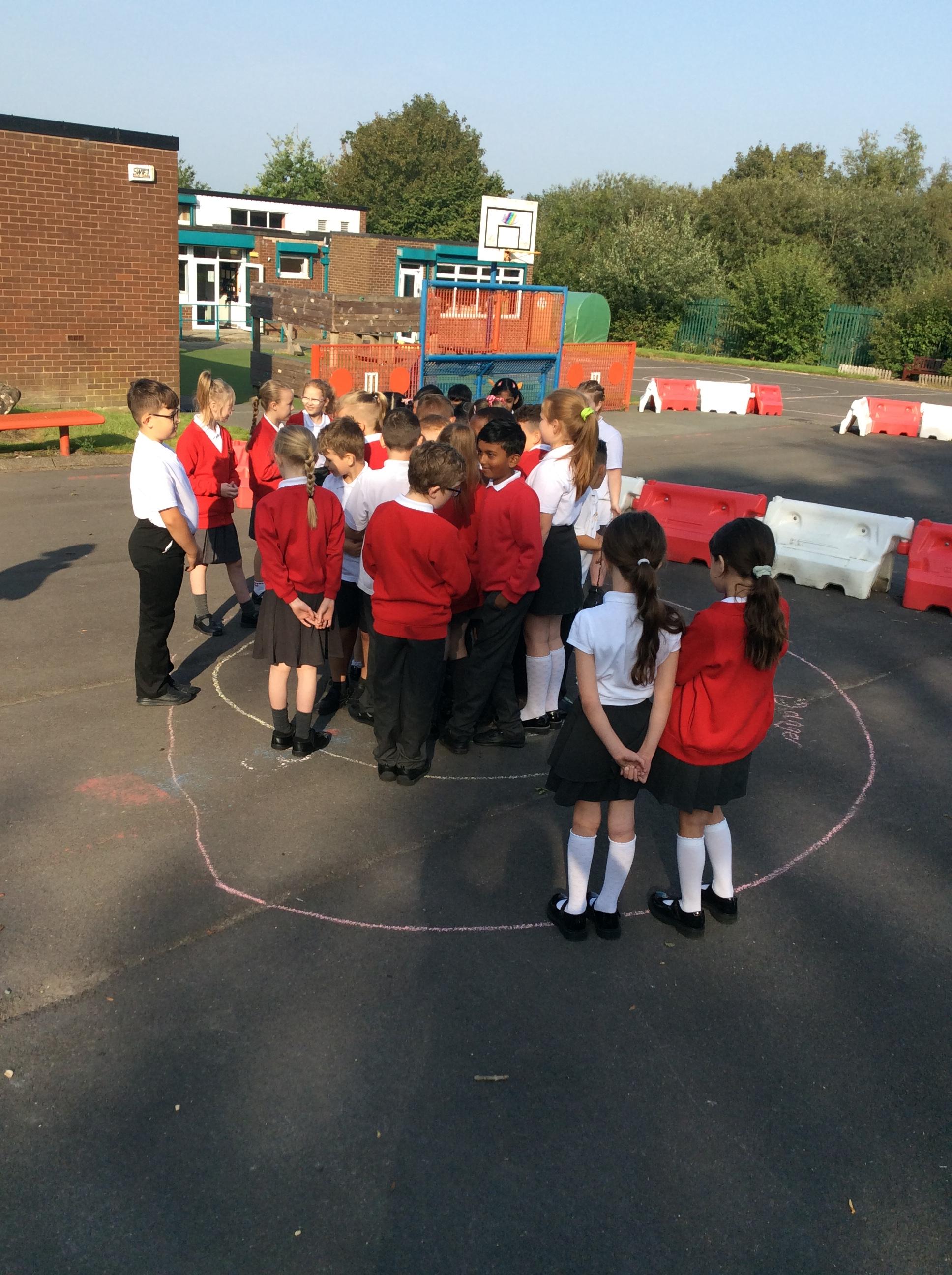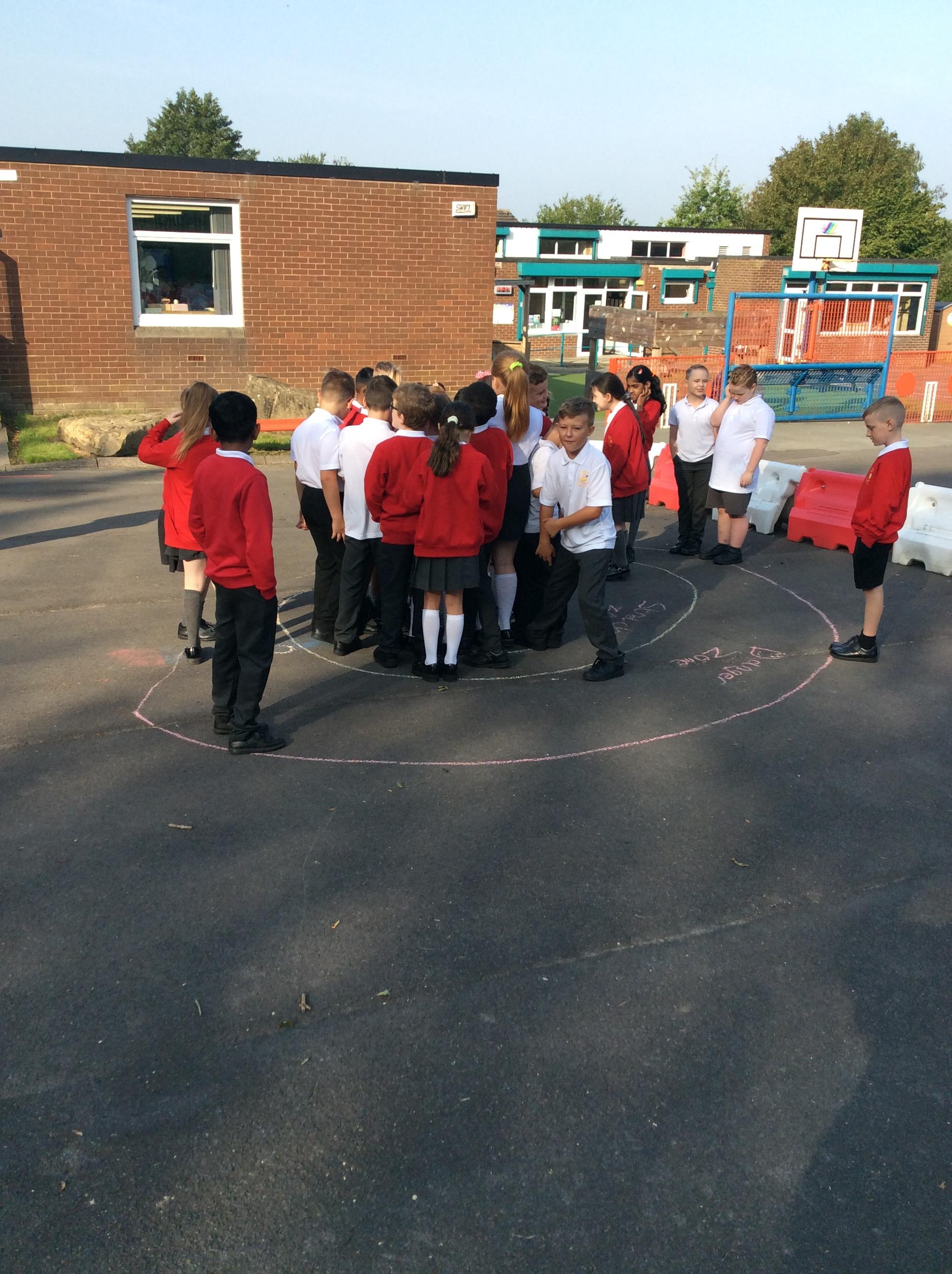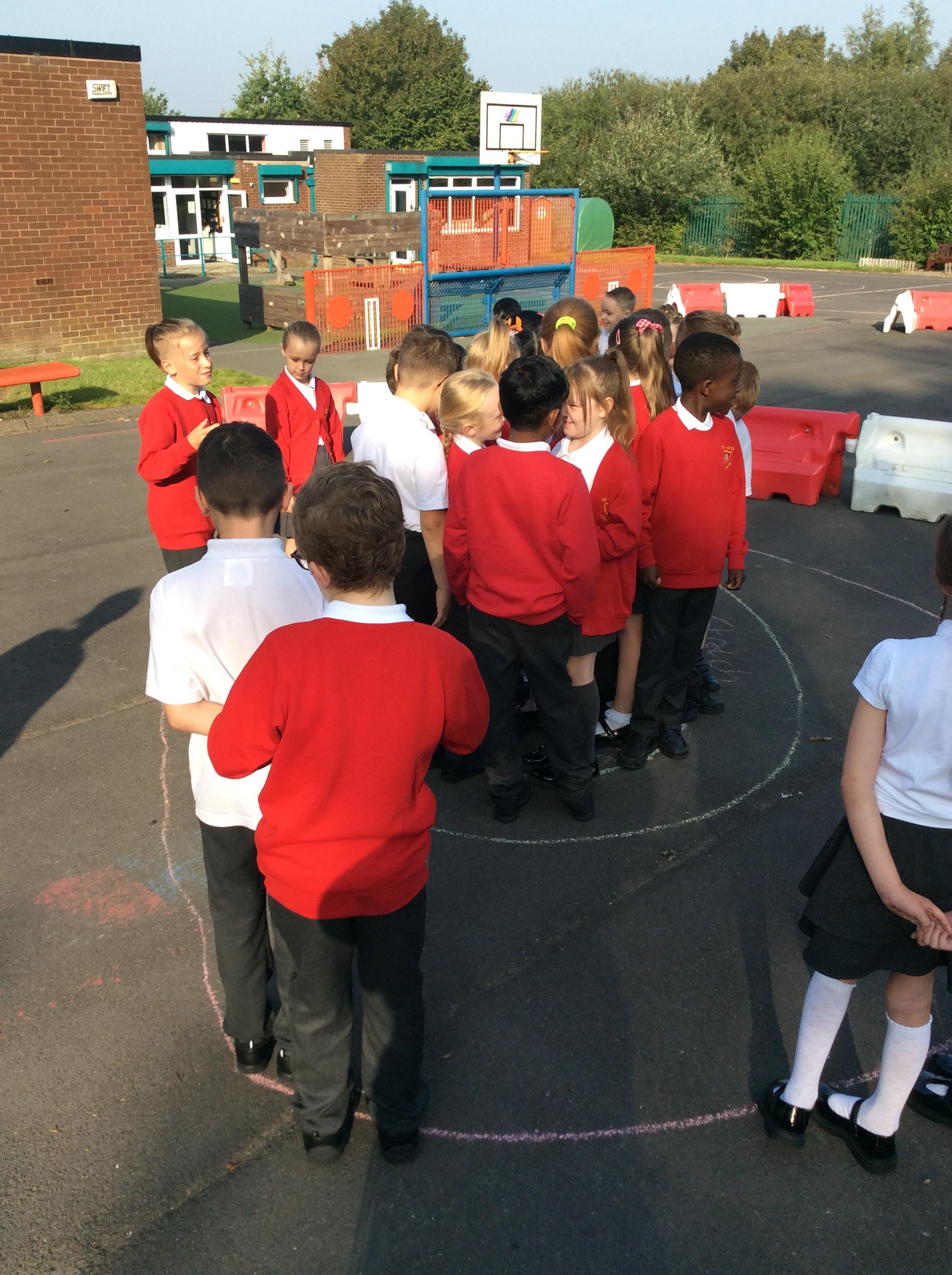 We went outside in the sunshine for worship. Mrs Cookson gave us some scenarios such as: performing a dance on newsround, speaking in front of the whole school, going down a big water slide and representing St James' at a sports competition. We had to decide whether these would fall in our comfort zone, stretch us a little or make us feel uncomfortable. We thought about what we could do to encourage ourselves and others to step further out their comfort zones.