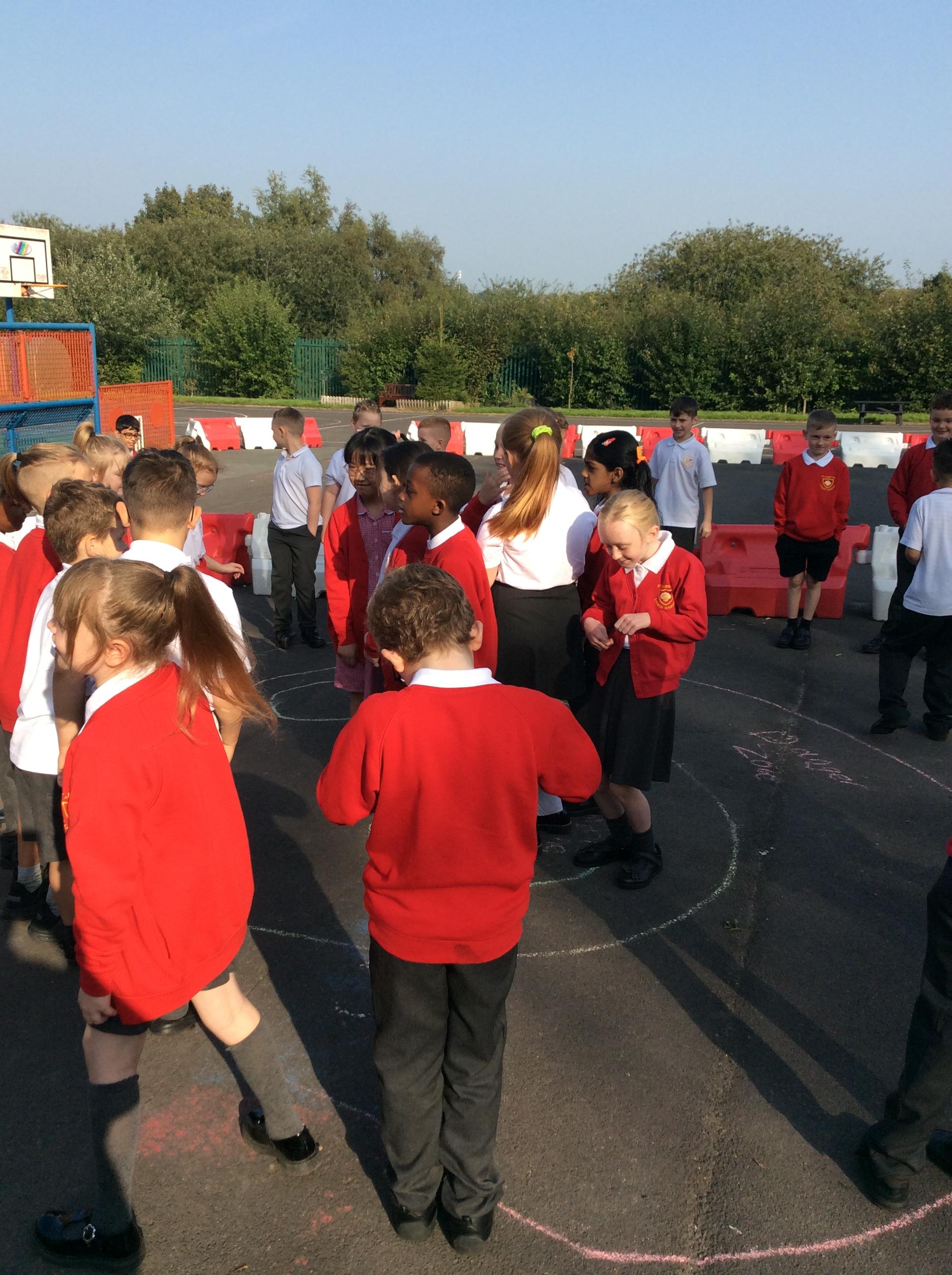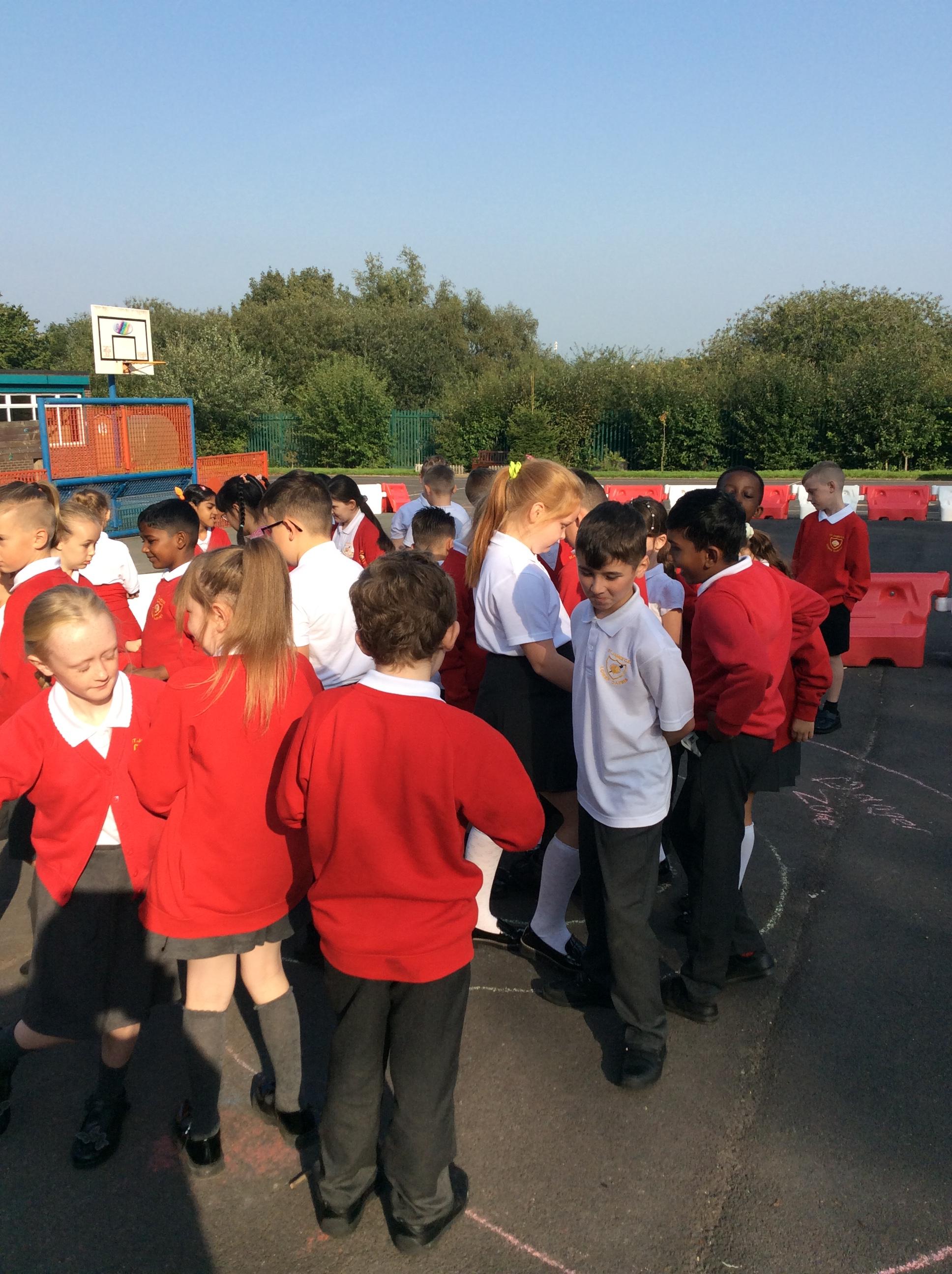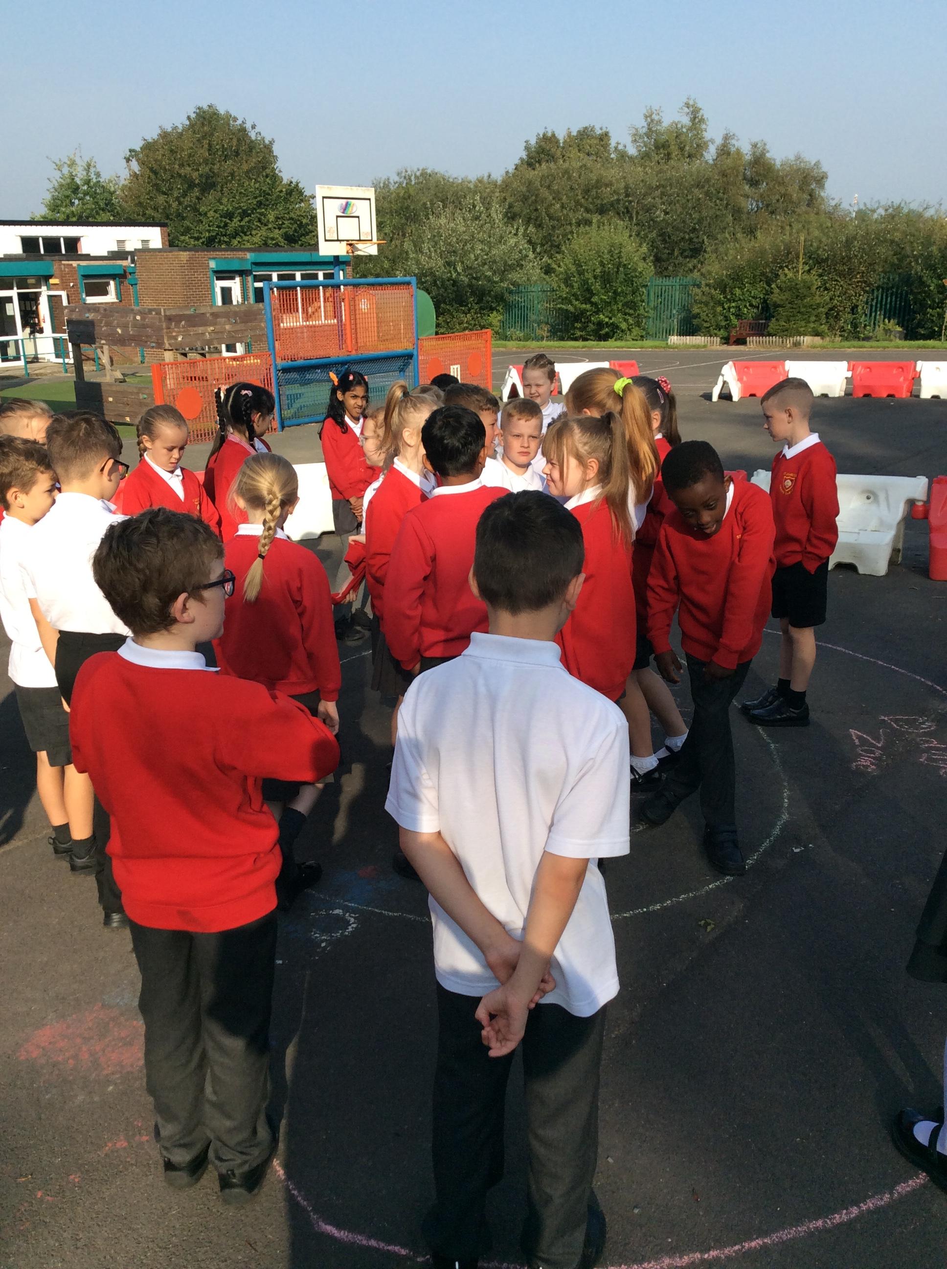 We went outside in the sunshine for worship. Mrs Cookson gave us some scenarios such as: performing a dance on newsround, speaking in front of the whole school, going down a big water slide and representing St James' at a sports competition. We had to decide whether these would fall in our comfort zone, stretch us a little or make us feel uncomfortable. We thought about what we could do to encourage ourselves and others to step further out their comfort zones.