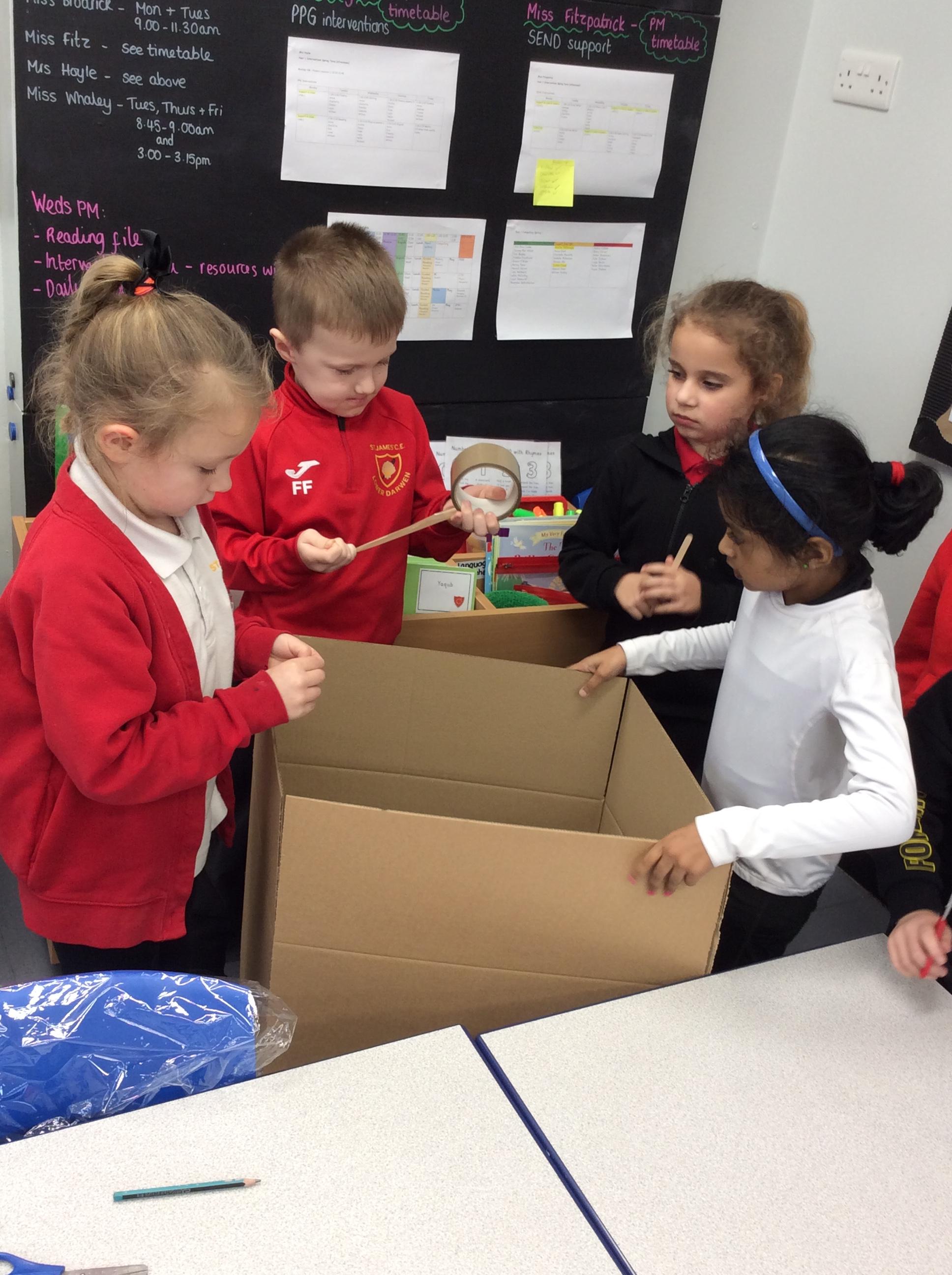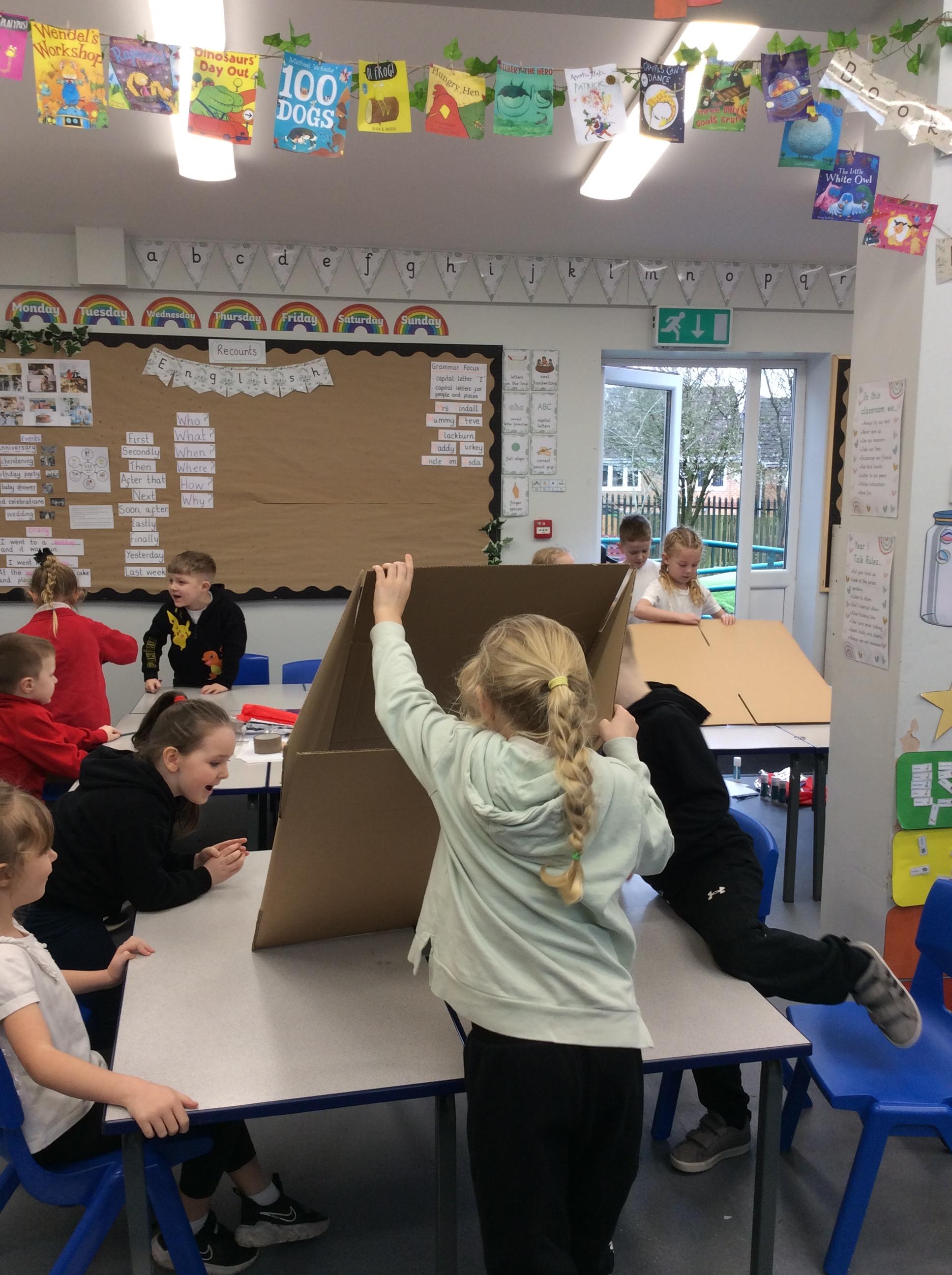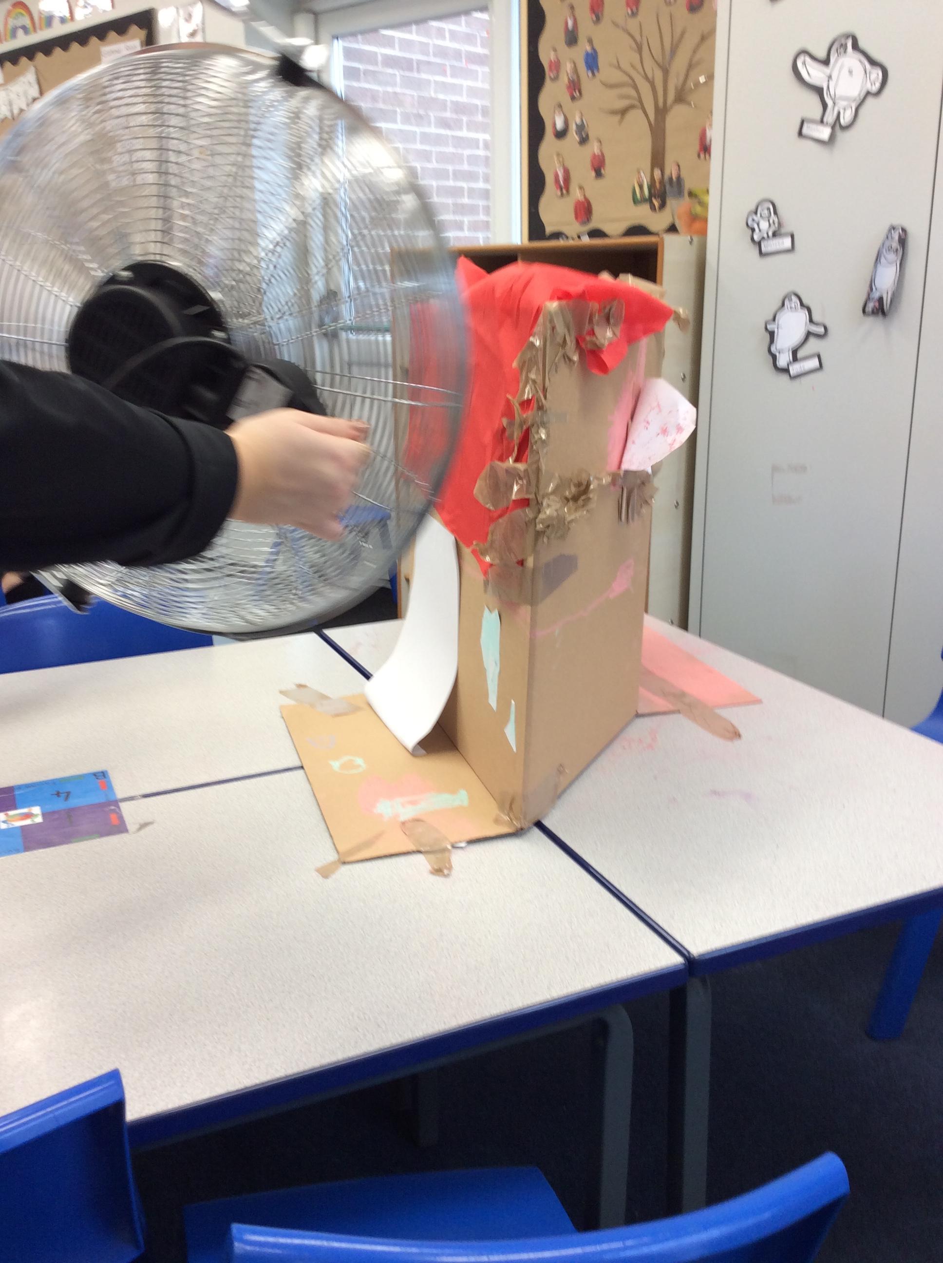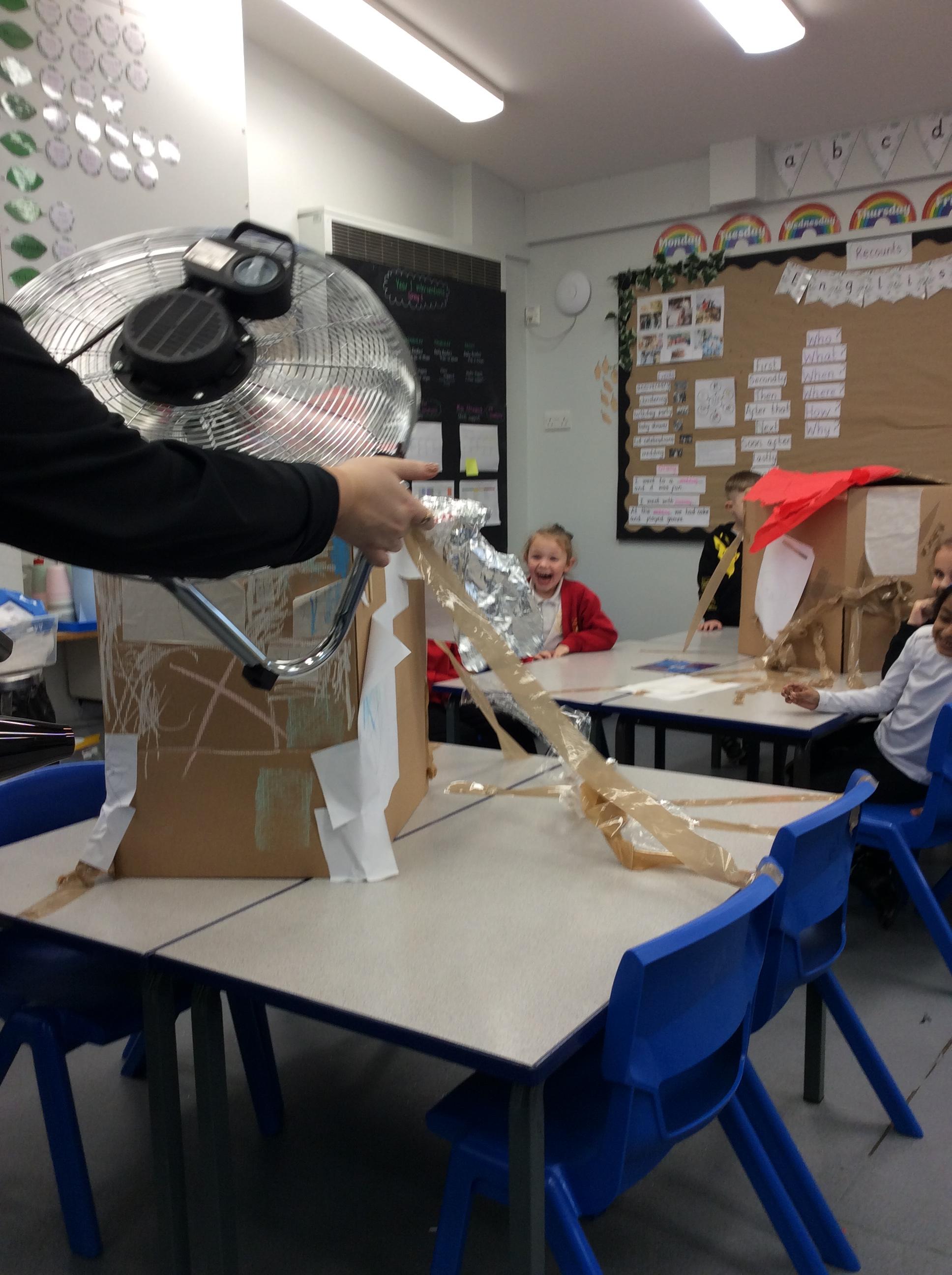 We are continuing our learning of everyday materials and this week we had a super fun lesson! We had to select different everyday materials that would be strong enough to protect the three little pigs against the big bad wolf. We had to use different materials to construct a house that could withstand the big bad wolf (Miss Whaley's hairdryer!). It was so much fun and 5 out of 6 houses survived!