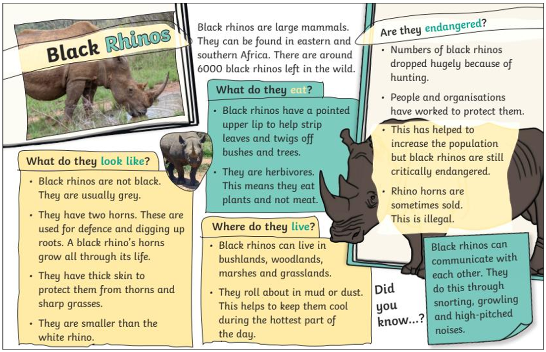 This week we learnt new vocabulary about black rhinos and enjoyed finding out some information about them.