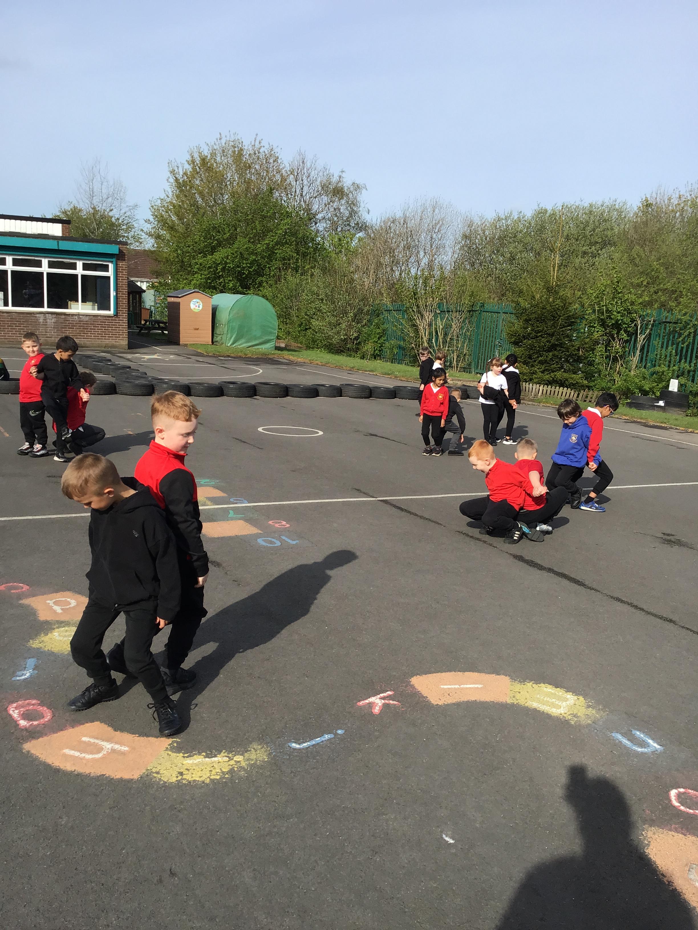 They enjoyed playing partner stand, share the load and sandwich tag.