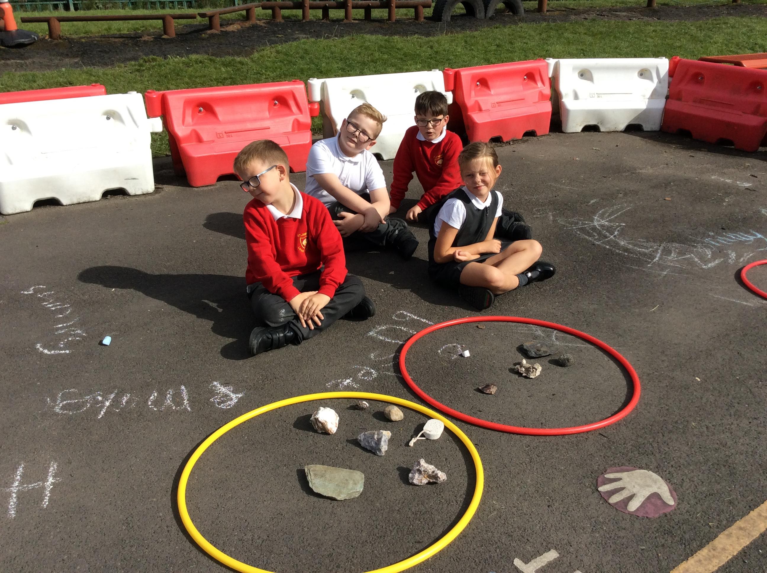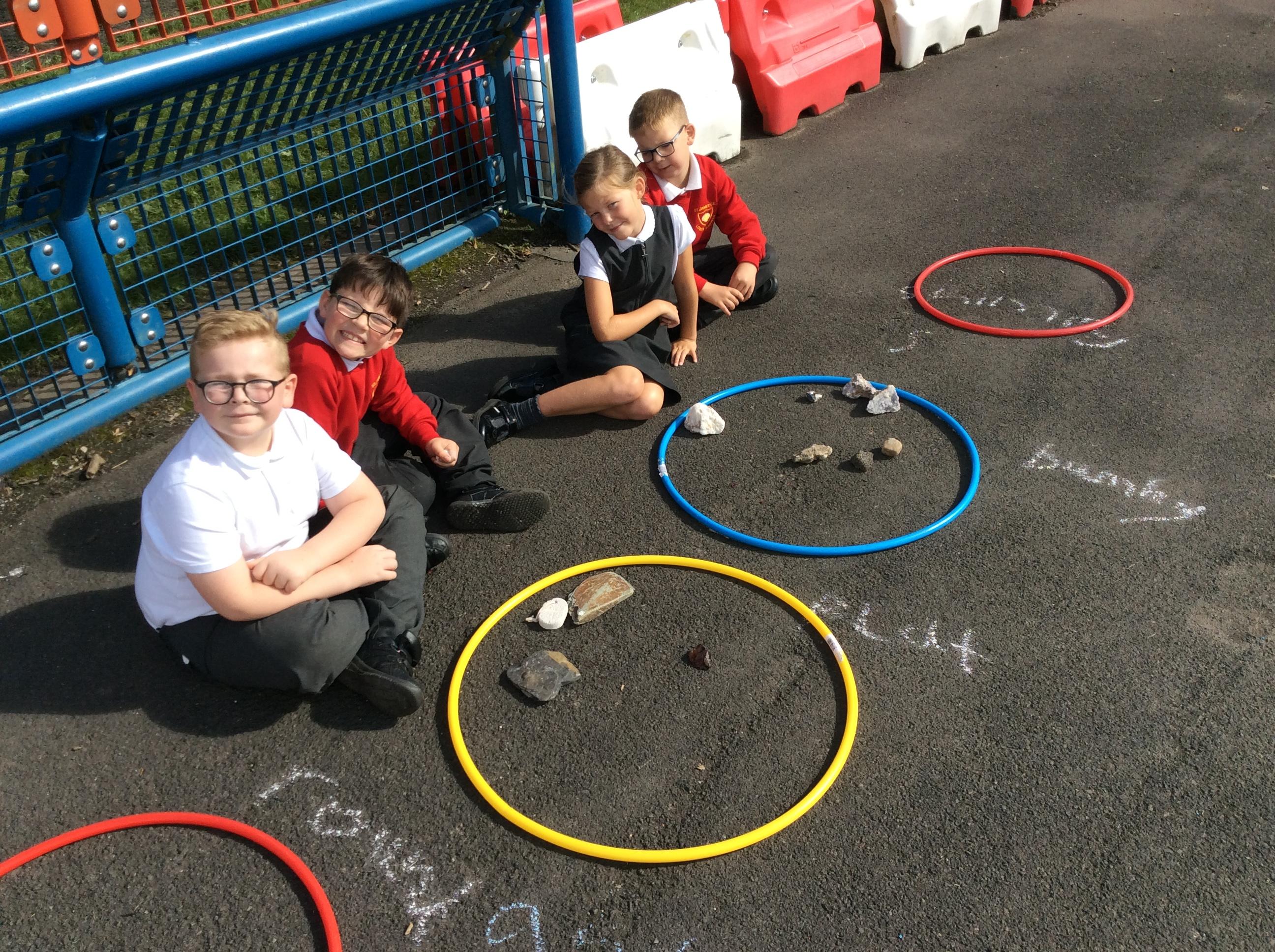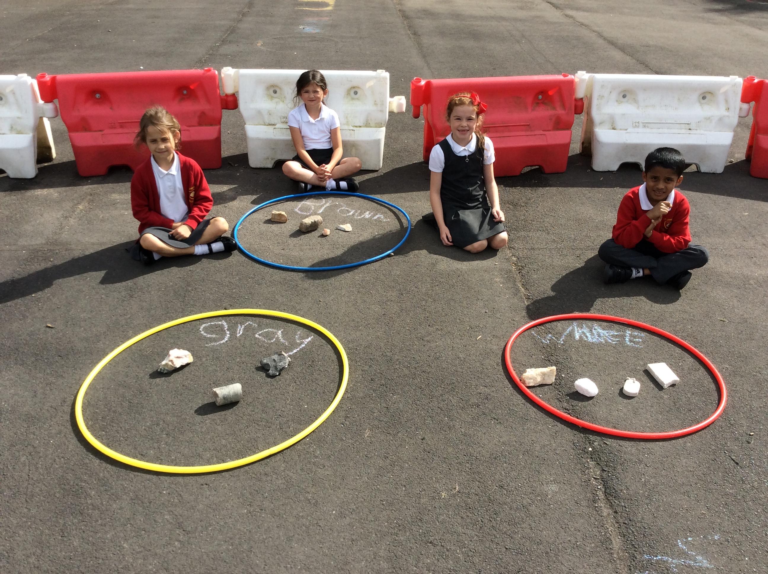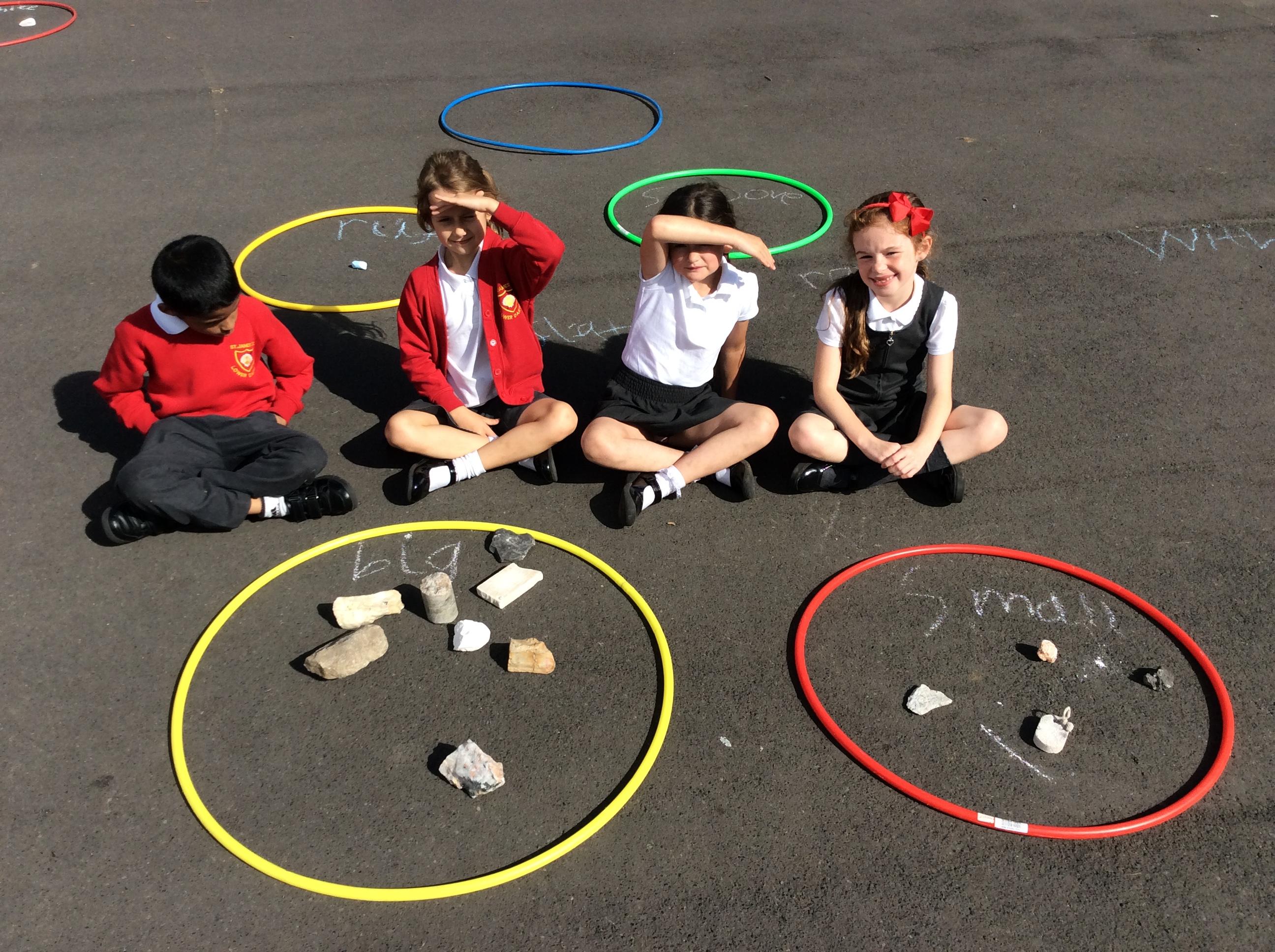 Year 3 became geologists in science when they came up with their own ways to group rocks. We took our learning outside and used chalk and hoops to make the groups. This was greatly enjoyed by all!