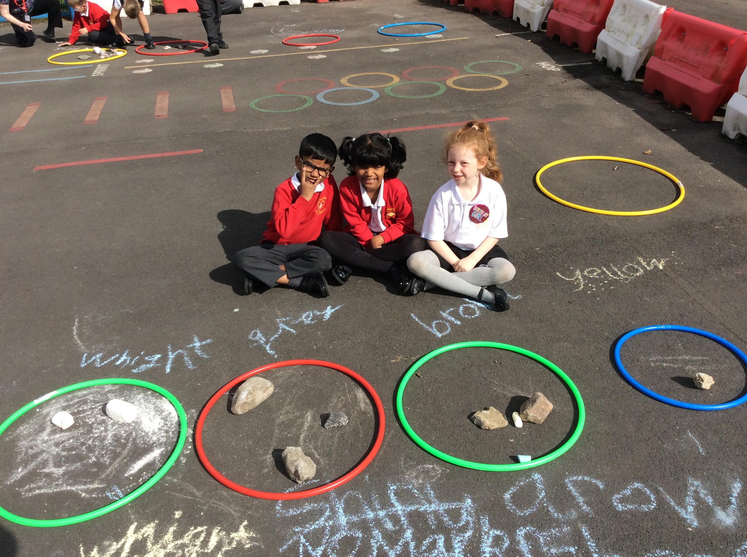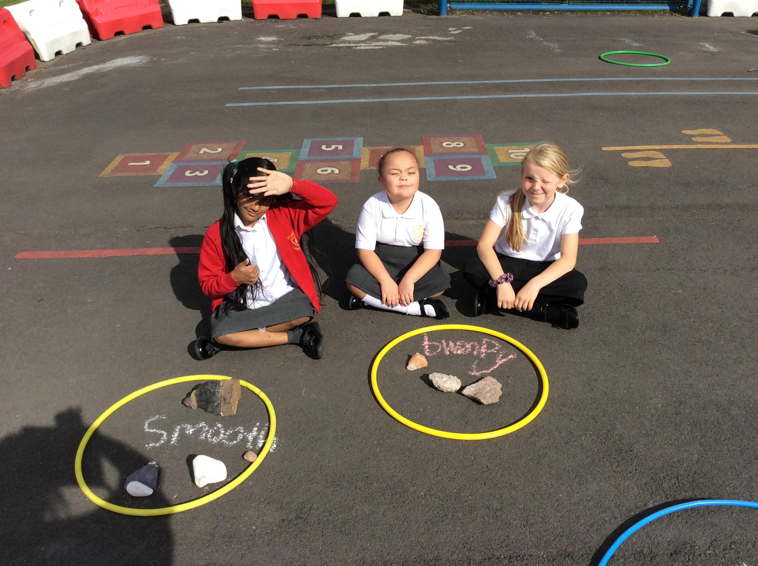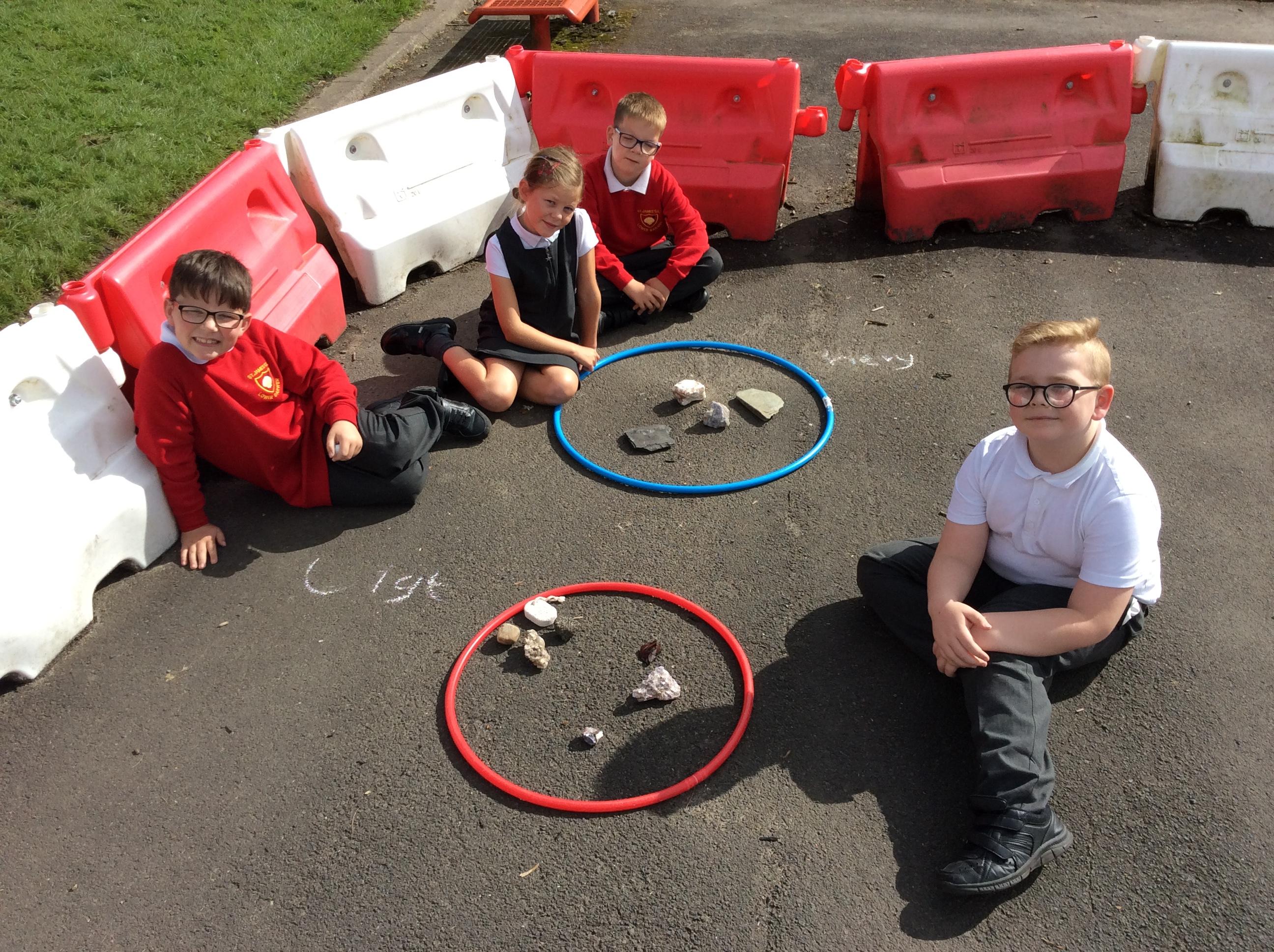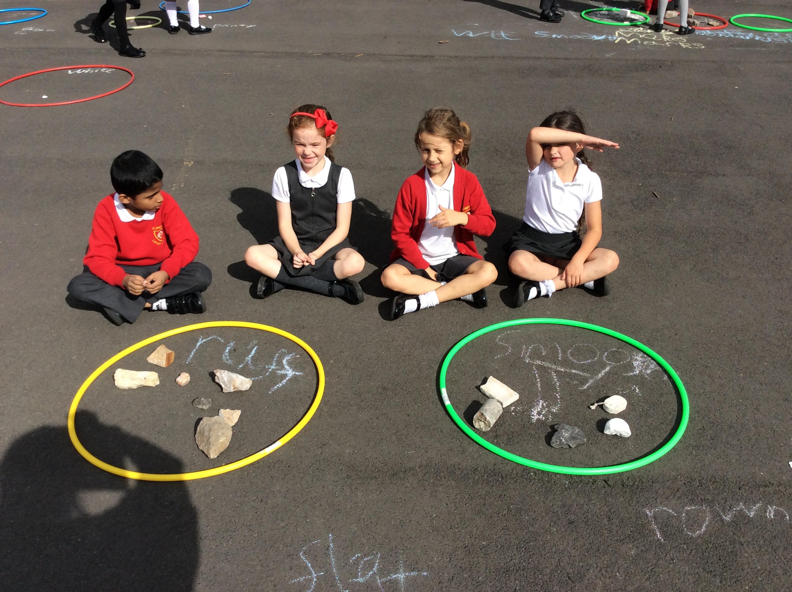 Year 3 became geologists in science when they came up with their own ways to group rocks. We took our learning outside and used chalk and hoops to make the groups. This was greatly enjoyed by all!