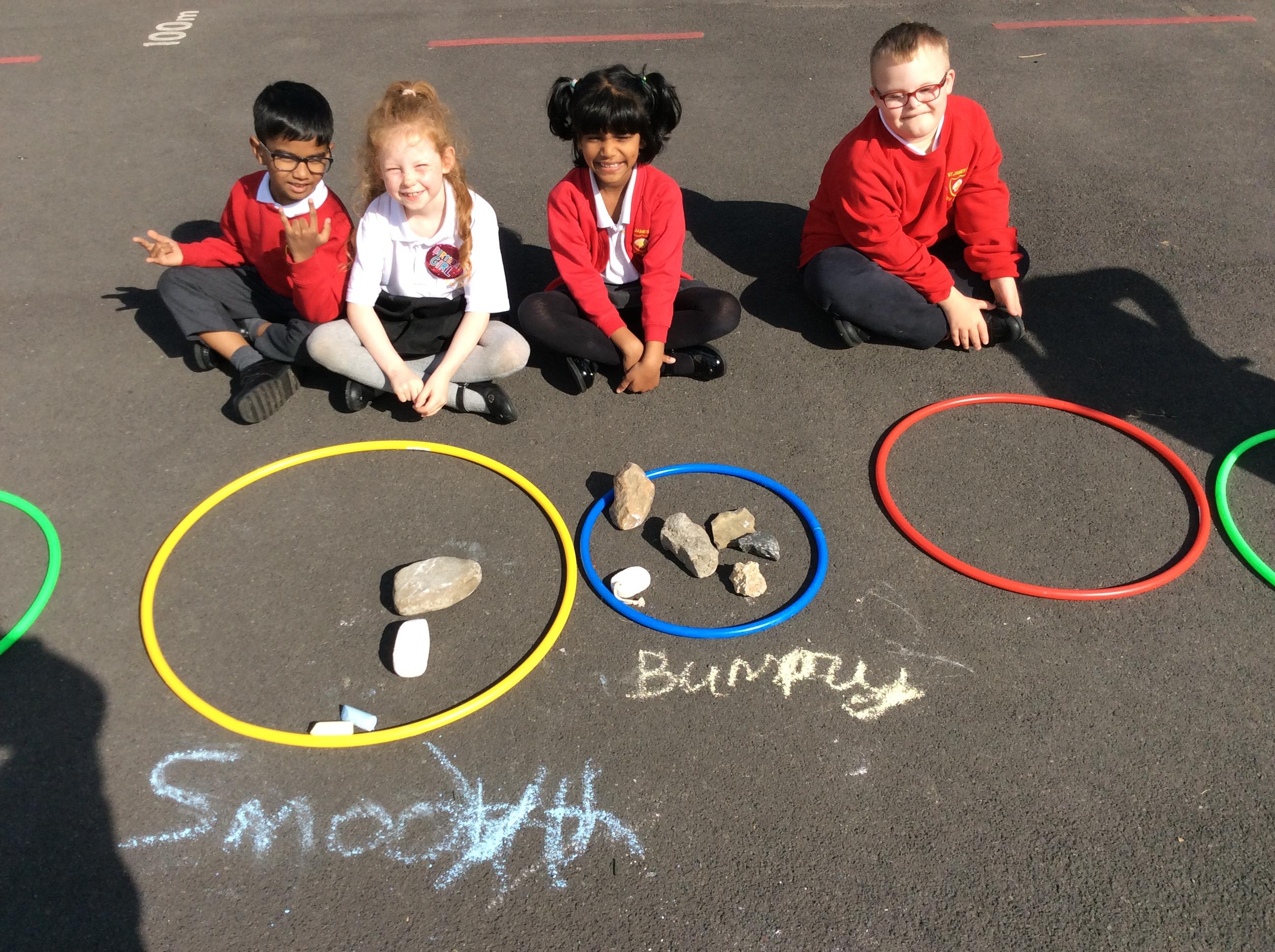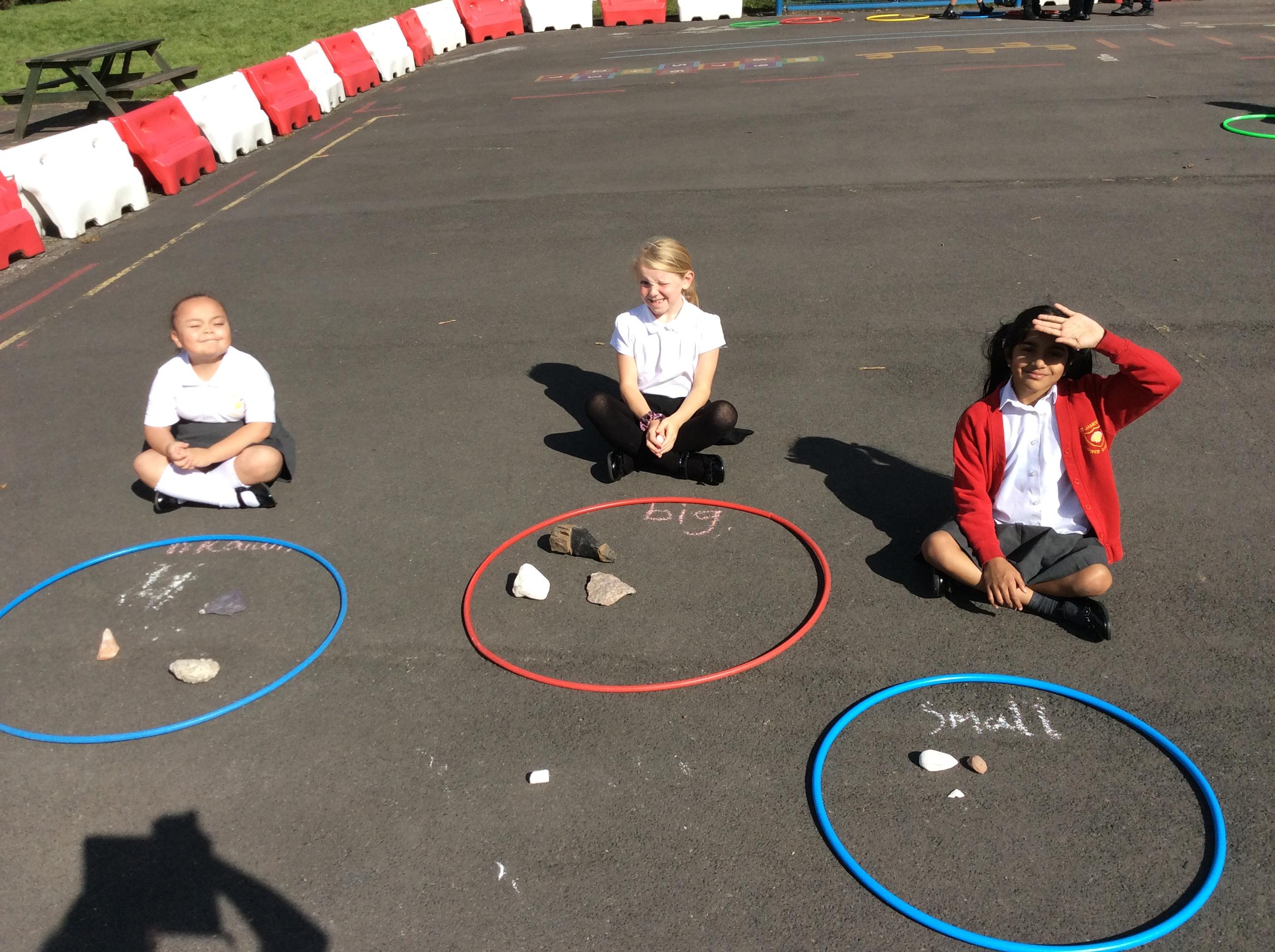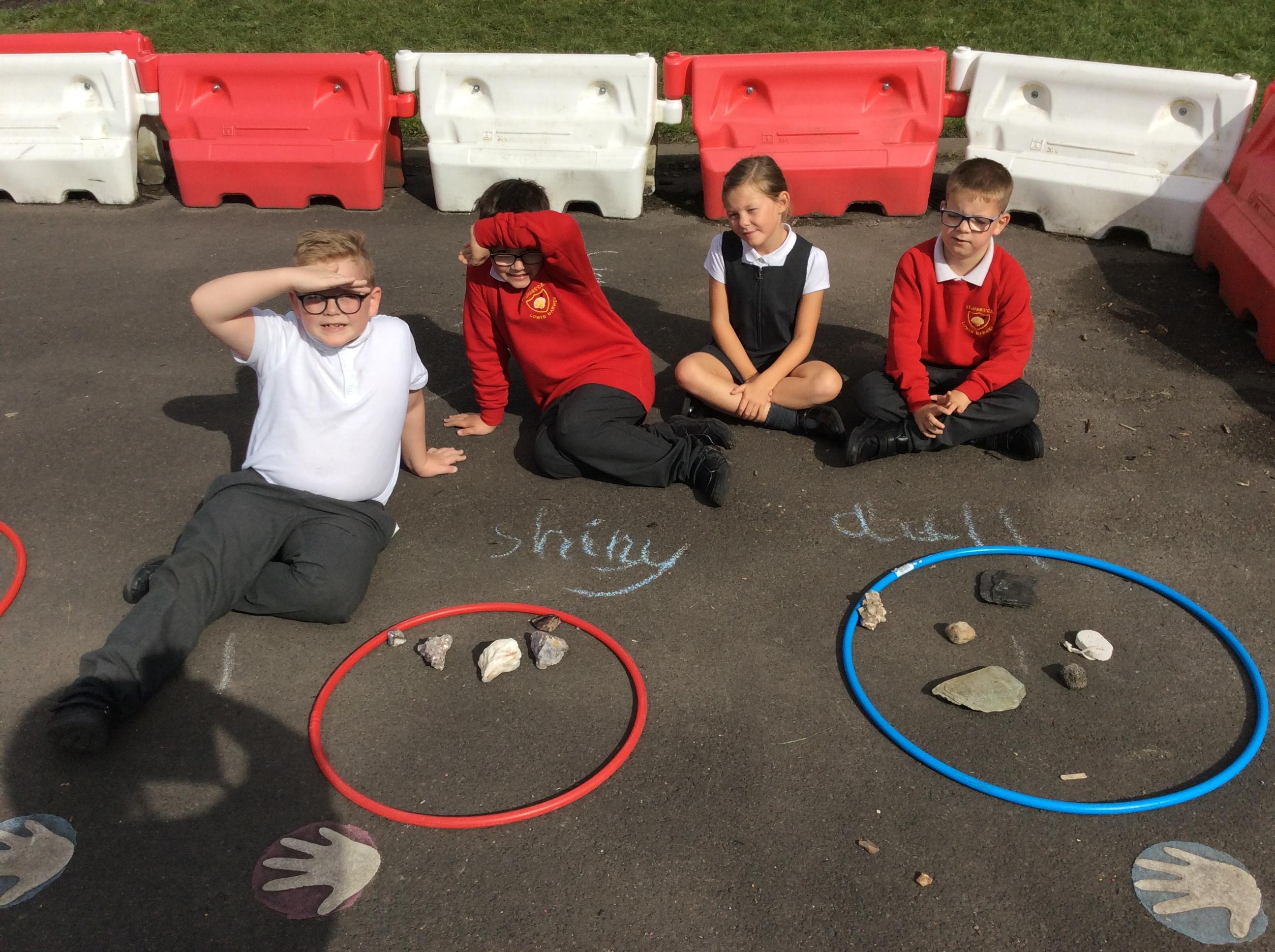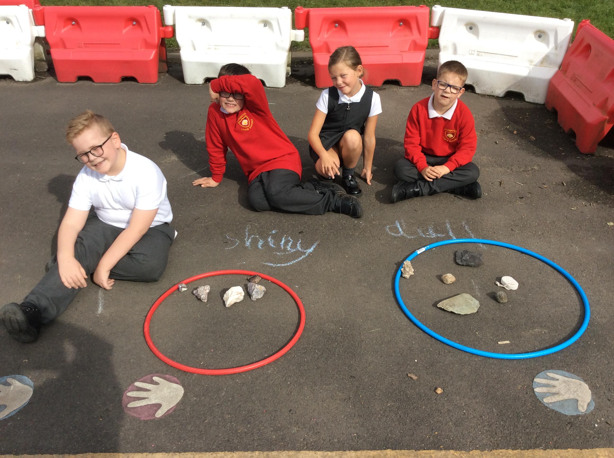 Year 3 became geologists in science when they came up with their own ways to group rocks. We took our learning outside and used chalk and hoops to make the groups. This was greatly enjoyed by all!
