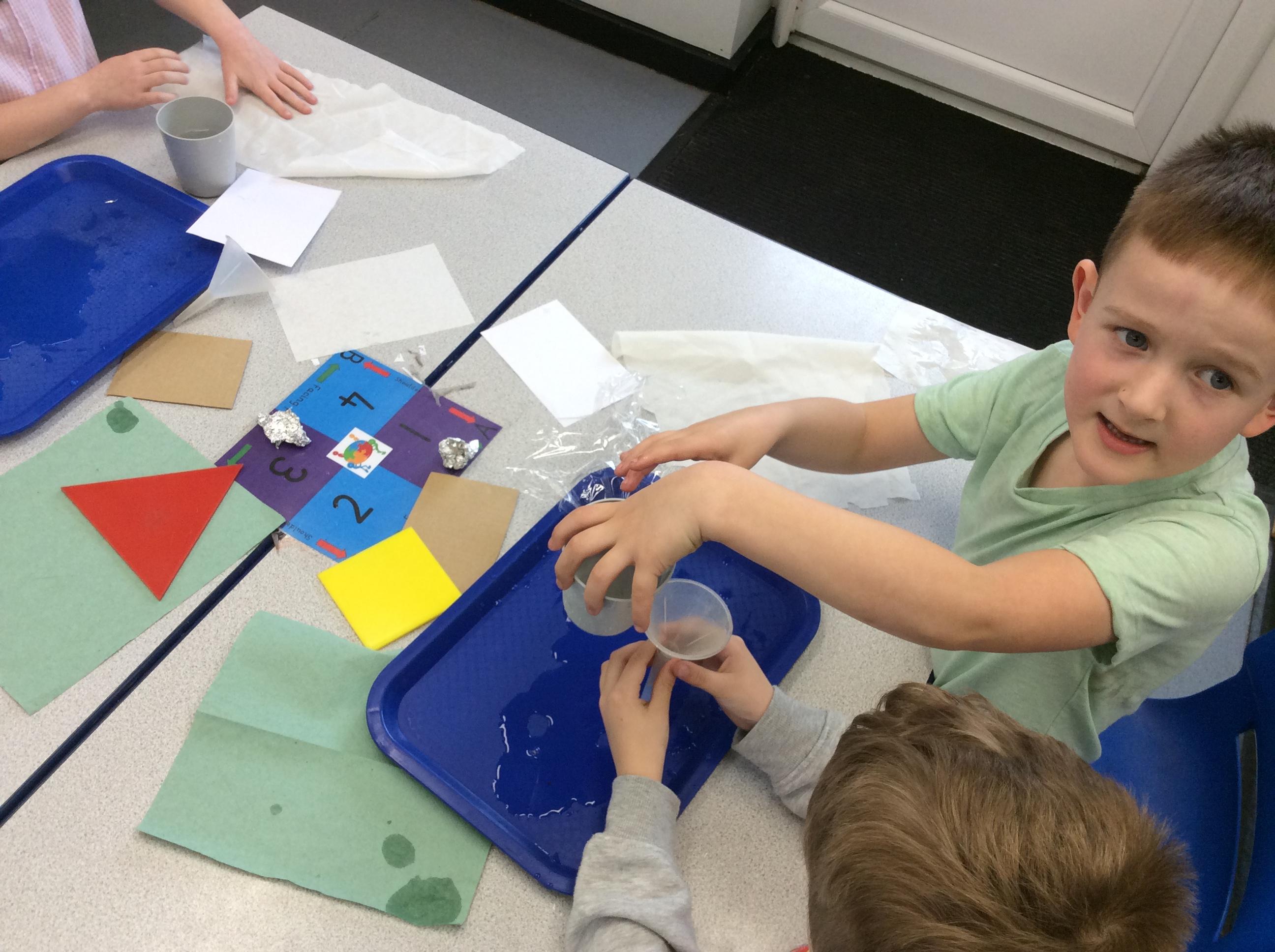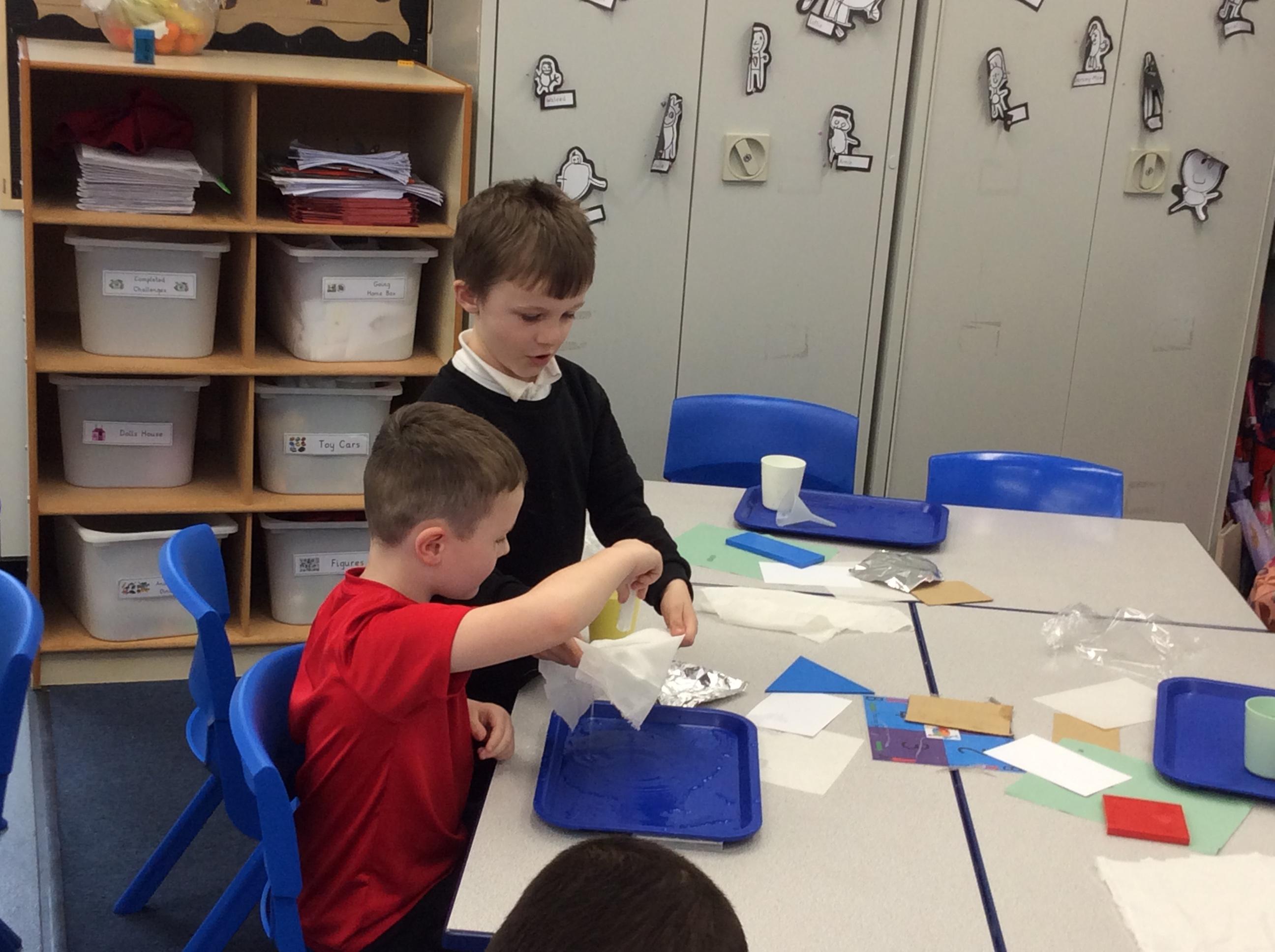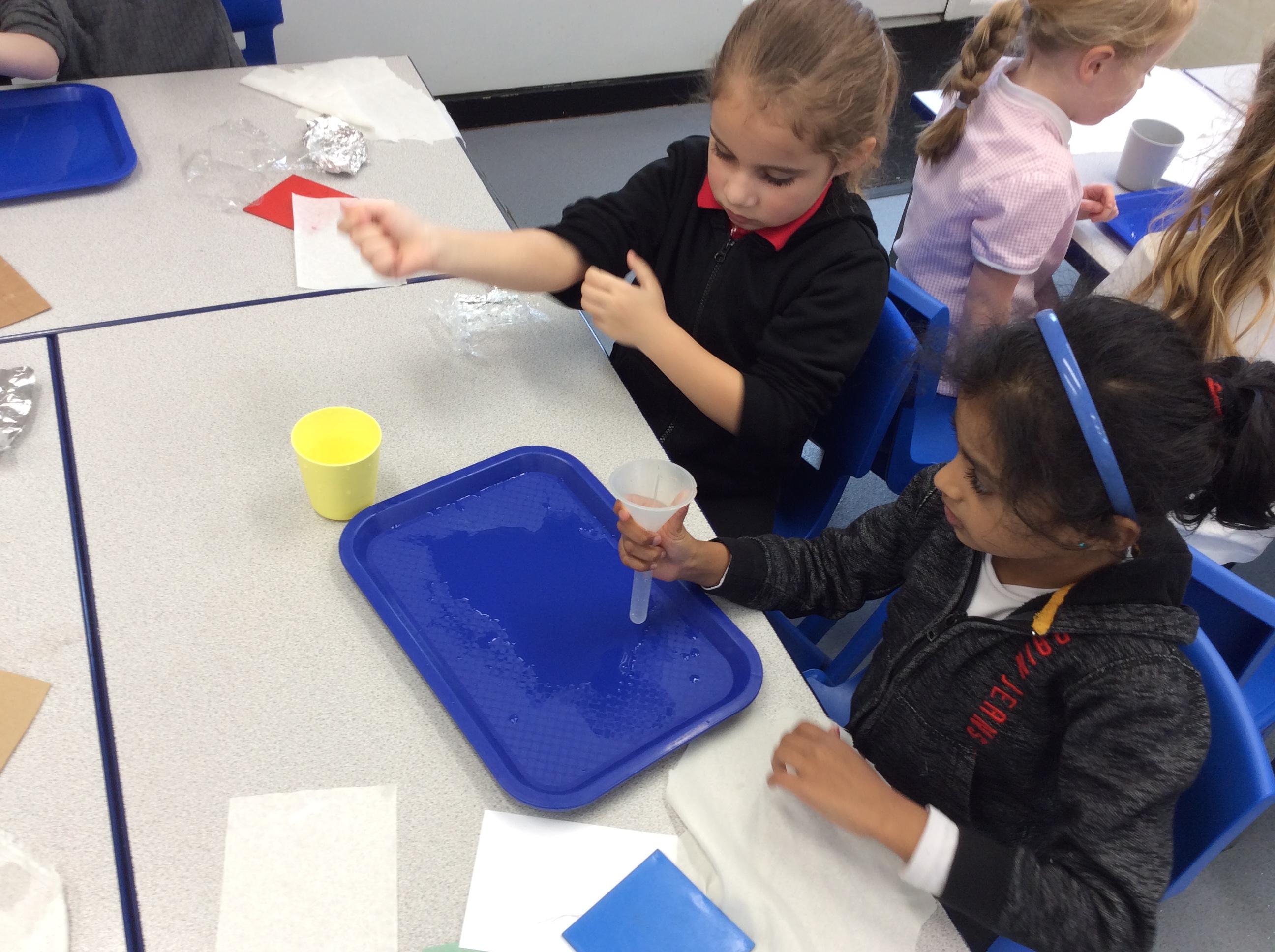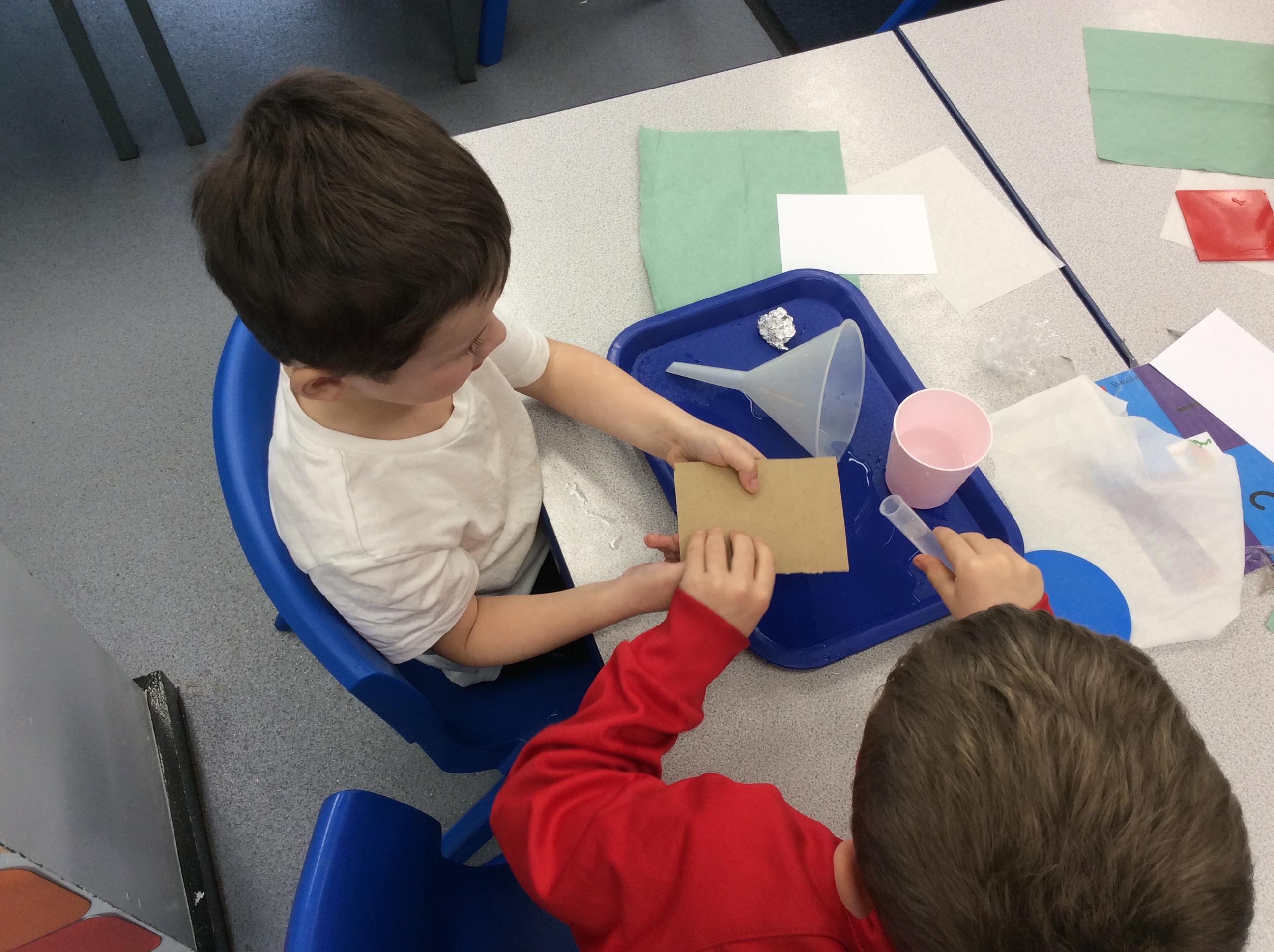 This week we carried out an investigation to find out which materials are waterproof. This was to test which materials would be suitable for the roofs of our houses.