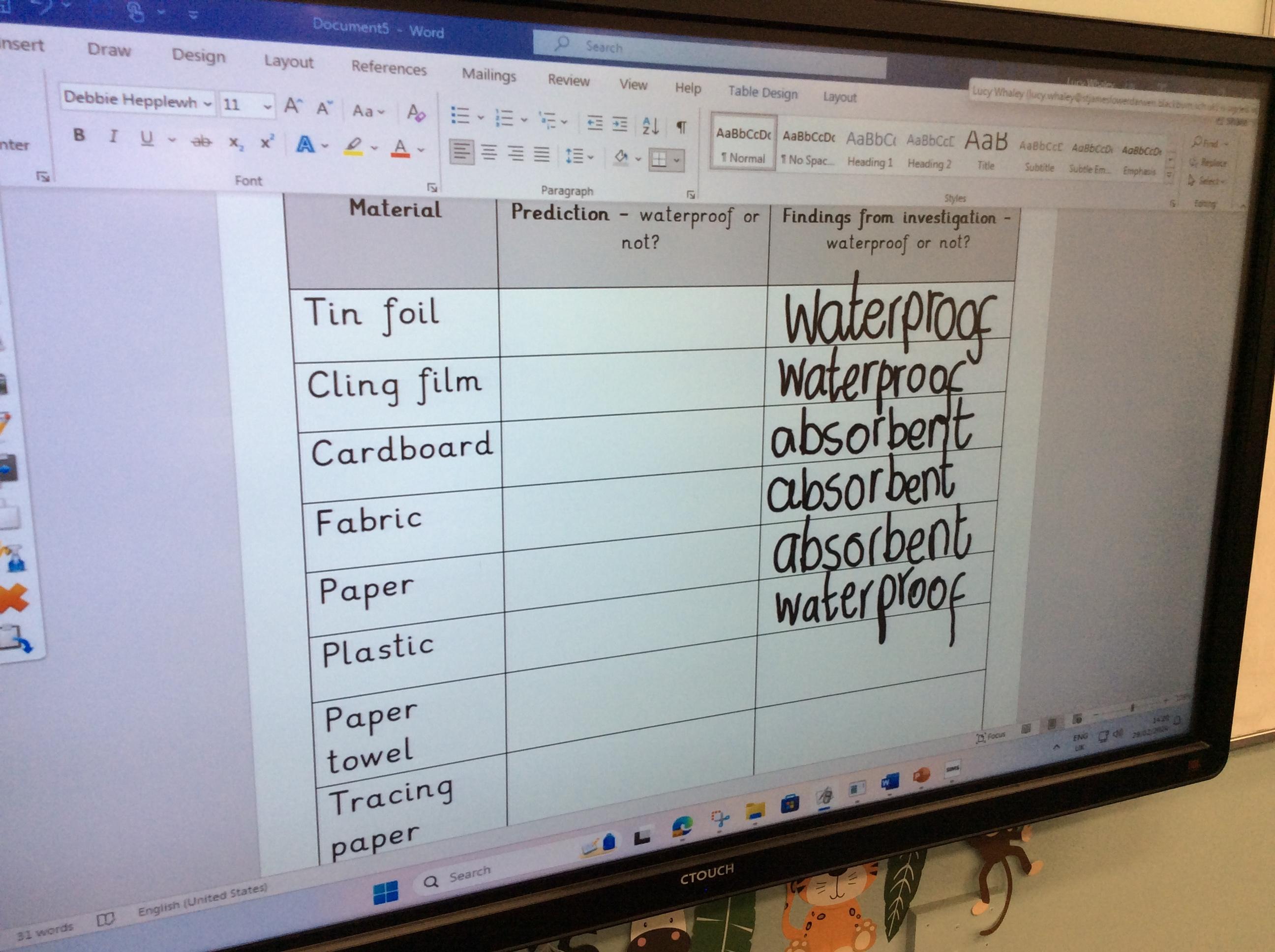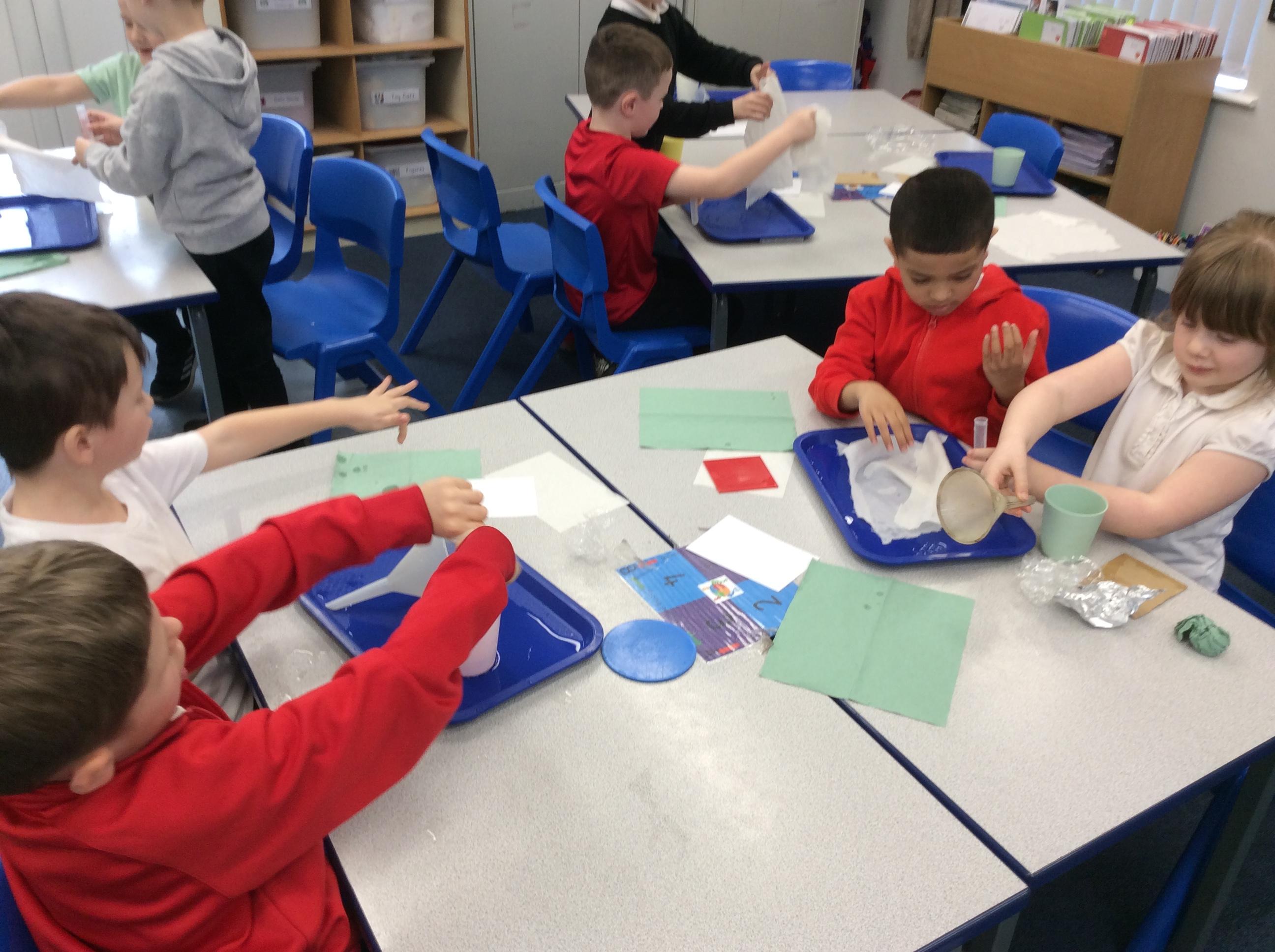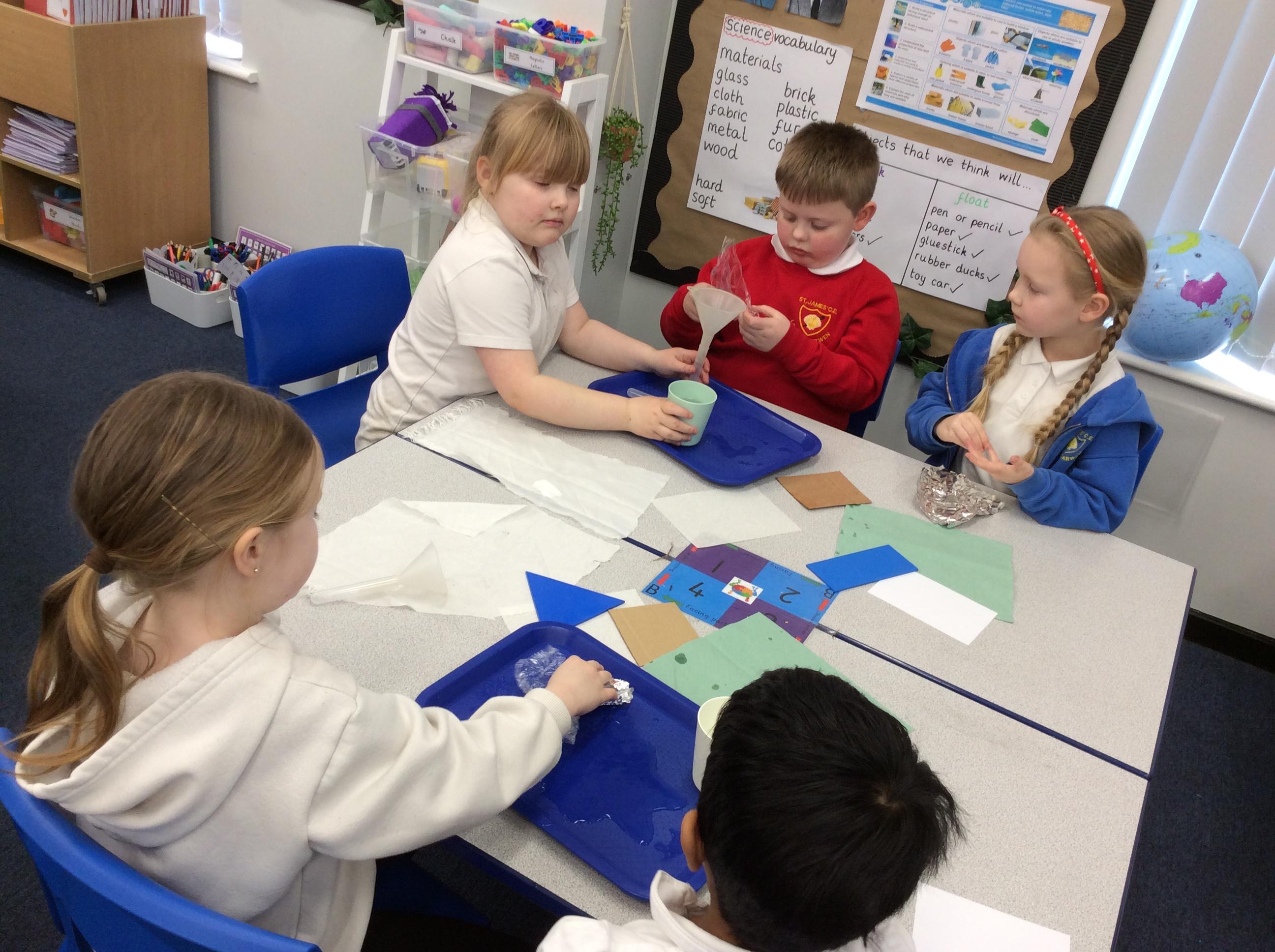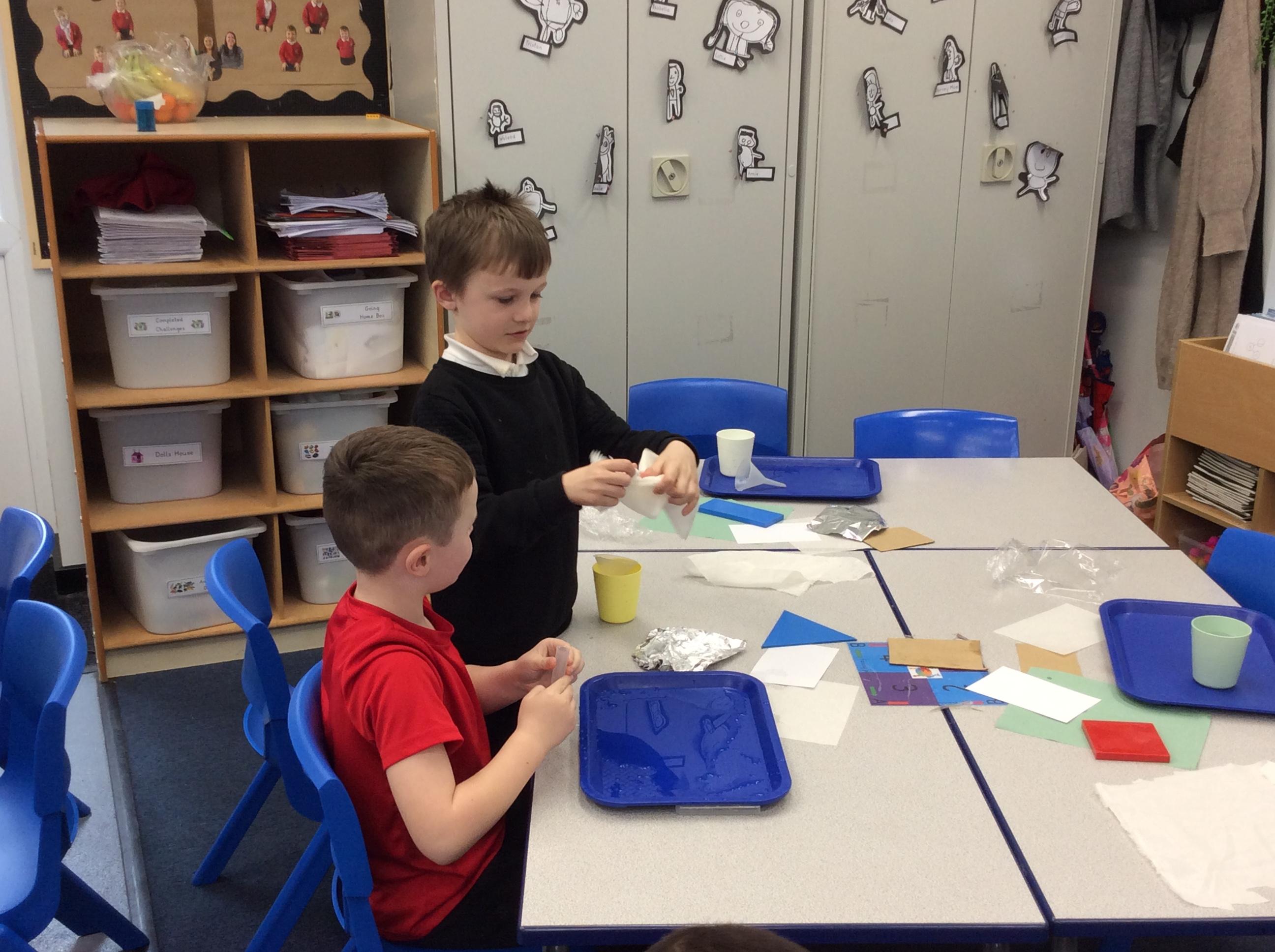 This week we carried out an investigation to find out which materials are waterproof. This was to test which materials would be suitable for the roofs of our houses.