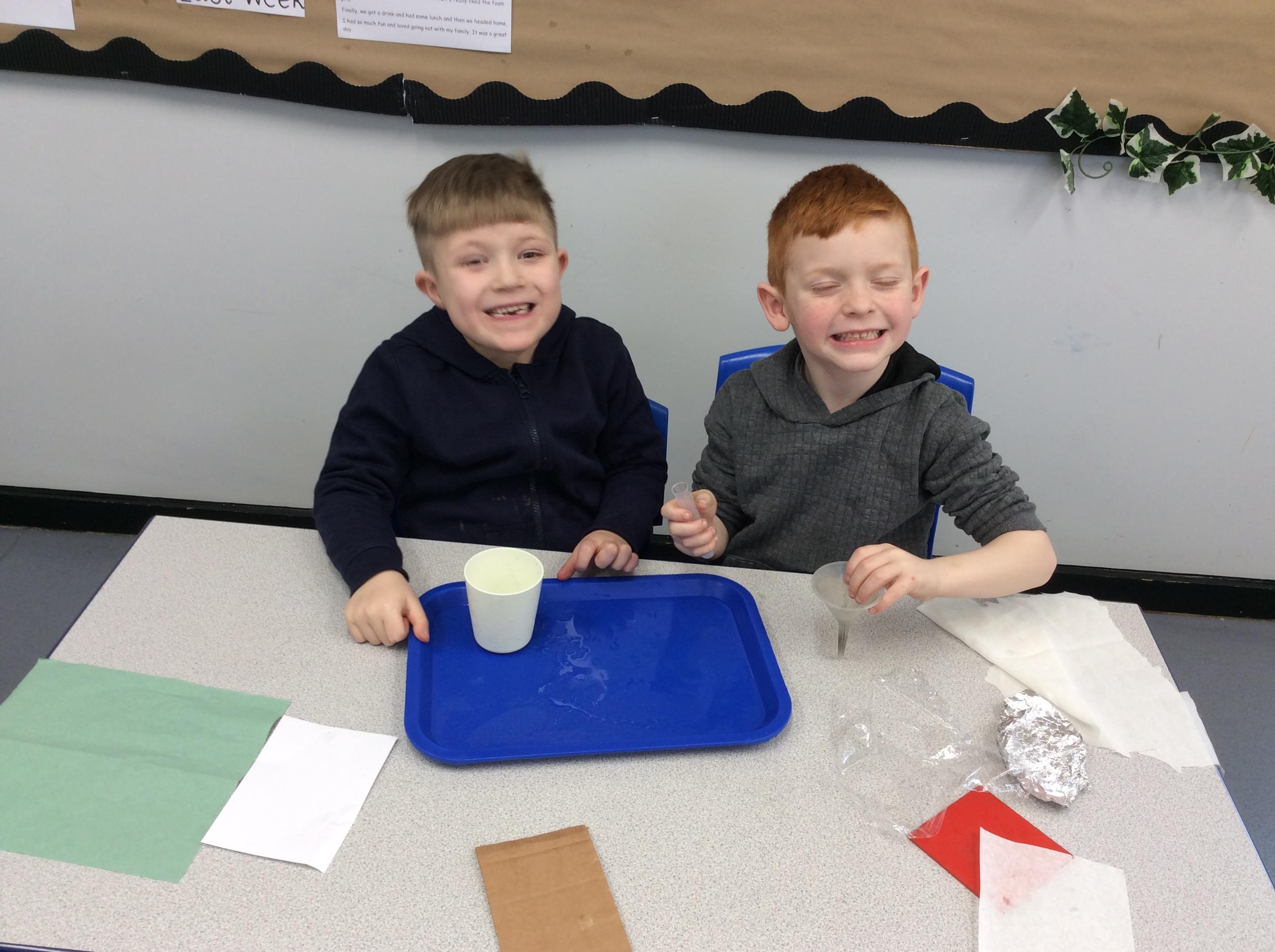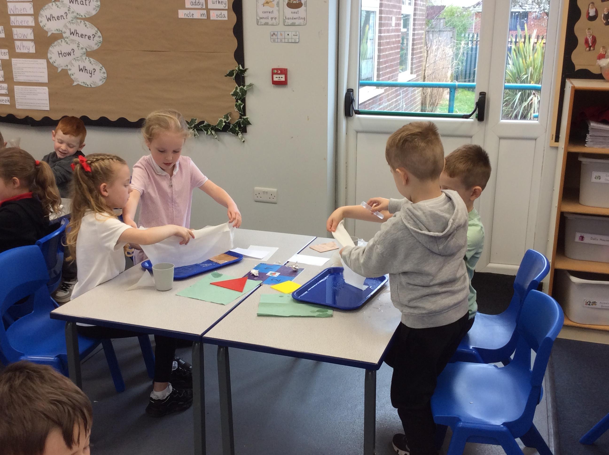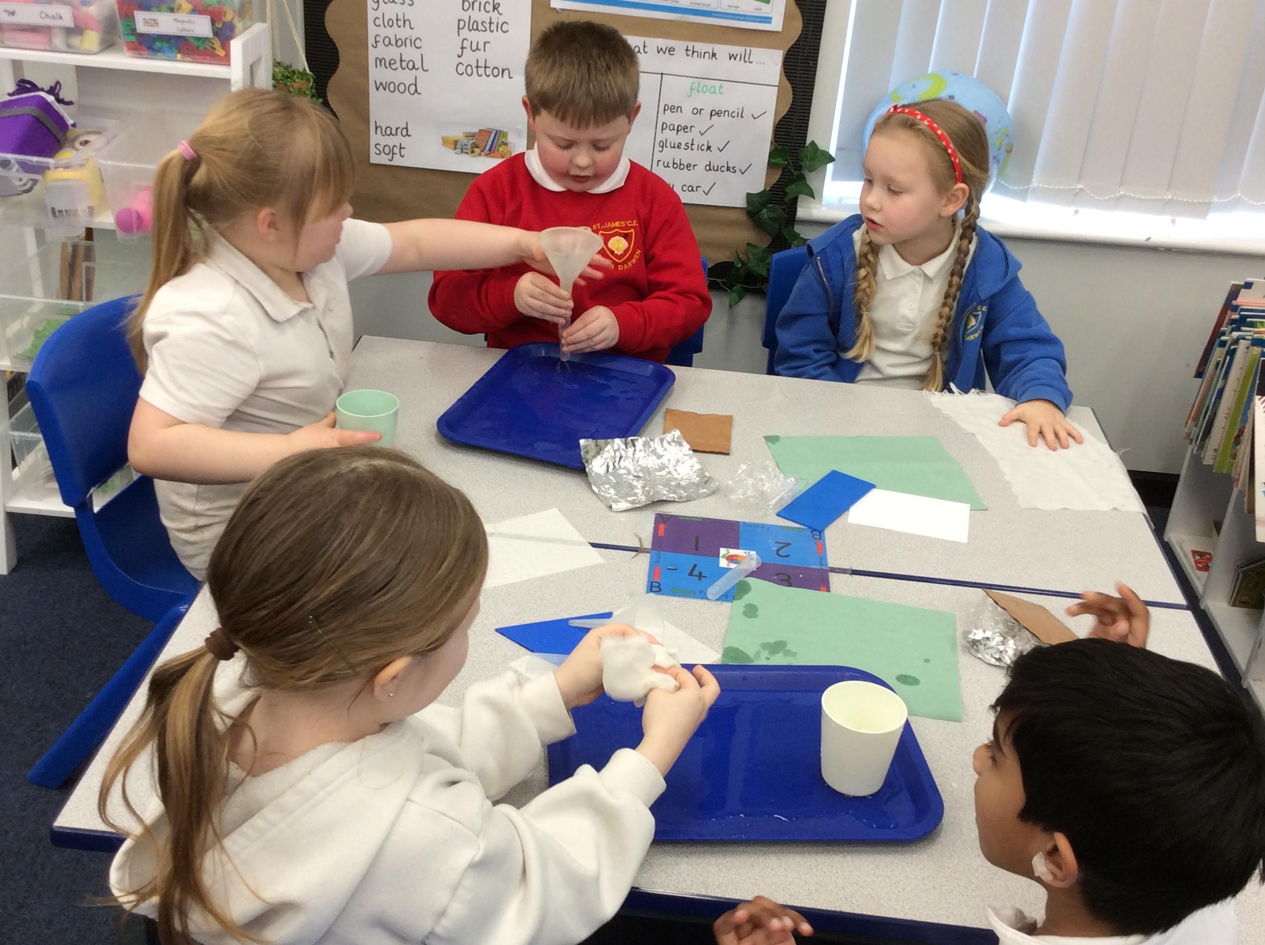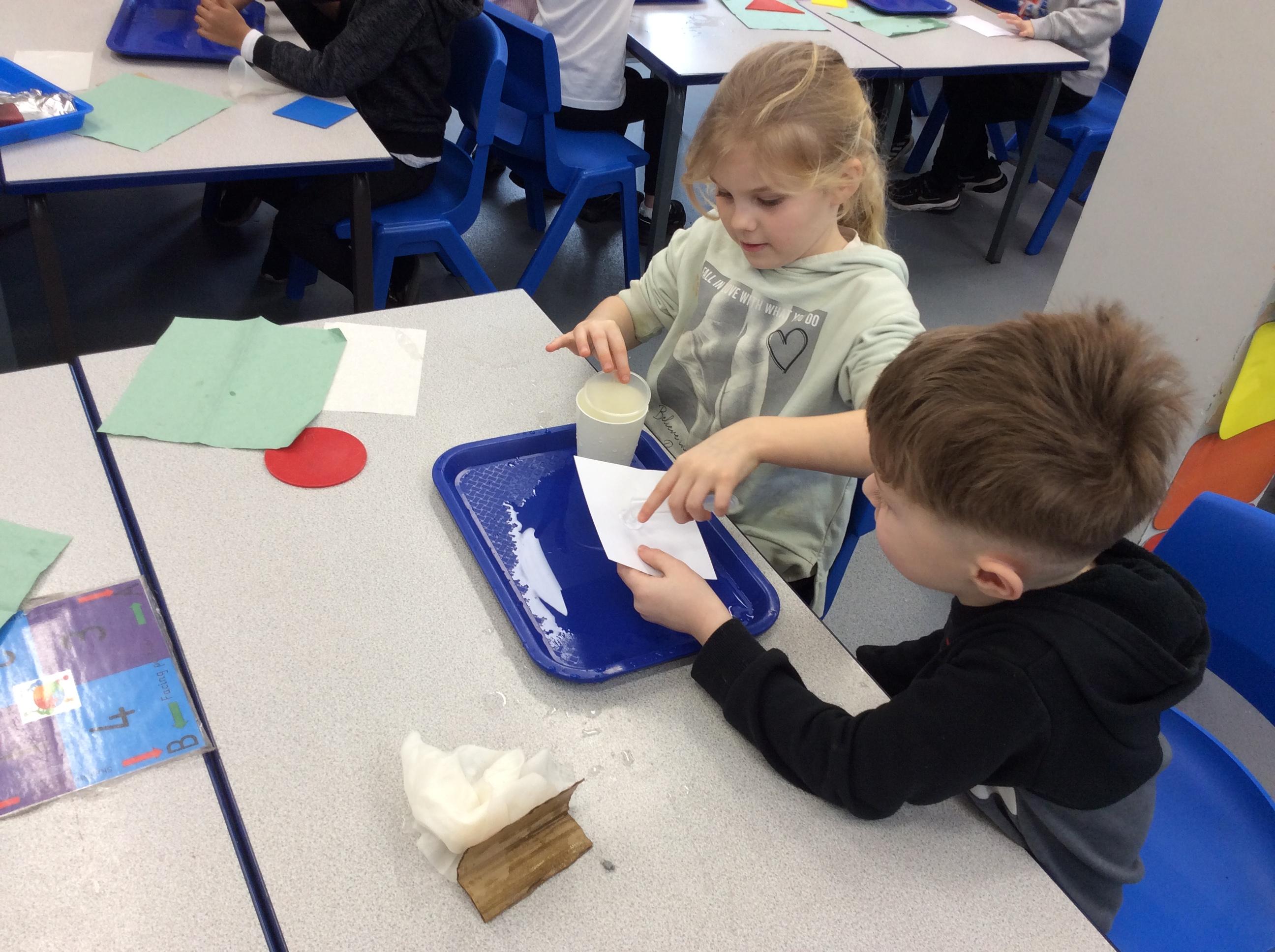 This week we carried out an investigation to find out which materials are waterproof. This was to test which materials would be suitable for the roofs of our houses.