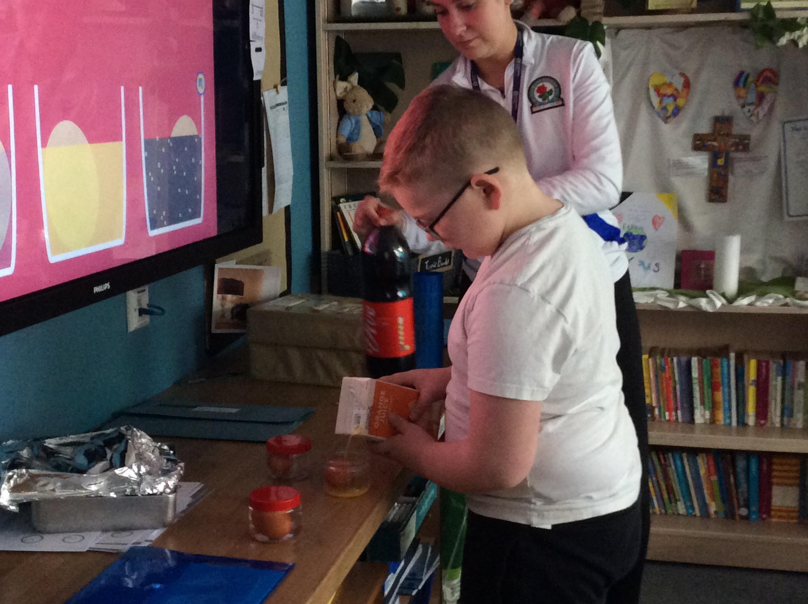 GULP Project - This week we set up an investigation to see what happens to eggs when they are submerged in different juice.