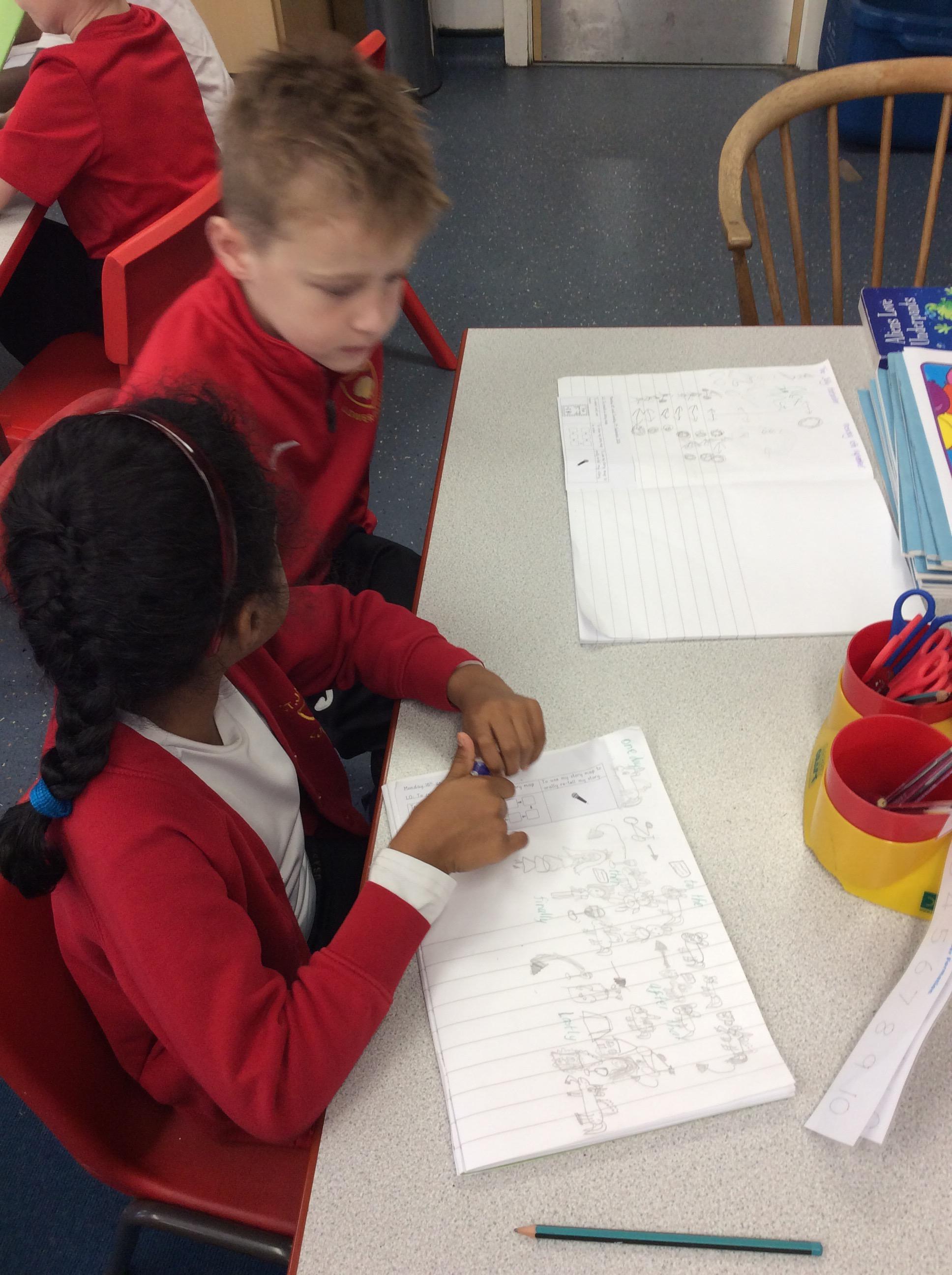 We have carried on with The Jolly Postman, this week sees the children beginning to write their own version of the story. The class have all drawn their story maps. They have then practised with the shoulder partners and their Kagan table groups, retelling their stories.