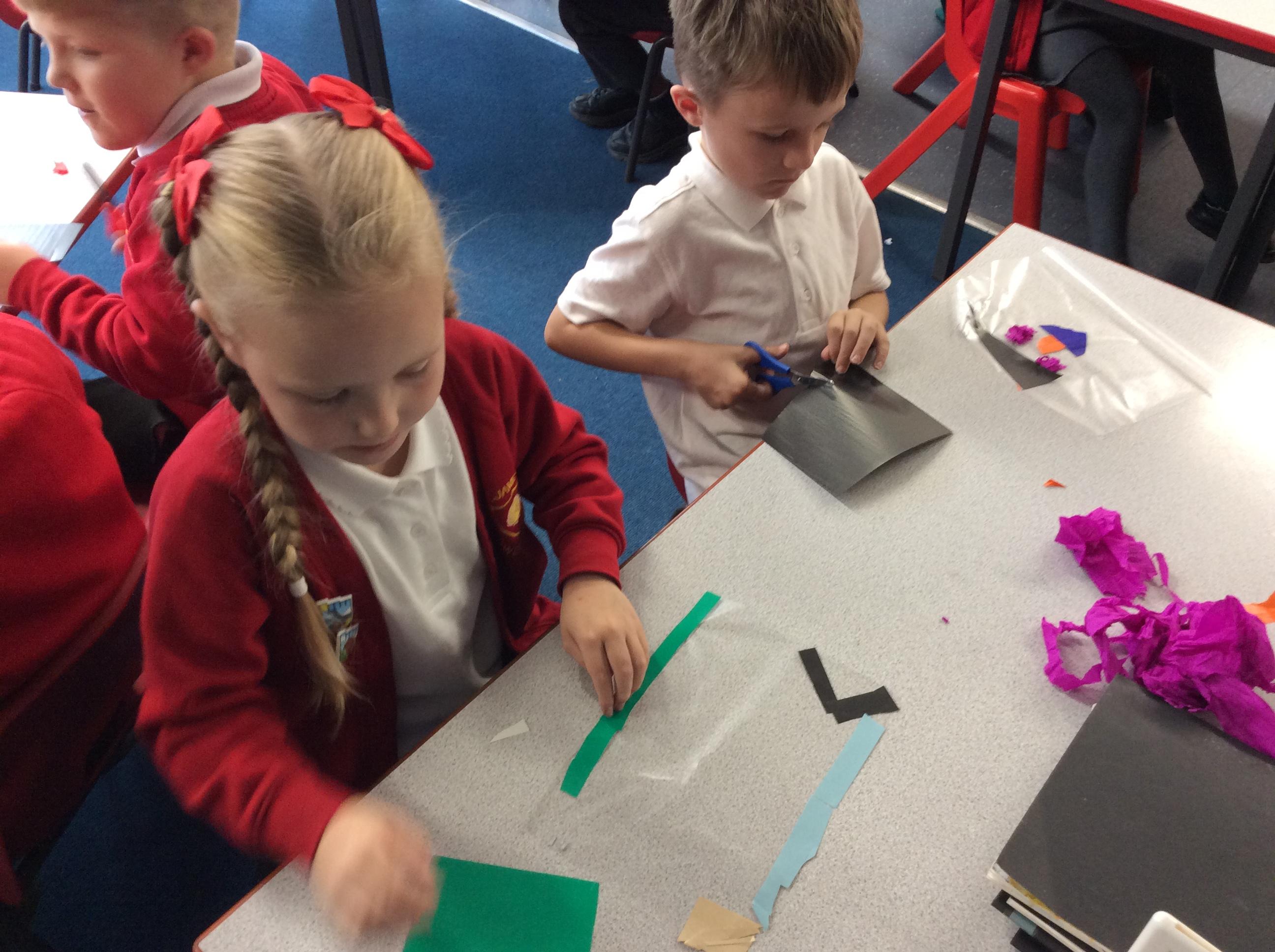 This week Year 2 have been experimenting with colour and shape. The children have learnt about stained glass windows. They were then given instructions to make their own stained glass map, from their work from week 1. Each child's work is completely unique.