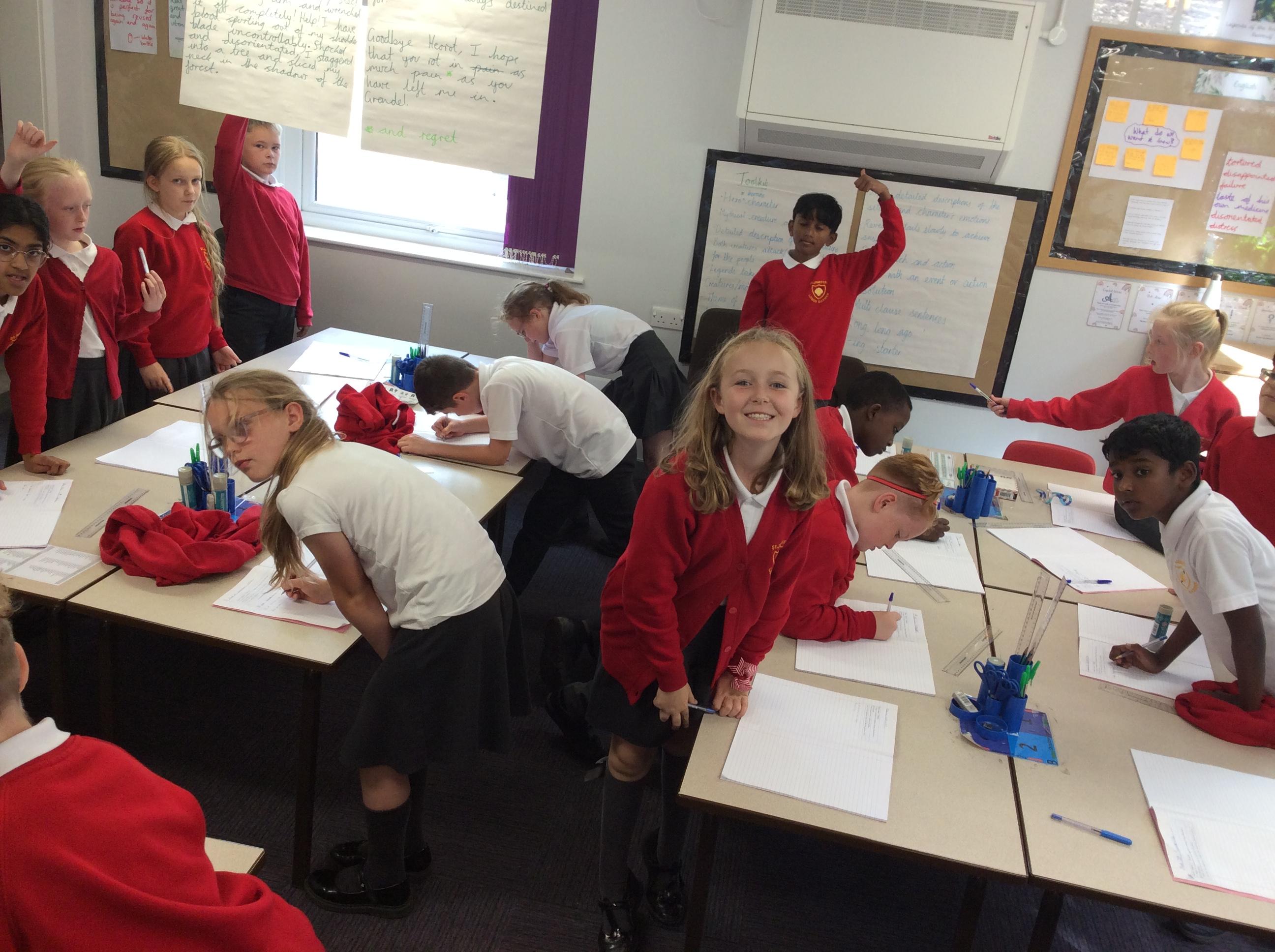 This week, Year 5 trialled 'No chair Tuesday'. This is part of our initiative to make St James' a more active school. In Science, we conducted an experiment to find out which materials are soluble (dissolve in a solvent) and which are insoluble (do not dissolve). We were most impressed by the oil's ability to stay completely separate from the water!