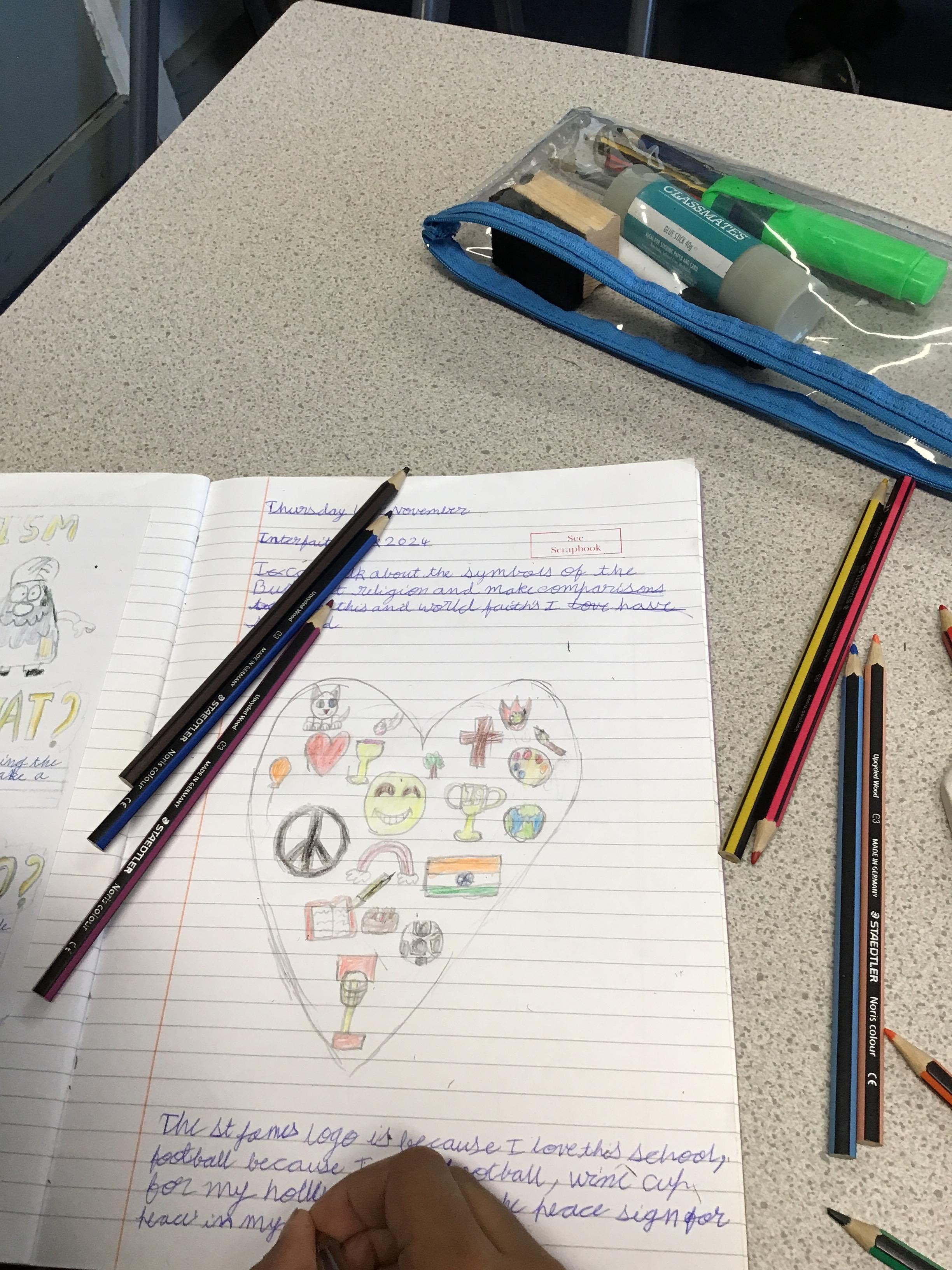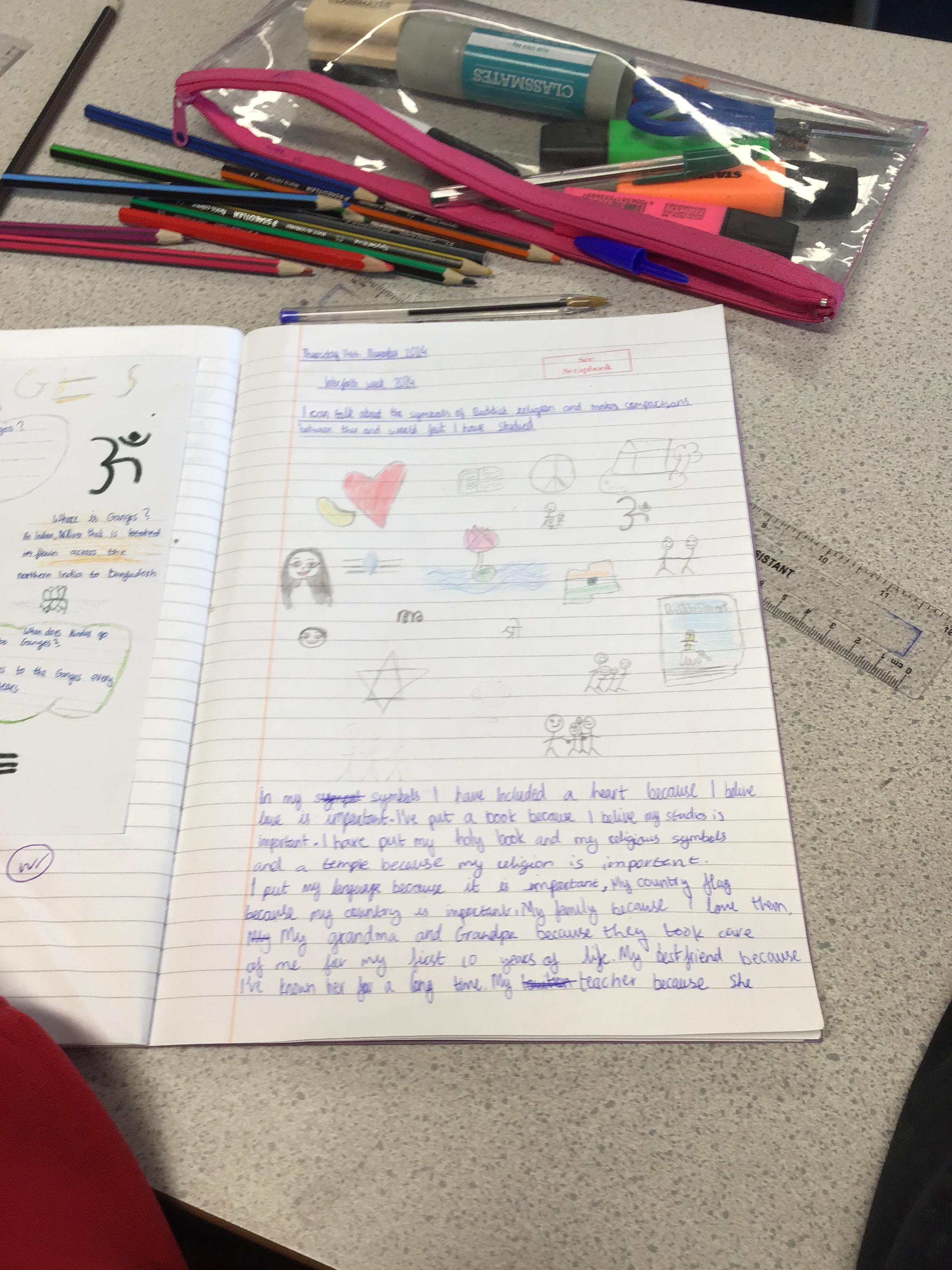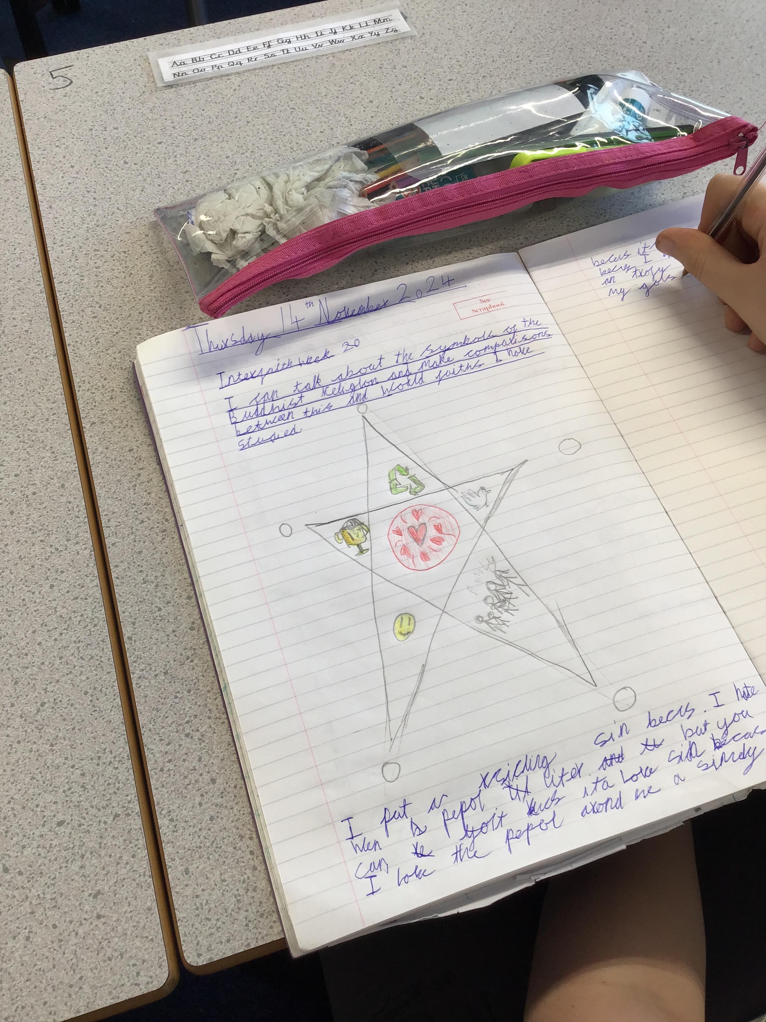 In RE, children celebrated Interfaith week by comparing the symbols of the Buddhist religion with other faiths. They produced some lovely work and could link this with other faiths they have studied in the past.