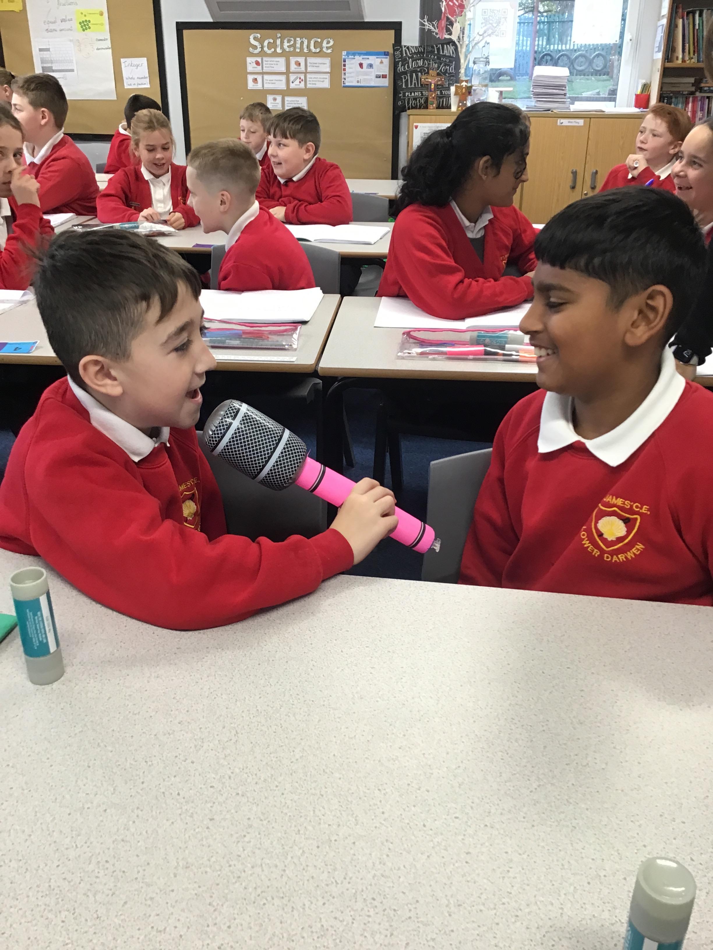 Breaking News was the topic in Thursday's English lesson. The children summarised the Witch's death in the Wizard of Oz by creating a news report. They had the opportunity to present their news report to the class too!
