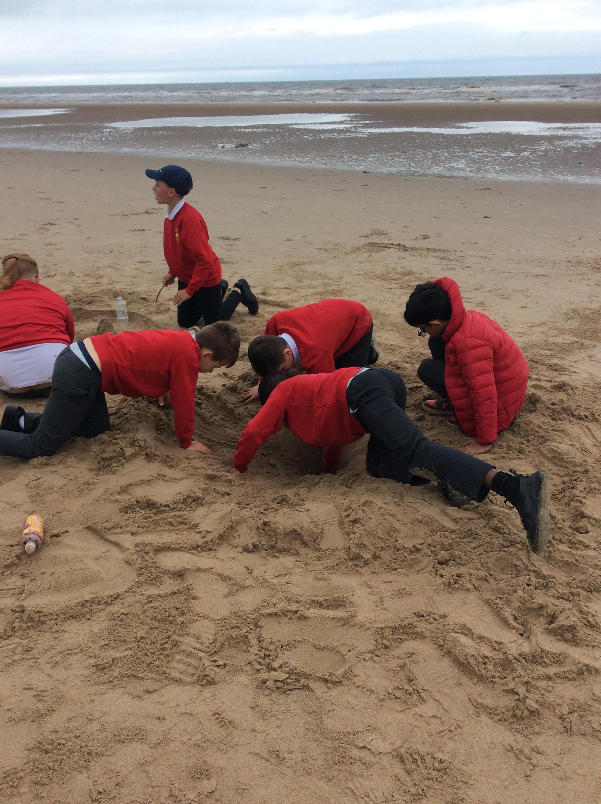Tuesday - the class spent the whole day in Blackpool, first at the circus, having our lunch in the Blackpool Tower ballroom. Then, having a fun time on the beach, playing games such as rounders and cricket. Some children dug holes until they could see water filling it up again.