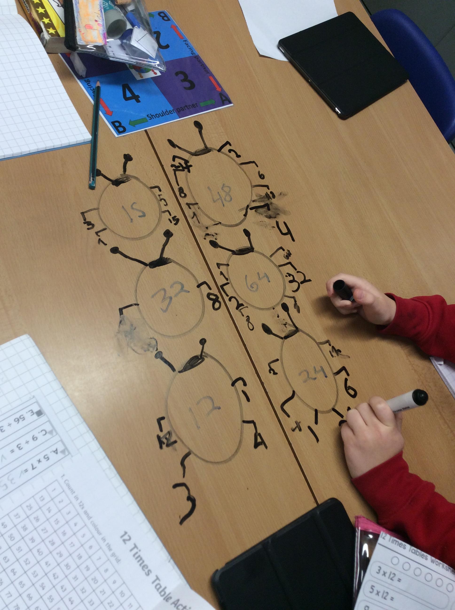 In Maths today we have been creating factor bugs using our knowledge of multiplication - You could try doing some of these at home (but maybe not drawing on the tables)