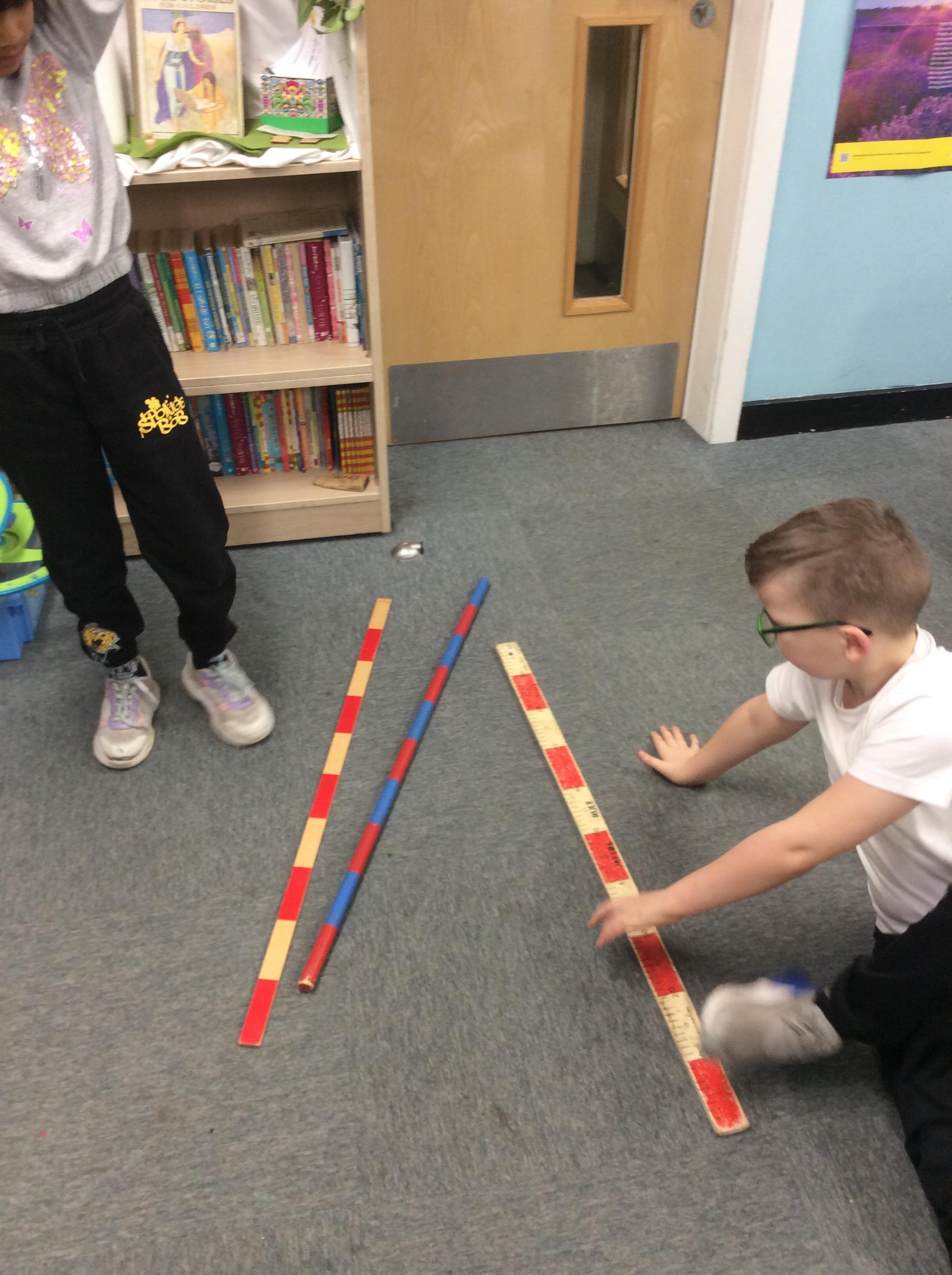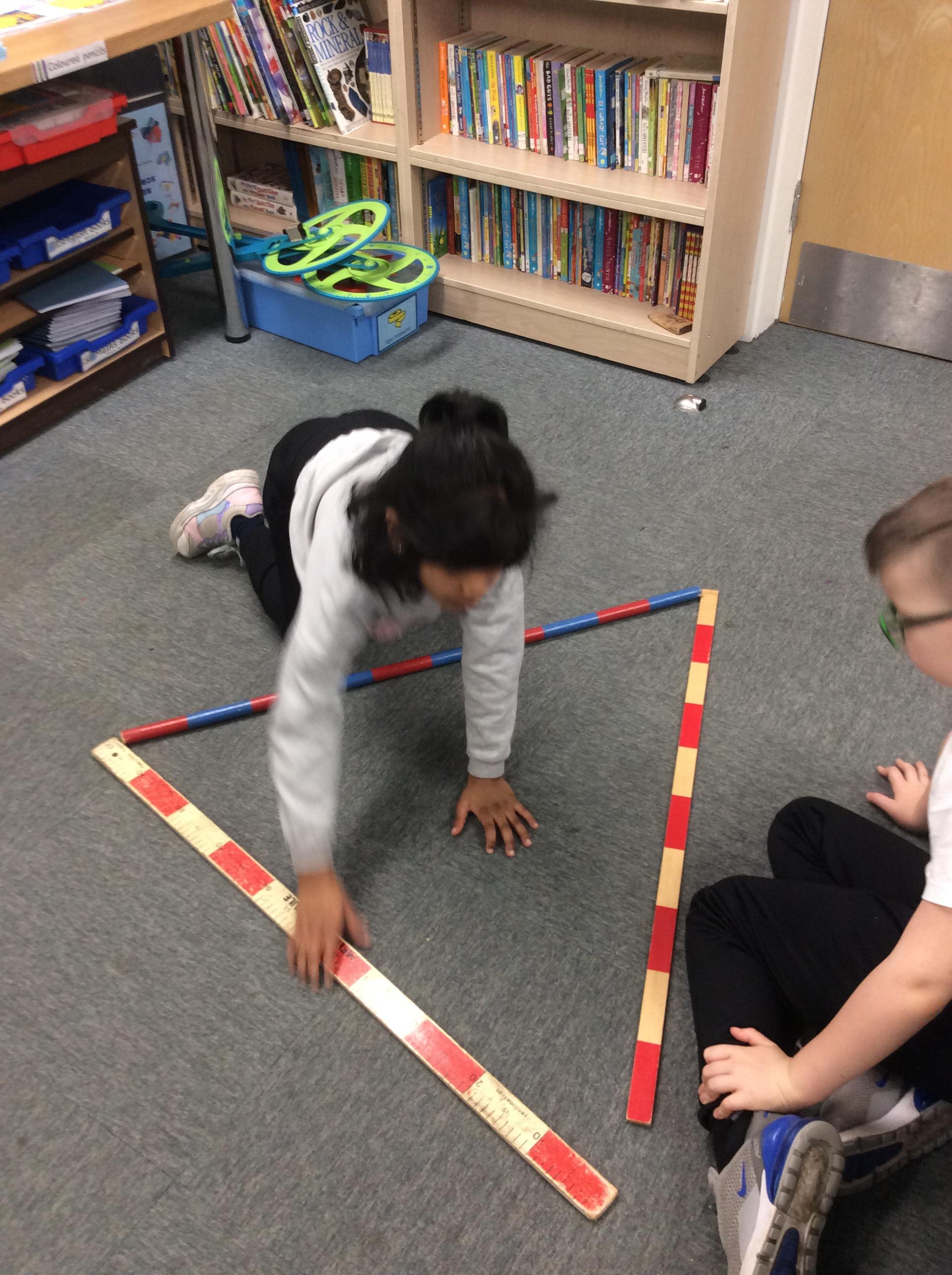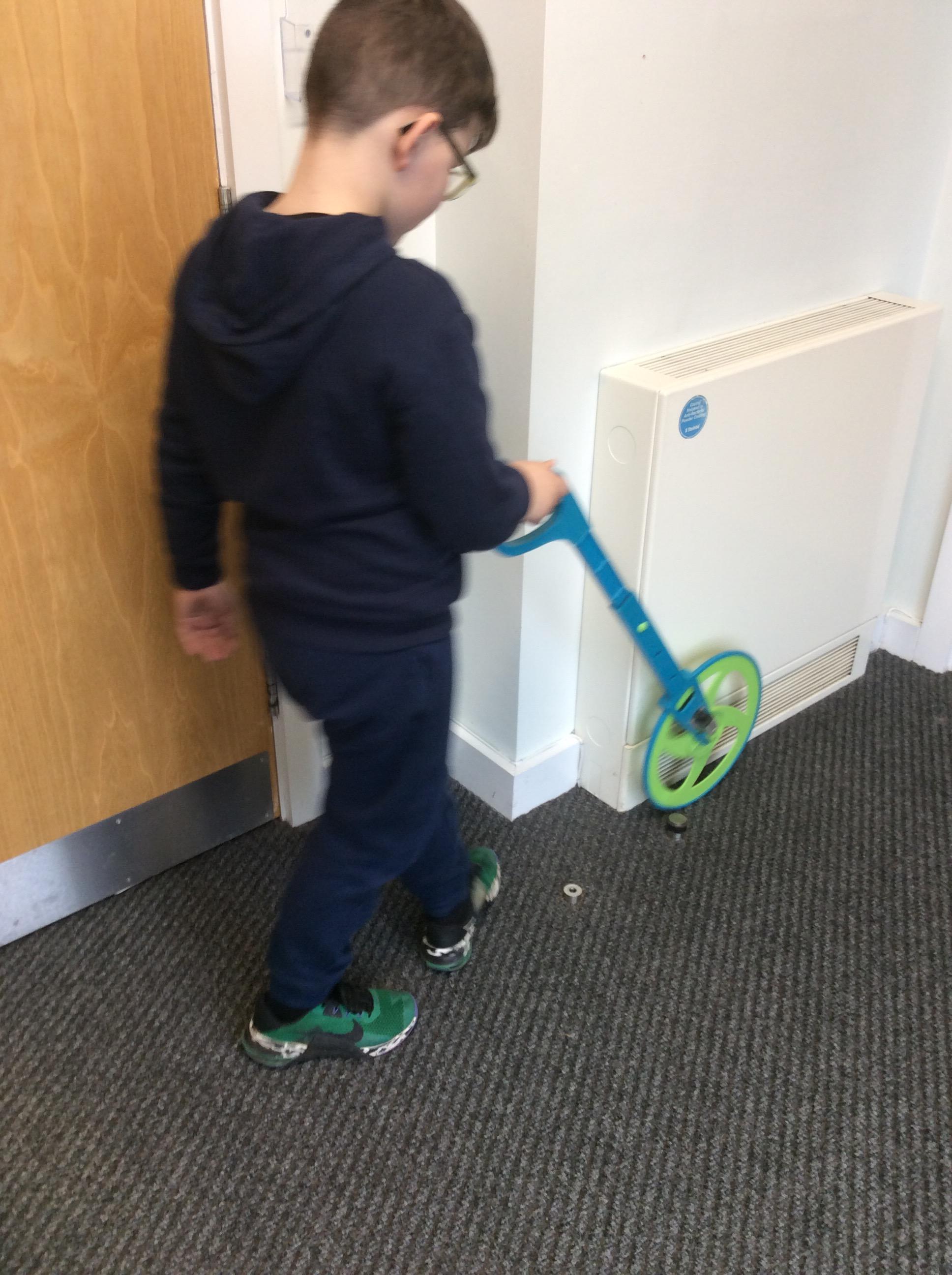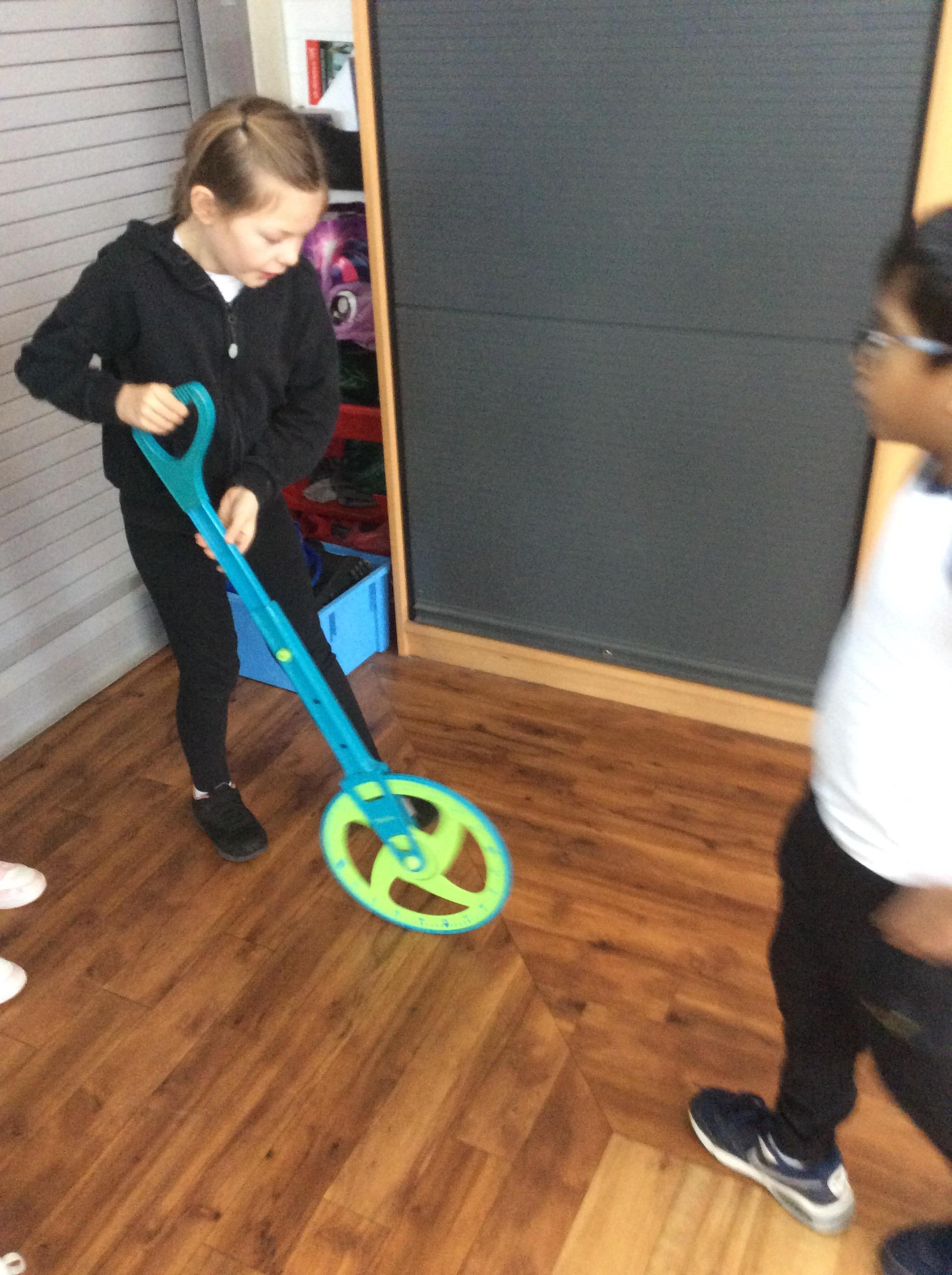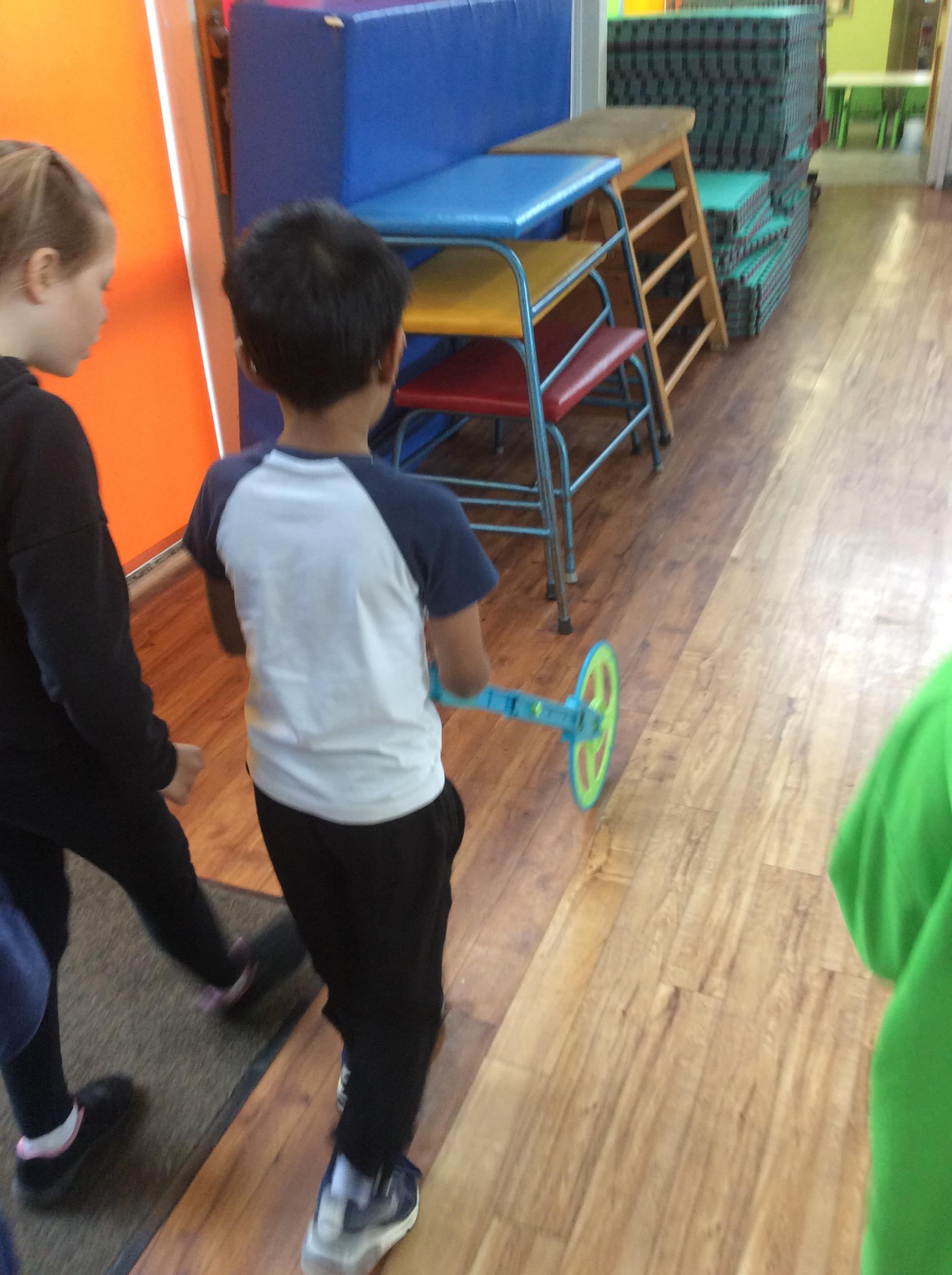 In Maths on Tuesday we were measuring the perimeter of big shapes and areas of the school in metres