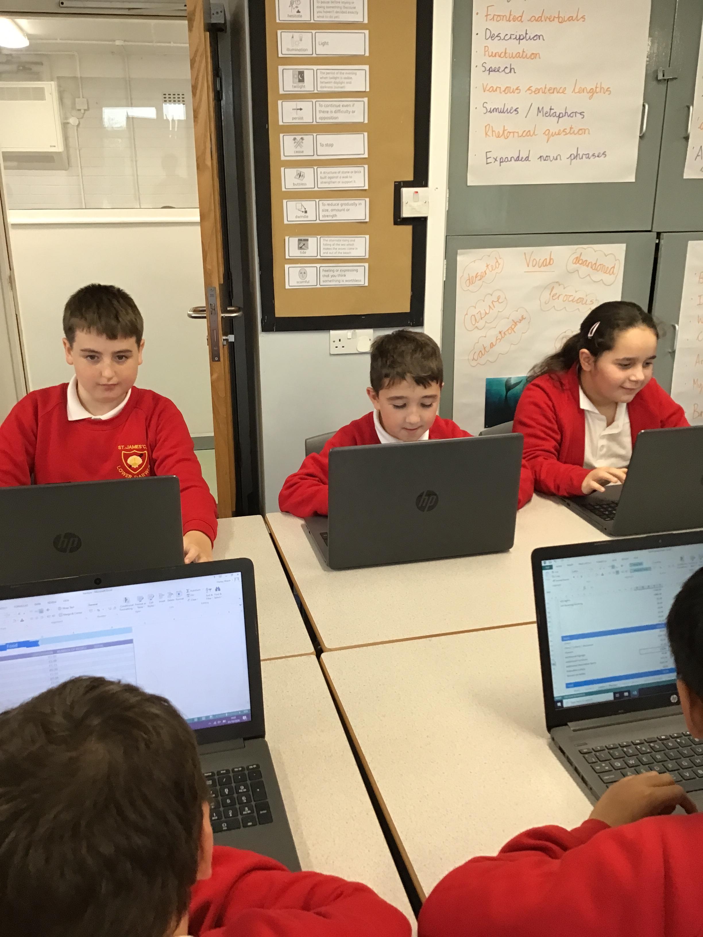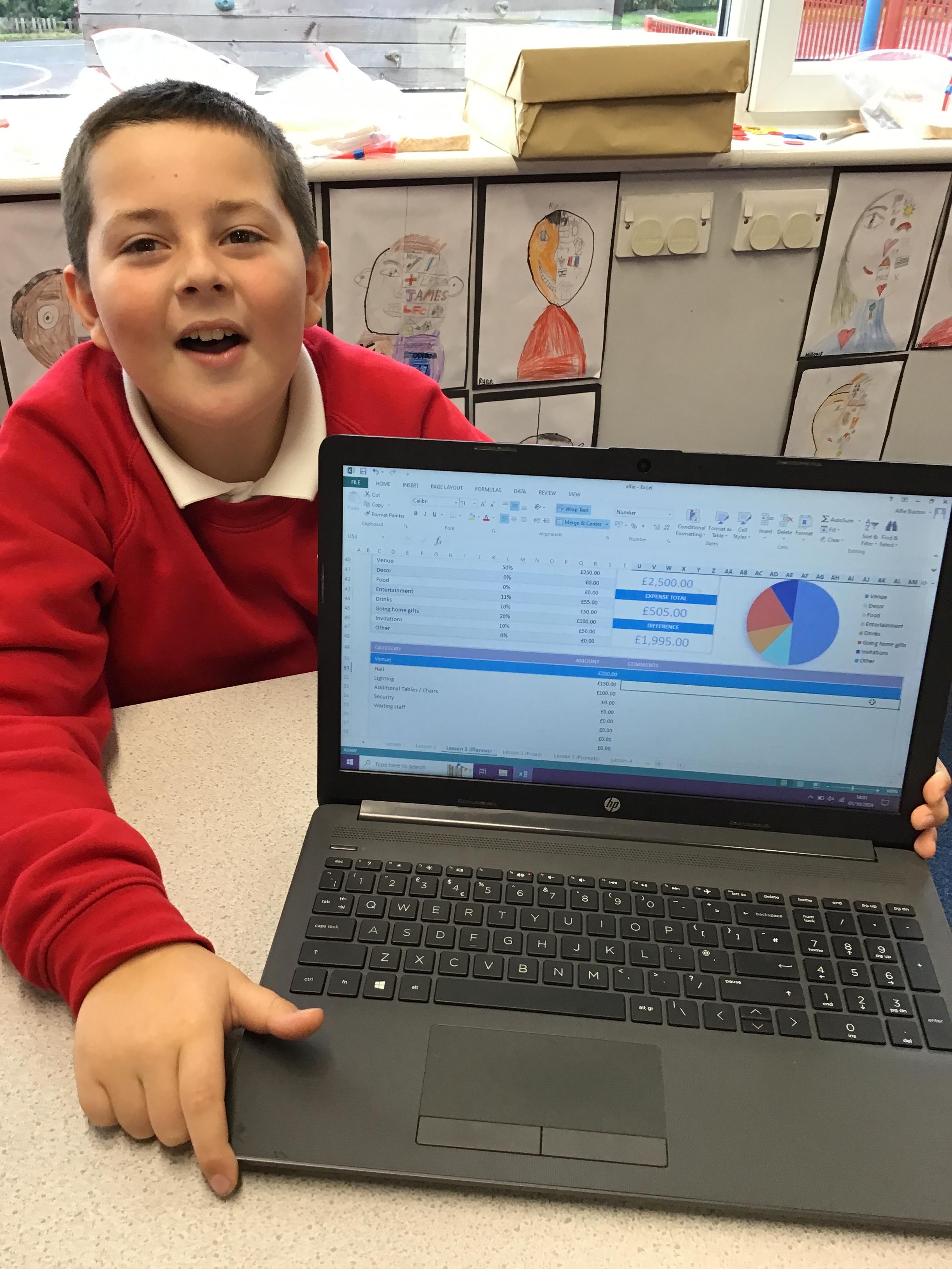 In computing the children became party planners and were given a hypothetical budget so they could plan their party. They used a spreadsheet to record the data and used formulae to calculate expenses.