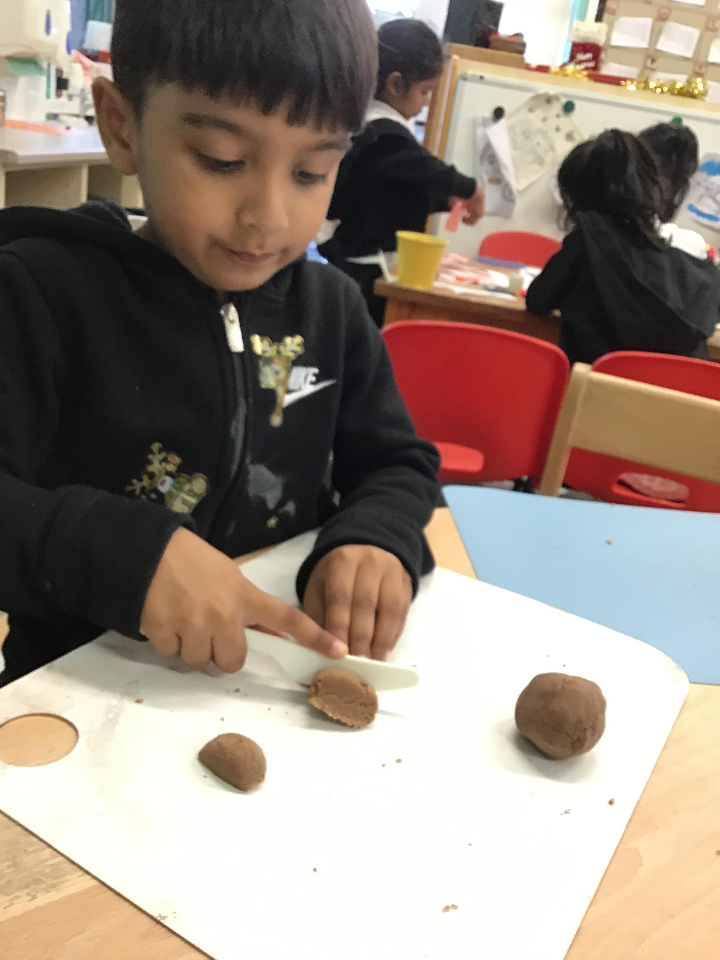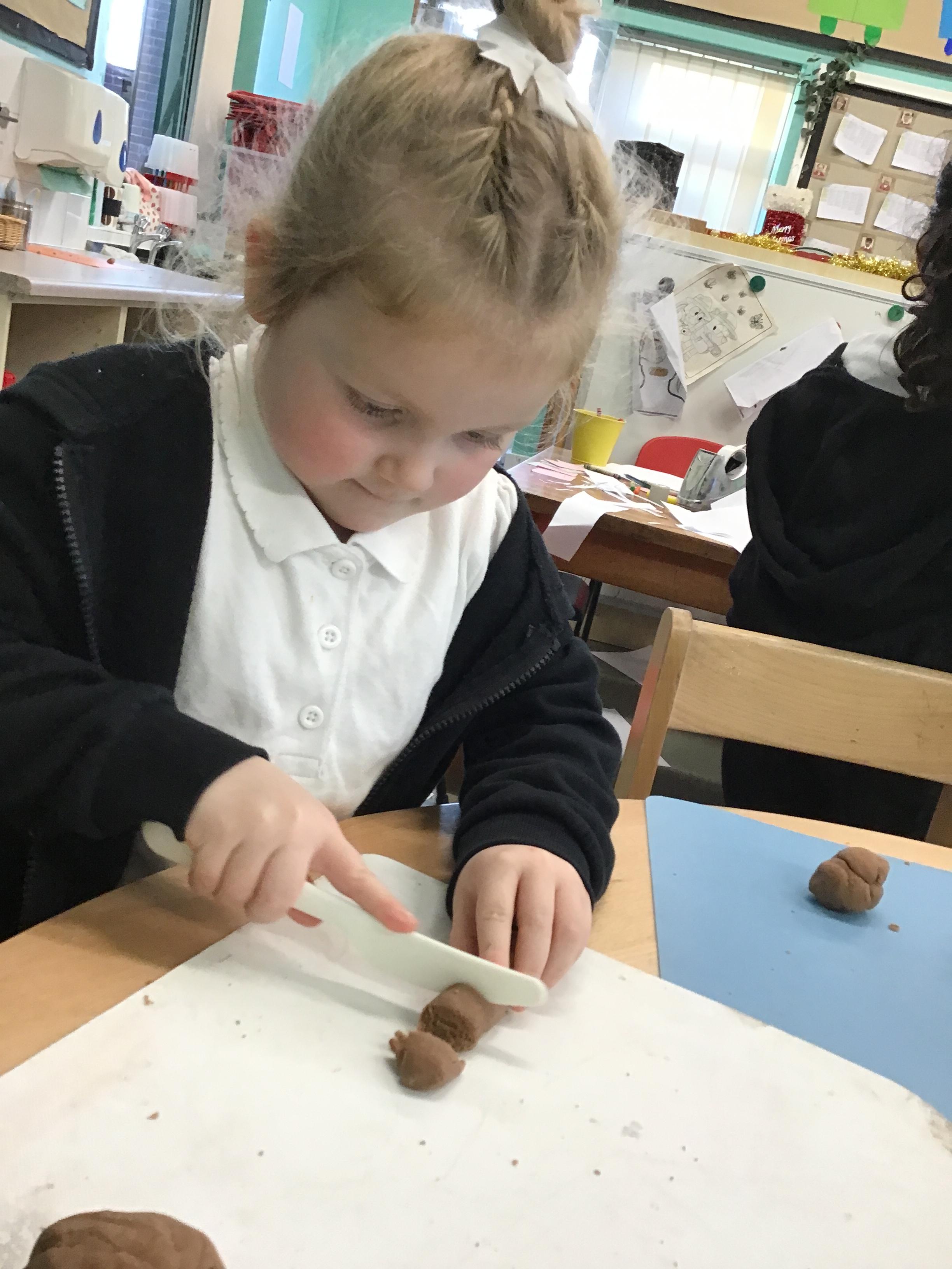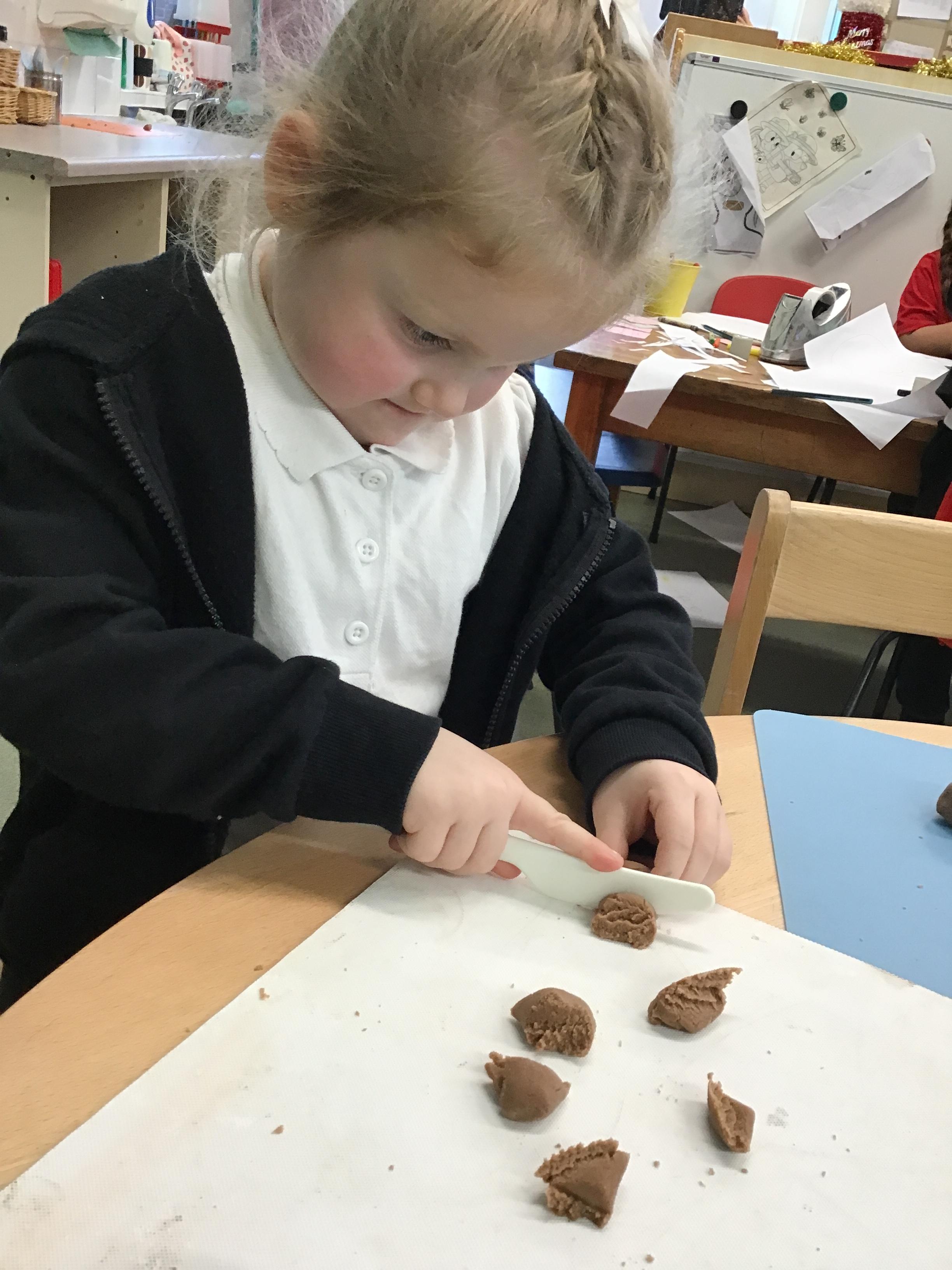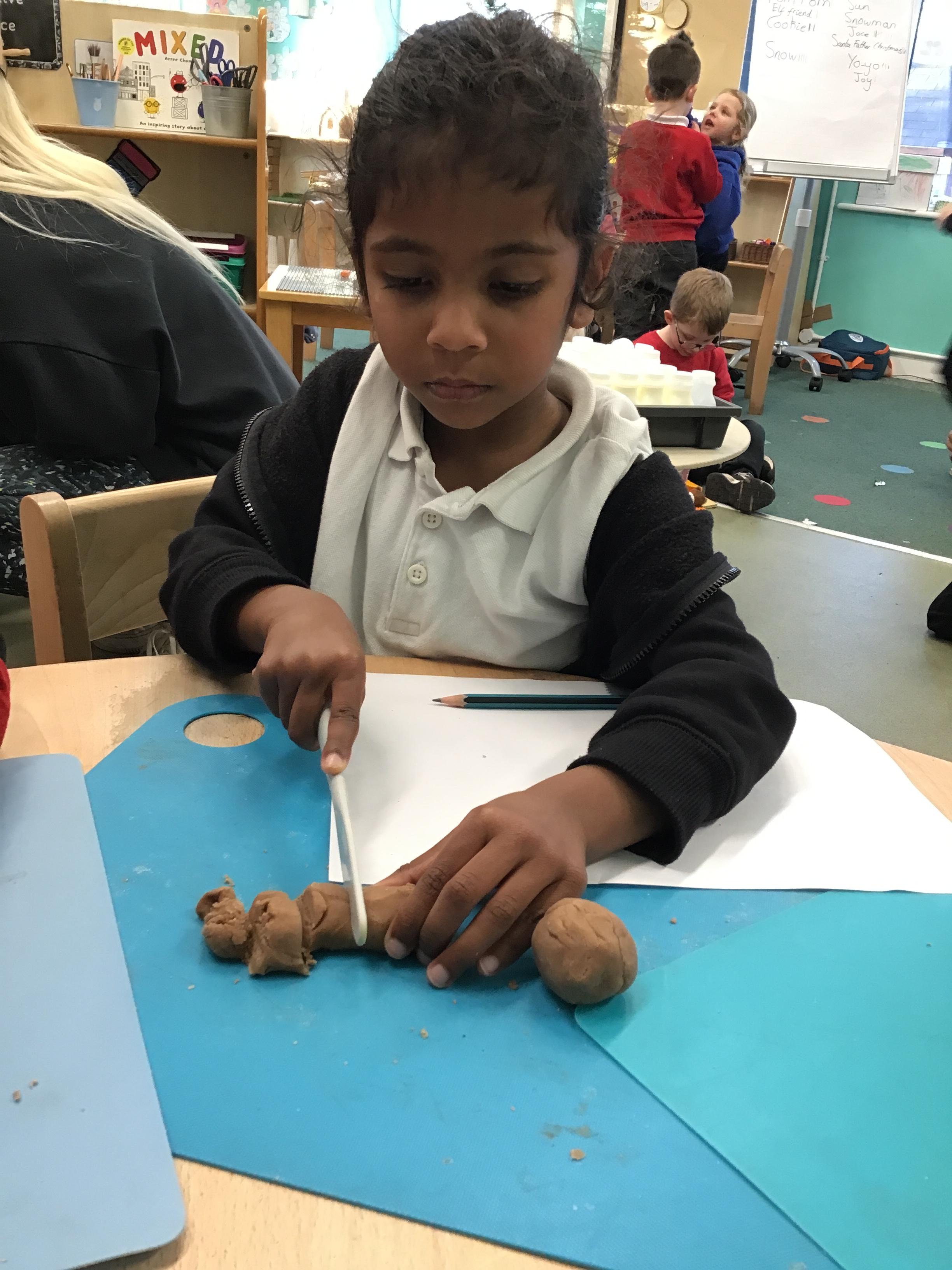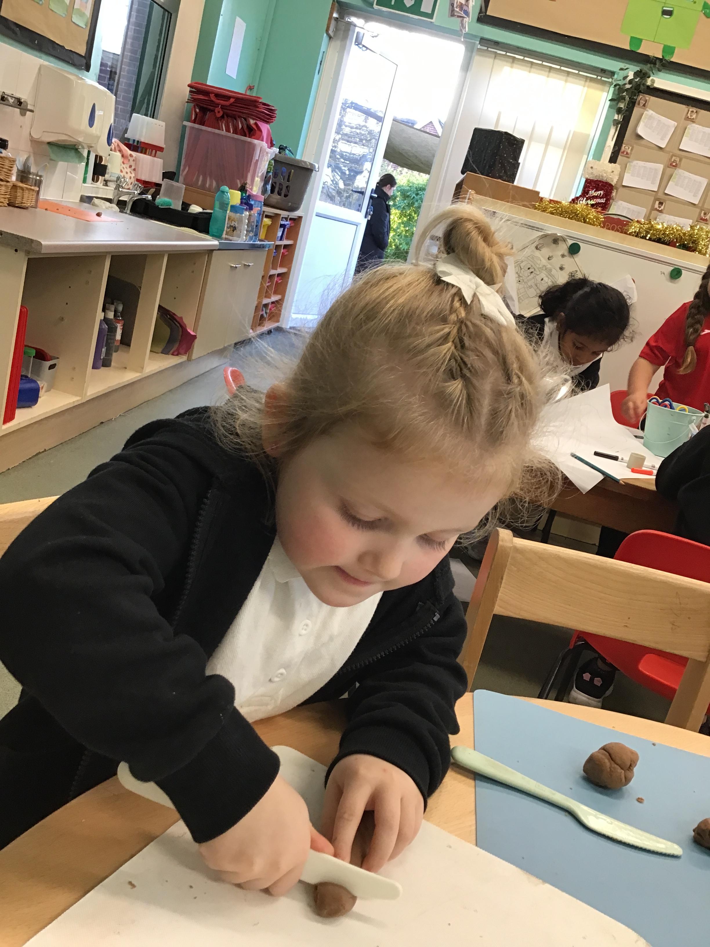 In maths we have been exploring shapes with 4 sides - squares and rectangles and in phonics we learned the sounds 'f' and 'ff'. We have also practised our cutting skills with knives and playdough and drew a map of our journey to the library.