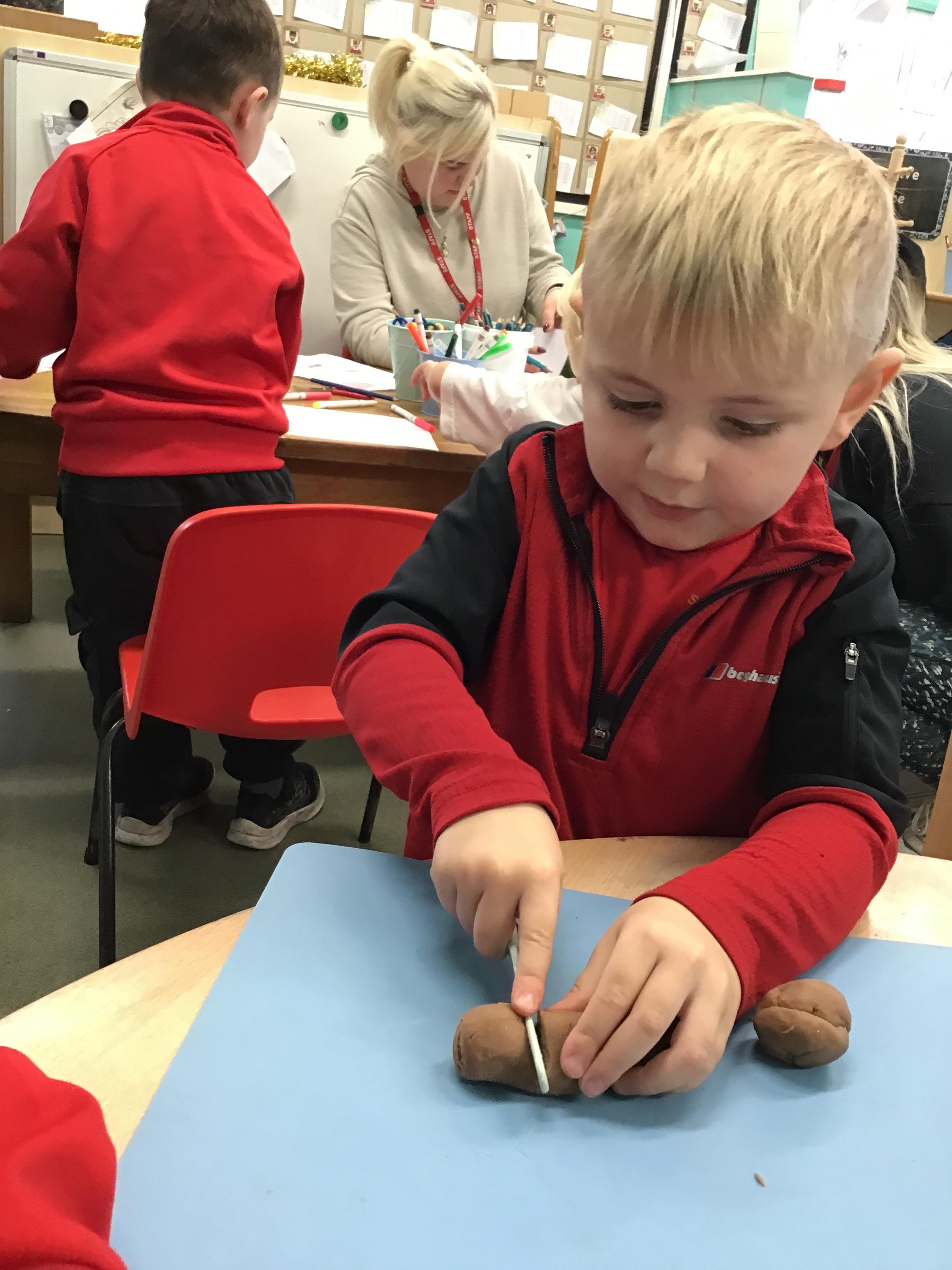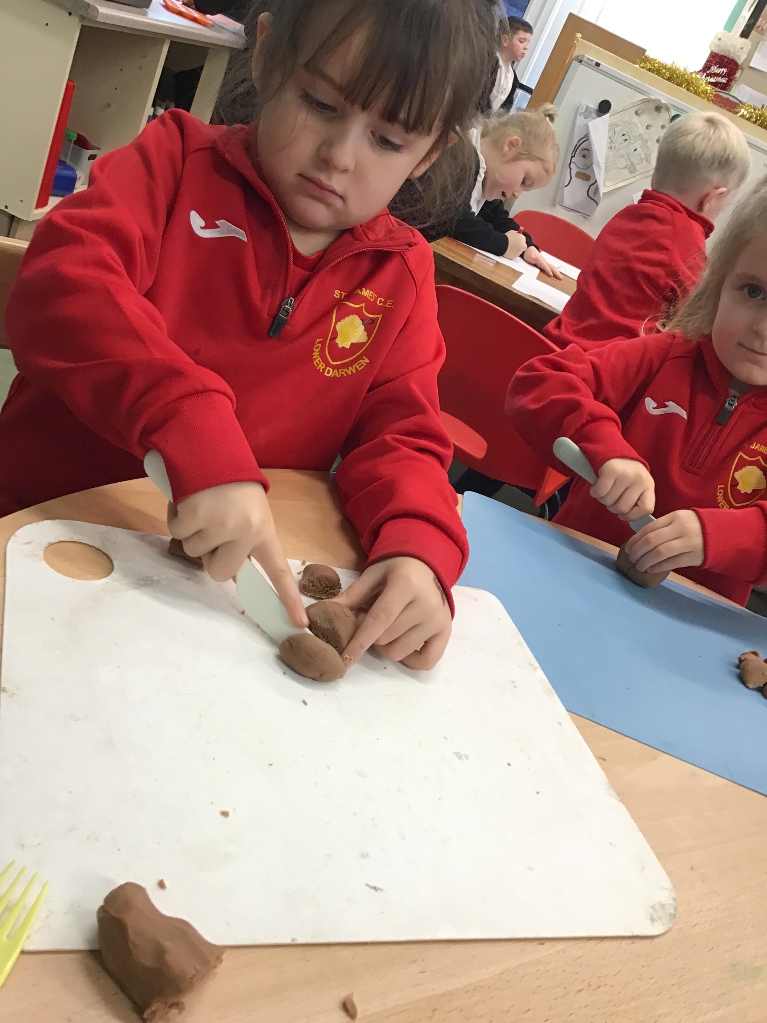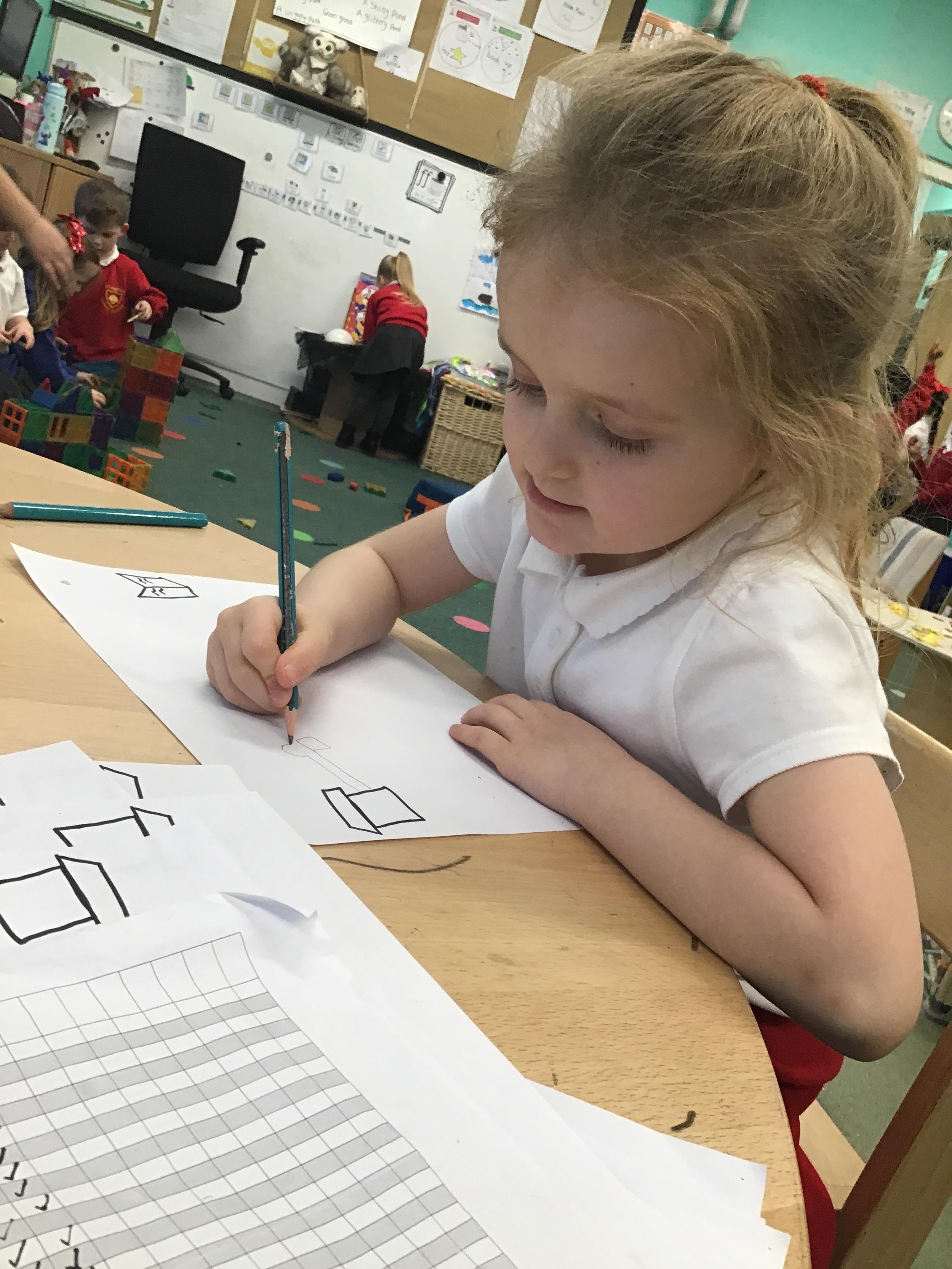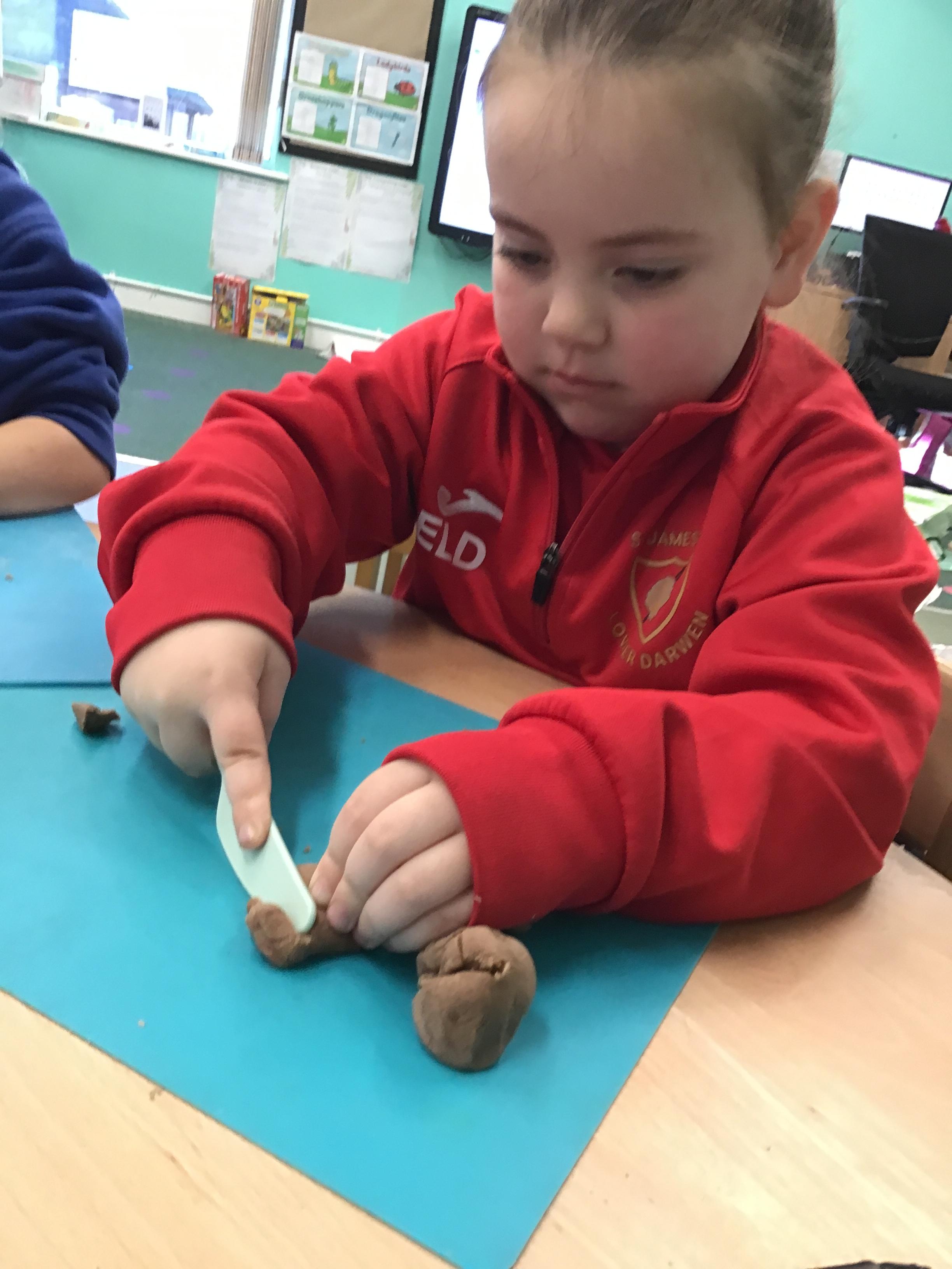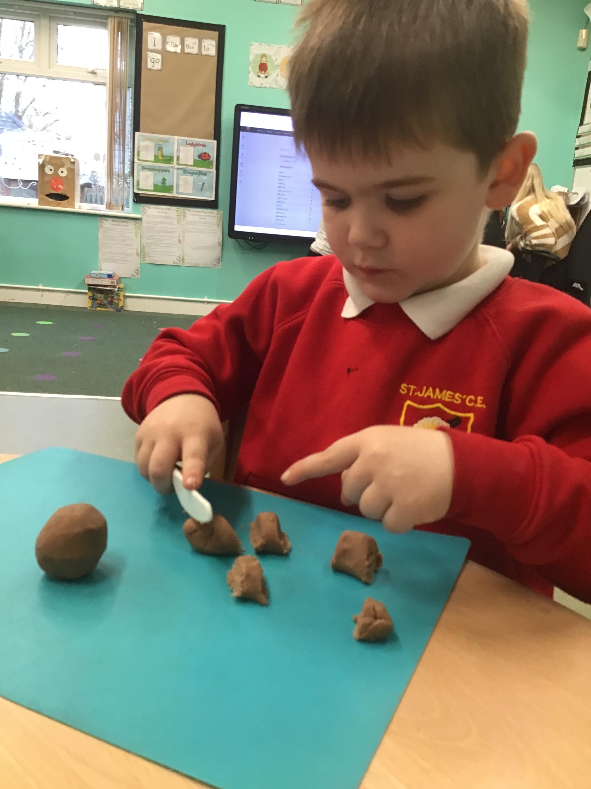 In maths we have been exploring shapes with 4 sides - squares and rectangles and in phonics we learned the sounds 'f' and 'ff'. We have also practised our cutting skills with knives and playdough and drew a map of our journey to the library.